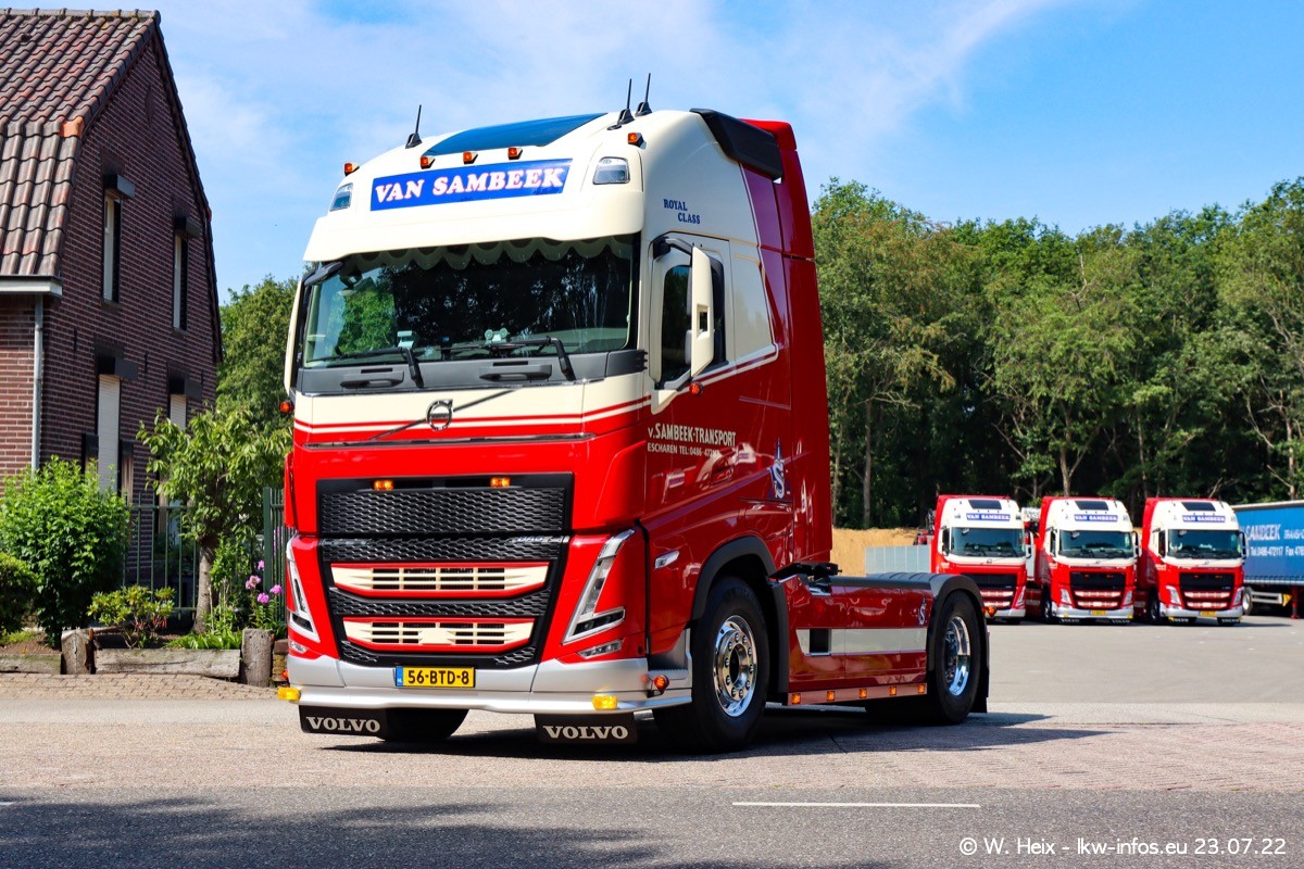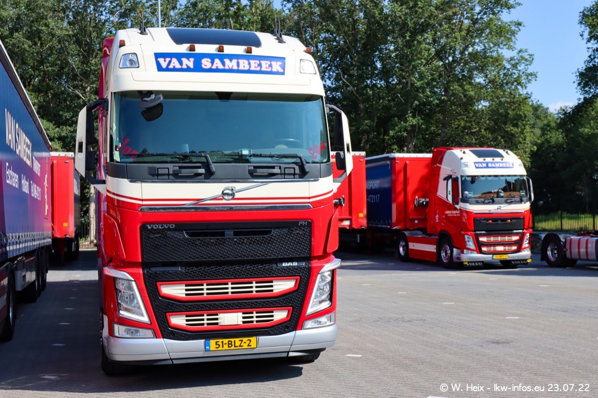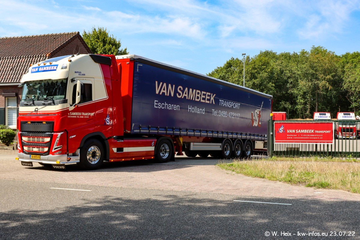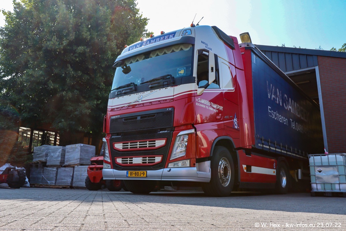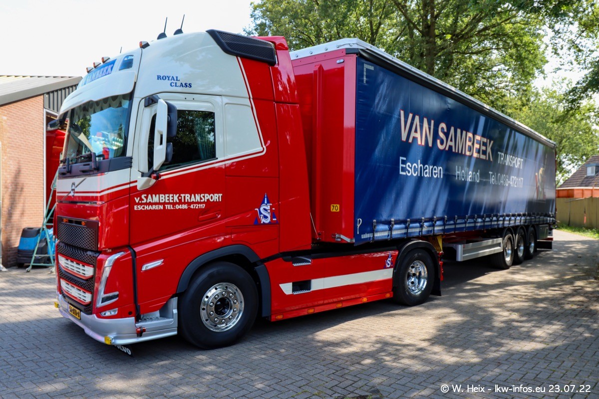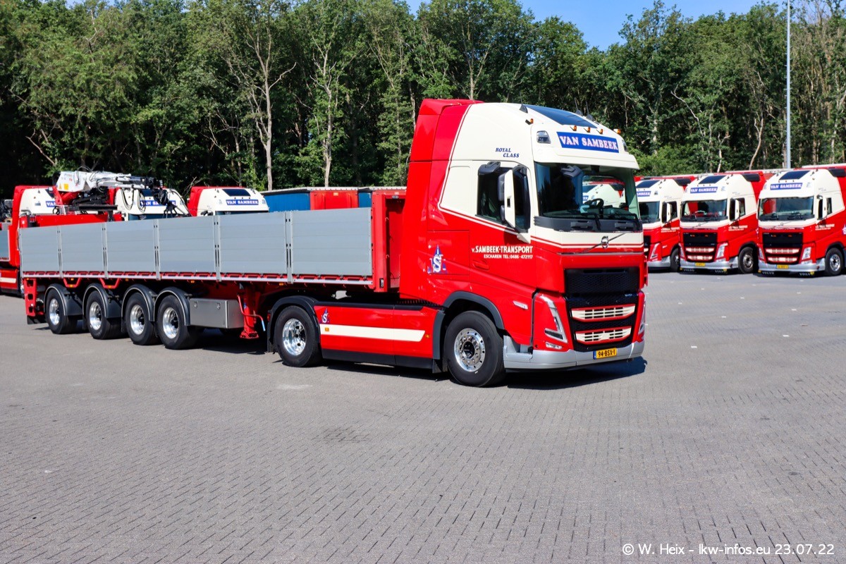 In den letzen Wochen hat van Sambeek Transport drei weitere VOLVO FH 5 bekommen und es sind auch neue Auflieger dazu gekommen. Diesmal haben wir wieder ein kleines Fotoshooting gemacht mit den drei neuen VOLVO FH 5, einem VOLVO FH 4 mit Planenauflieger, der im Kundendesign gestaltet ist. Und noch mit weiteren LKW .... Es gibt auch einen neuen Steintransport-Auflieger. Auch dieser ist in Kundenfarben lackiert und direkt auf den ersten Bildern zu sehen. Danke an Bas Bruisten, der sich wieder viel Zeit genommen hat, um dieses kleinen Fotoshooting zu machen.