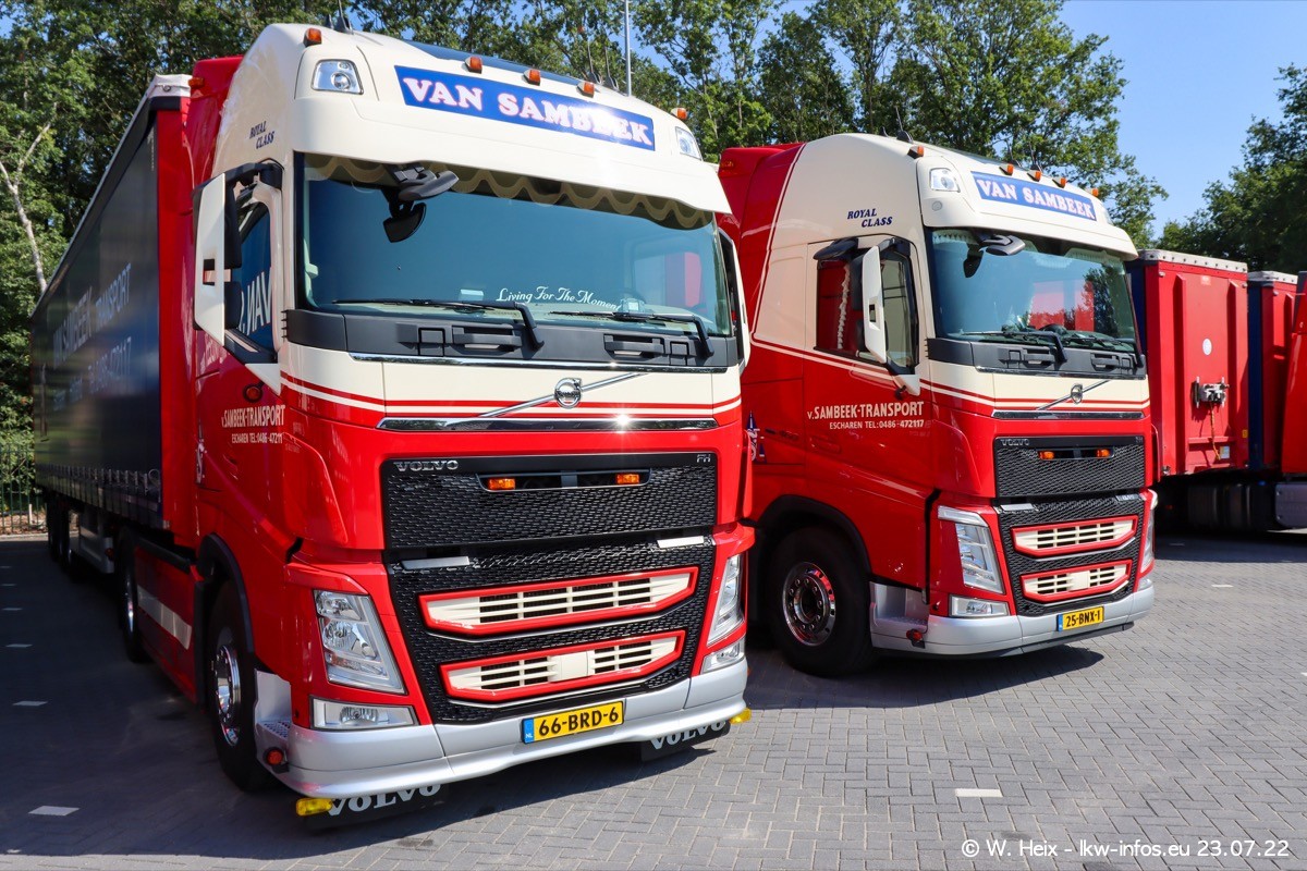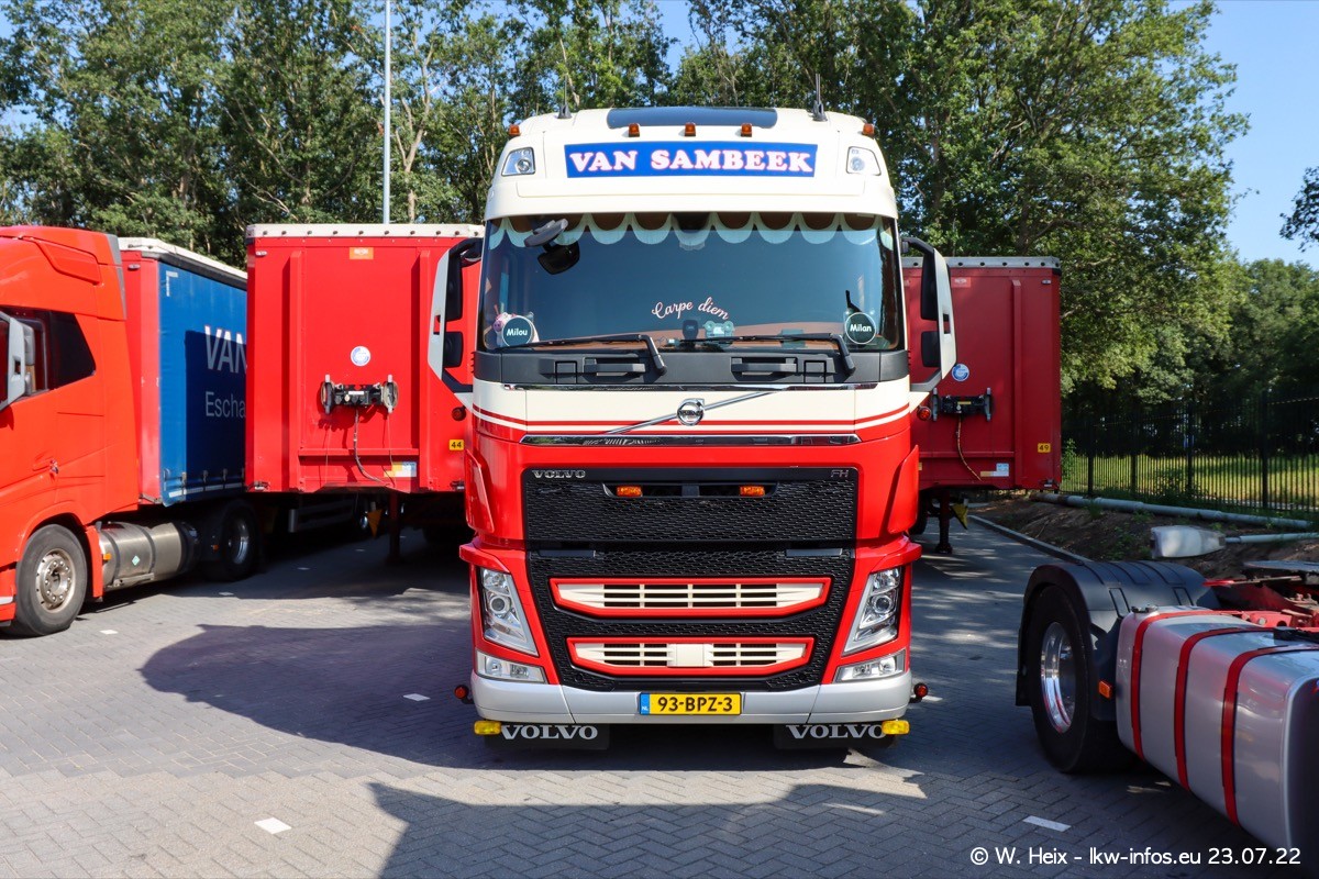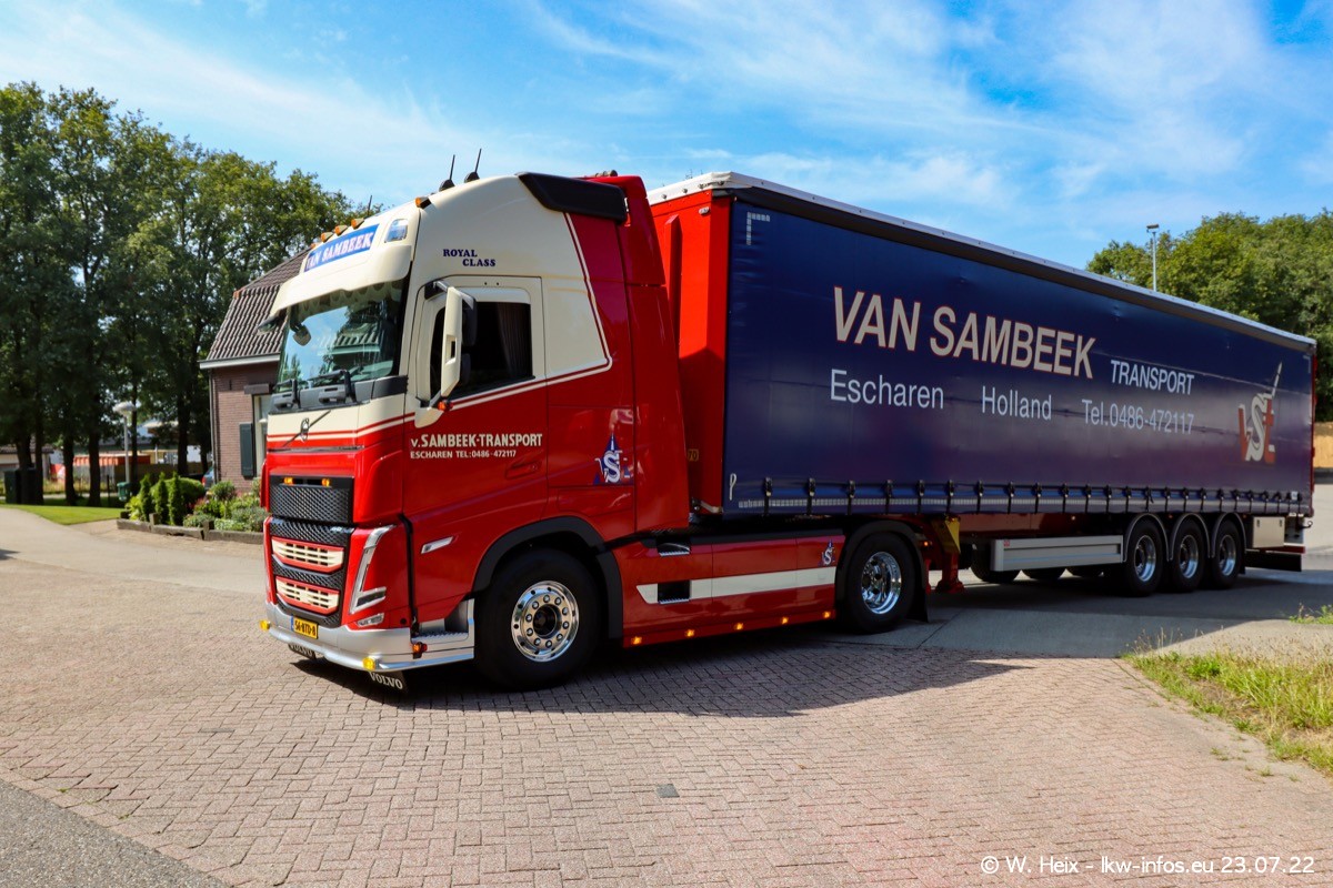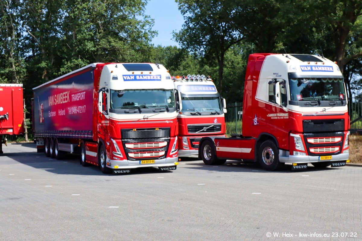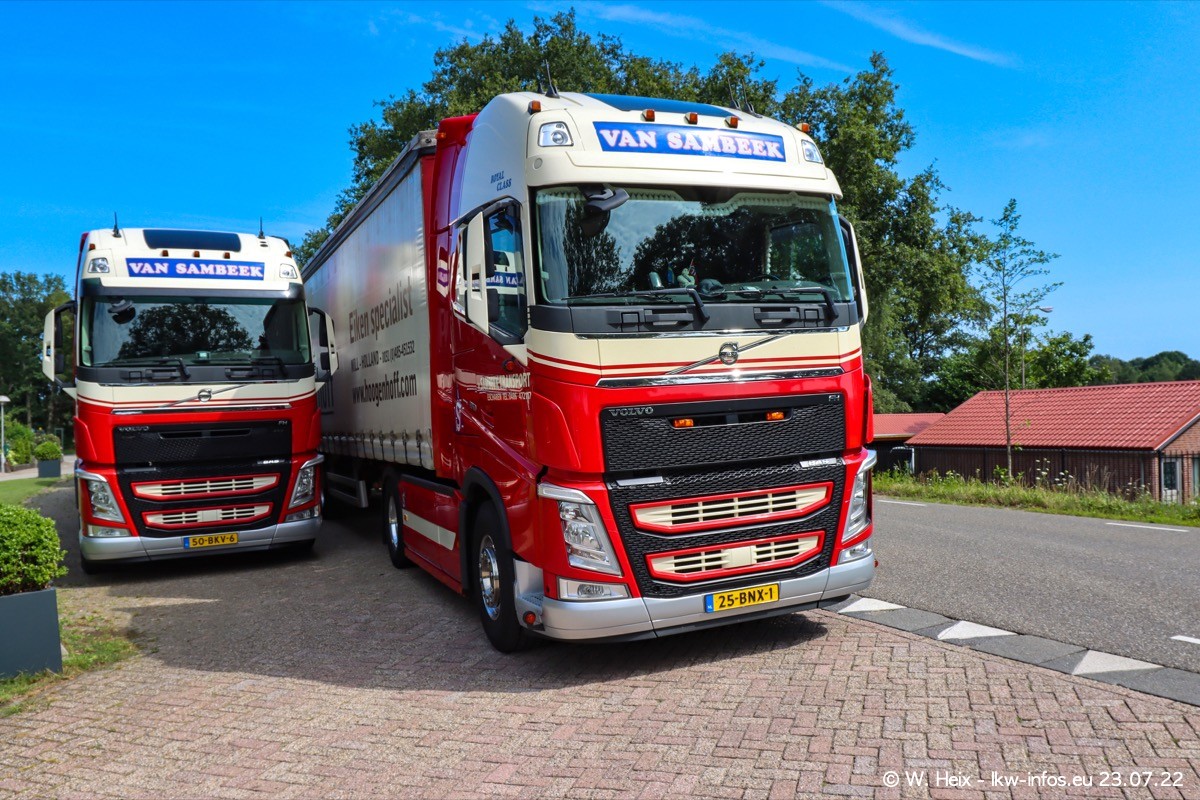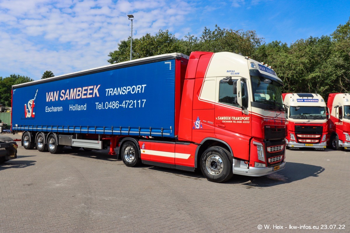 In den letzen Wochen hat van Sambeek Transport drei weitere VOLVO FH 5 bekommen und es sind auch neue Auflieger dazu gekommen. Diesmal haben wir wieder ein kleines Fotoshooting gemacht mit den drei neuen VOLVO FH 5, einem VOLVO FH 4 mit Planenauflieger, der im Kundendesign gestaltet ist. Und noch mit weiteren LKW .... Es gibt auch einen neuen Steintransport-Auflieger. Auch dieser ist in Kundenfarben lackiert und direkt auf den ersten Bildern zu sehen. Danke an Bas Bruisten, der sich wieder viel Zeit genommen hat, um dieses kleinen Fotoshooting zu machen.