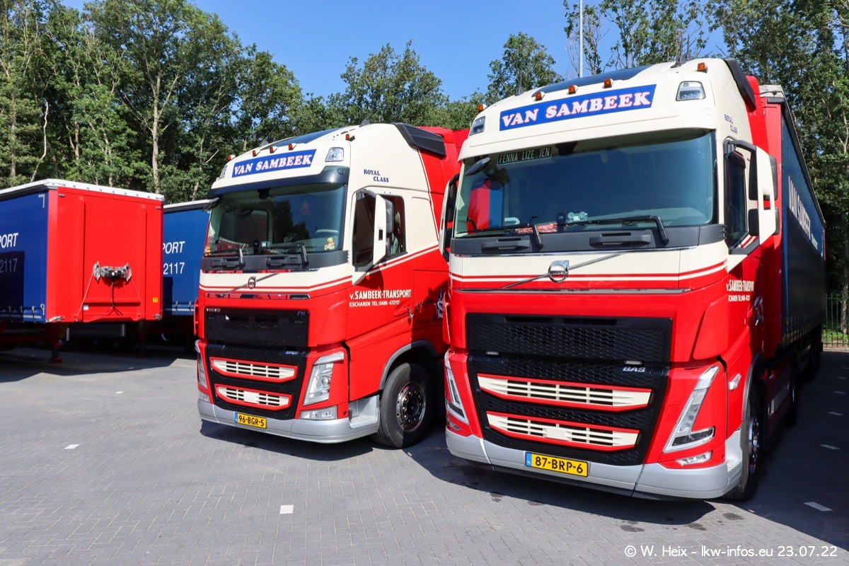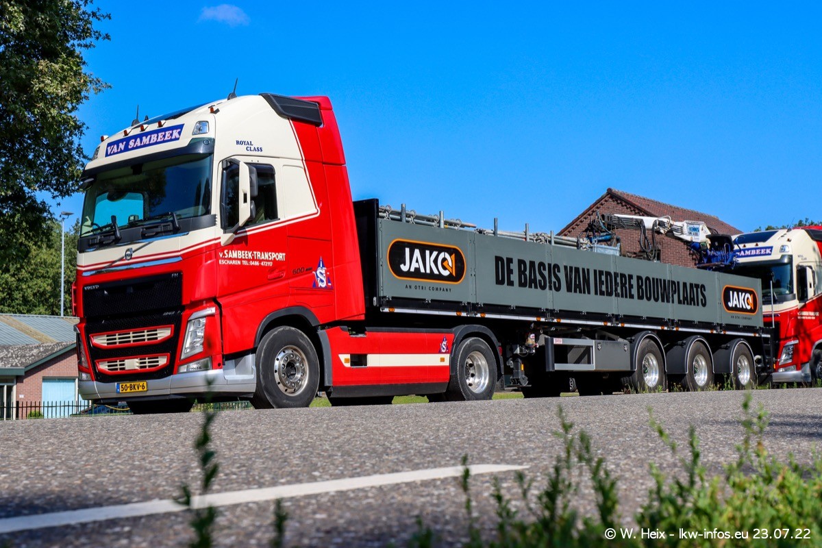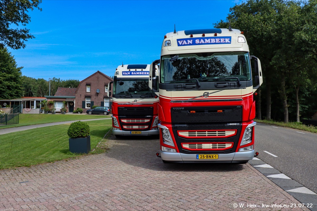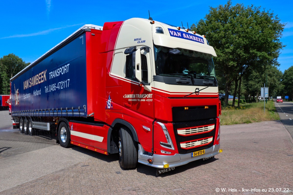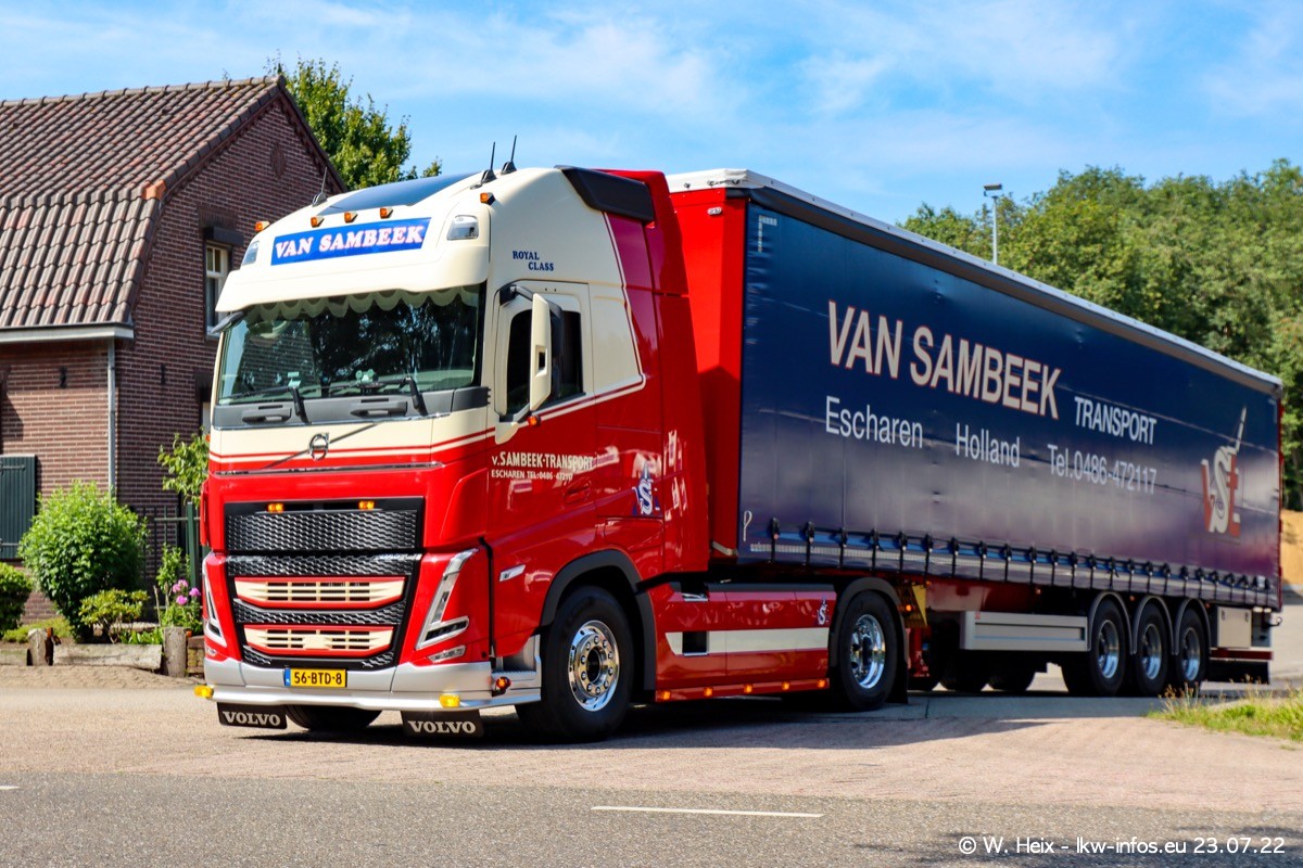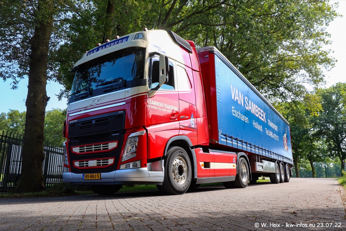 In den letzen Wochen hat van Sambeek Transport drei weitere VOLVO FH 5 bekommen und es sind auch neue Auflieger dazu gekommen. Diesmal haben wir wieder ein kleines Fotoshooting gemacht mit den drei neuen VOLVO FH 5, einem VOLVO FH 4 mit Planenauflieger, der im Kundendesign gestaltet ist. Und noch mit weiteren LKW .... Es gibt auch einen neuen Steintransport-Auflieger. Auch dieser ist in Kundenfarben lackiert und direkt auf den ersten Bildern zu sehen. Danke an Bas Bruisten, der sich wieder viel Zeit genommen hat, um dieses kleinen Fotoshooting zu machen.