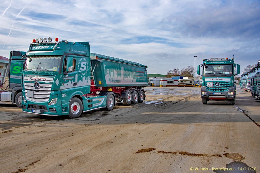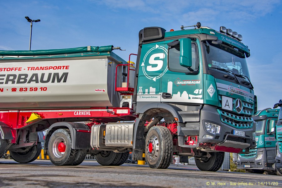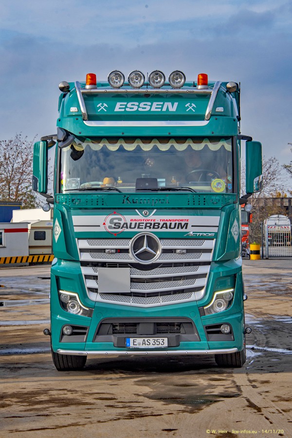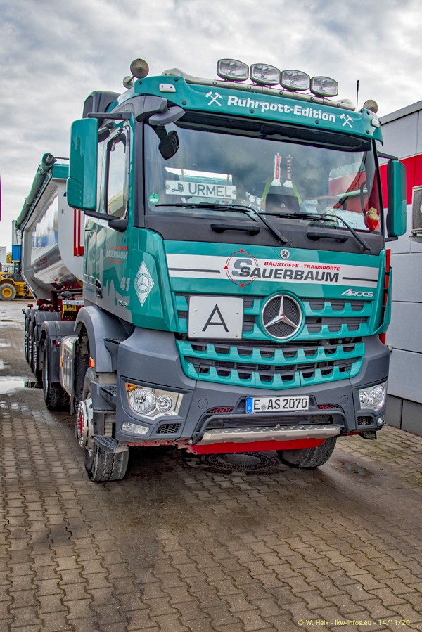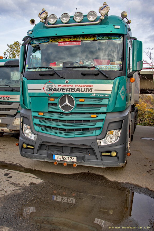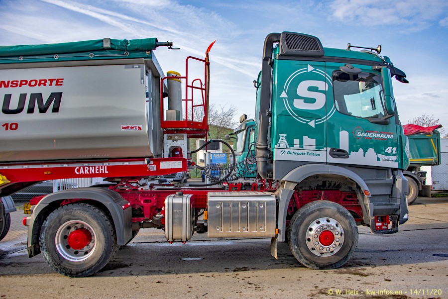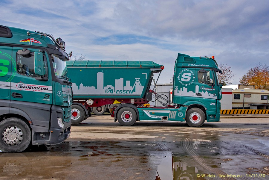 Mitte Oktober hatte die Firma Sauerbaum zwei Mercedes-Benz New Actros 1851 bekommen, die aufwändig im eigenen Design "Ruhrpott-Edition" gestaltet sind. Einige Wochen später kamen noch drei neue Mercedes-Benz Arocs 4x4 dazu. Diese Zugmaschinen sind auch im "Ruhrpott-Edition"-Design gestaltet und konnten von mir erstmals fotografiert werden. Im Teil 10 gibt es Bilder von einem kleinen Fotoshooting, das wir mit zwei der neuen Fahrzeuge im Essener Stadthafen gemacht haben.