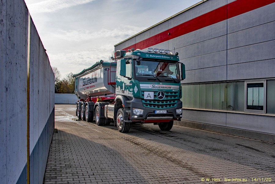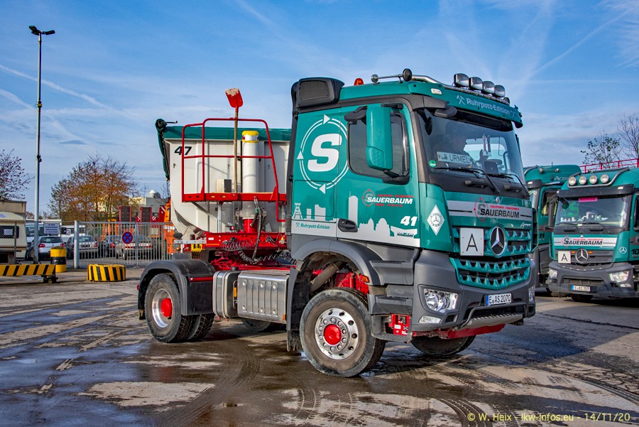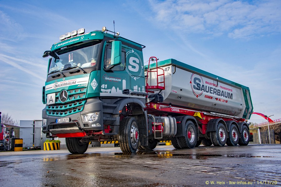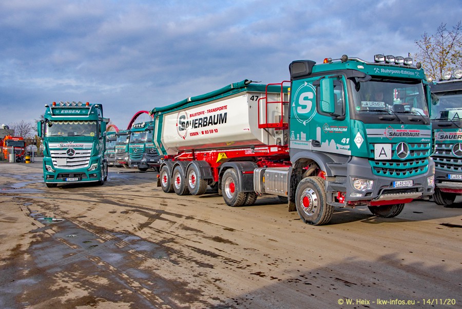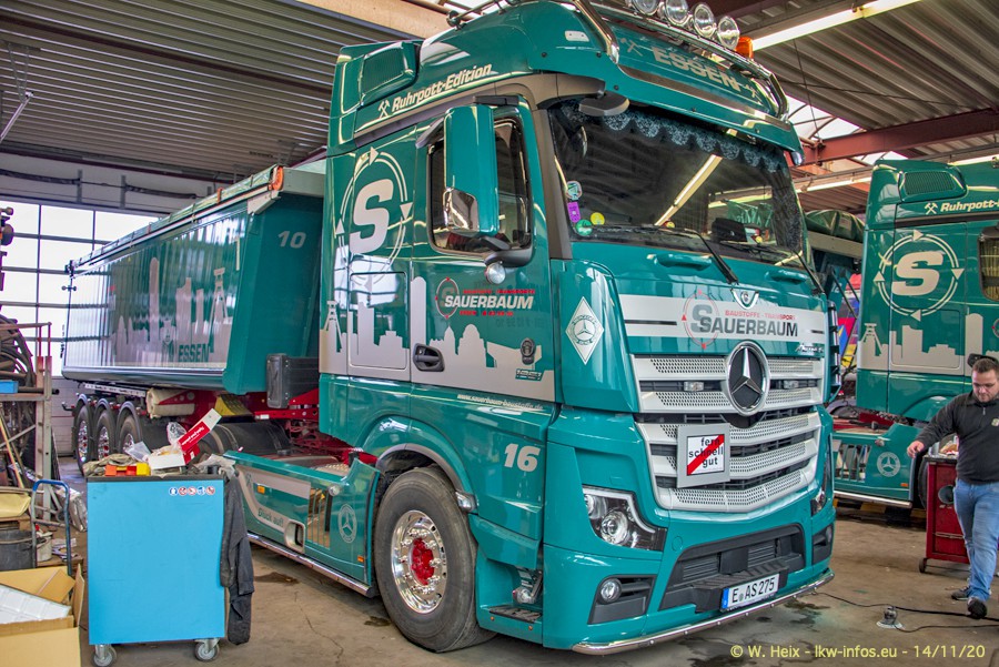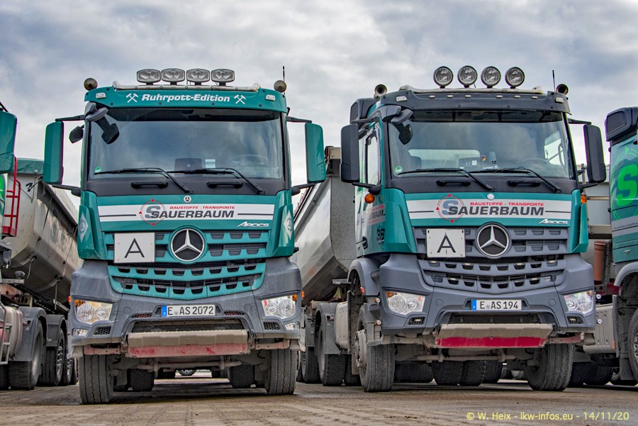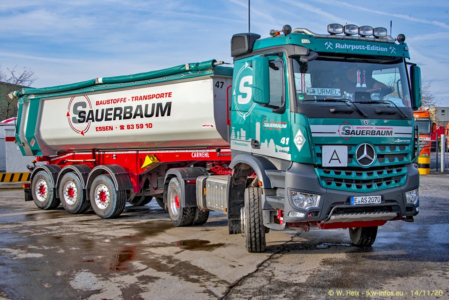 Mitte Oktober hatte die Firma Sauerbaum zwei Mercedes-Benz New Actros 1851 bekommen, die aufwändig im eigenen Design "Ruhrpott-Edition" gestaltet sind. Einige Wochen später kamen noch drei neue Mercedes-Benz Arocs 4x4 dazu. Diese Zugmaschinen sind auch im "Ruhrpott-Edition"-Design gestaltet und konnten von mir erstmals fotografiert werden. Im Teil 10 gibt es Bilder von einem kleinen Fotoshooting, das wir mit zwei der neuen Fahrzeuge im Essener Stadthafen gemacht haben.