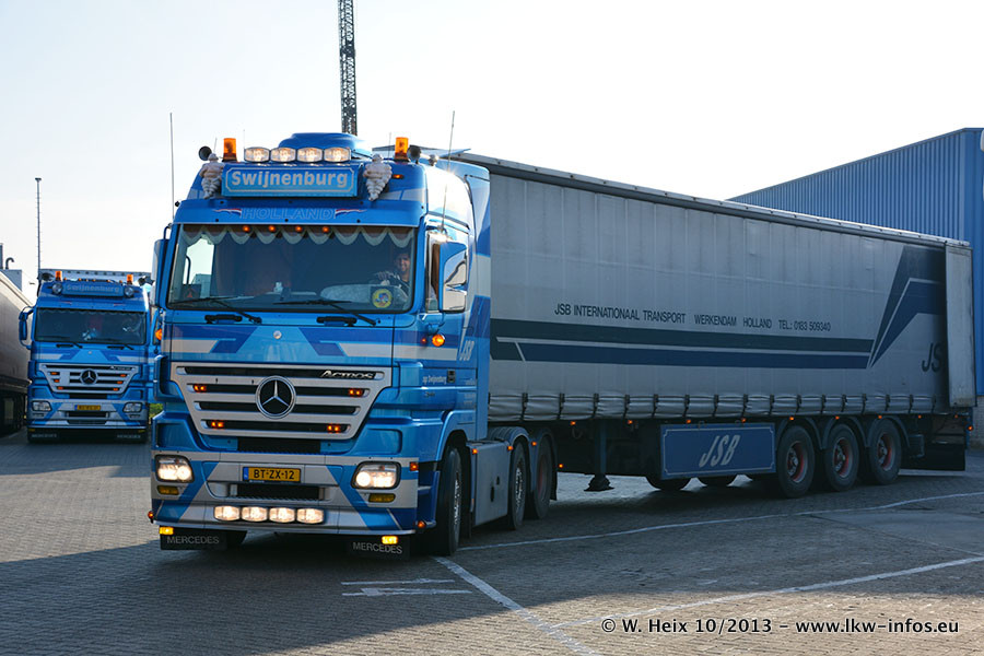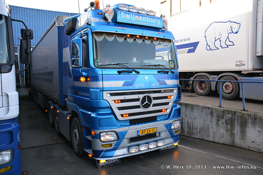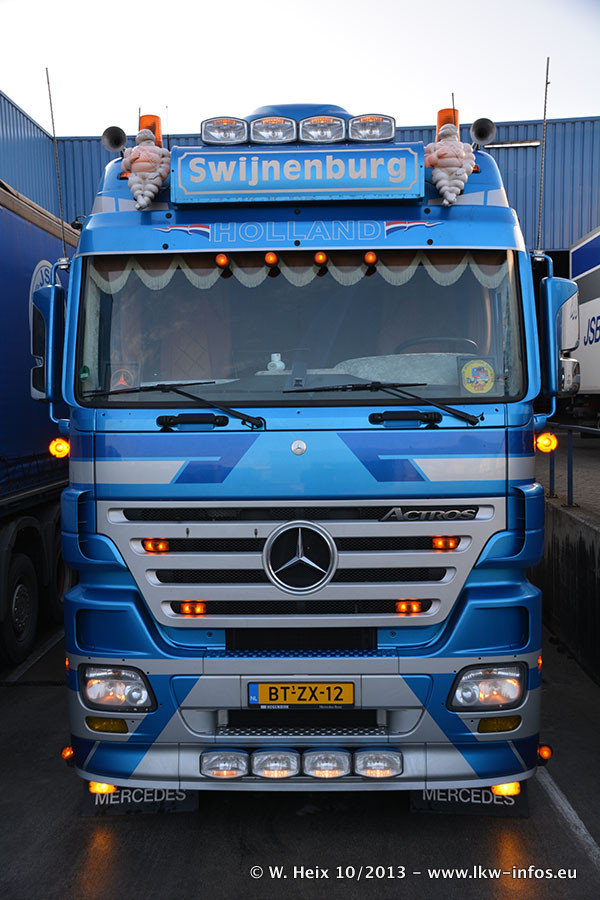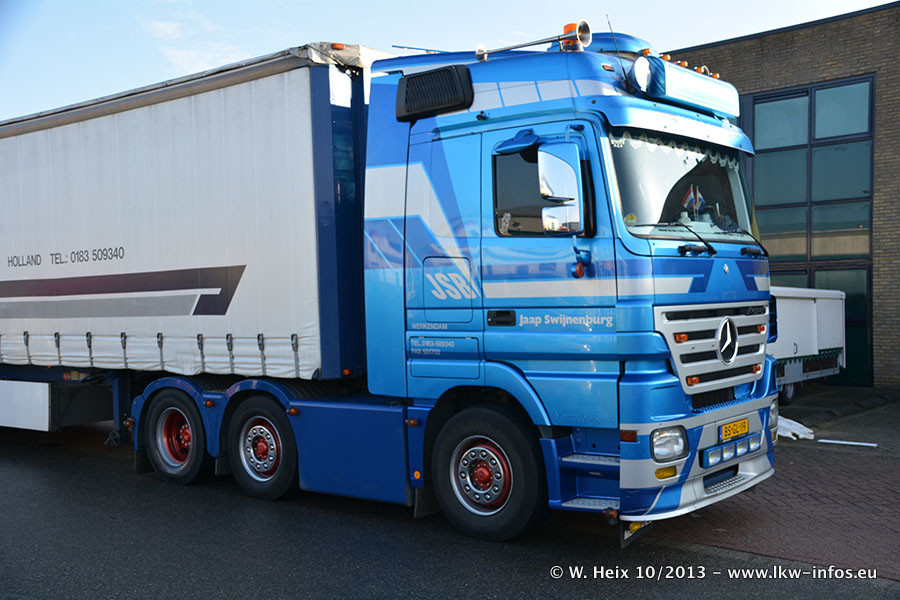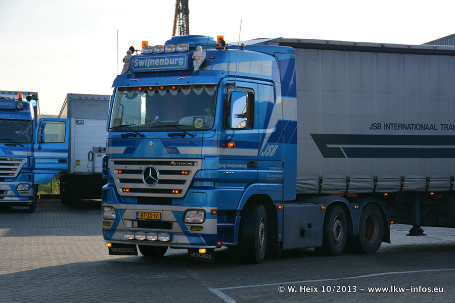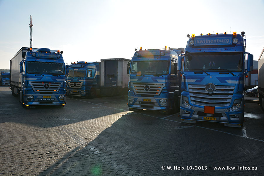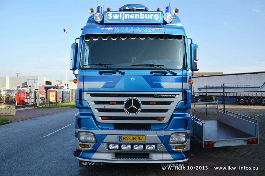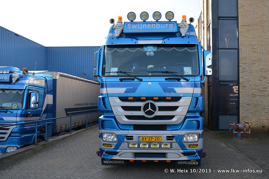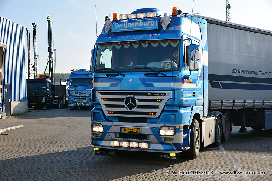 Im Fuhrpark sind zwei weitere neue Mercedes-Benz Actros 4 Euro 6. Einer davon stand vorne am Straßenrand, der andere (noch ganz neue) stand in der Werkstatt. Zur Zeit hat Swijnenburg 25 LKW, alle aus dem Hause Mercedes-Benz und alle aus der Actros-Baureihe von der ersten bis zur aktuellen vierten Generation sowie einen SK der ersten Generation, der zwischenzeitlich "restauriert" wurde und im Fuhrpark bleiben wird.