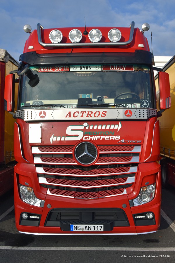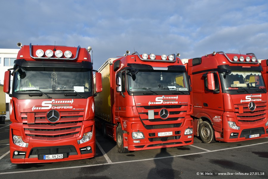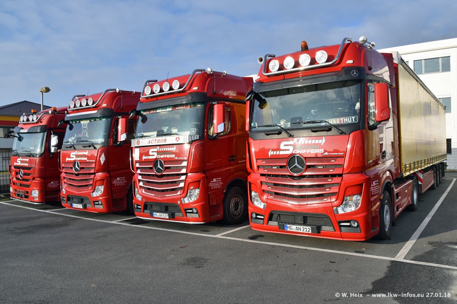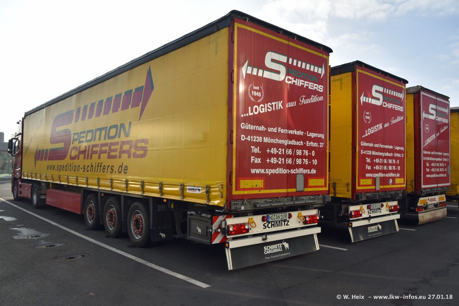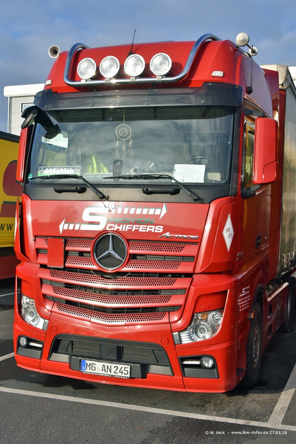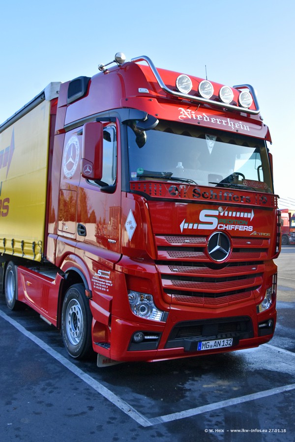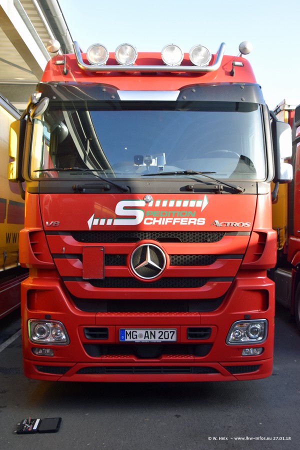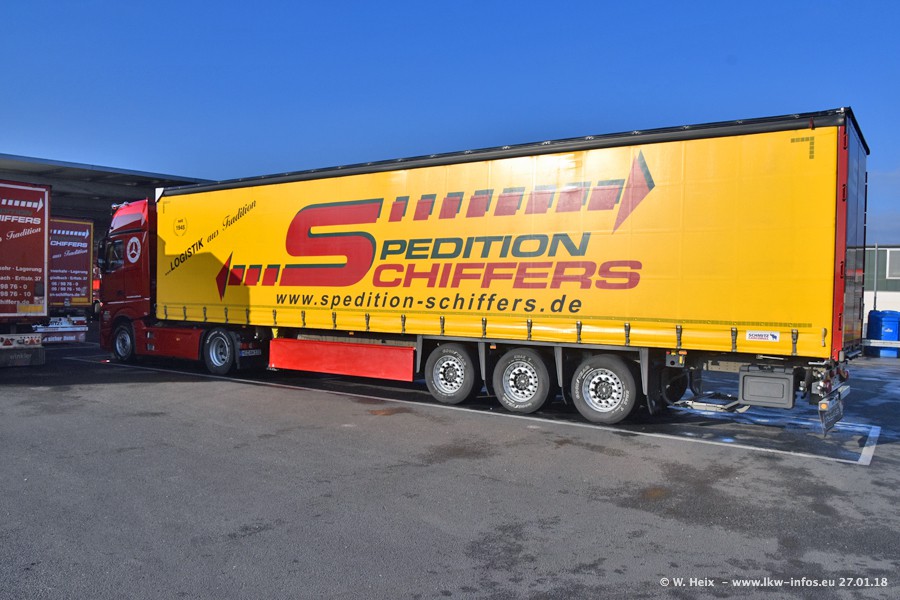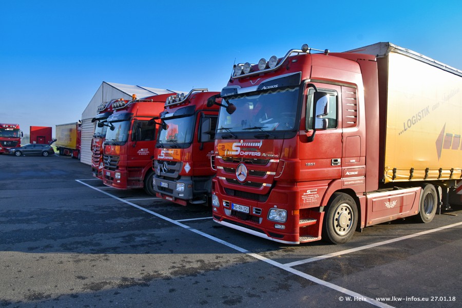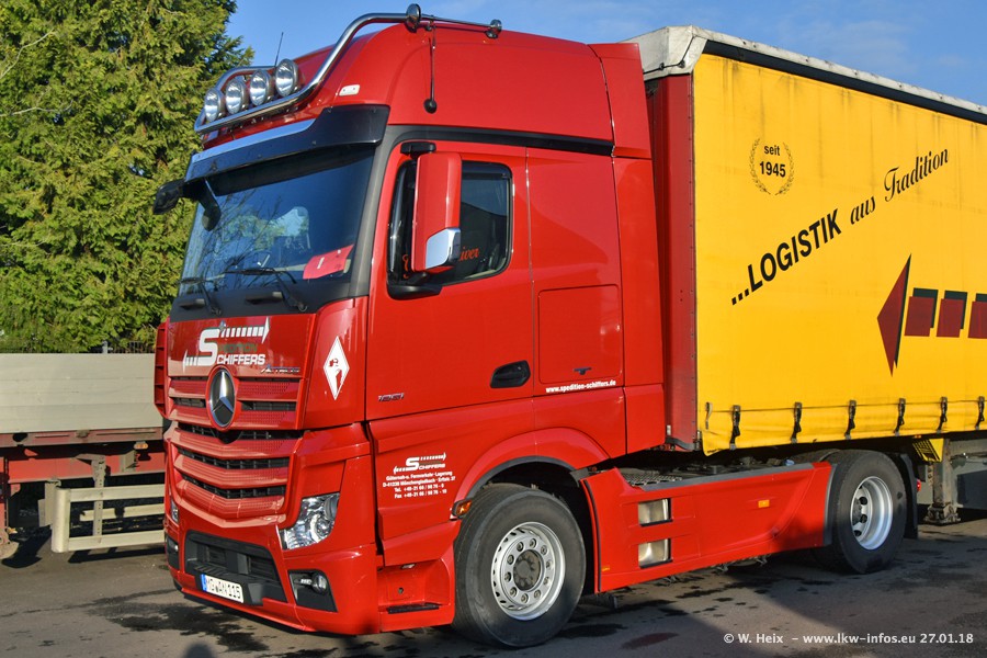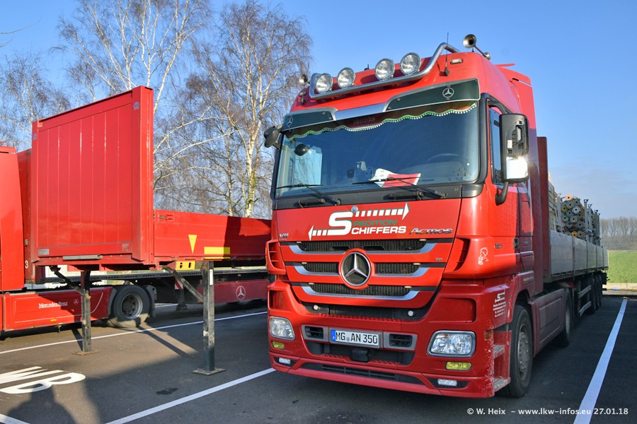 Heute war ich zum ersten Mal bei Schiffers in Mönchengladbach. Es gibt insgesamt 28 LKW, alle von Mercedes-Benz. Im Fernverkehr sind überwiegend Actros 4 im Einsatz. Im Nahverkehr werden überwiegend Mercedes-Benz der Baureihen Actros MP2 und Actros 3 eingesetzt.