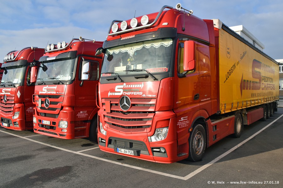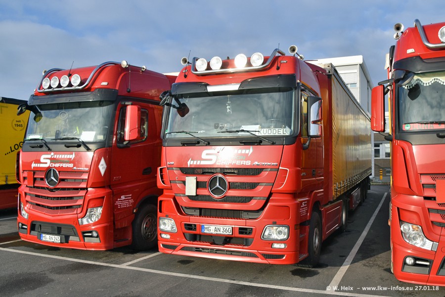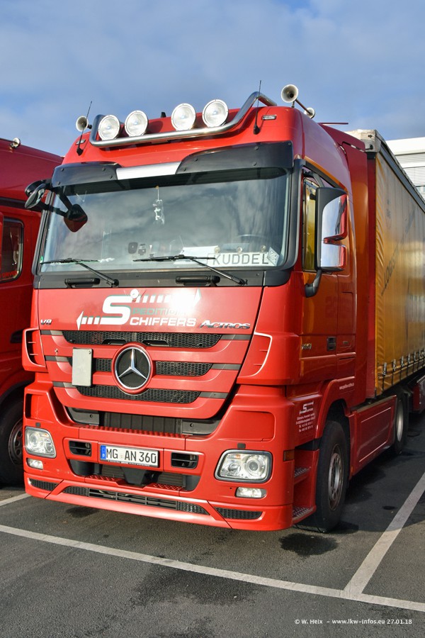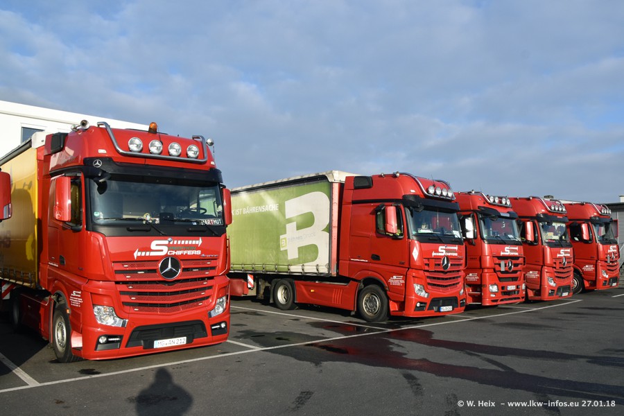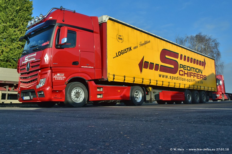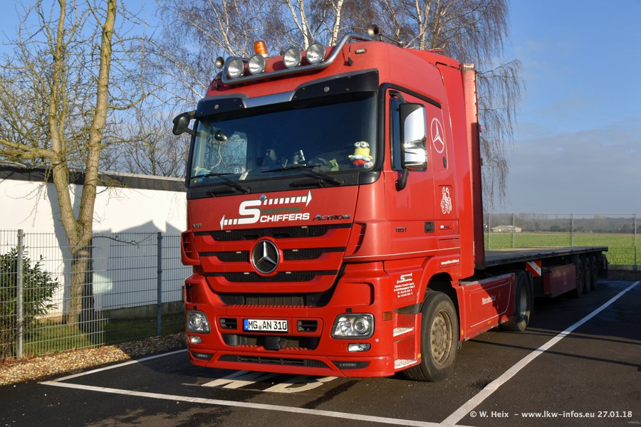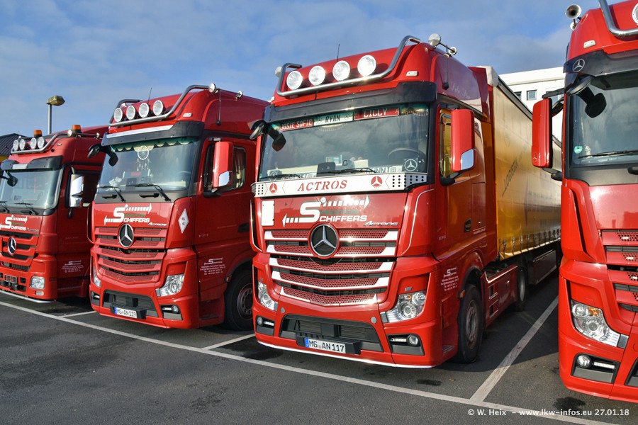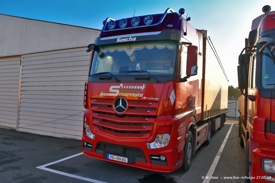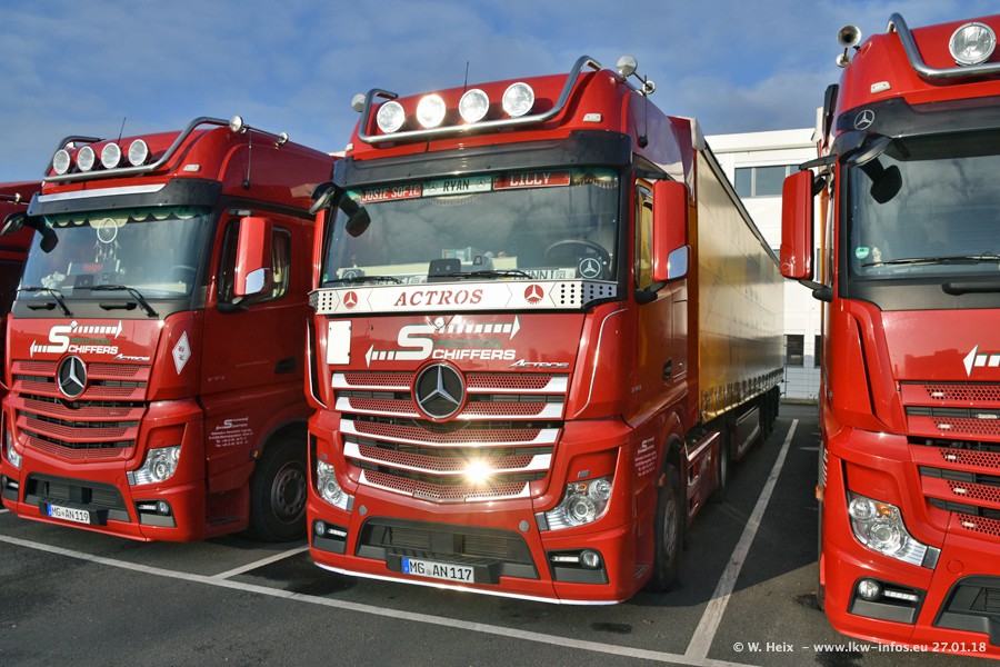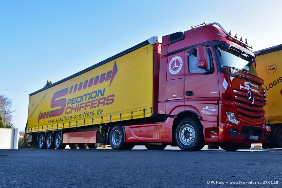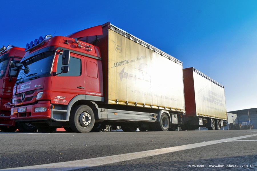 Heute war ich zum ersten Mal bei Schiffers in Mönchengladbach. Es gibt insgesamt 28 LKW, alle von Mercedes-Benz. Im Fernverkehr sind überwiegend Actros 4 im Einsatz. Im Nahverkehr werden überwiegend Mercedes-Benz der Baureihen Actros MP2 und Actros 3 eingesetzt.