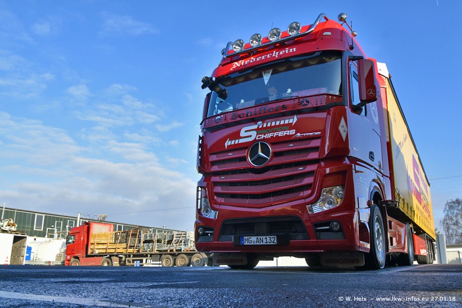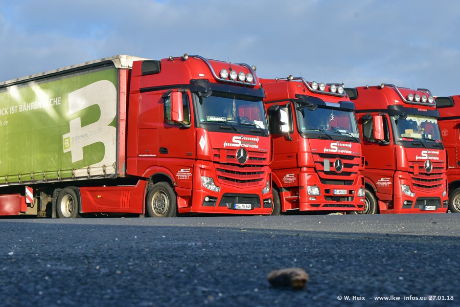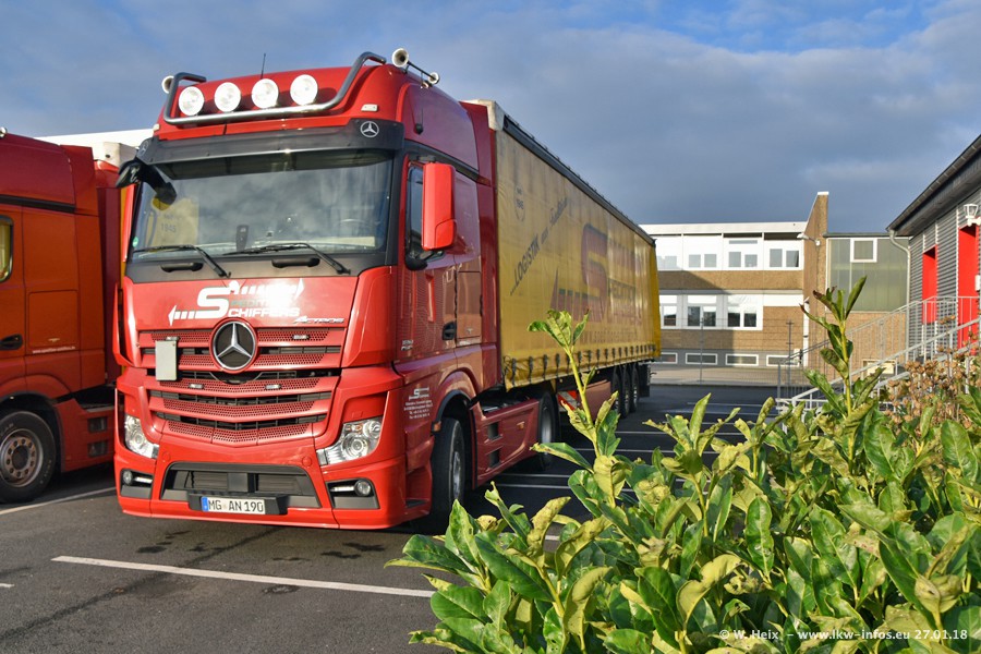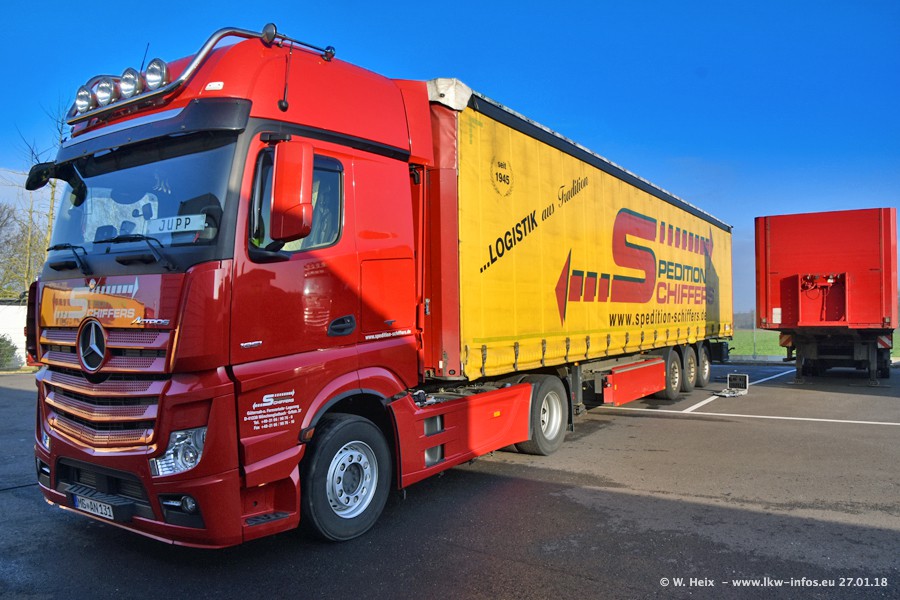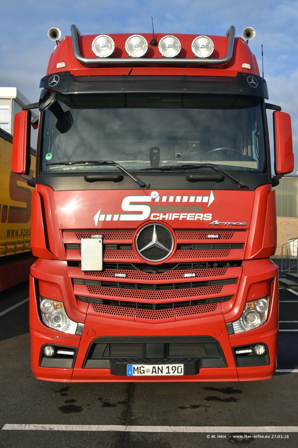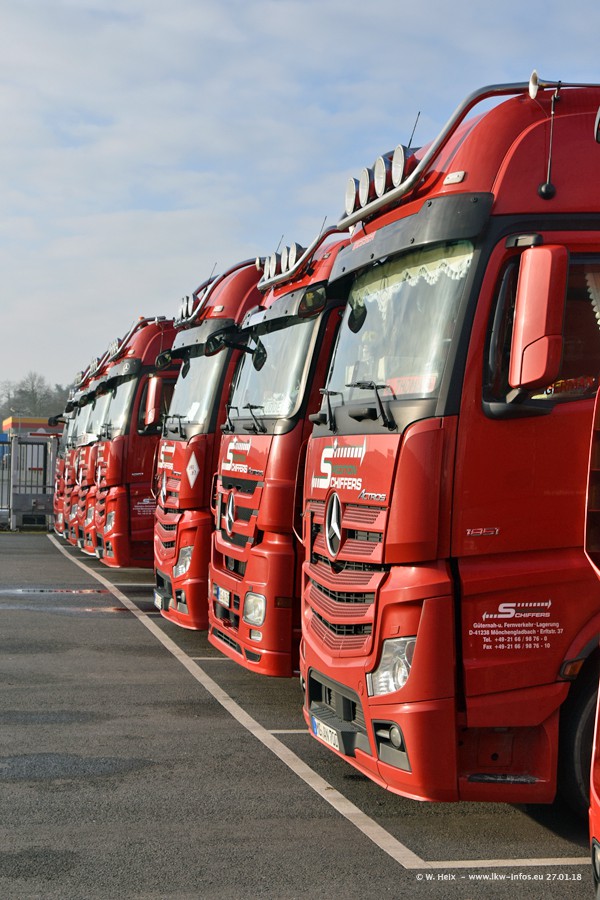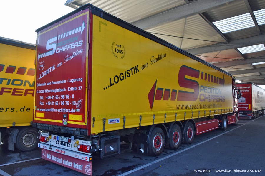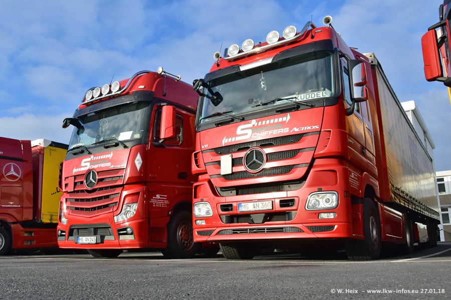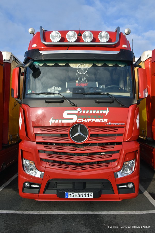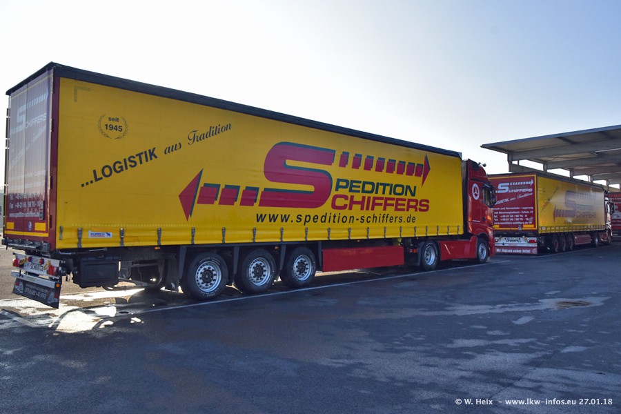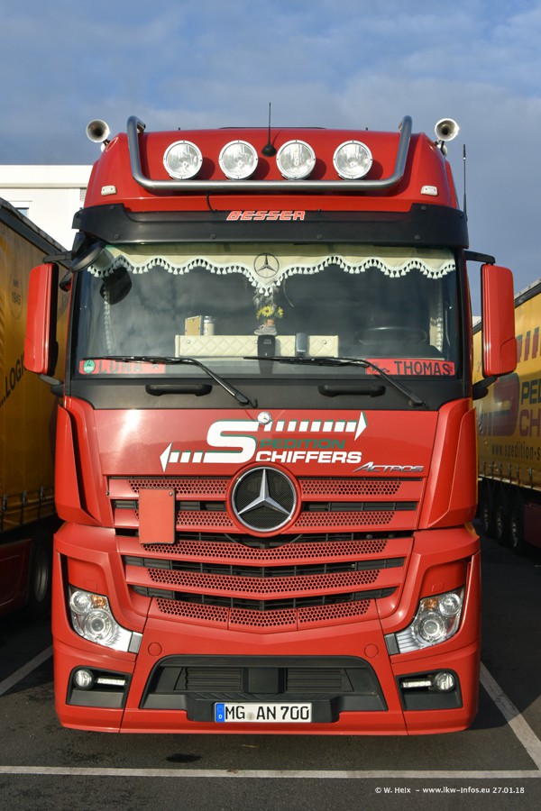 Heute war ich zum ersten Mal bei Schiffers in Mönchengladbach. Es gibt insgesamt 28 LKW, alle von Mercedes-Benz. Im Fernverkehr sind überwiegend Actros 4 im Einsatz. Im Nahverkehr werden überwiegend Mercedes-Benz der Baureihen Actros MP2 und Actros 3 eingesetzt.