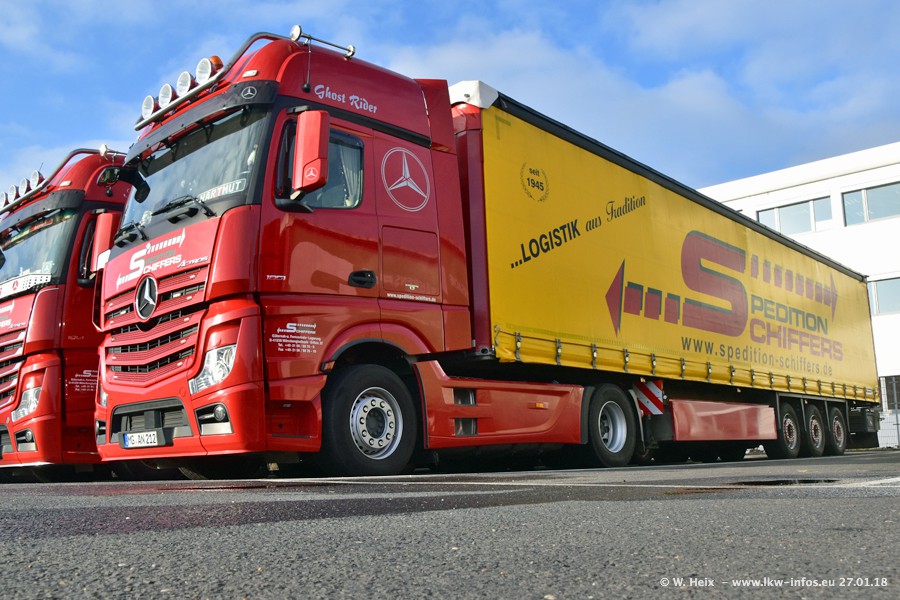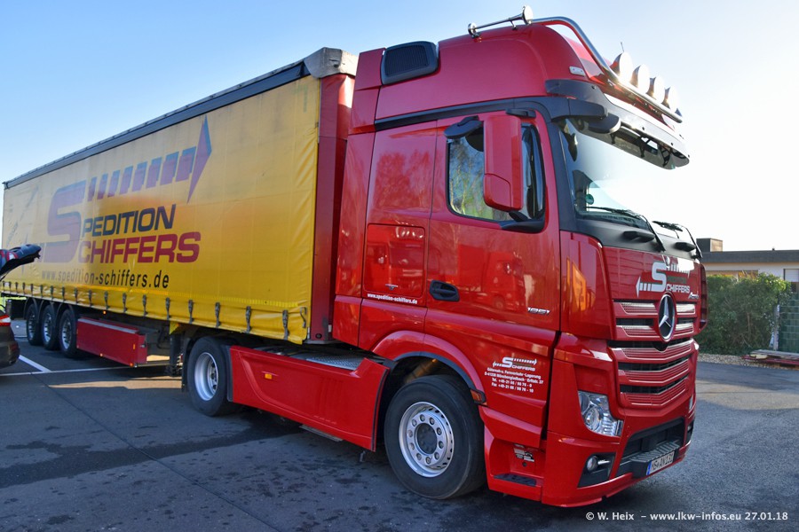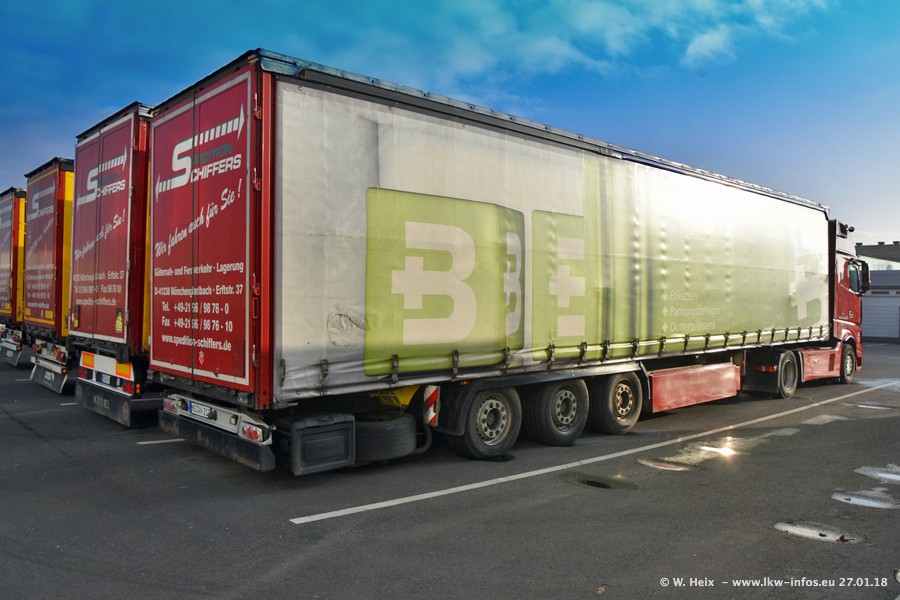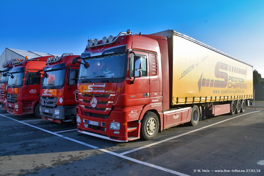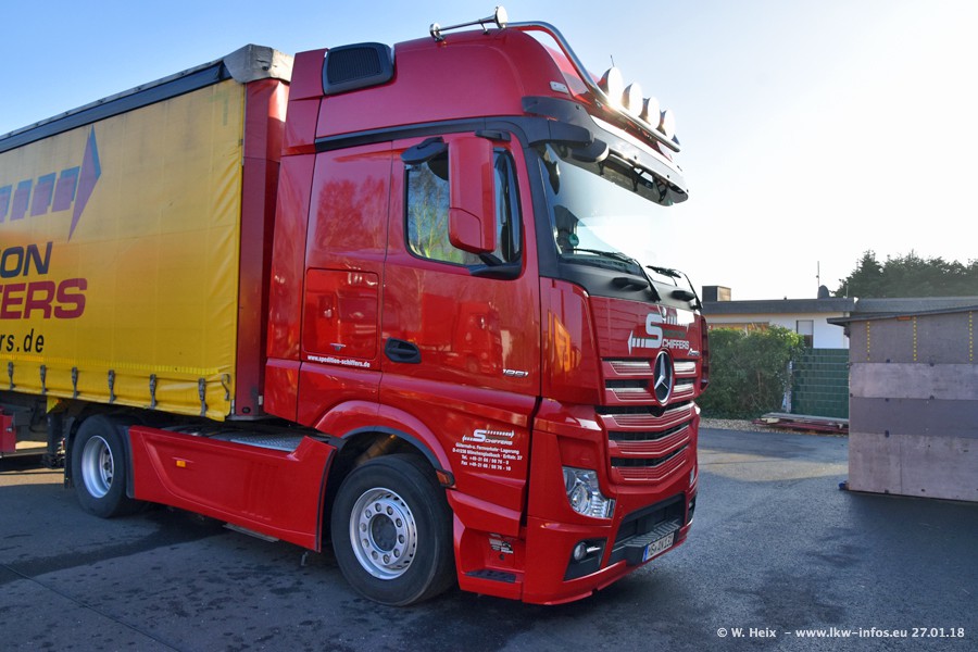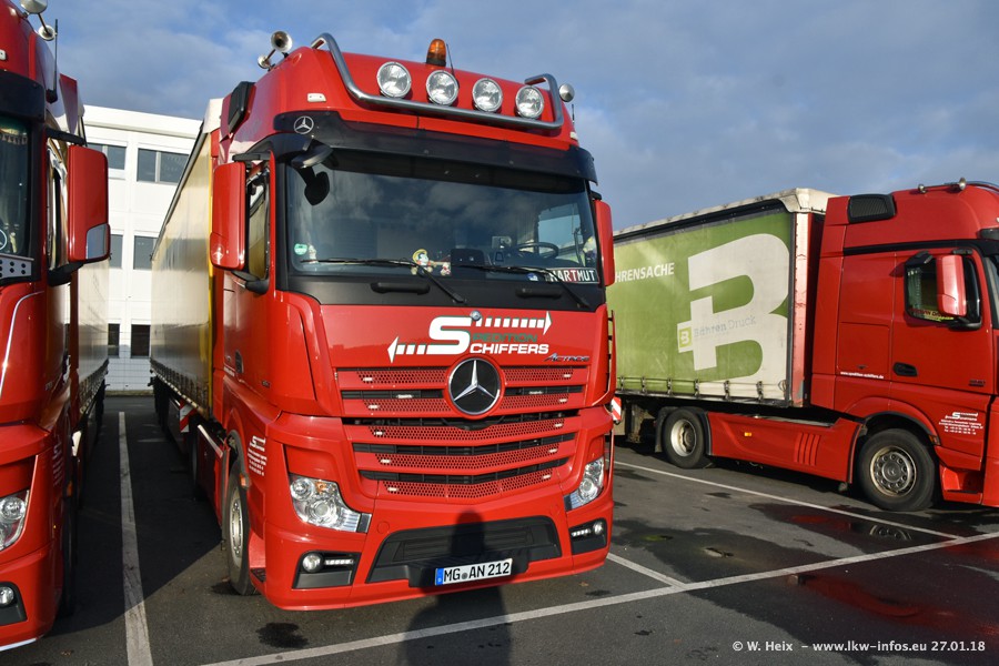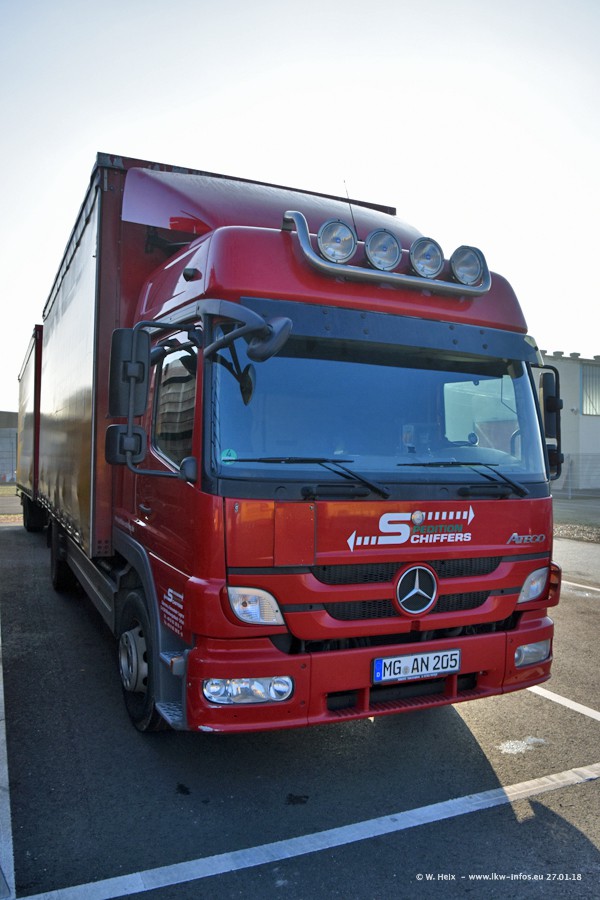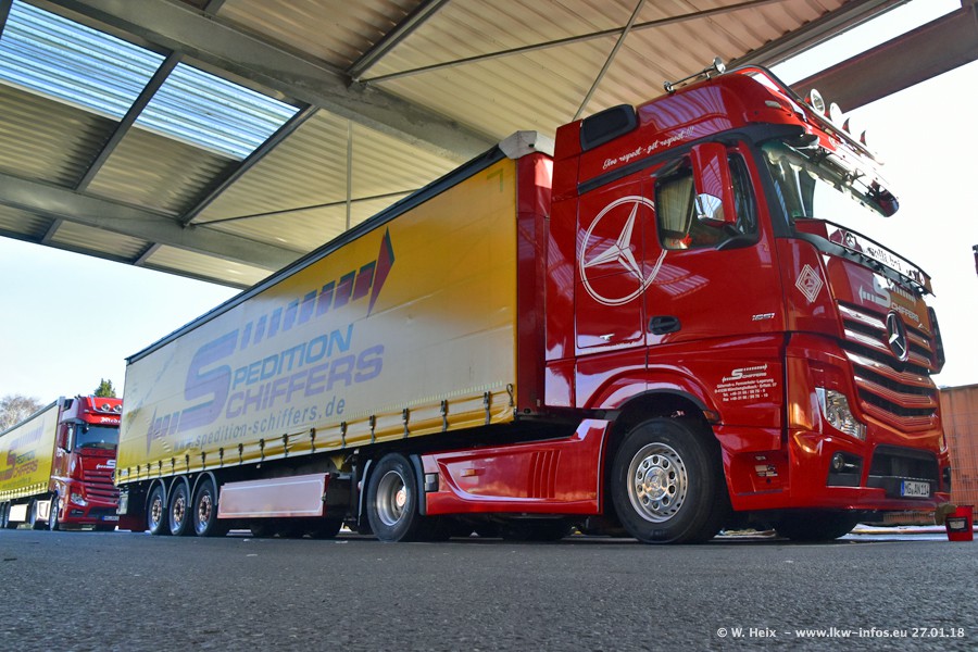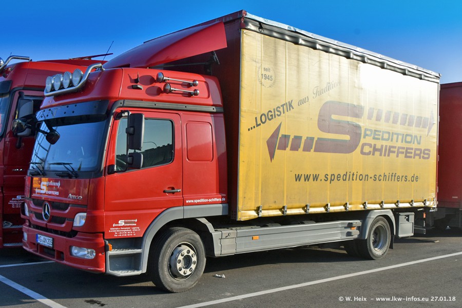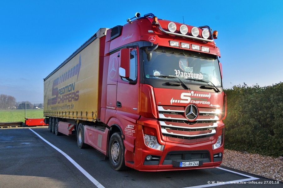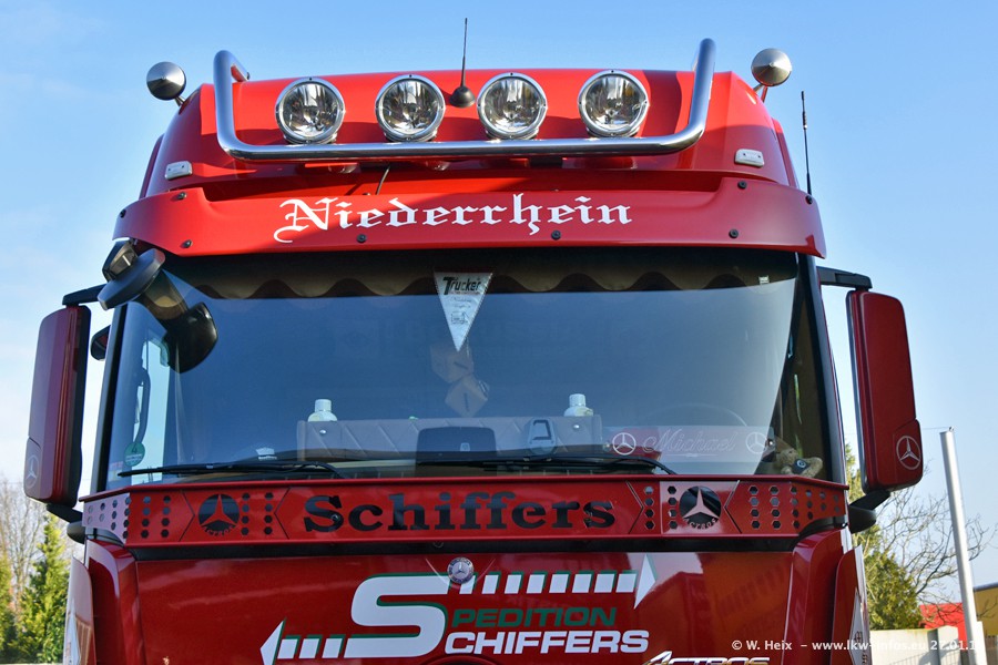 Heute war ich zum ersten Mal bei Schiffers in Mönchengladbach. Es gibt insgesamt 28 LKW, alle von Mercedes-Benz. Im Fernverkehr sind überwiegend Actros 4 im Einsatz. Im Nahverkehr werden überwiegend Mercedes-Benz der Baureihen Actros MP2 und Actros 3 eingesetzt.