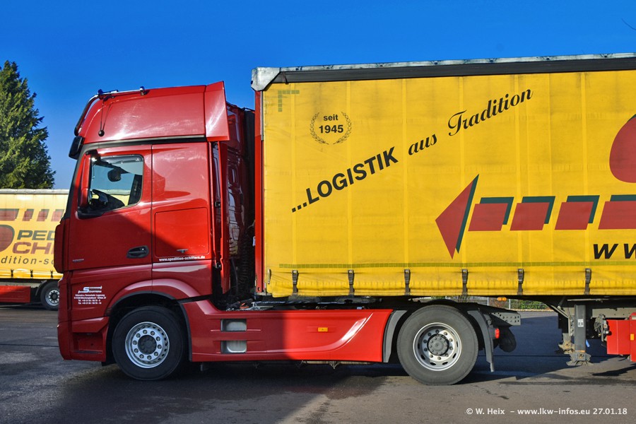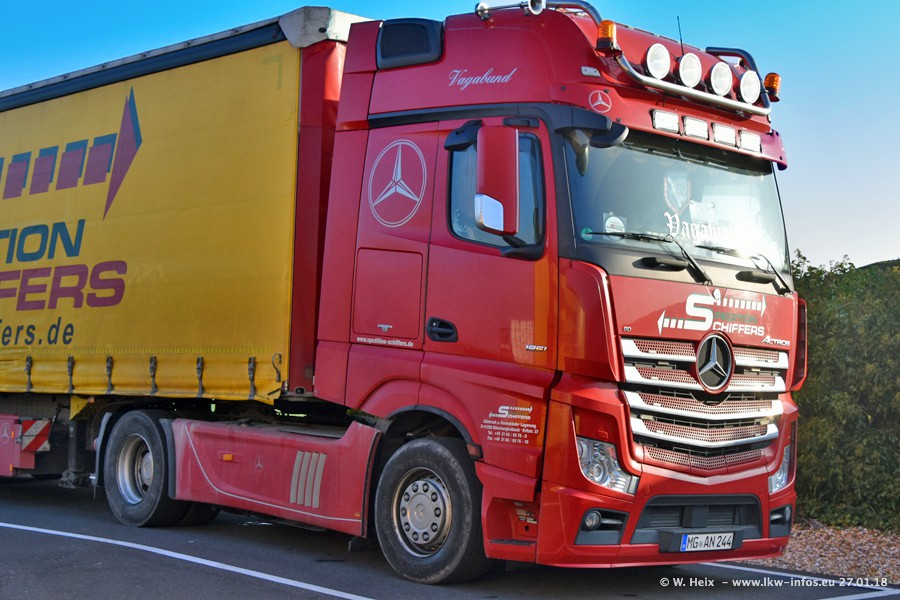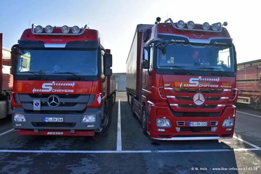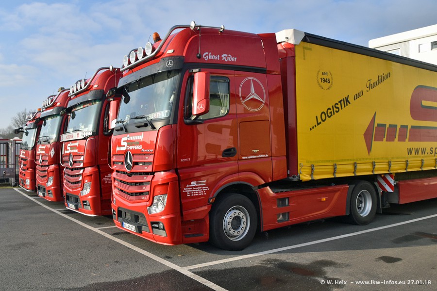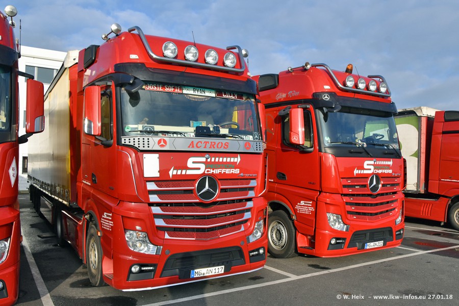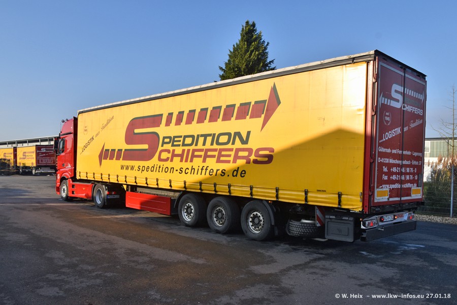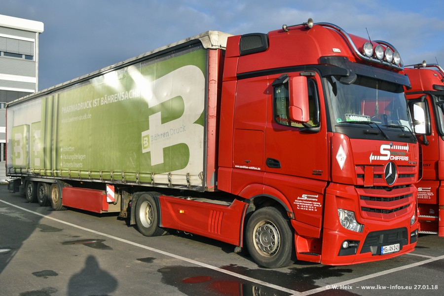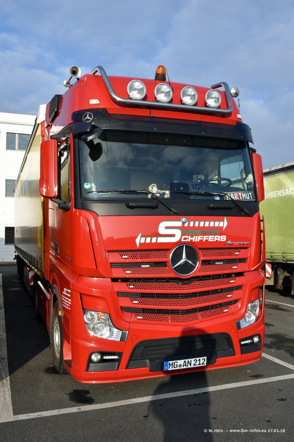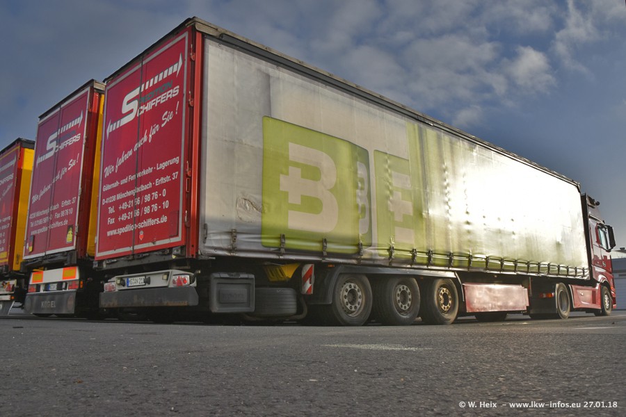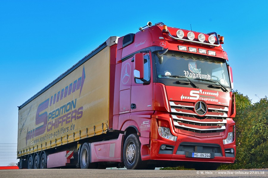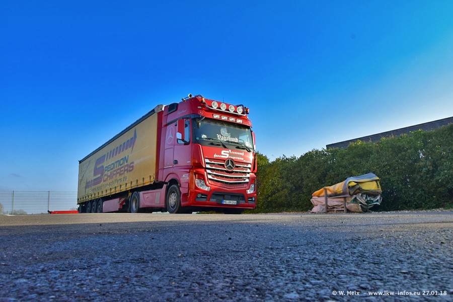 Heute war ich zum ersten Mal bei Schiffers in Mönchengladbach. Es gibt insgesamt 28 LKW, alle von Mercedes-Benz. Im Fernverkehr sind überwiegend Actros 4 im Einsatz. Im Nahverkehr werden überwiegend Mercedes-Benz der Baureihen Actros MP2 und Actros 3 eingesetzt.