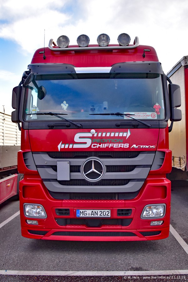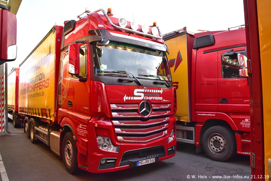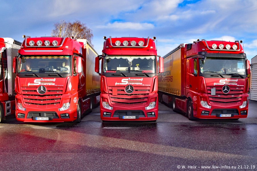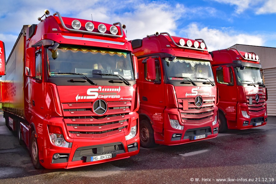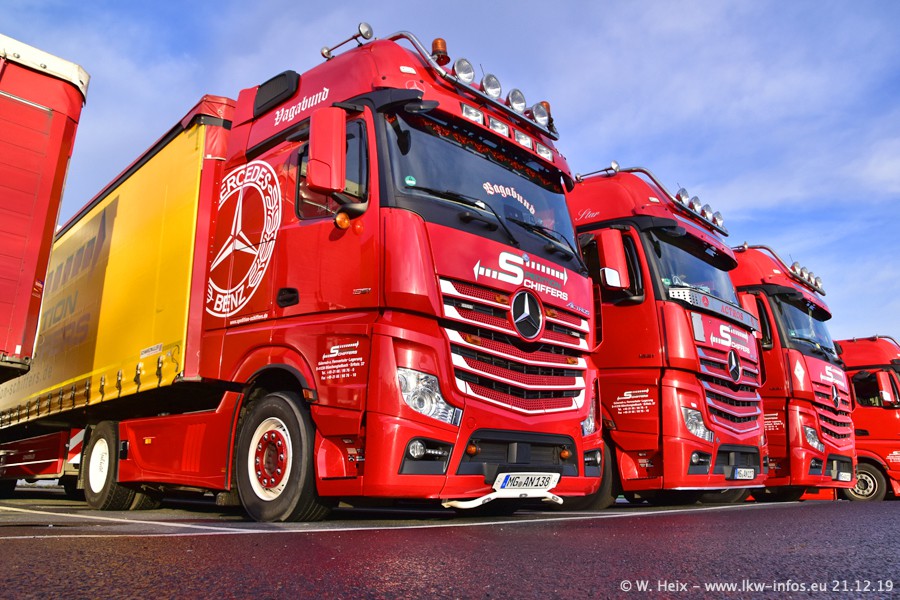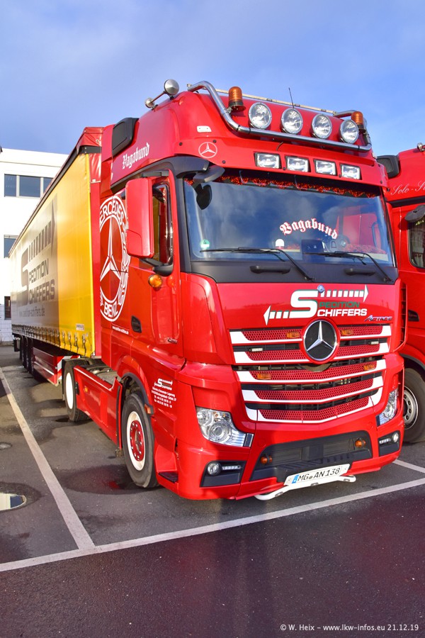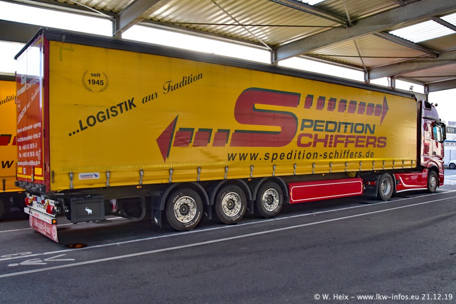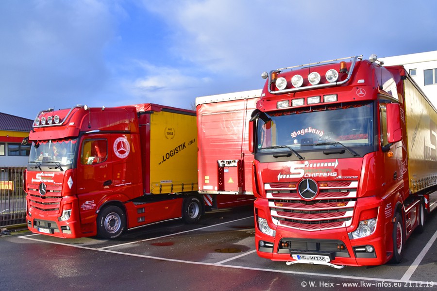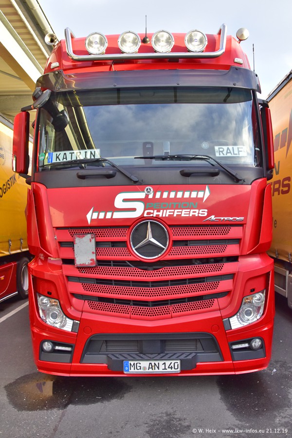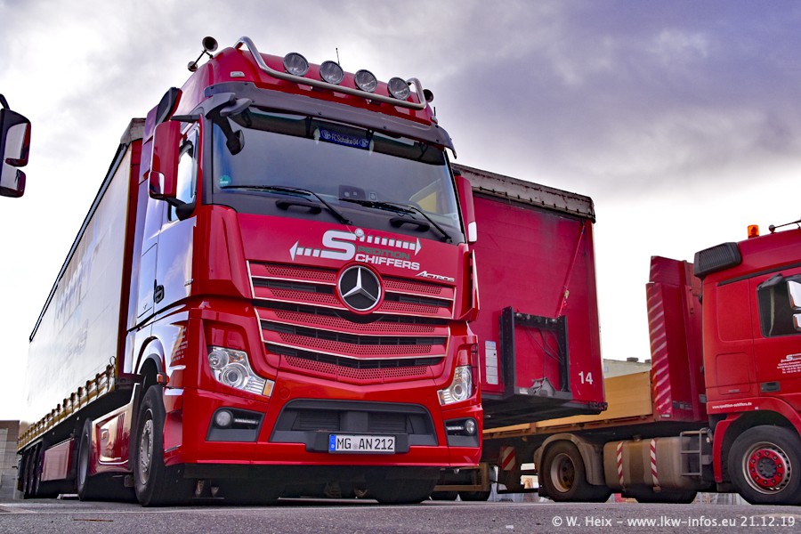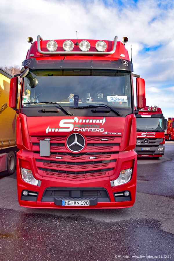 Dies war mein erster "Weihnachtsbesuch" bei Schiffers. Da die Feiertage in diesem Jahr so fallen, dass nur noch der Montag (23.12.) ein Arbeistag ist, haben schon viele Firmen ab dem 21.12. ihren Weihnachtsurlaub und bis Anfang Januar geschlossen. Und entsprechend hatte ich Glück, denn der gesamte Fuhrpark ist über Weihnachten zuhause in Mönchengladbach. Es gibt seit einigen Wochen den ersten Mercedes-Benz New Actros 4 (ohne Spiegel) im Fuhrpark. Der nächste kommt Anfang 2020.