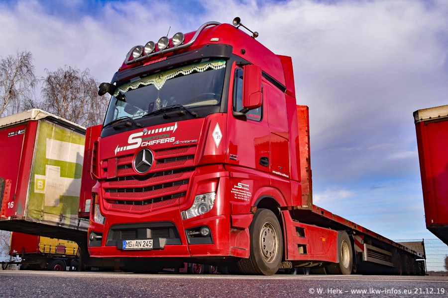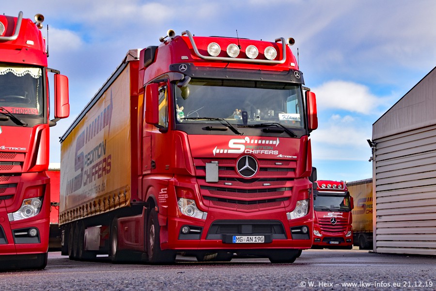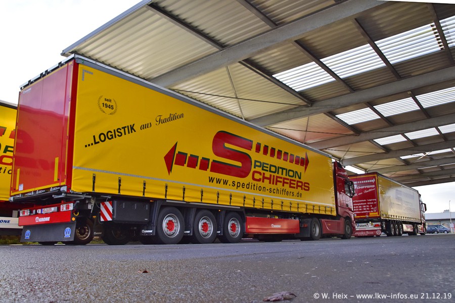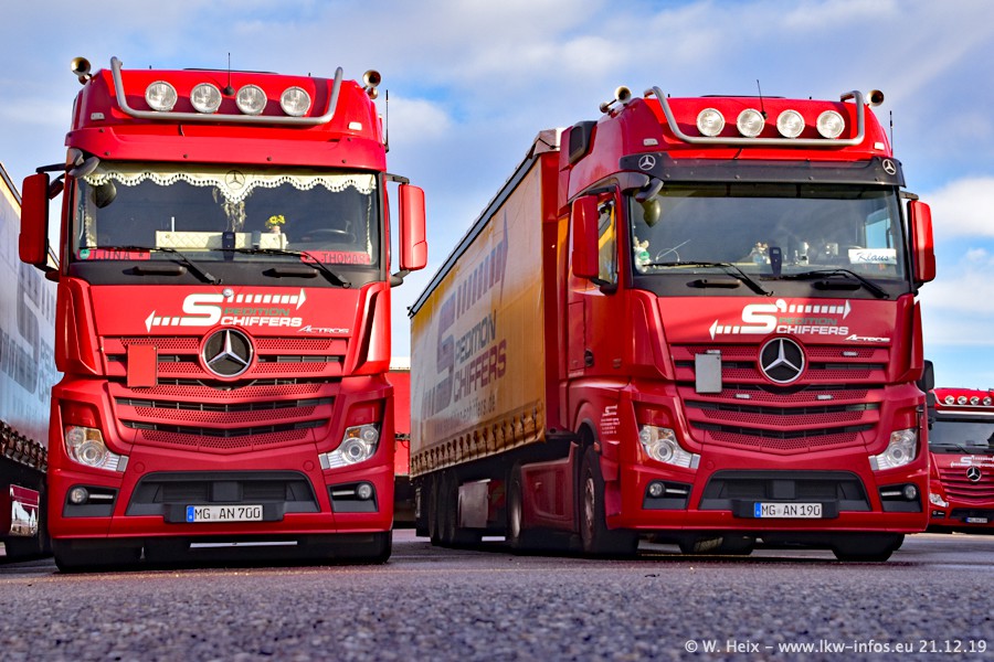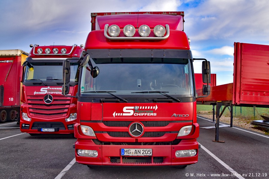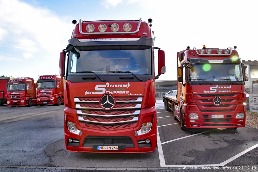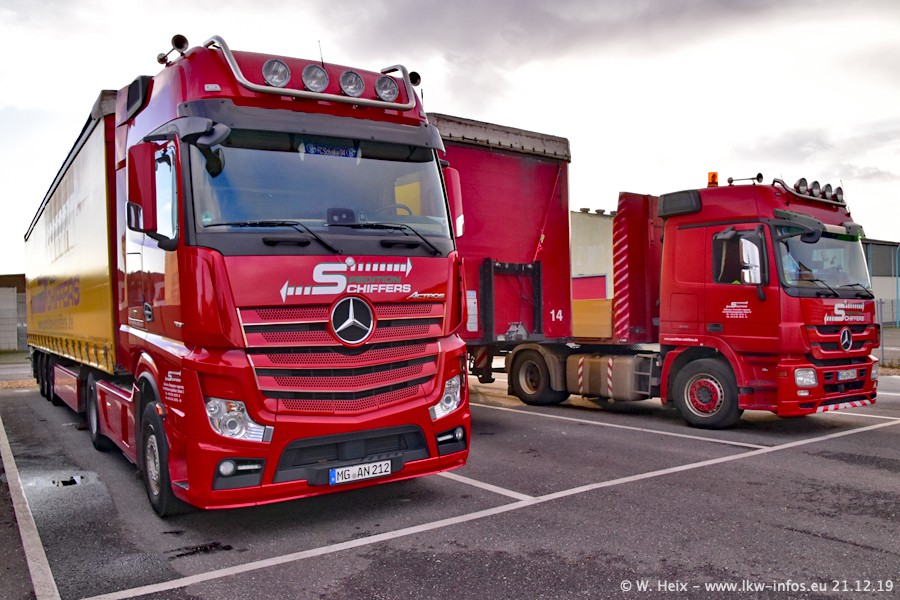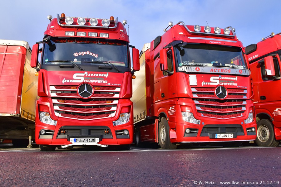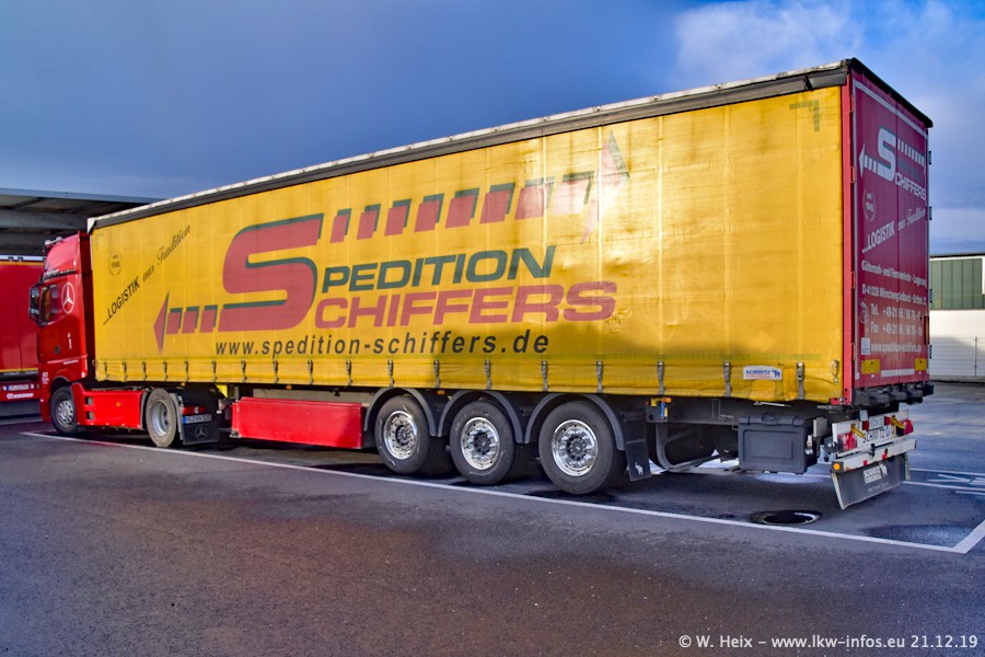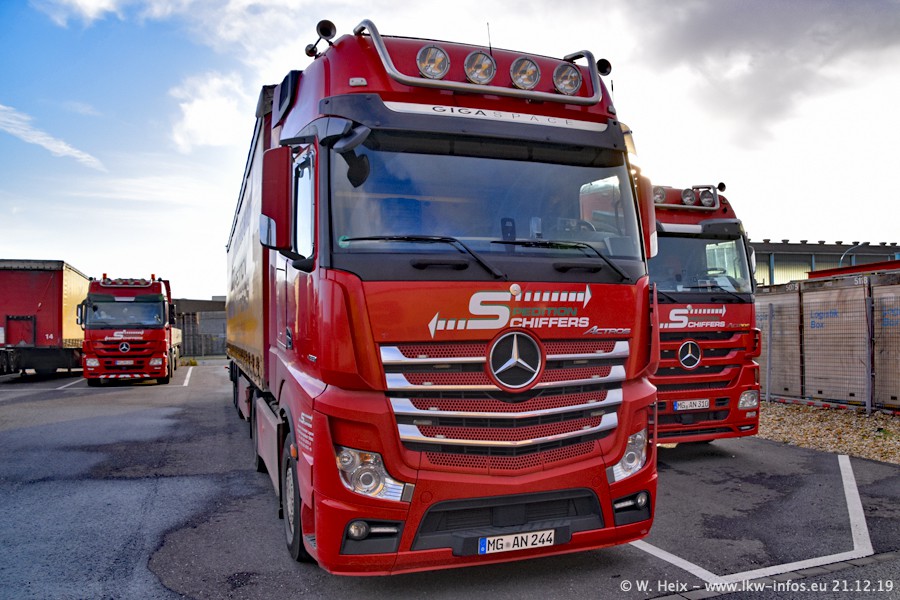 Dies war mein erster "Weihnachtsbesuch" bei Schiffers. Da die Feiertage in diesem Jahr so fallen, dass nur noch der Montag (23.12.) ein Arbeistag ist, haben schon viele Firmen ab dem 21.12. ihren Weihnachtsurlaub und bis Anfang Januar geschlossen. Und entsprechend hatte ich Glück, denn der gesamte Fuhrpark ist über Weihnachten zuhause in Mönchengladbach. Es gibt seit einigen Wochen den ersten Mercedes-Benz New Actros 4 (ohne Spiegel) im Fuhrpark. Der nächste kommt Anfang 2020.