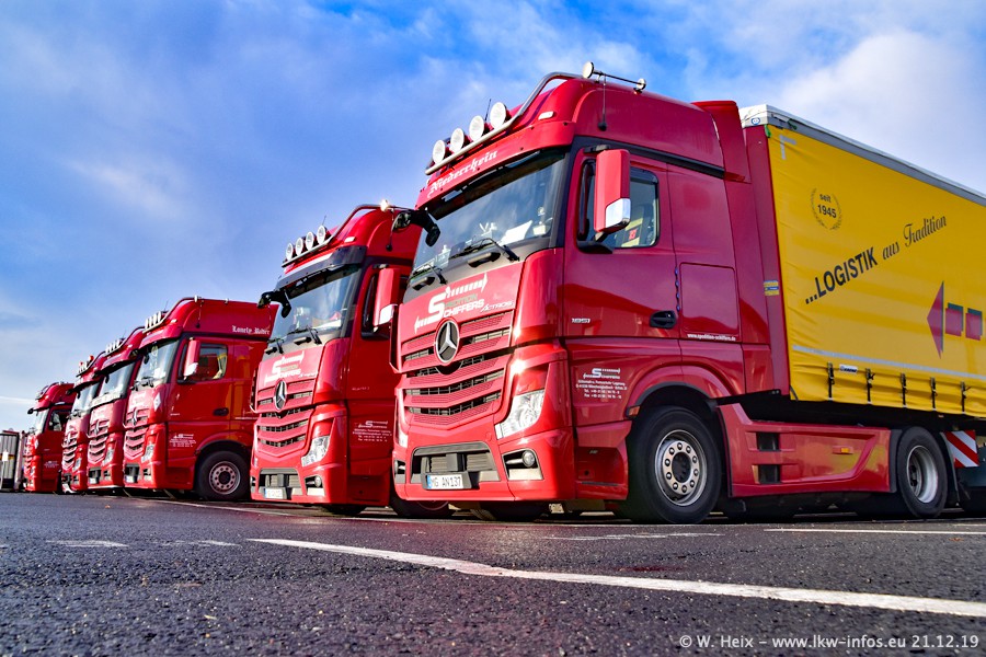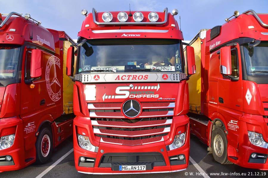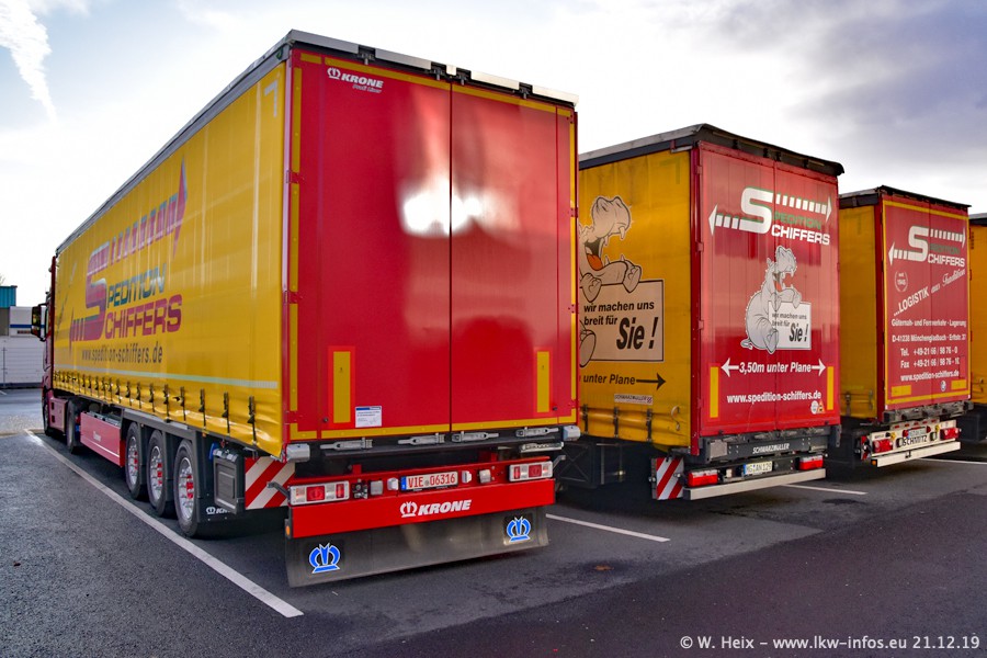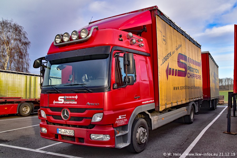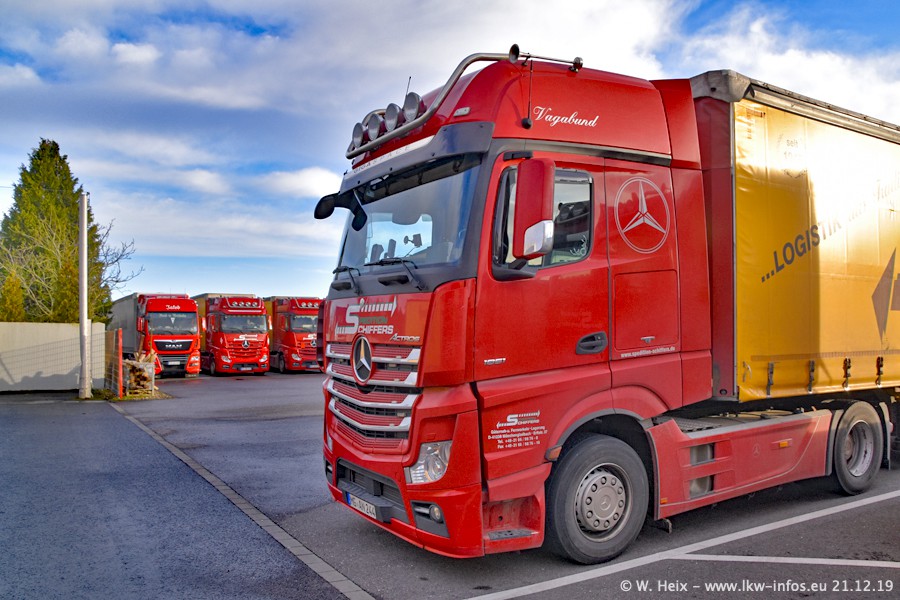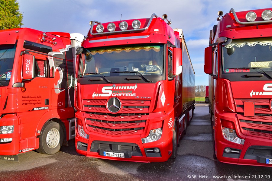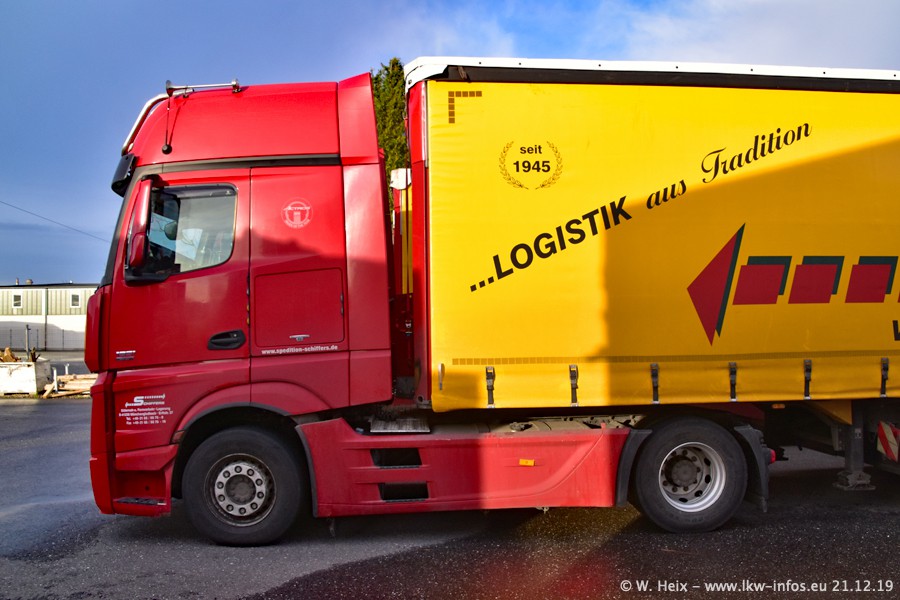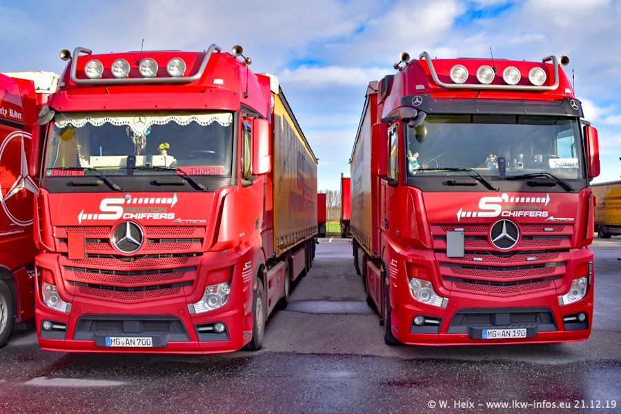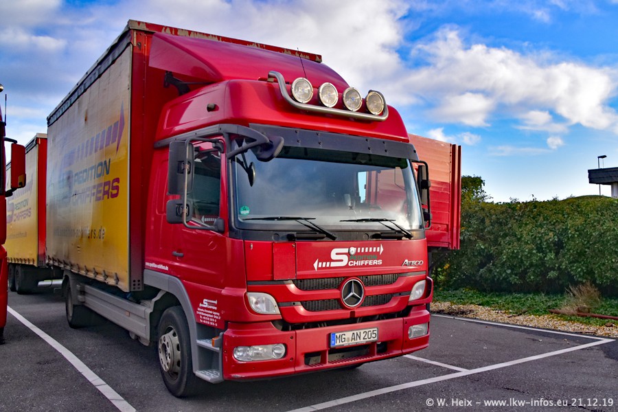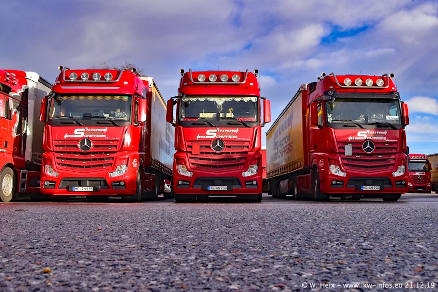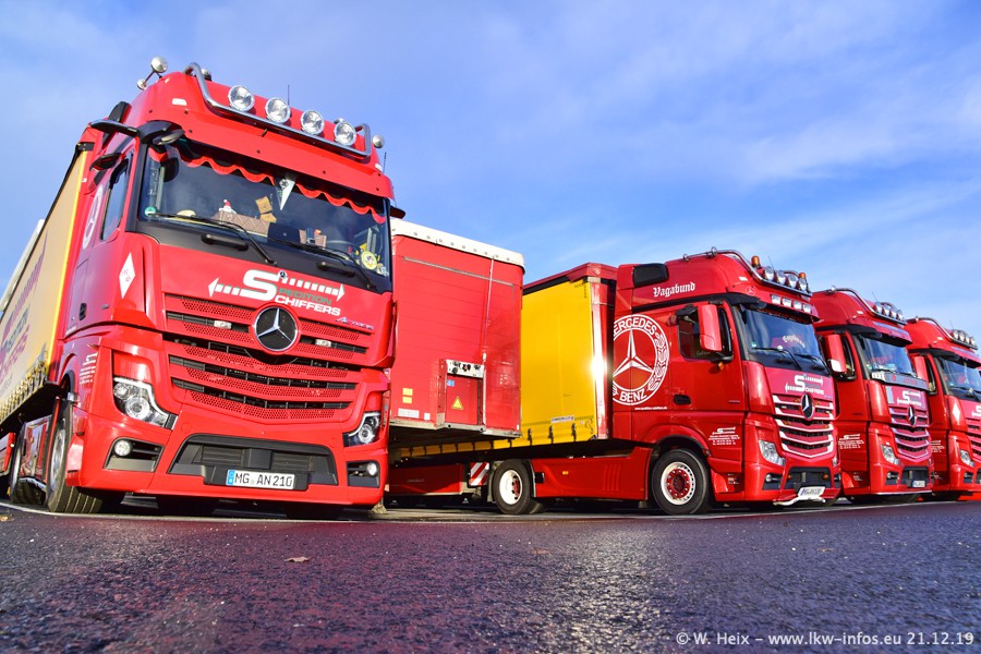 Dies war mein erster "Weihnachtsbesuch" bei Schiffers. Da die Feiertage in diesem Jahr so fallen, dass nur noch der Montag (23.12.) ein Arbeistag ist, haben schon viele Firmen ab dem 21.12. ihren Weihnachtsurlaub und bis Anfang Januar geschlossen. Und entsprechend hatte ich Glück, denn der gesamte Fuhrpark ist über Weihnachten zuhause in Mönchengladbach. Es gibt seit einigen Wochen den ersten Mercedes-Benz New Actros 4 (ohne Spiegel) im Fuhrpark. Der nächste kommt Anfang 2020.