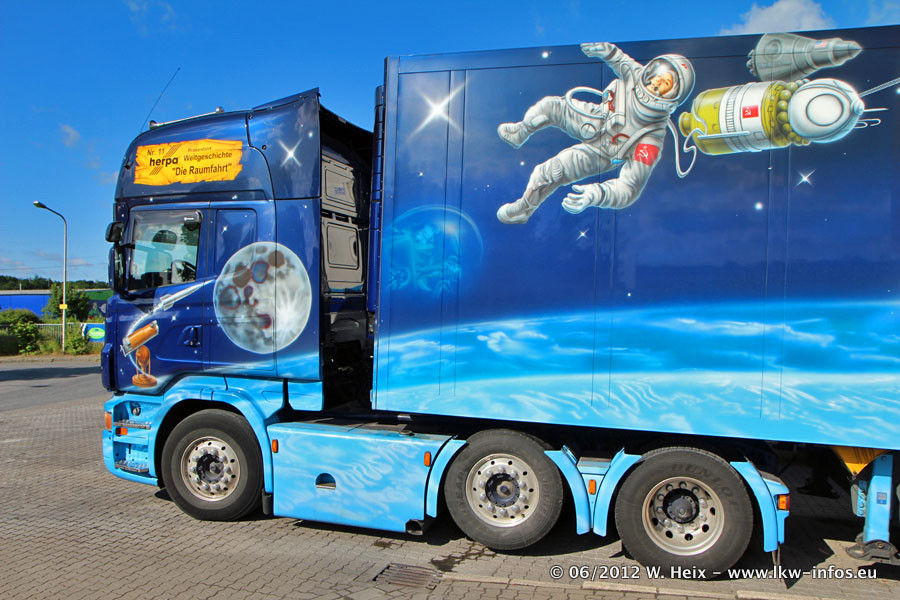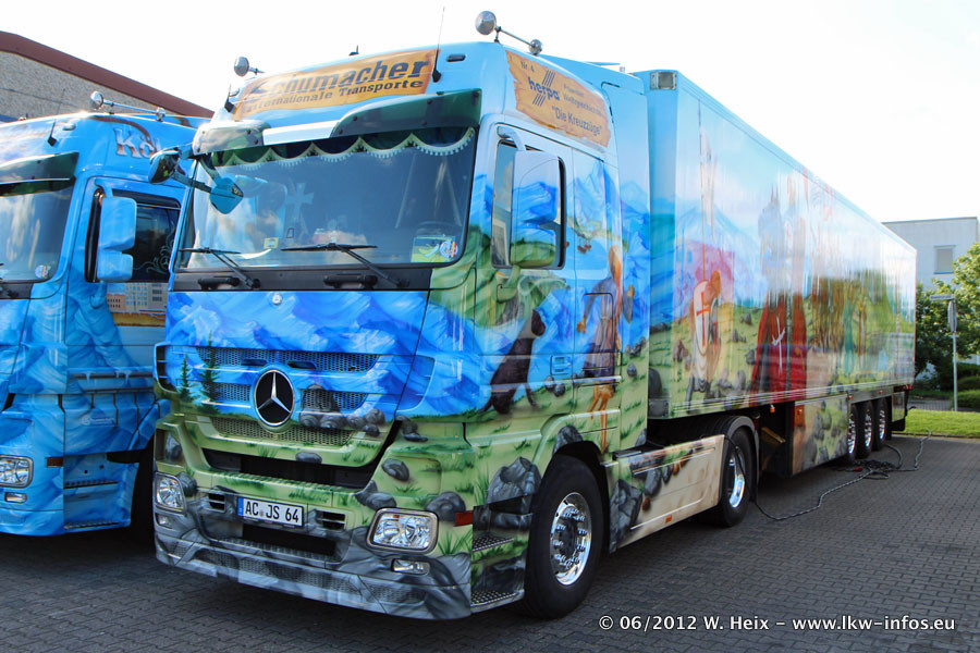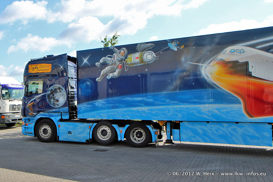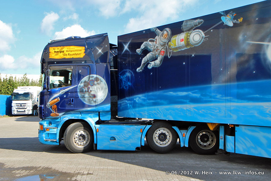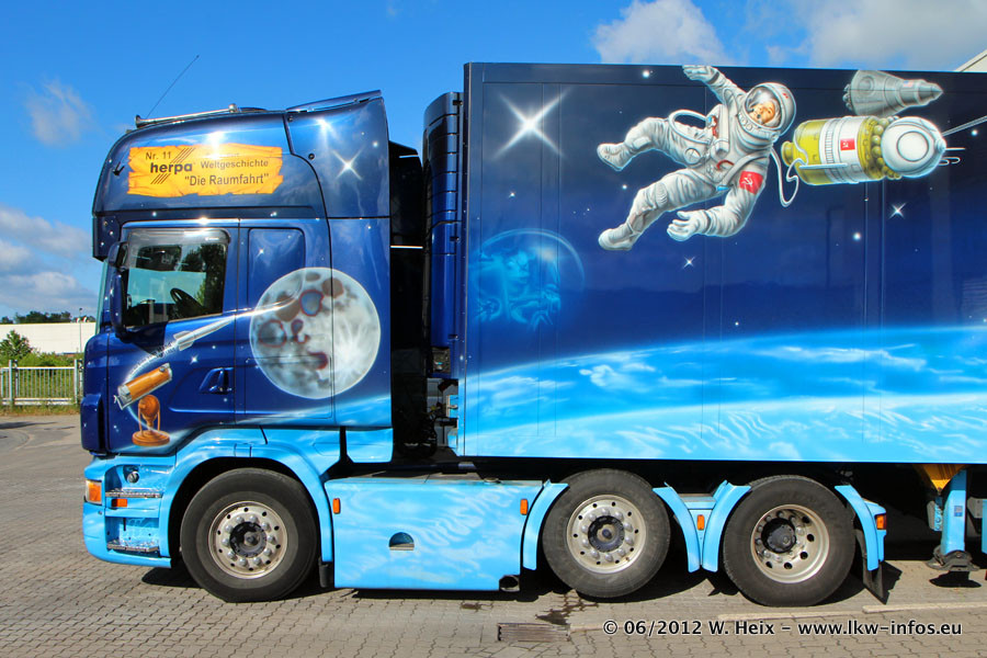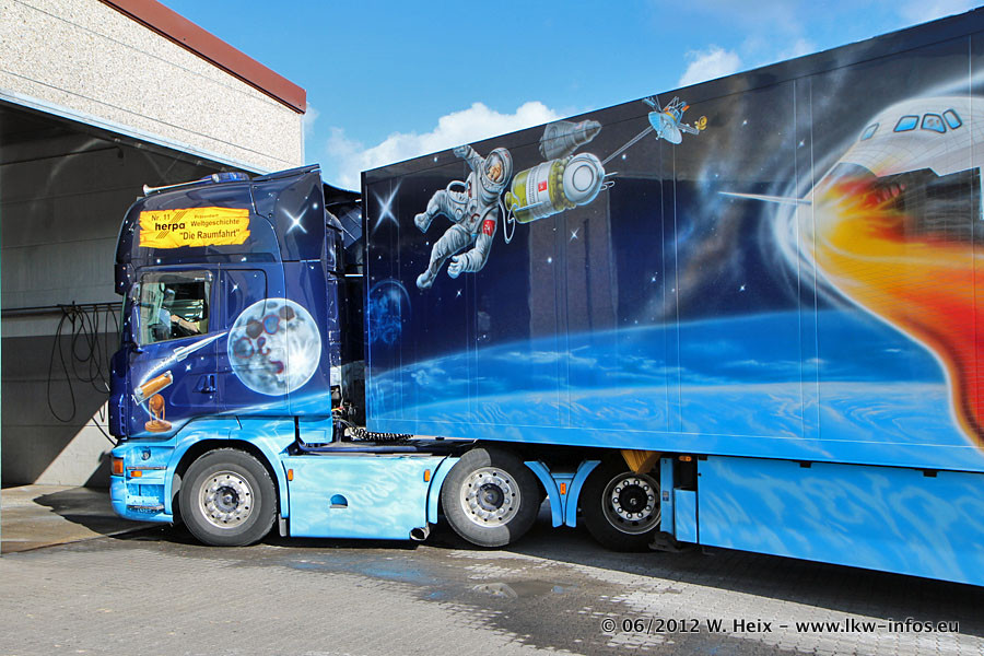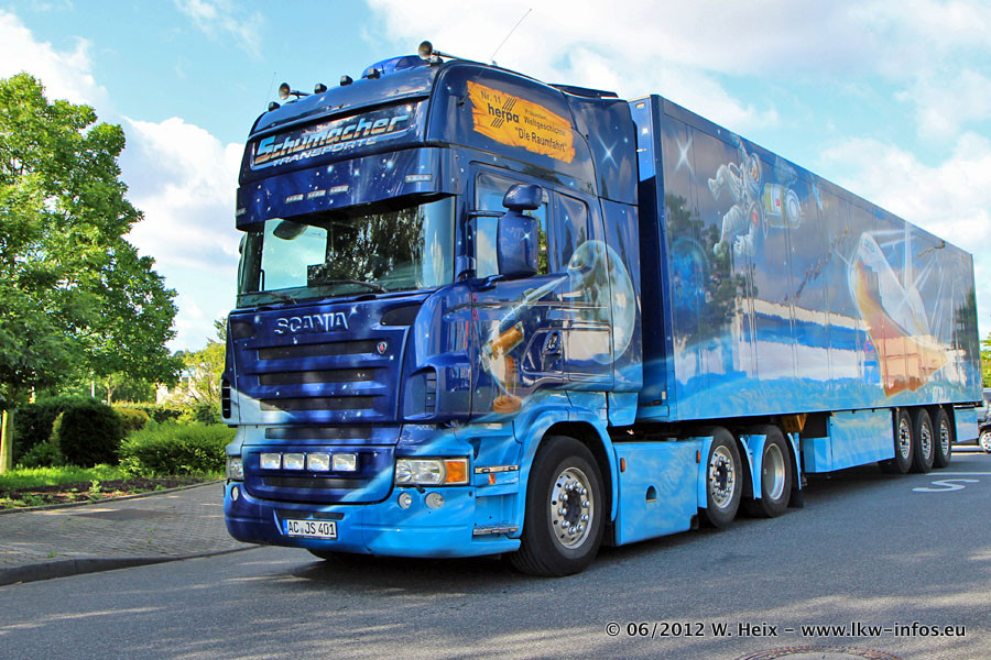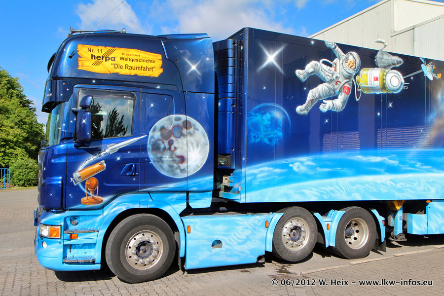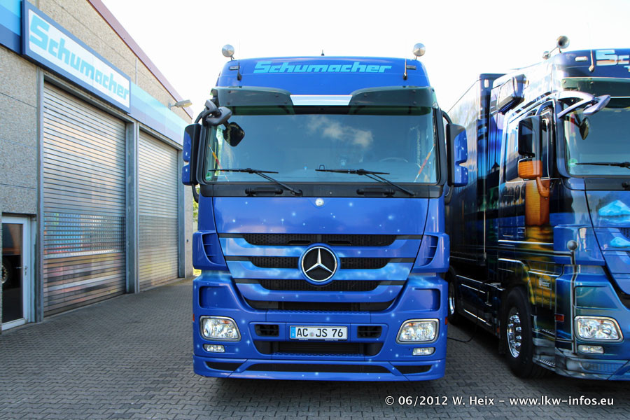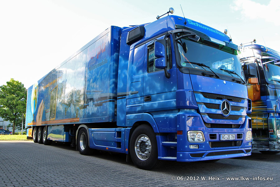 Der Mercedes-Benz Actros 4 Showtruck "Herpa präsentiert Weltgeschichte Nr. 13 - Sternbilder und Sternzeichen" ist seit eingein Wochen neu im Fuhrpark und gleichzeitig auch der erste Actros 4 bei Schumacher.