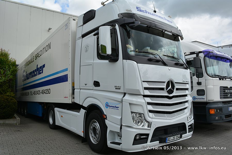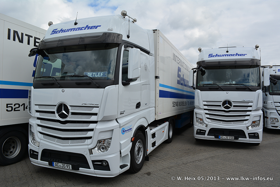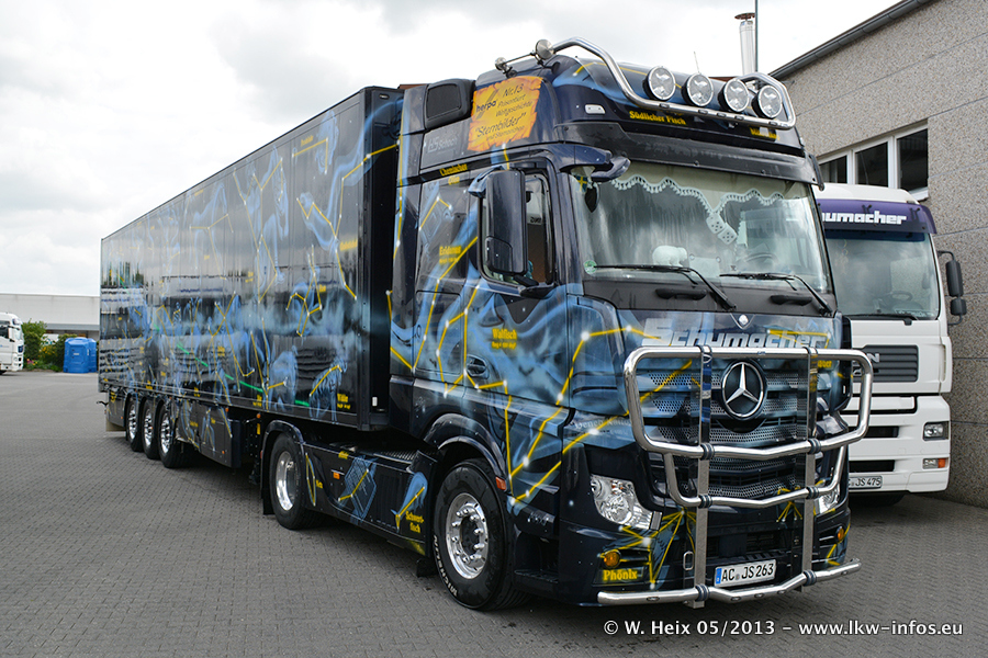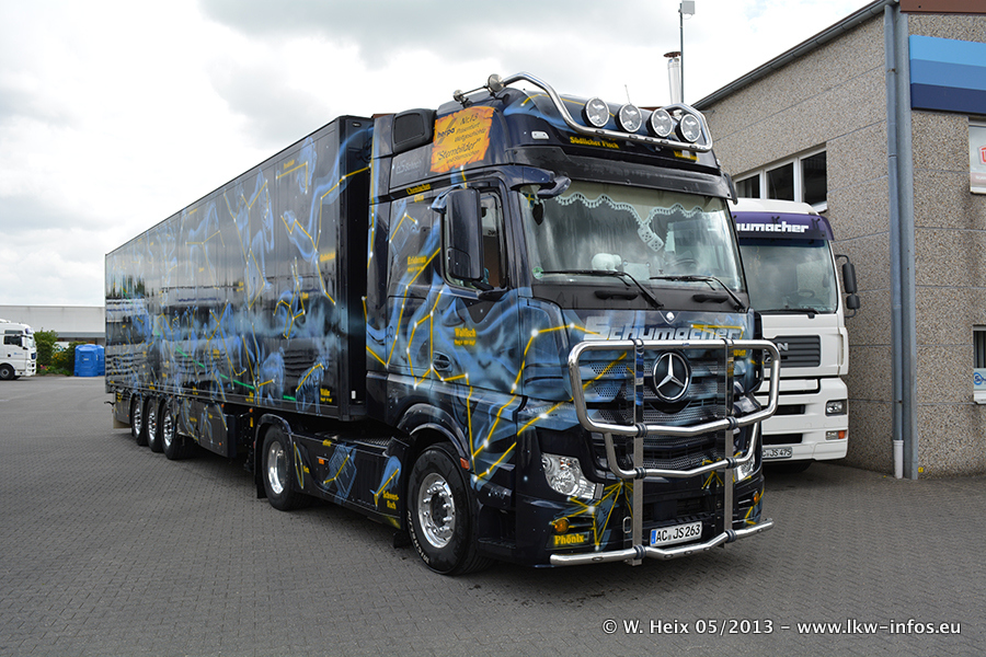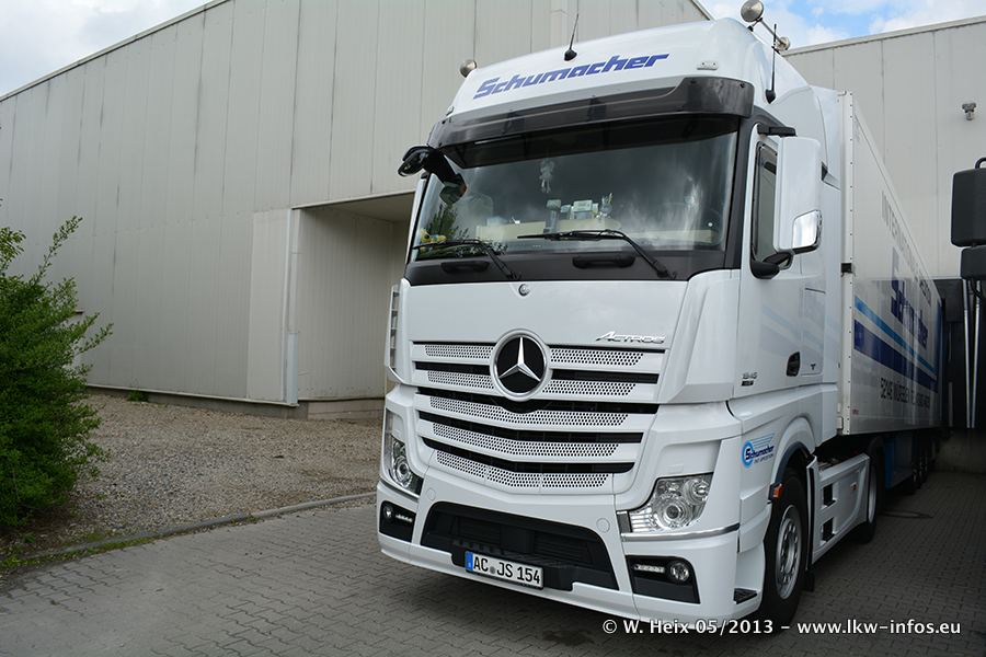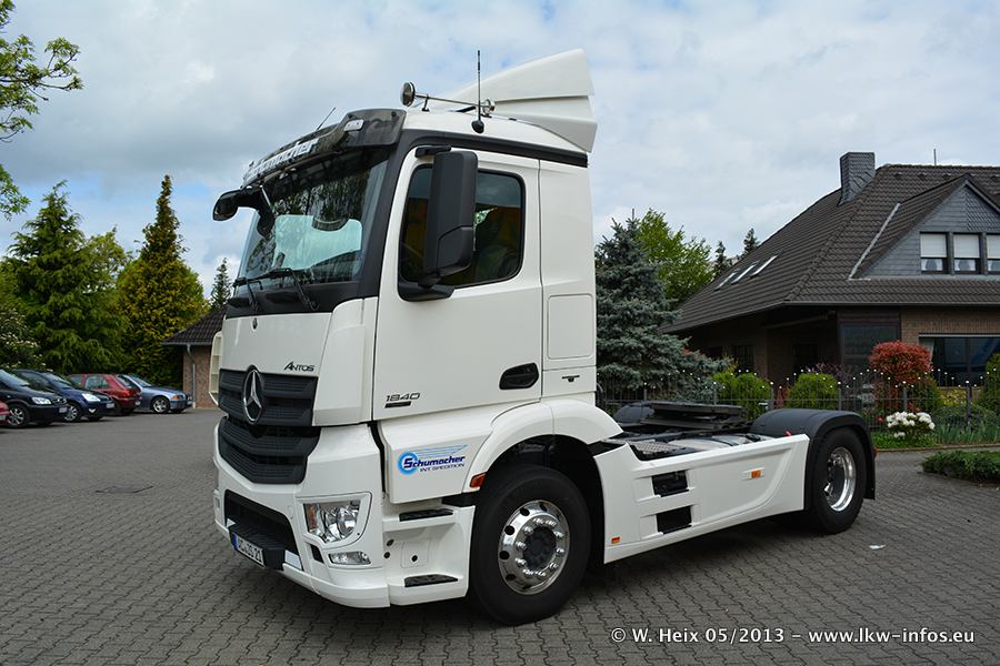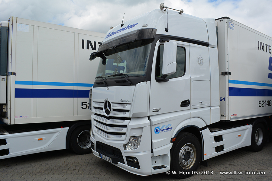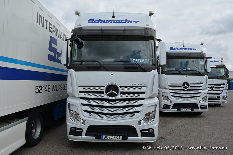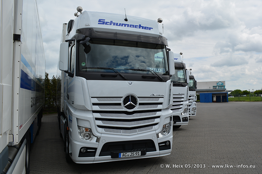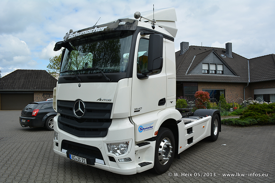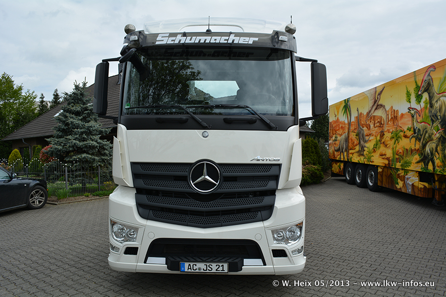 Nun gibt es auch den ersten Merceddes-Benz Antos bei Schumacher. Dazu kommen mehrere neue weiße Actros 4 und es gibt den zweisten Showtruck mit Actros 4 Zugmaschine. Hiier wurde aber "nur" die Zugmaschine durch eine neue ersetzt.