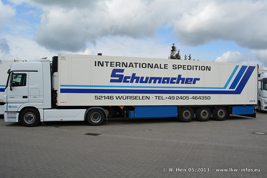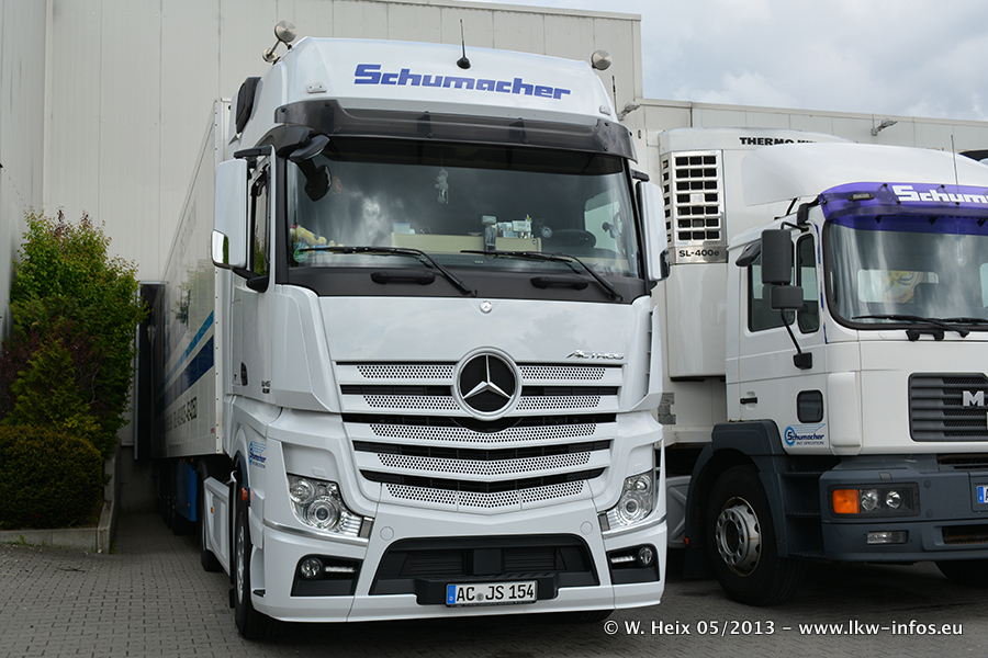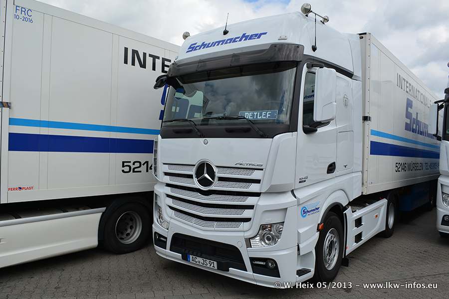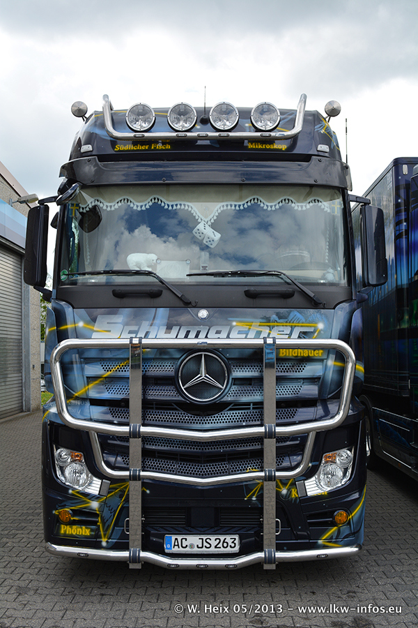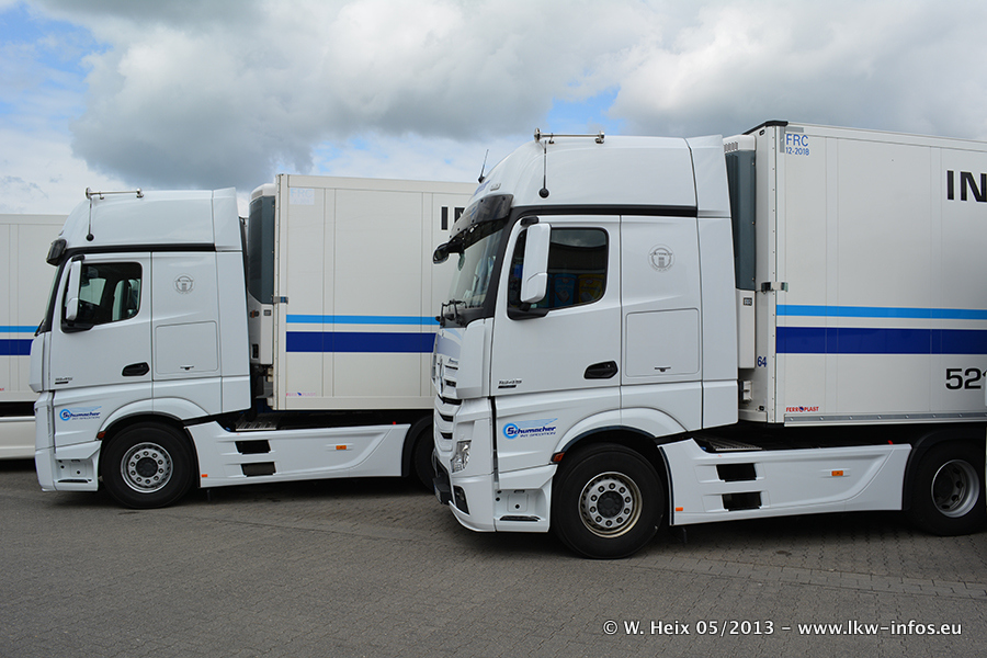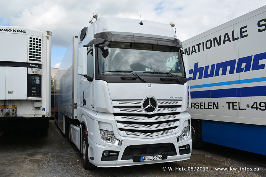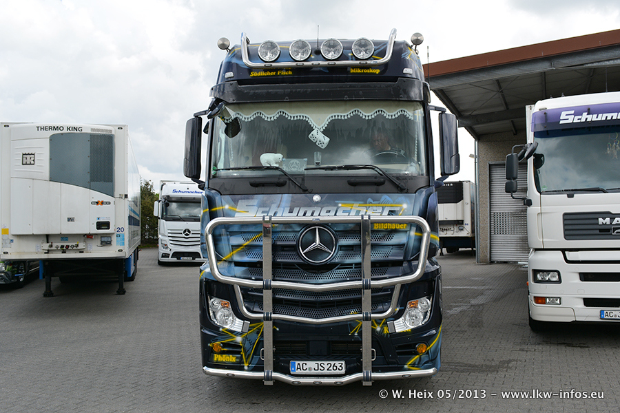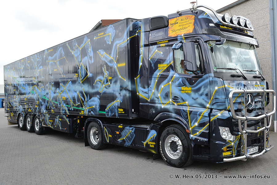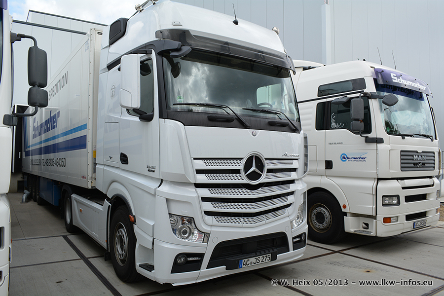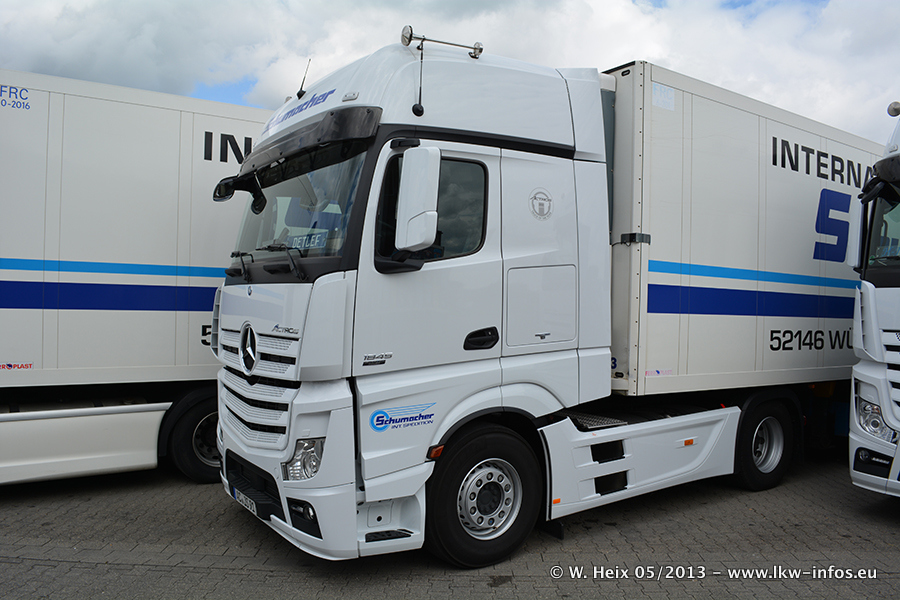 Nun gibt es auch den ersten Merceddes-Benz Antos bei Schumacher. Dazu kommen mehrere neue weiße Actros 4 und es gibt den zweisten Showtruck mit Actros 4 Zugmaschine. Hiier wurde aber "nur" die Zugmaschine durch eine neue ersetzt.
