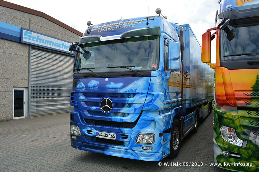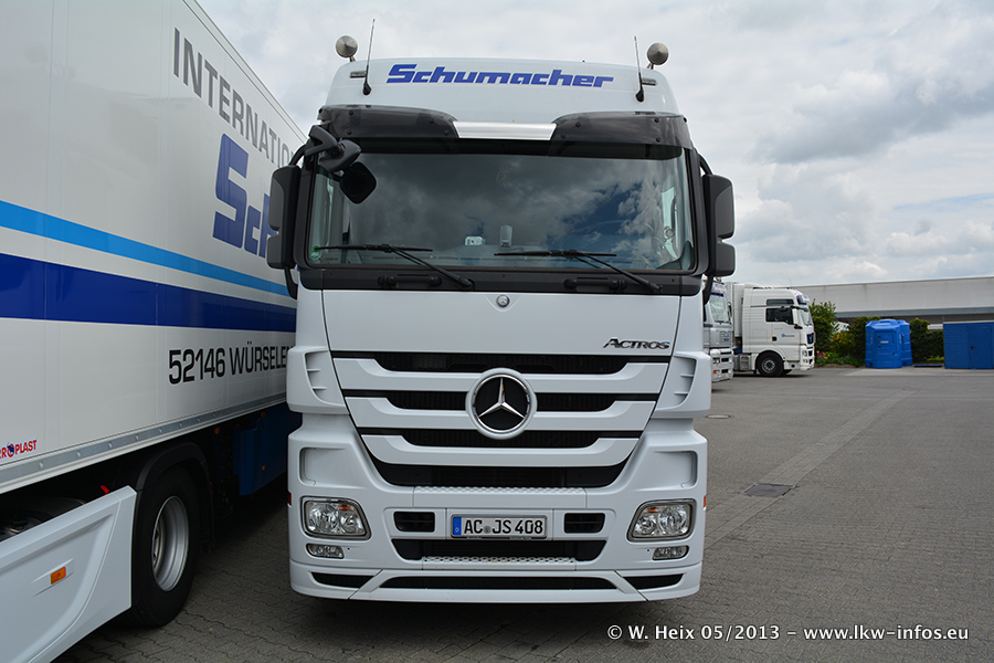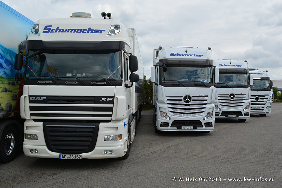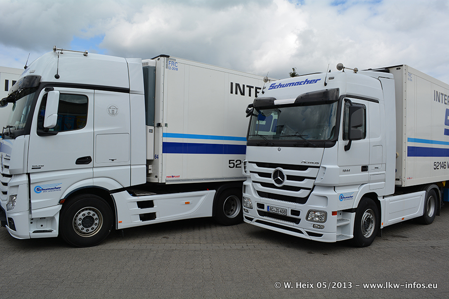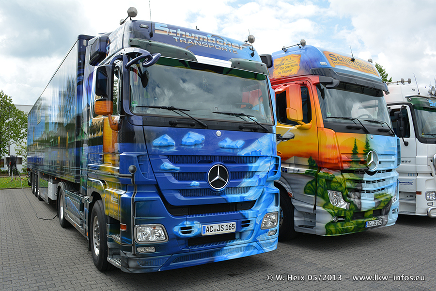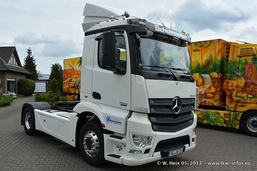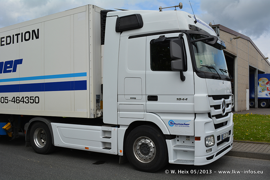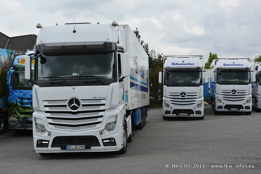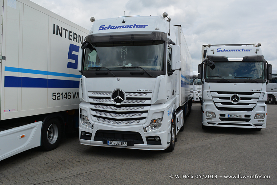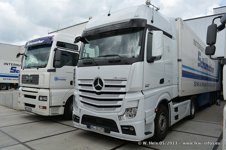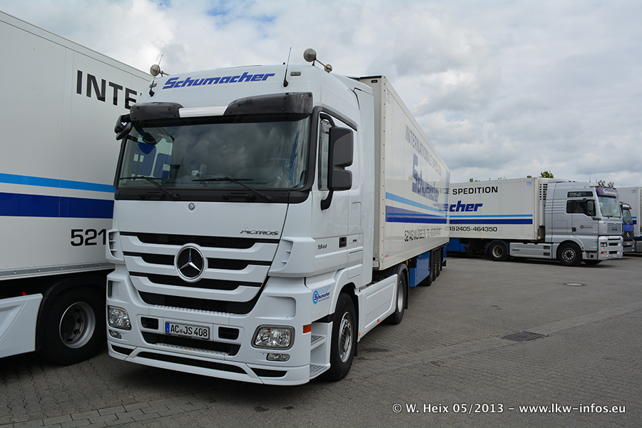 Nun gibt es auch den ersten Merceddes-Benz Antos bei Schumacher. Dazu kommen mehrere neue weiße Actros 4 und es gibt den zweisten Showtruck mit Actros 4 Zugmaschine. Hiier wurde aber "nur" die Zugmaschine durch eine neue ersetzt.