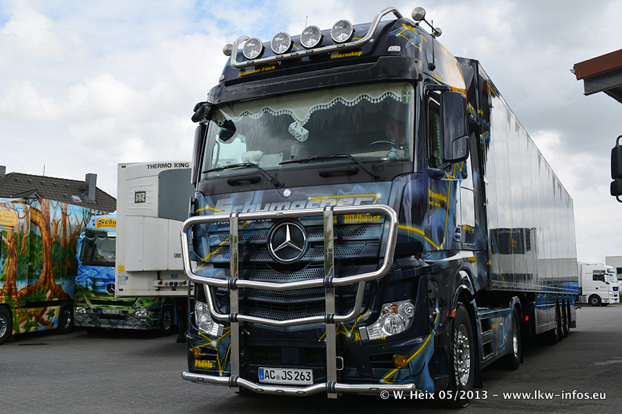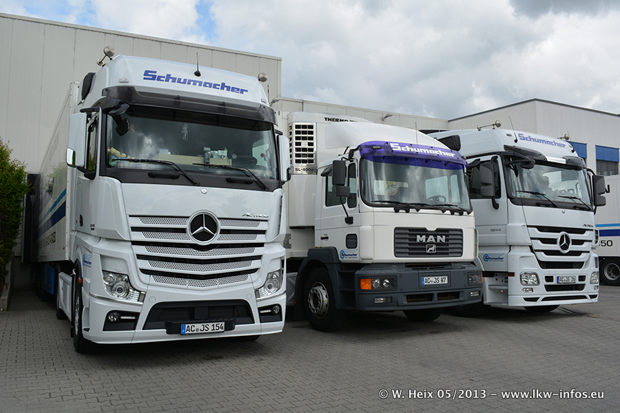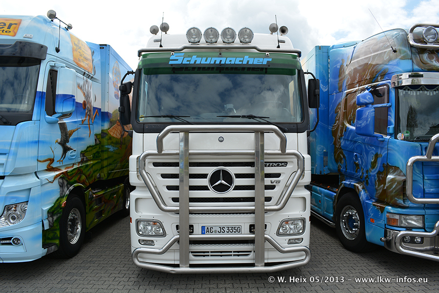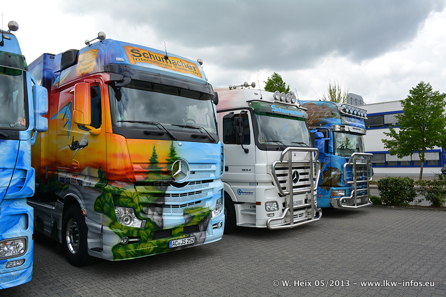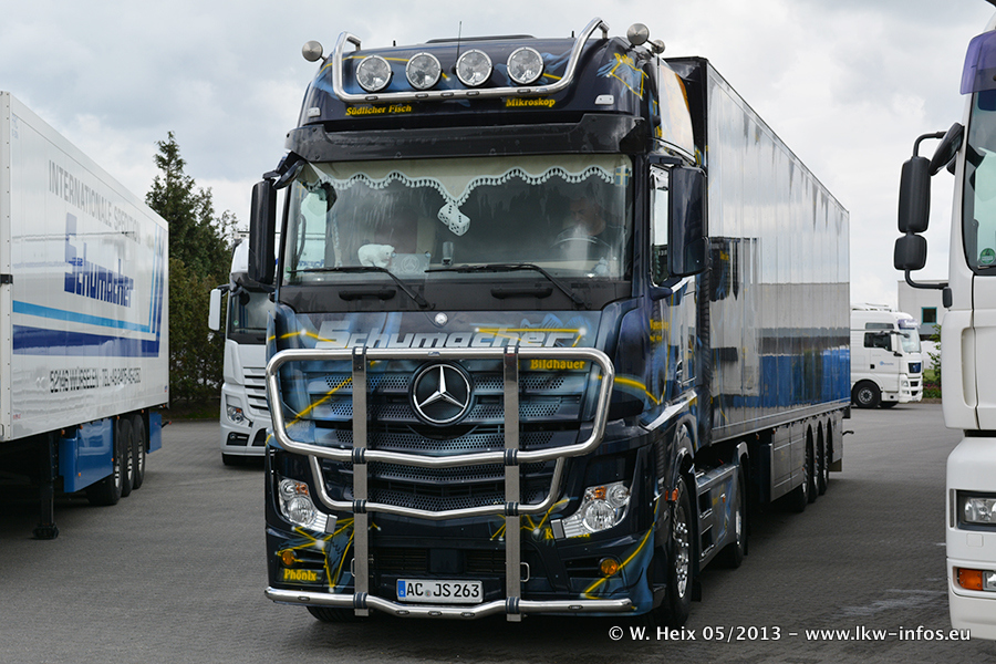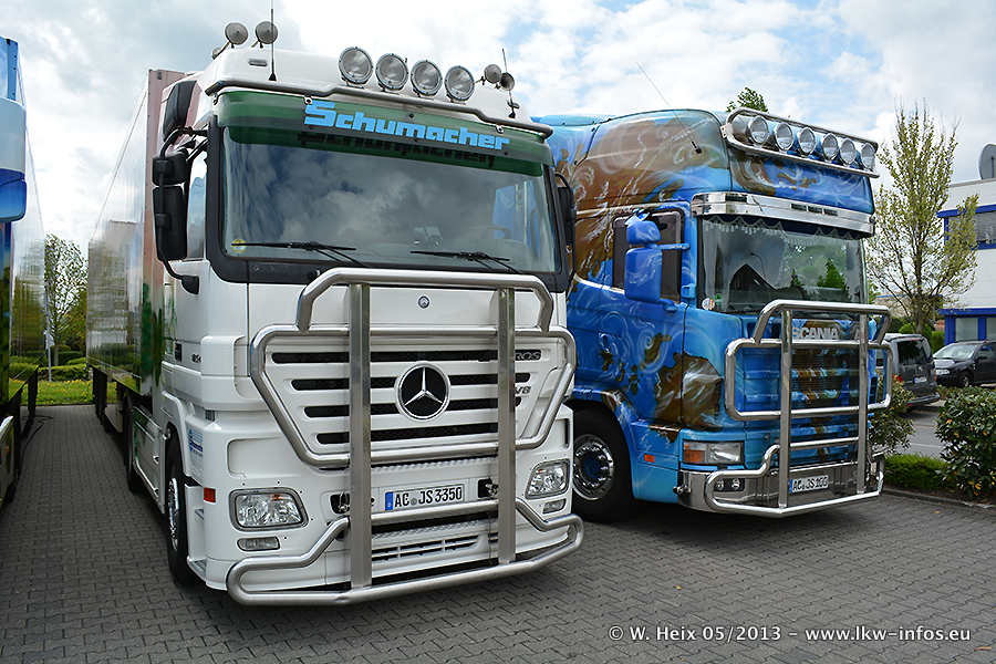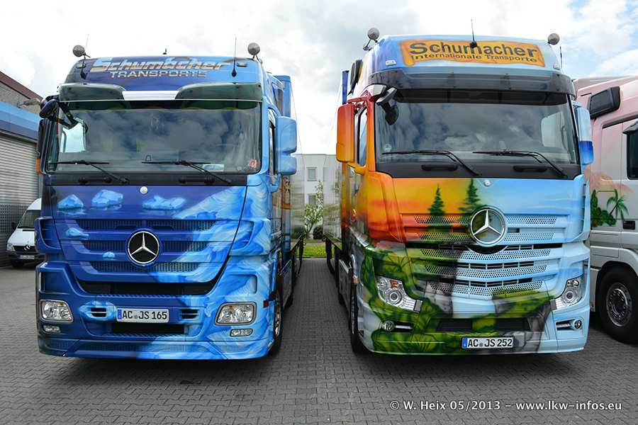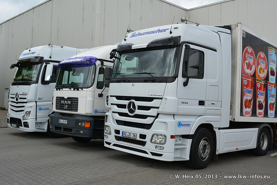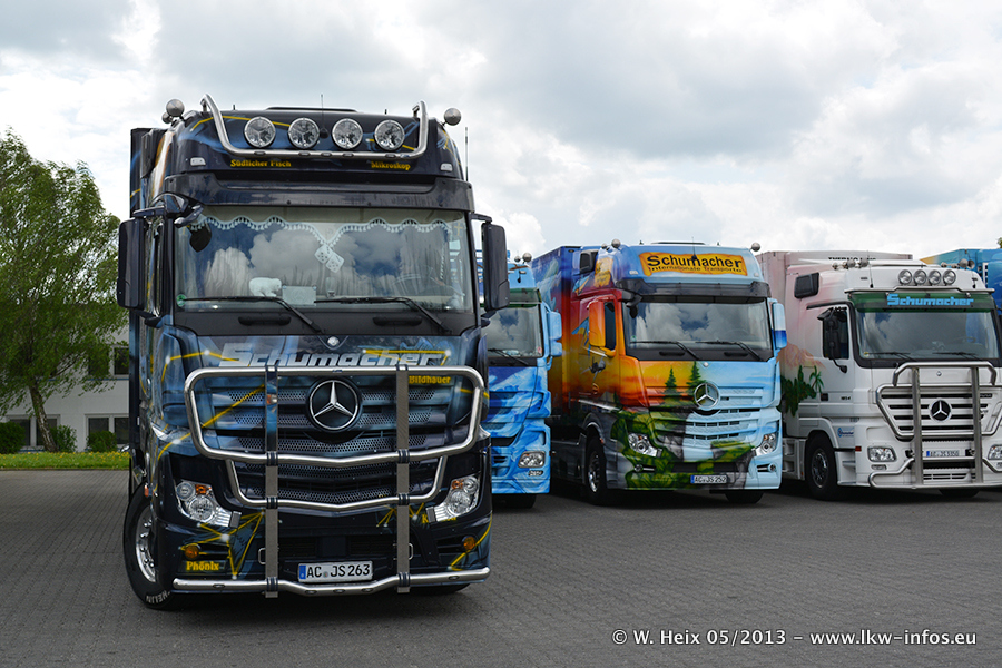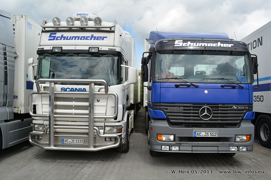 Nun gibt es auch den ersten Merceddes-Benz Antos bei Schumacher. Dazu kommen mehrere neue weiße Actros 4 und es gibt den zweisten Showtruck mit Actros 4 Zugmaschine. Hiier wurde aber "nur" die Zugmaschine durch eine neue ersetzt.
