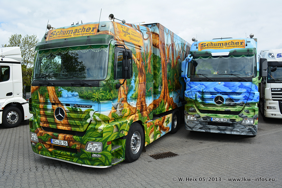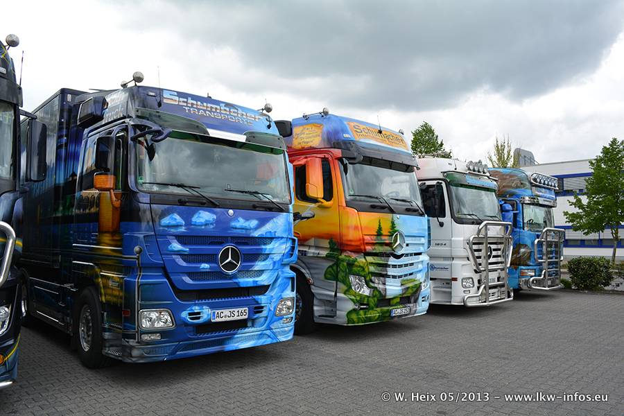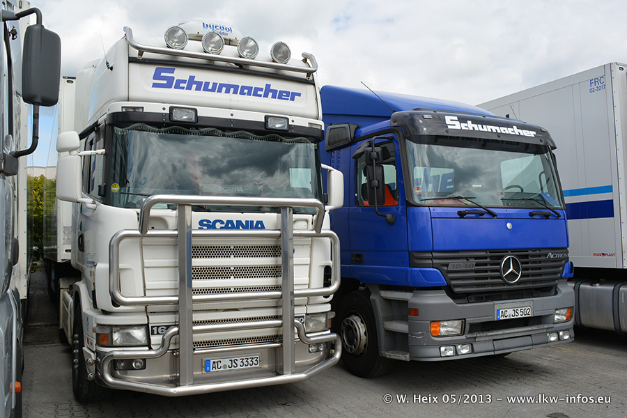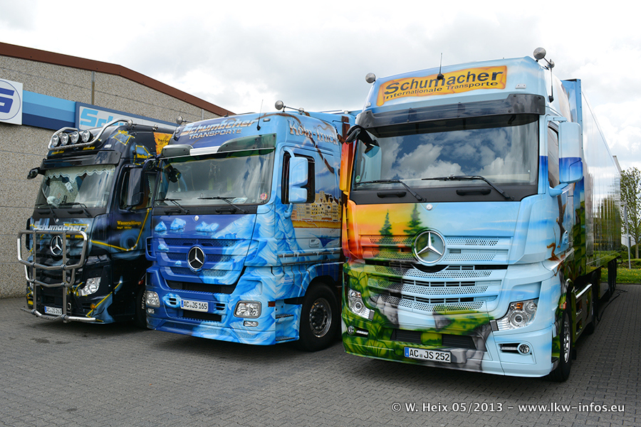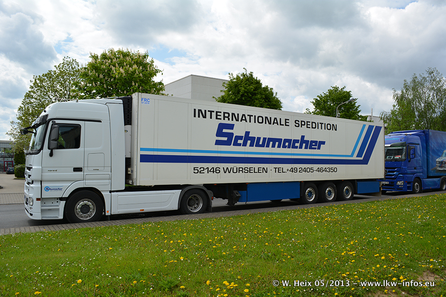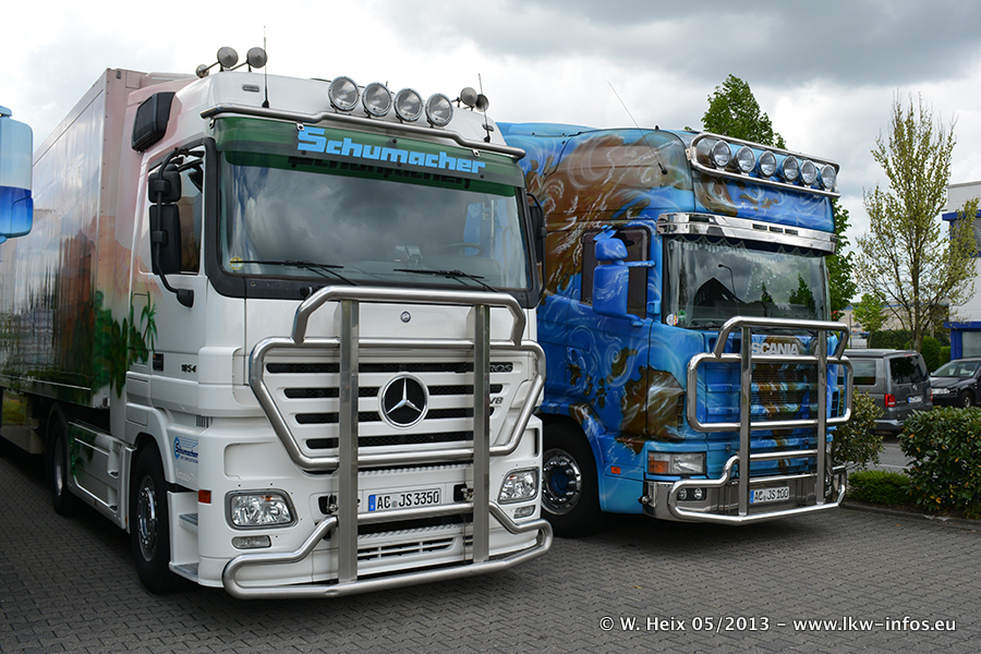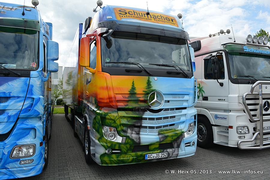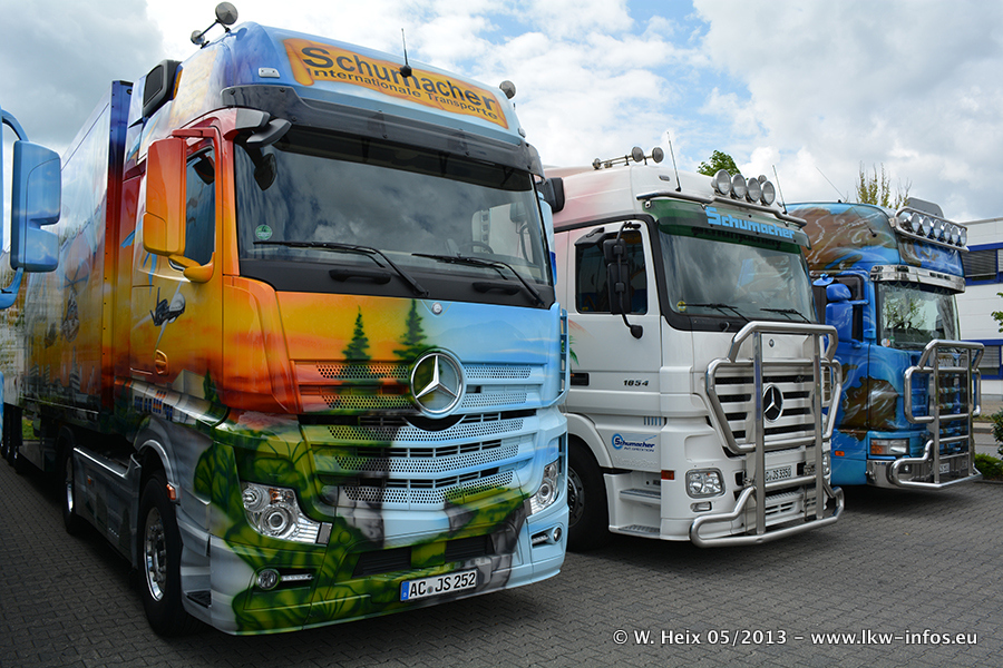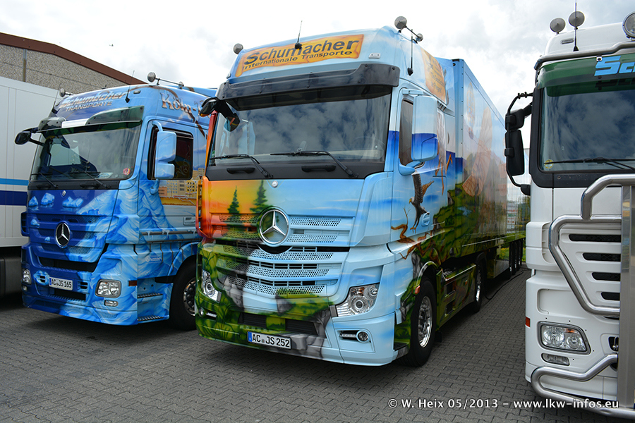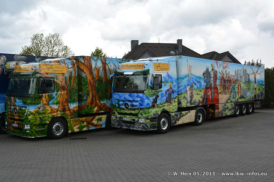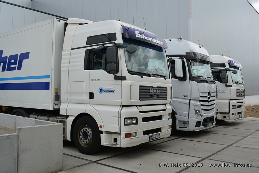 Nun gibt es auch den ersten Merceddes-Benz Antos bei Schumacher. Dazu kommen mehrere neue weiße Actros 4 und es gibt den zweisten Showtruck mit Actros 4 Zugmaschine. Hiier wurde aber "nur" die Zugmaschine durch eine neue ersetzt.
