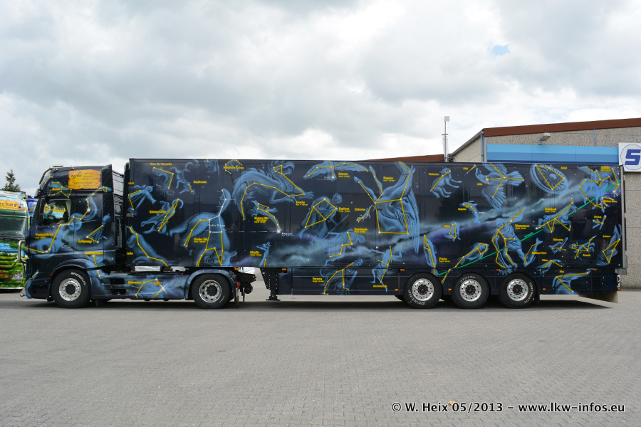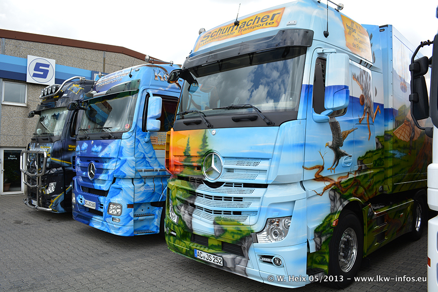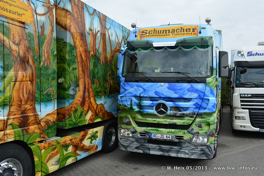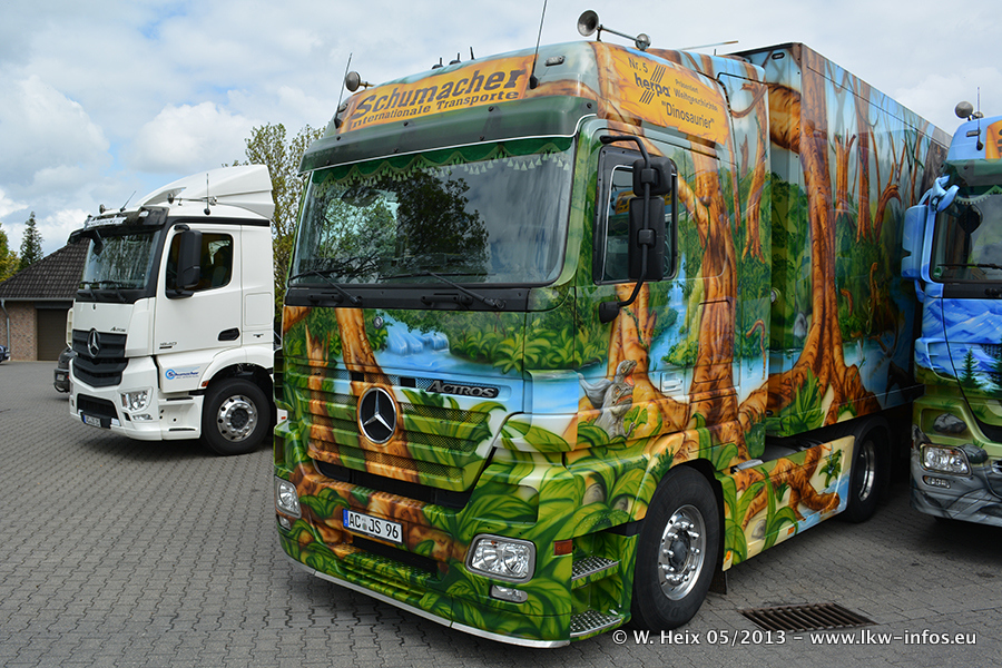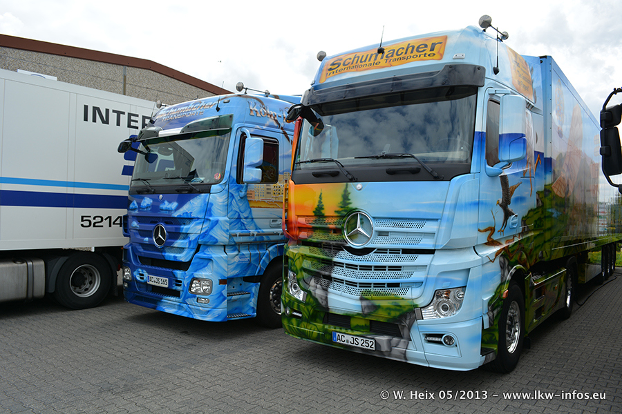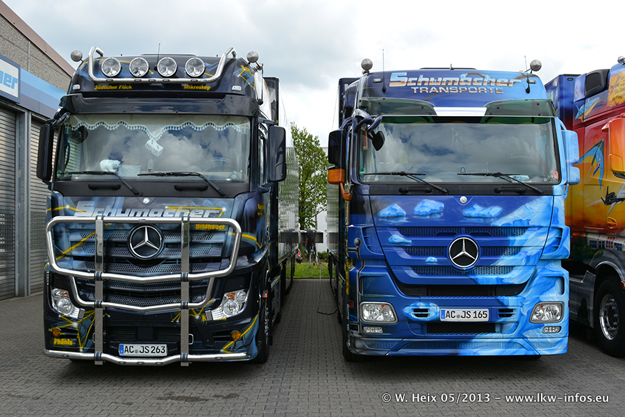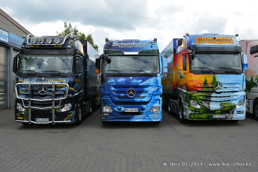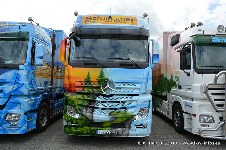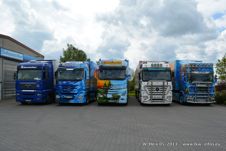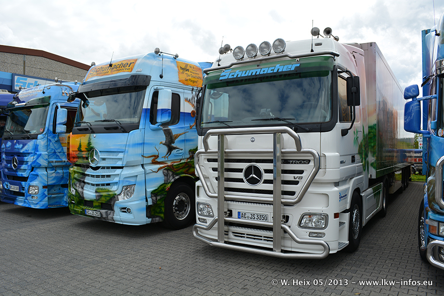 Nun gibt es auch den ersten Merceddes-Benz Antos bei Schumacher. Dazu kommen mehrere neue weiße Actros 4 und es gibt den zweisten Showtruck mit Actros 4 Zugmaschine. Hiier wurde aber "nur" die Zugmaschine durch eine neue ersetzt.