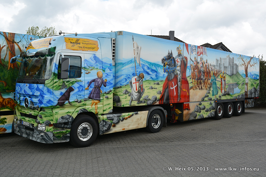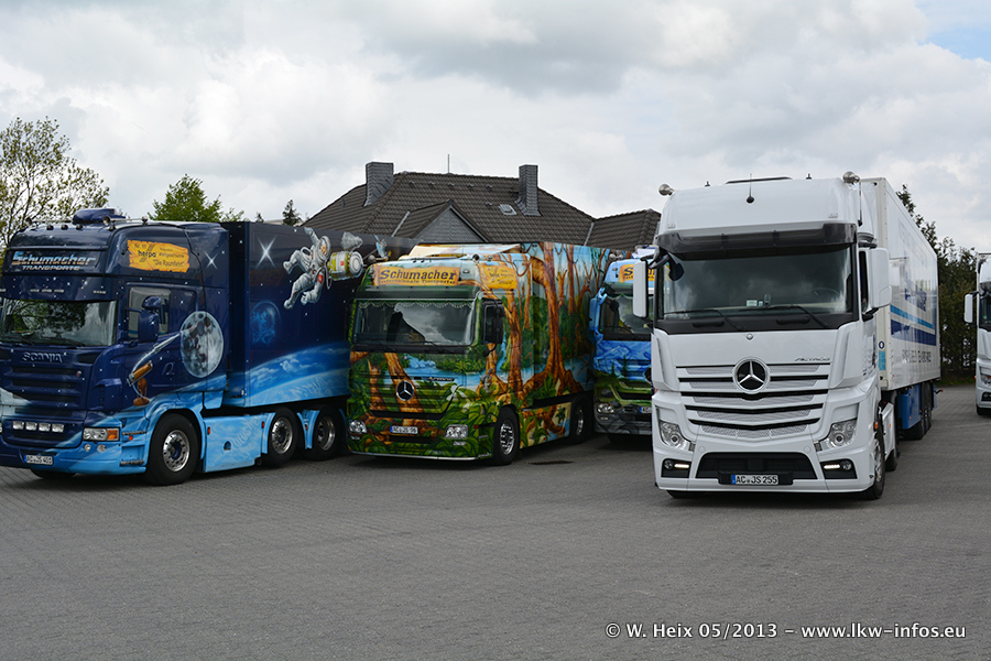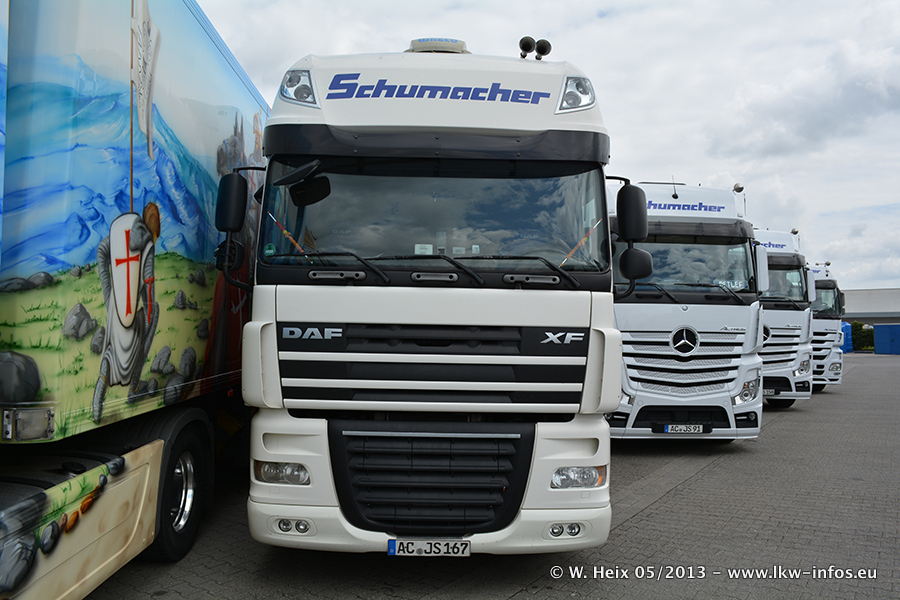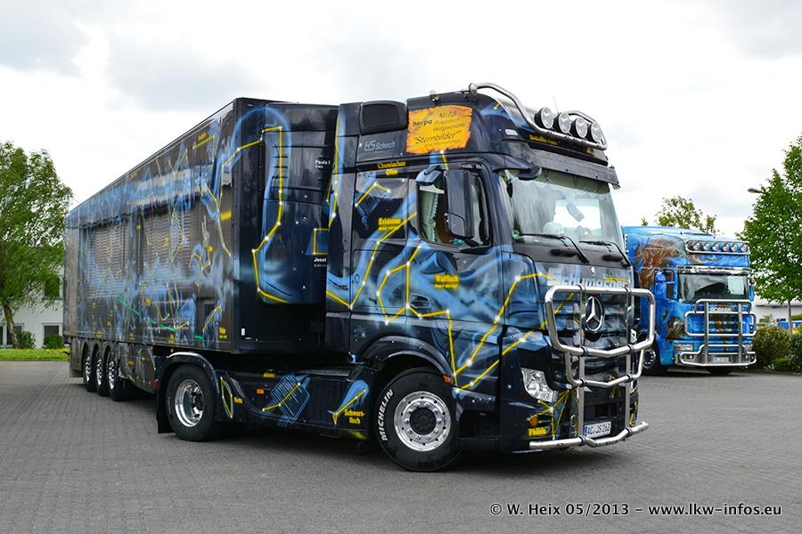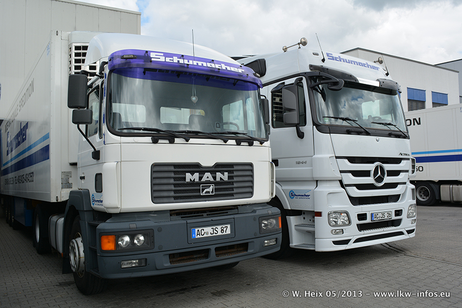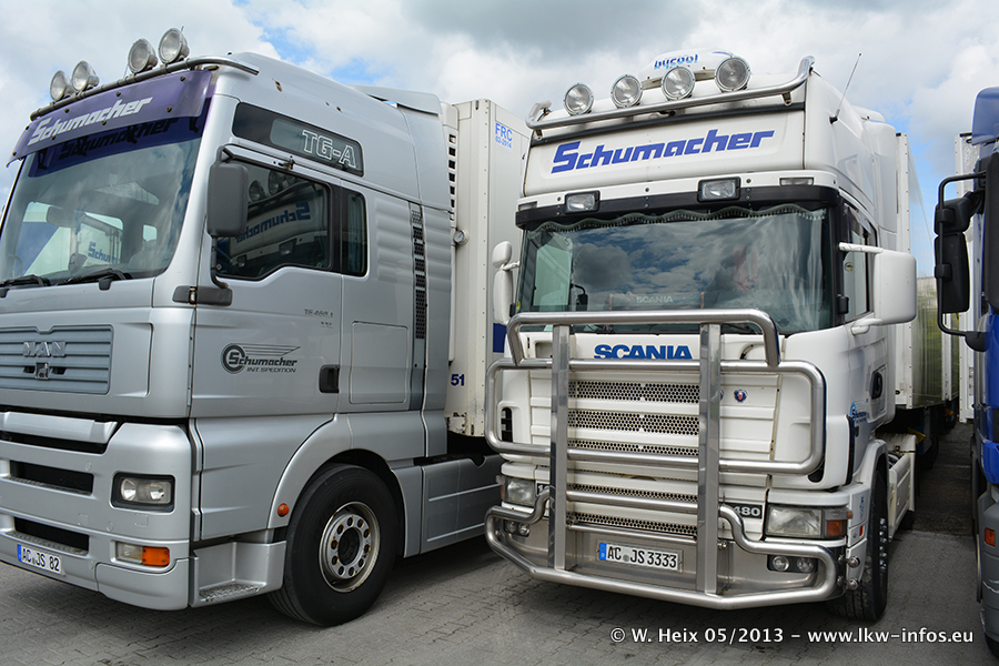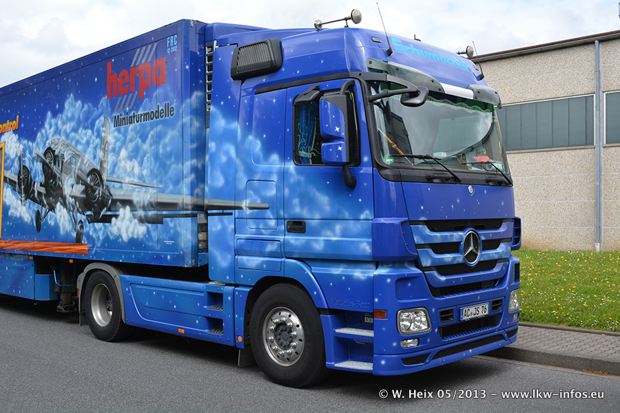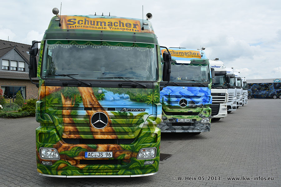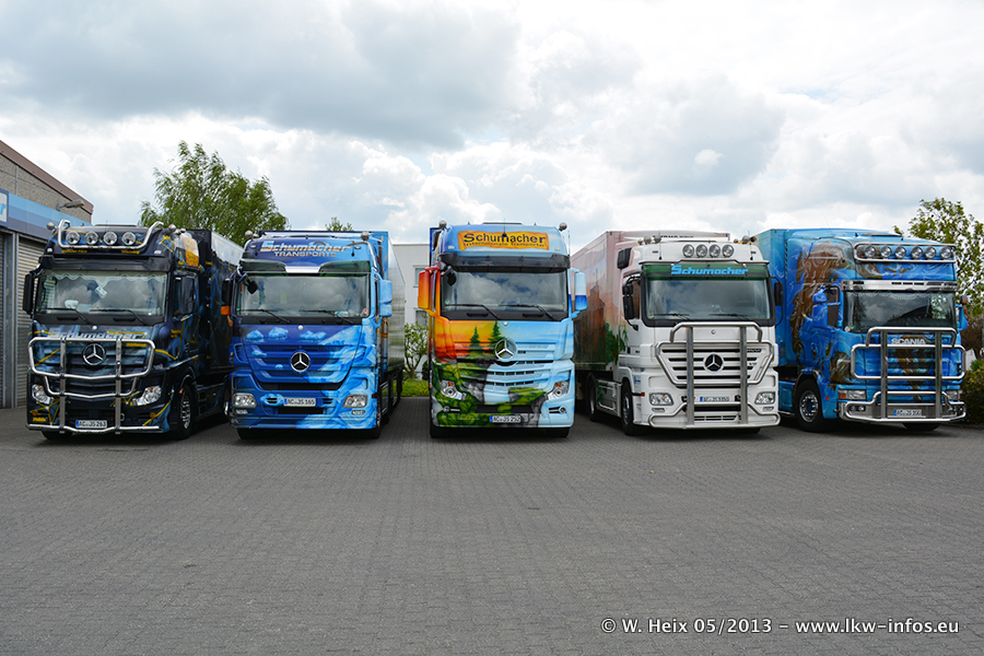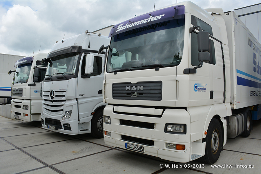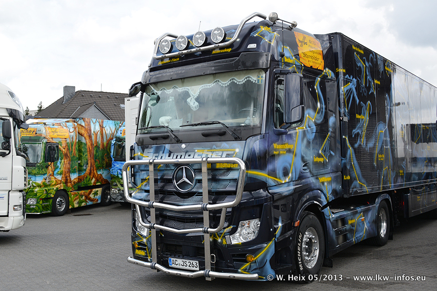 Nun gibt es auch den ersten Merceddes-Benz Antos bei Schumacher. Dazu kommen mehrere neue weiße Actros 4 und es gibt den zweisten Showtruck mit Actros 4 Zugmaschine. Hiier wurde aber "nur" die Zugmaschine durch eine neue ersetzt.
