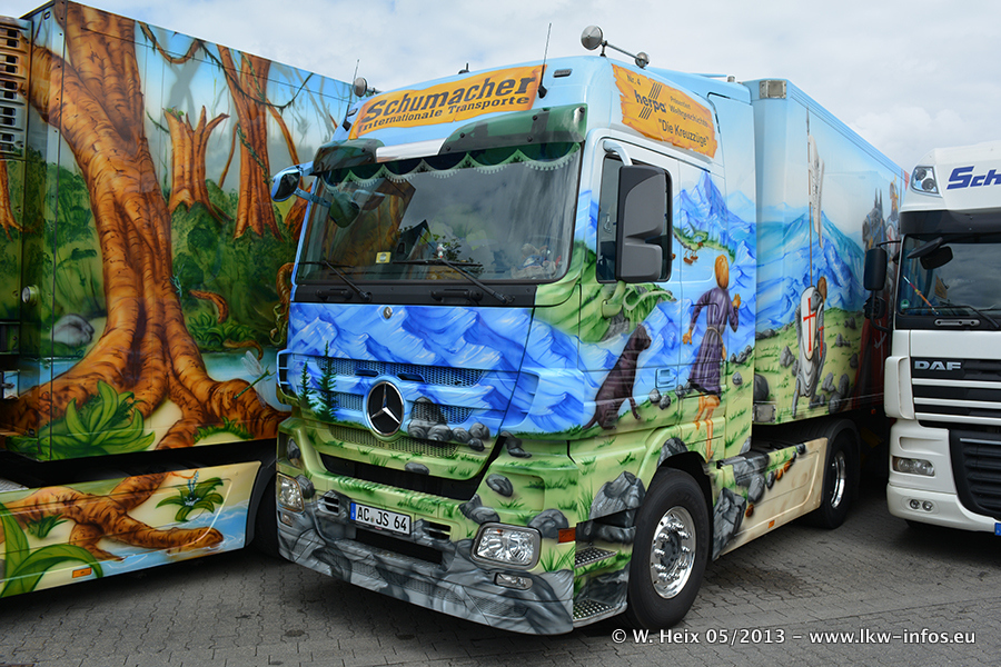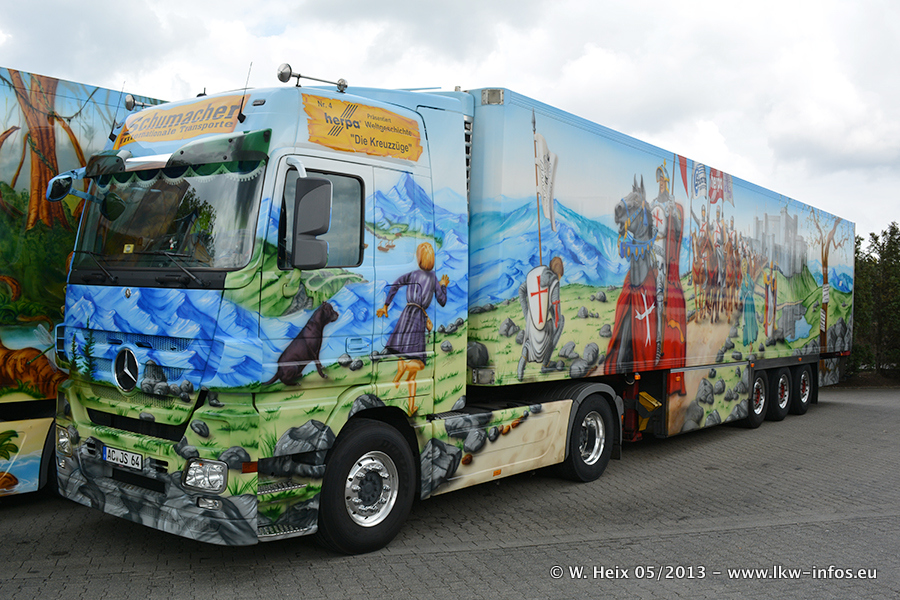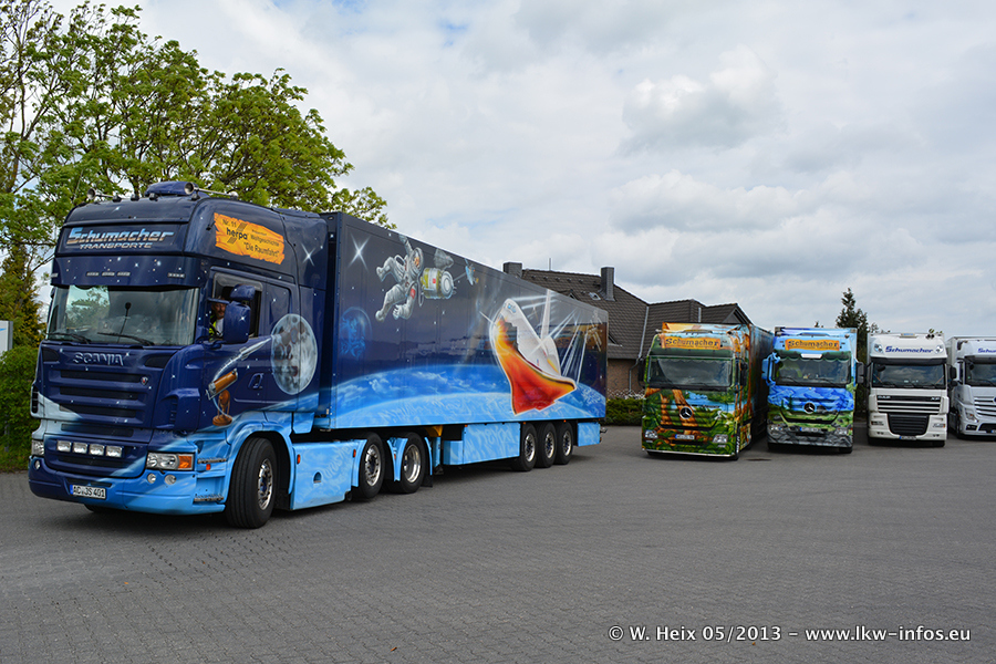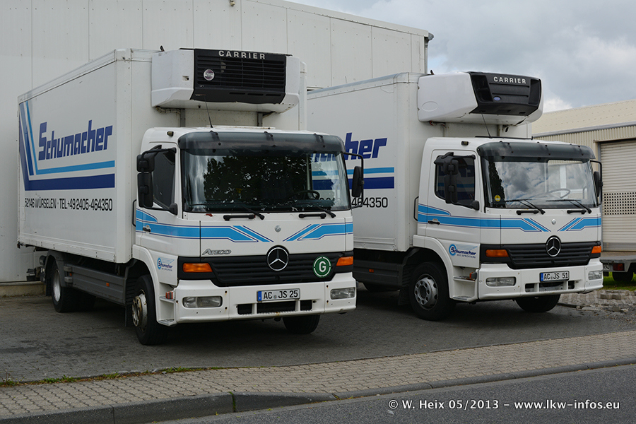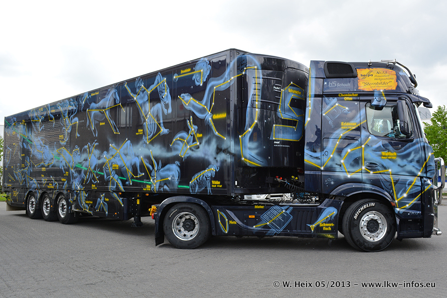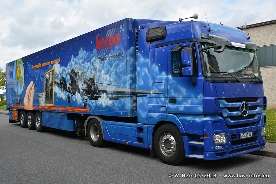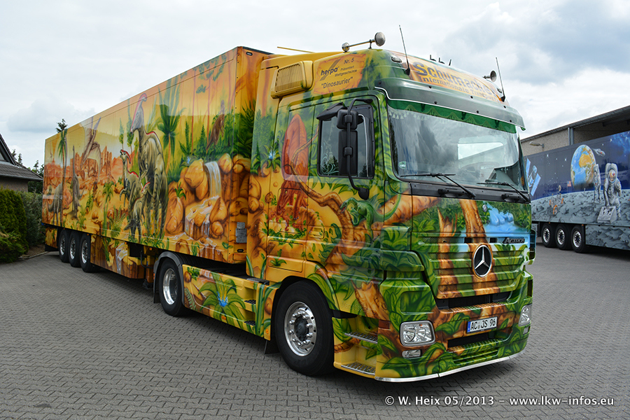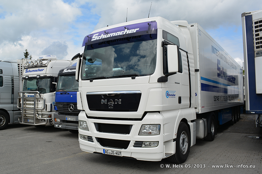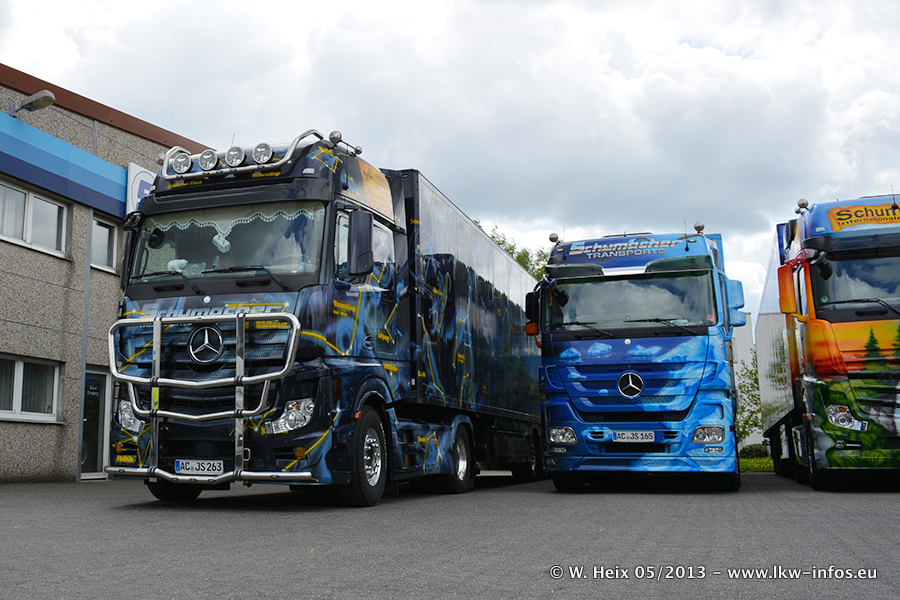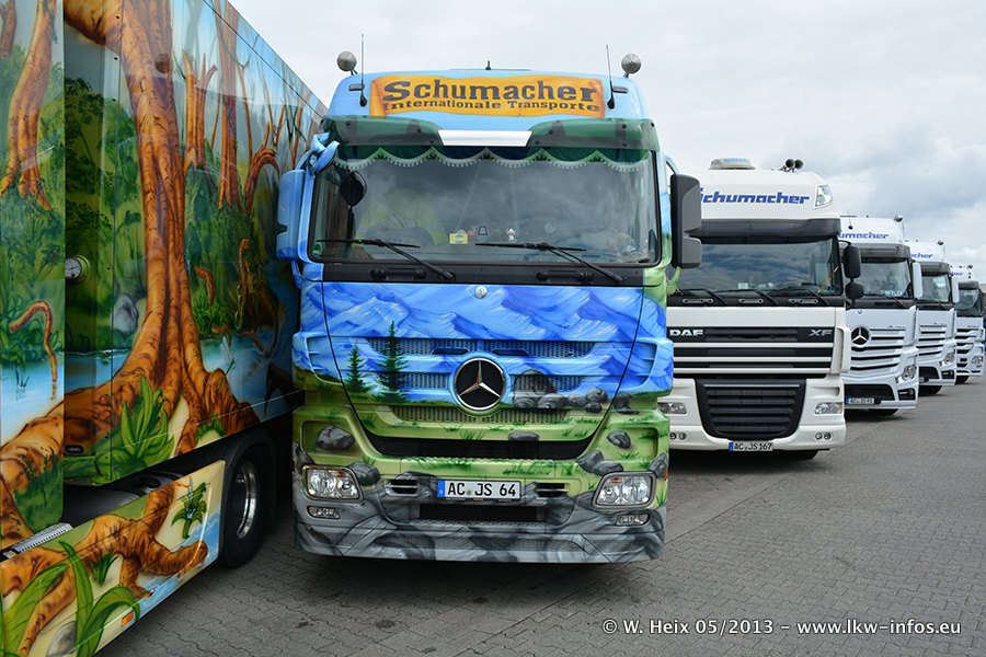Nun gibt es auch den ersten Merceddes-Benz Antos bei Schumacher. Dazu kommen mehrere neue weiße Actros 4 und es gibt den zweisten Showtruck mit Actros 4 Zugmaschine. Hiier wurde aber "nur" die Zugmaschine durch eine neue ersetzt.