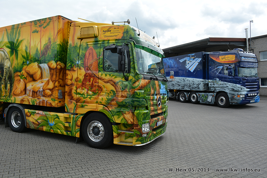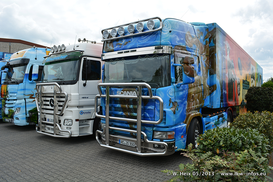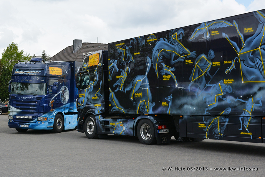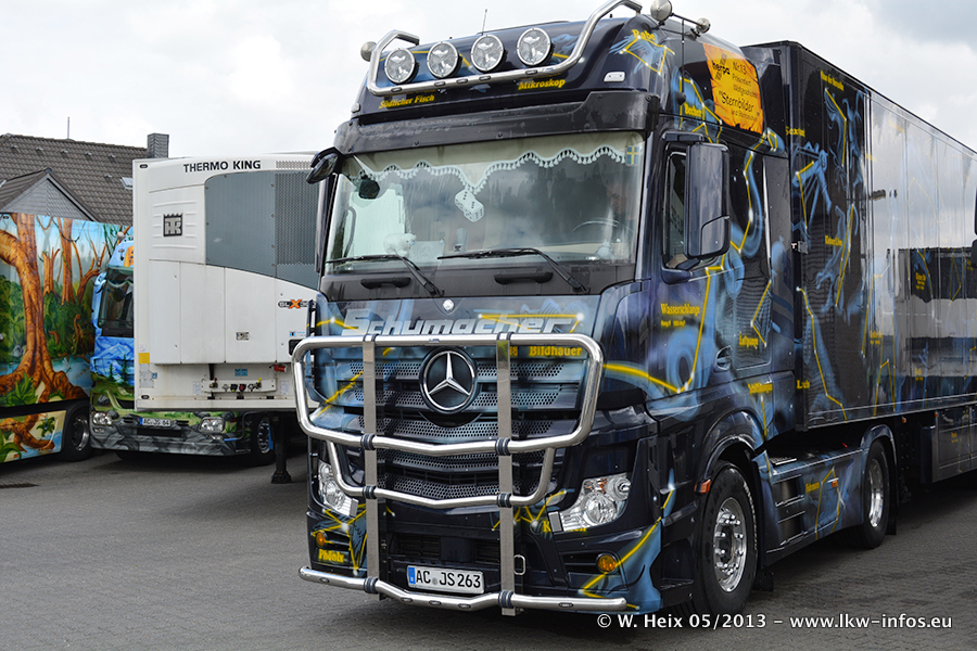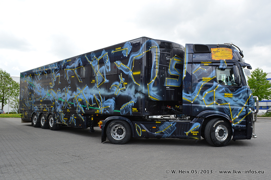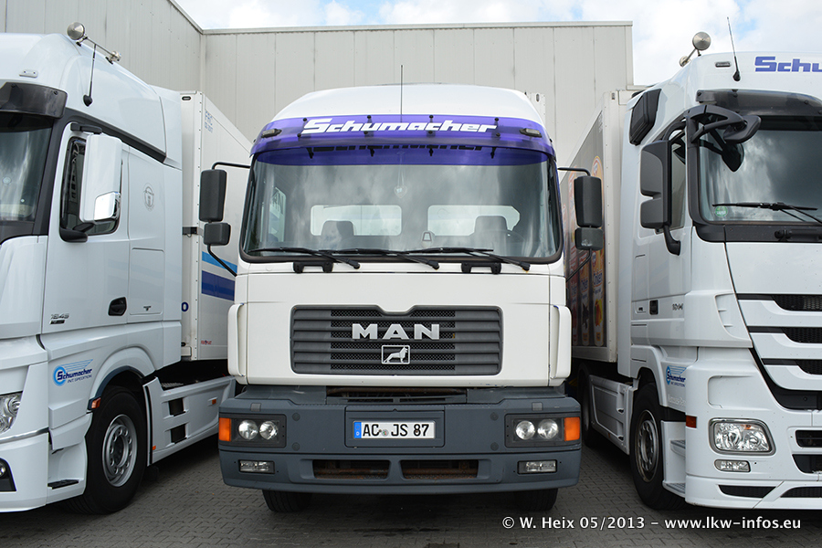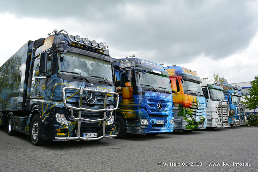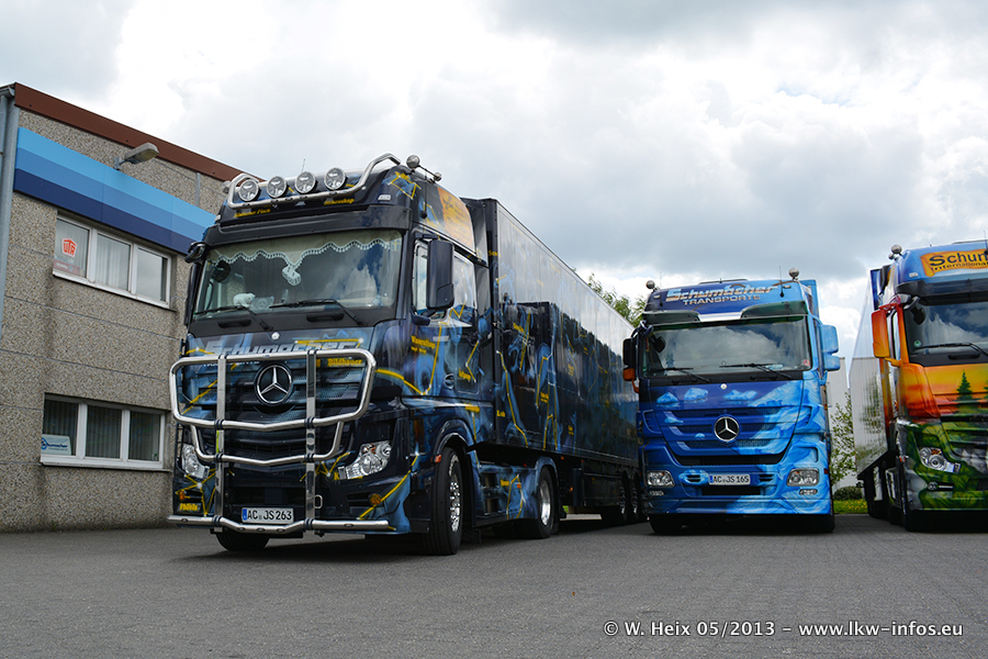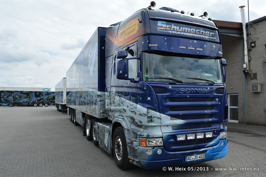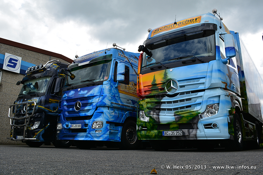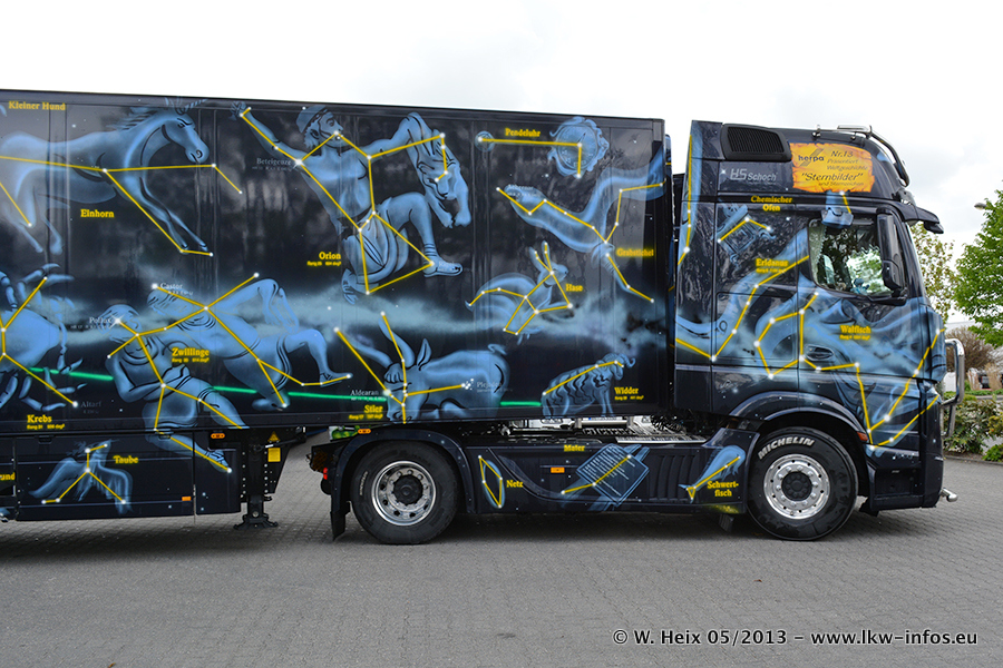 Nun gibt es auch den ersten Merceddes-Benz Antos bei Schumacher. Dazu kommen mehrere neue weiße Actros 4 und es gibt den zweisten Showtruck mit Actros 4 Zugmaschine. Hiier wurde aber "nur" die Zugmaschine durch eine neue ersetzt.