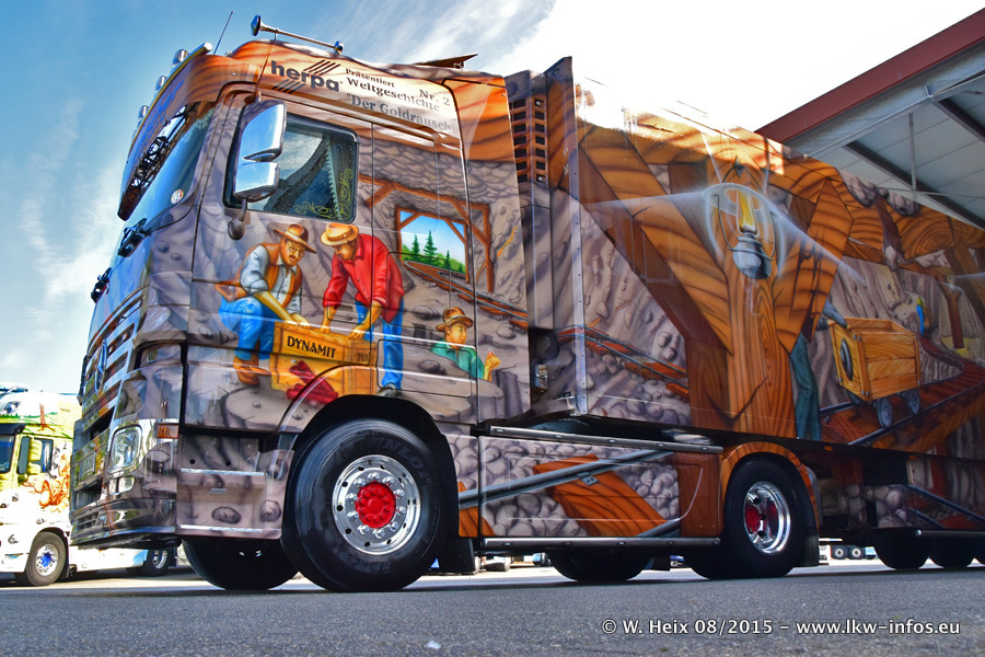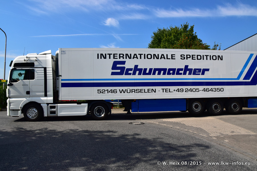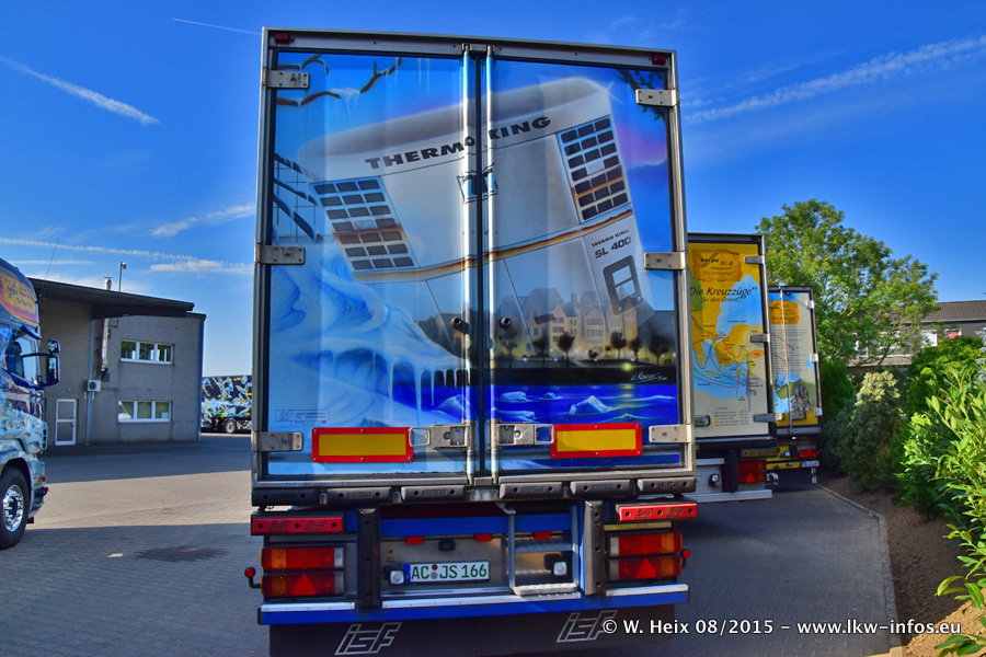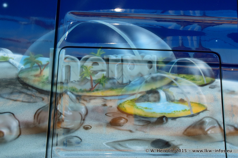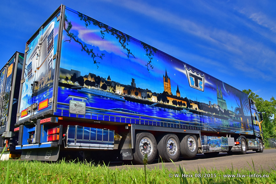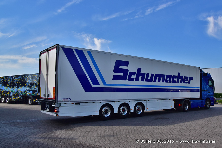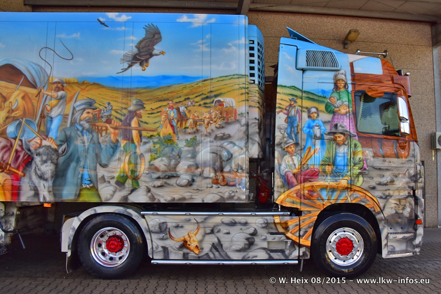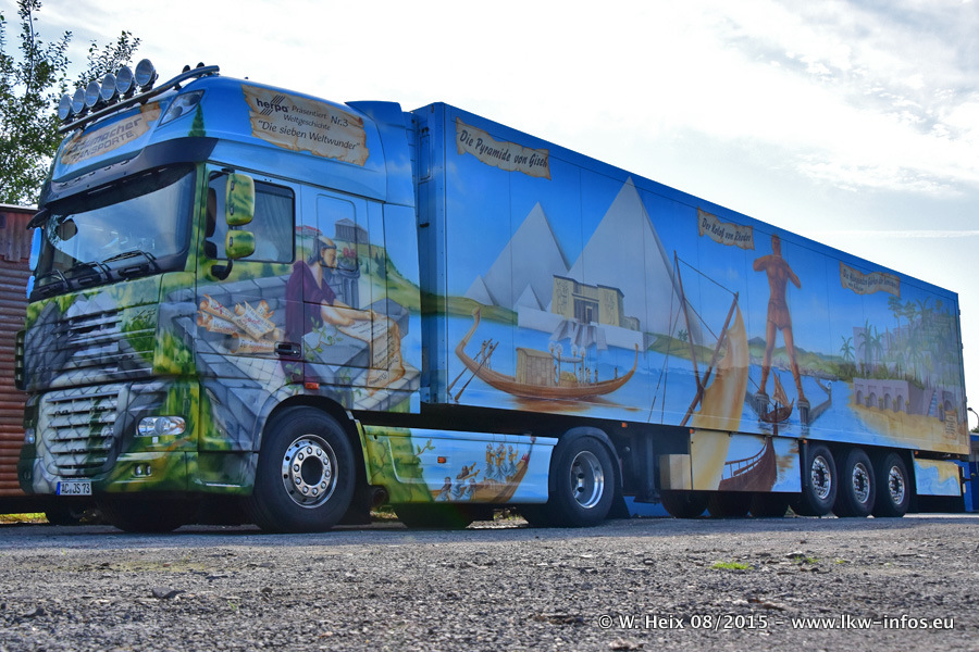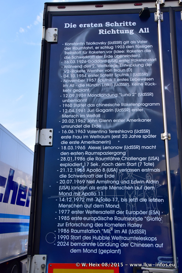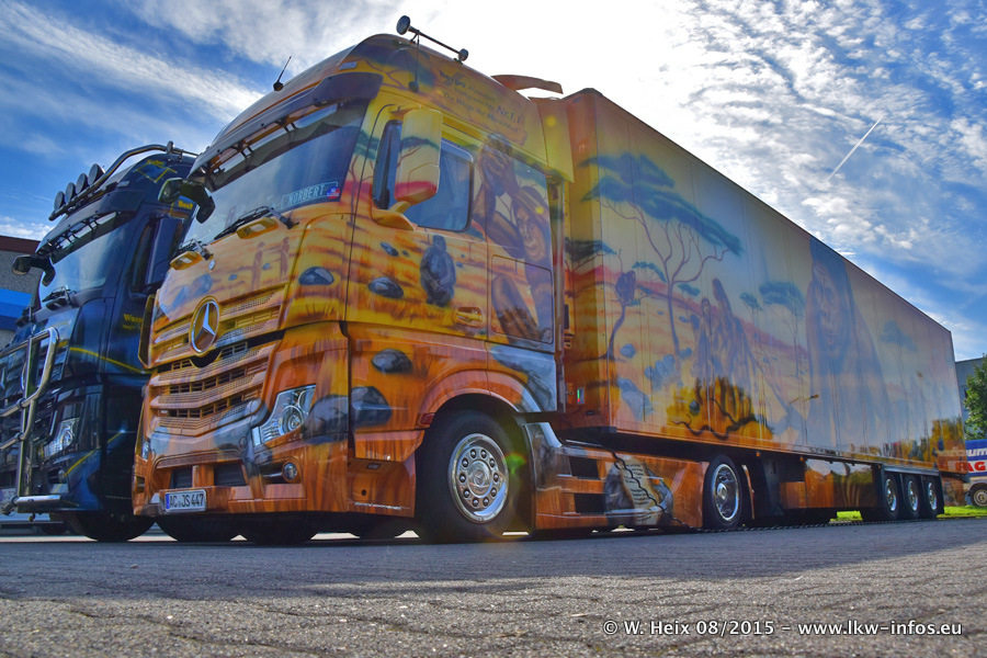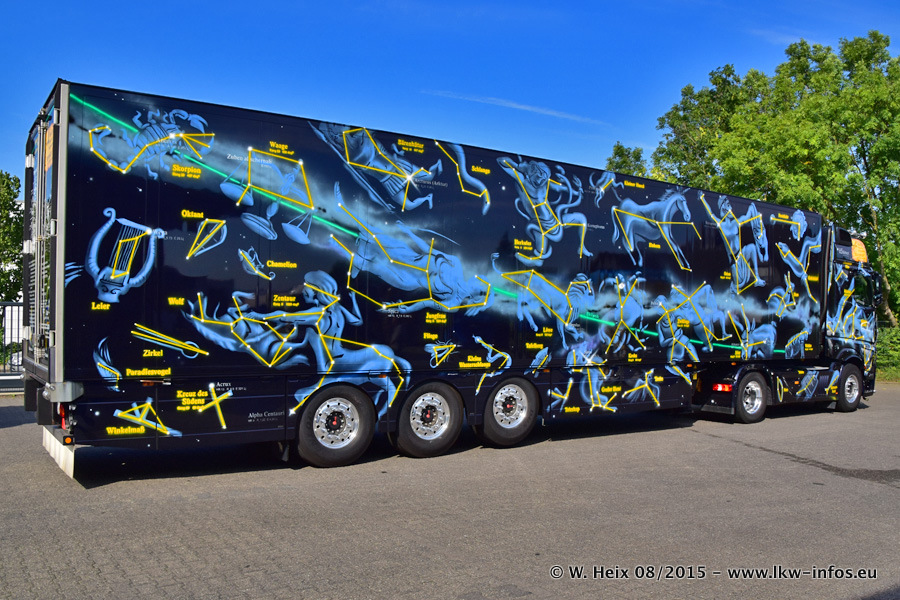 Bei diesem Besuch waren bis auf einen LKW alle Showtrucks der Herpa-Serie zuhause. Schumacher hat ja bekanntlich inzwischen den größten Teil dieser 14 Trucks im Fuhrpark. Die Nummer 1 bekam vor einigen Monaten eine neue Zugmaschine und läuft jetzt unter der Numer 1.1 "Die Wiege der Menschheit". Ende 2014 bekam Schumacher die Nummer 14 der Serie: "Herpa präsentiert Weltgeschichte Nr. 14 - Karl der Große". Das ist aktuell der letzte neue Showtruck der Herpa-Serie. Außerdem konnte ich diesmal den Köln-Truck von allen Seiten fotografieren, da dieser auch zuhause war. Danke an den/die Fahrer von Schumacher, die mir die Showtrucks zum Fotografieren auf dem Hof "ins richtige Licht" gerückt haben.