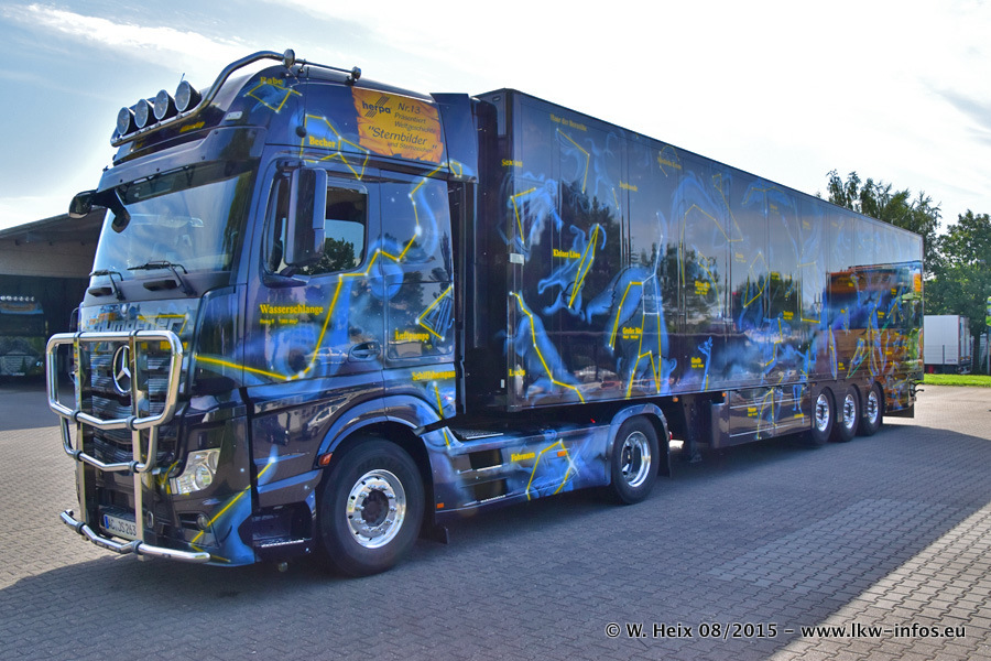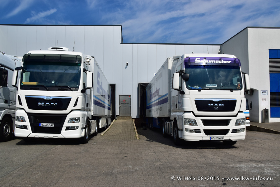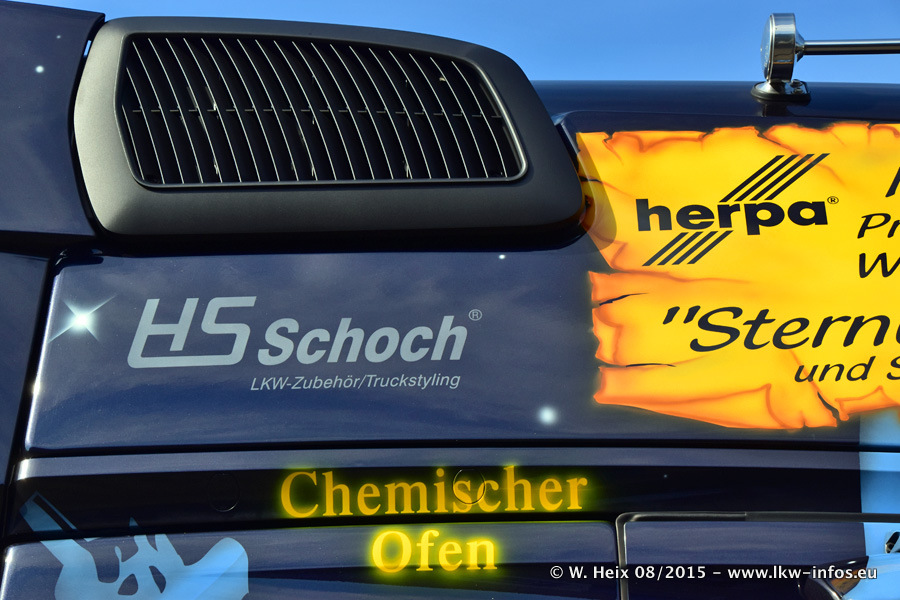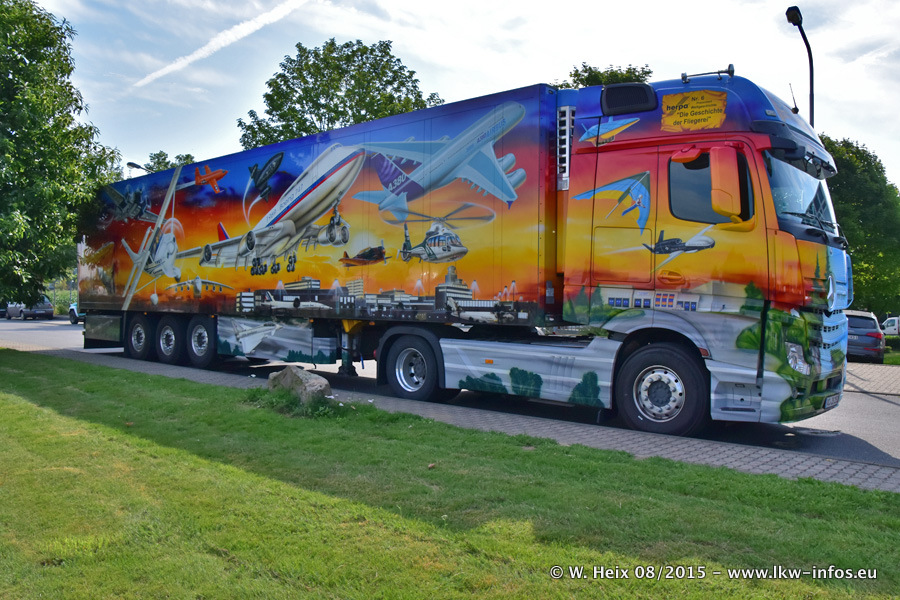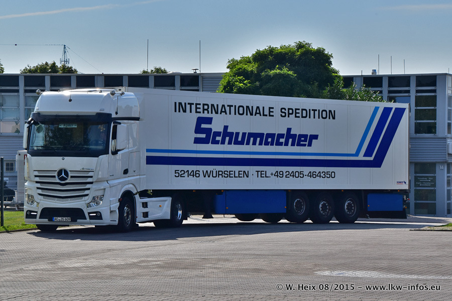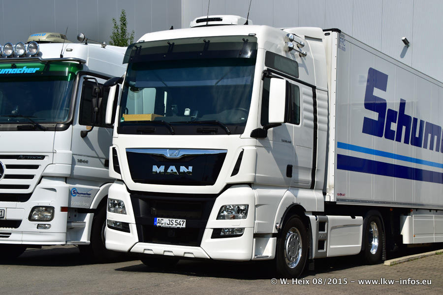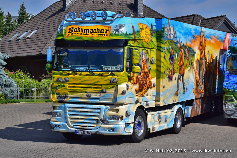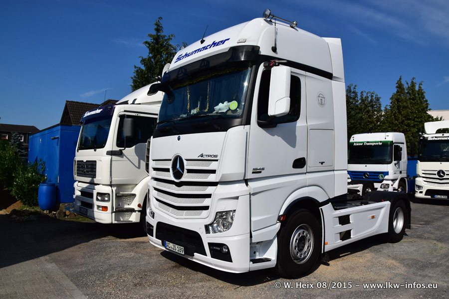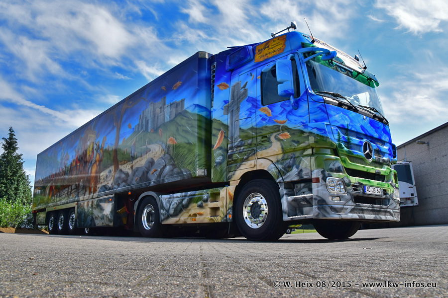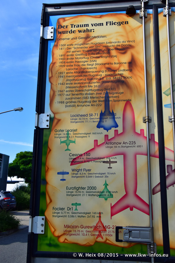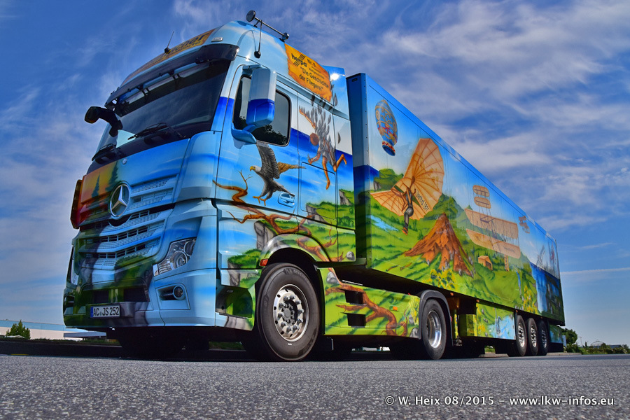 Bei diesem Besuch waren bis auf einen LKW alle Showtrucks der Herpa-Serie zuhause. Schumacher hat ja bekanntlich inzwischen den größten Teil dieser 14 Trucks im Fuhrpark. Die Nummer 1 bekam vor einigen Monaten eine neue Zugmaschine und läuft jetzt unter der Numer 1.1 "Die Wiege der Menschheit". Ende 2014 bekam Schumacher die Nummer 14 der Serie: "Herpa präsentiert Weltgeschichte Nr. 14 - Karl der Große". Das ist aktuell der letzte neue Showtruck der Herpa-Serie. Außerdem konnte ich diesmal den Köln-Truck von allen Seiten fotografieren, da dieser auch zuhause war. Danke an den/die Fahrer von Schumacher, die mir die Showtrucks zum Fotografieren auf dem Hof "ins richtige Licht" gerückt haben.