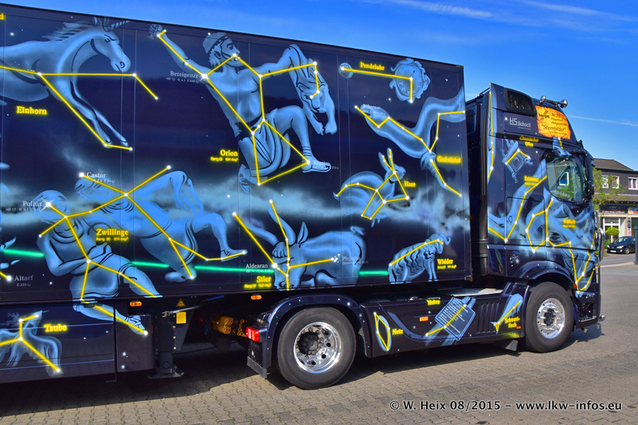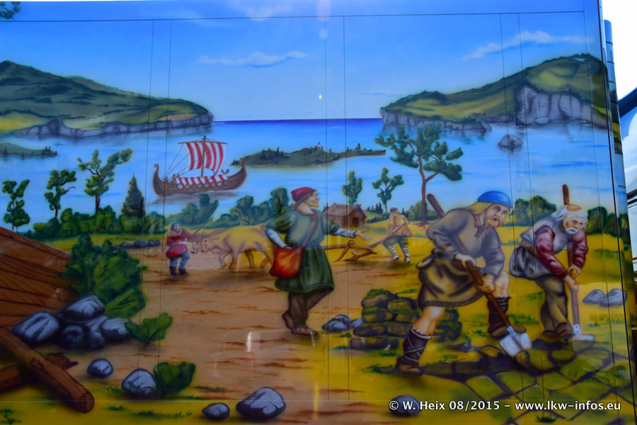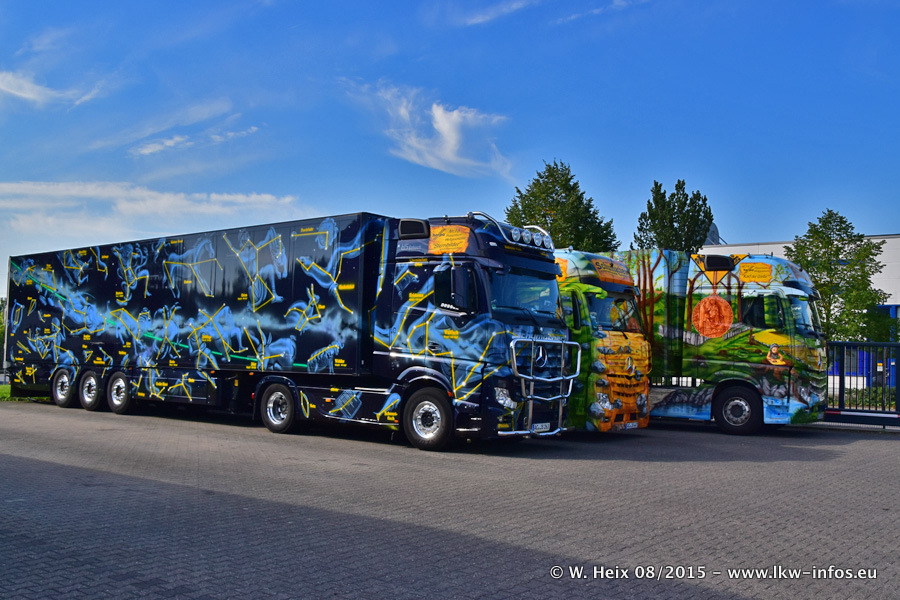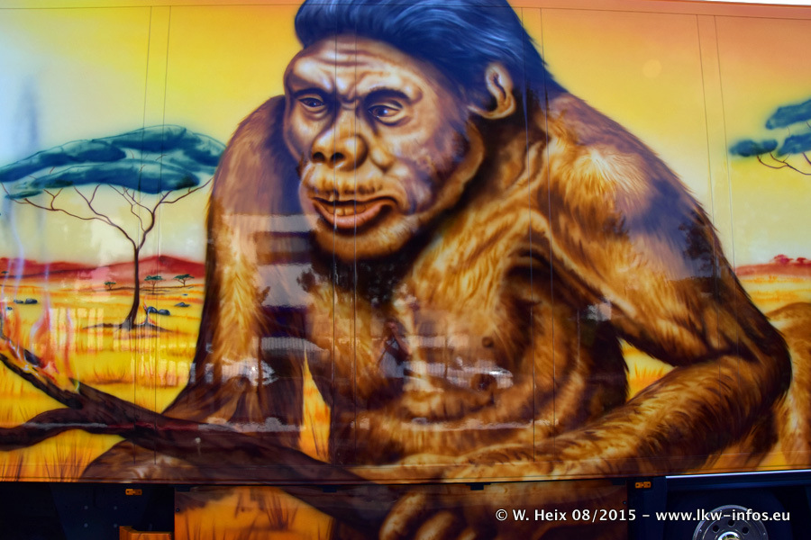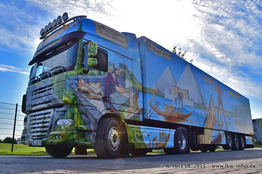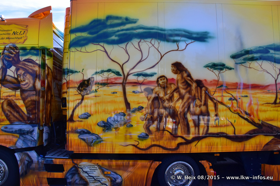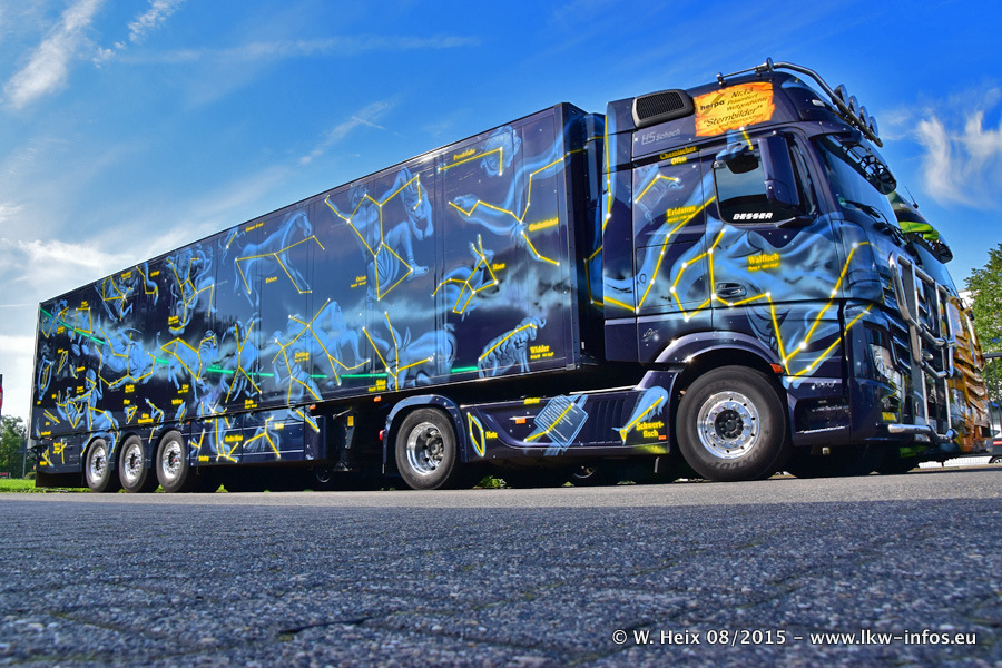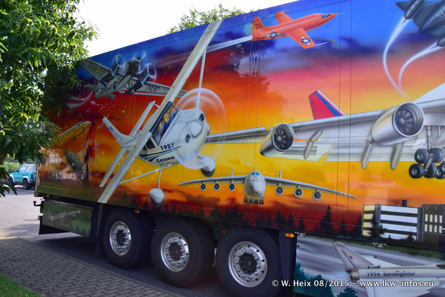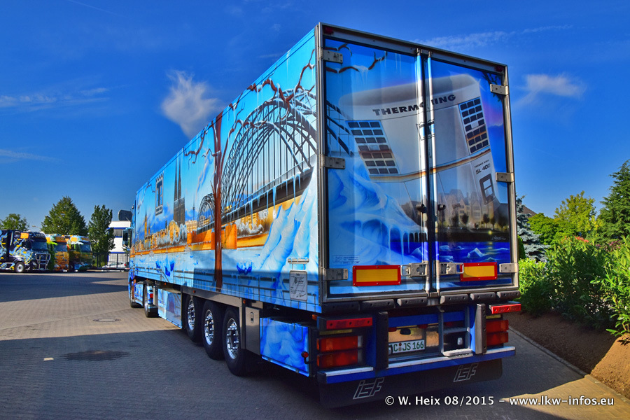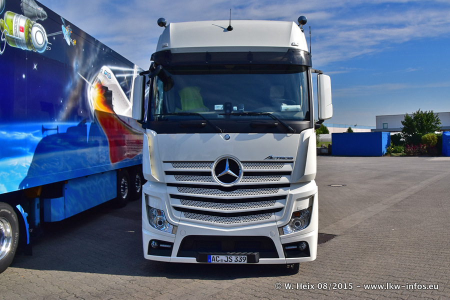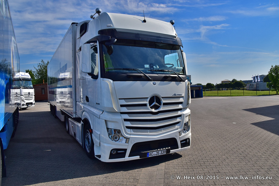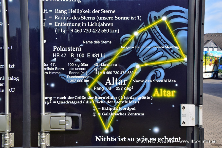 Bei diesem Besuch waren bis auf einen LKW alle Showtrucks der Herpa-Serie zuhause. Schumacher hat ja bekanntlich inzwischen den größten Teil dieser 14 Trucks im Fuhrpark. Die Nummer 1 bekam vor einigen Monaten eine neue Zugmaschine und läuft jetzt unter der Numer 1.1 "Die Wiege der Menschheit". Ende 2014 bekam Schumacher die Nummer 14 der Serie: "Herpa präsentiert Weltgeschichte Nr. 14 - Karl der Große". Das ist aktuell der letzte neue Showtruck der Herpa-Serie. Außerdem konnte ich diesmal den Köln-Truck von allen Seiten fotografieren, da dieser auch zuhause war. Danke an den/die Fahrer von Schumacher, die mir die Showtrucks zum Fotografieren auf dem Hof "ins richtige Licht" gerückt haben.