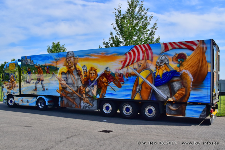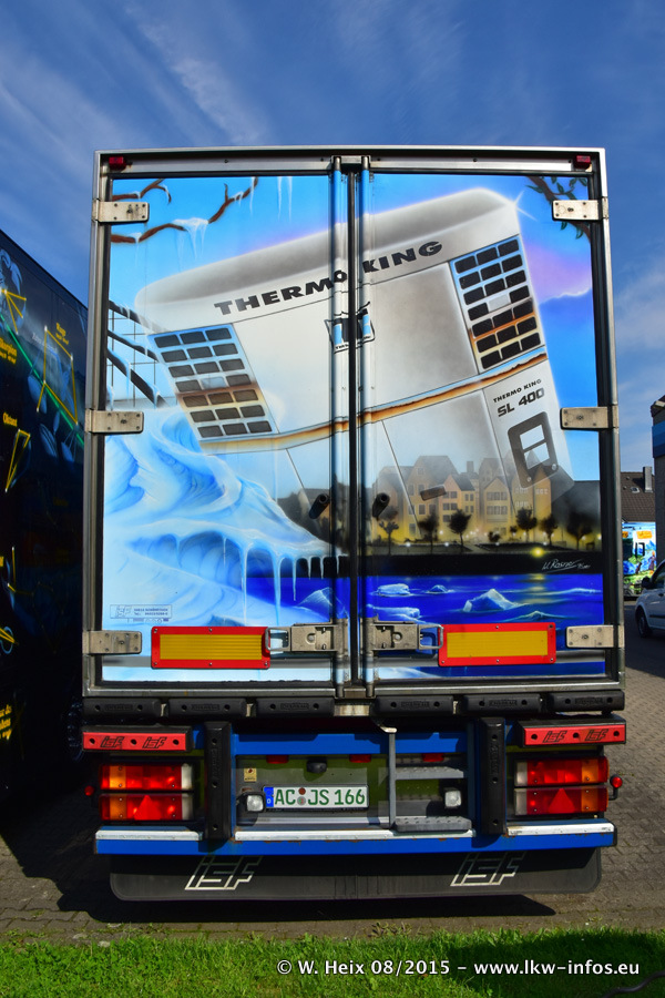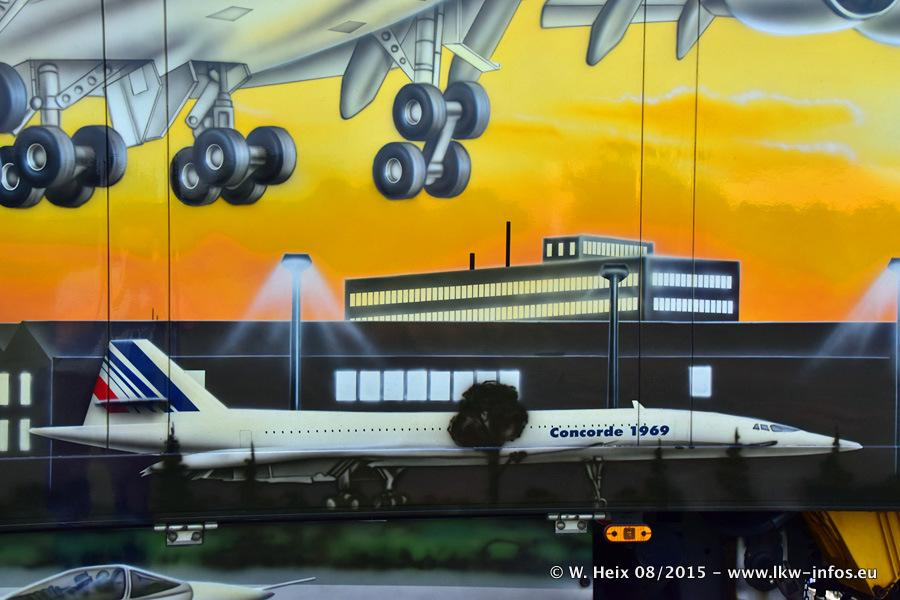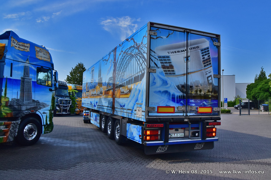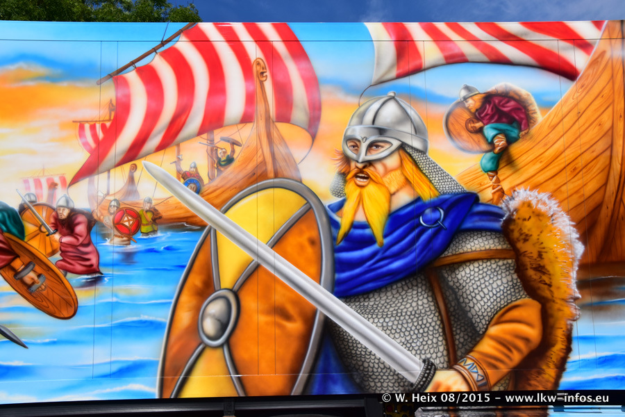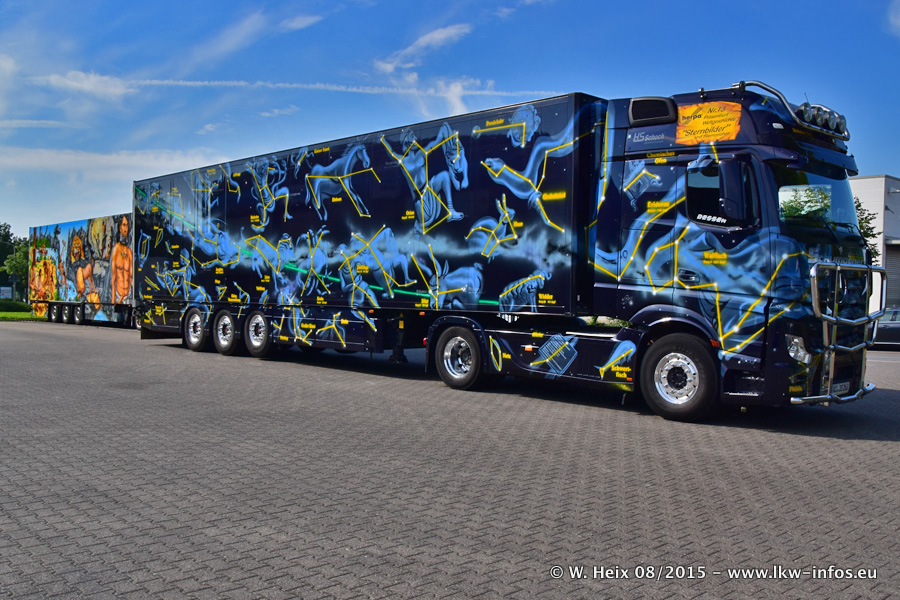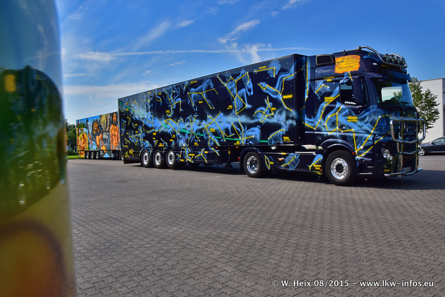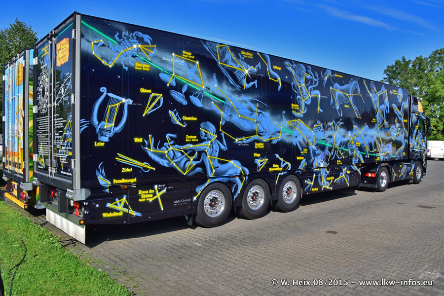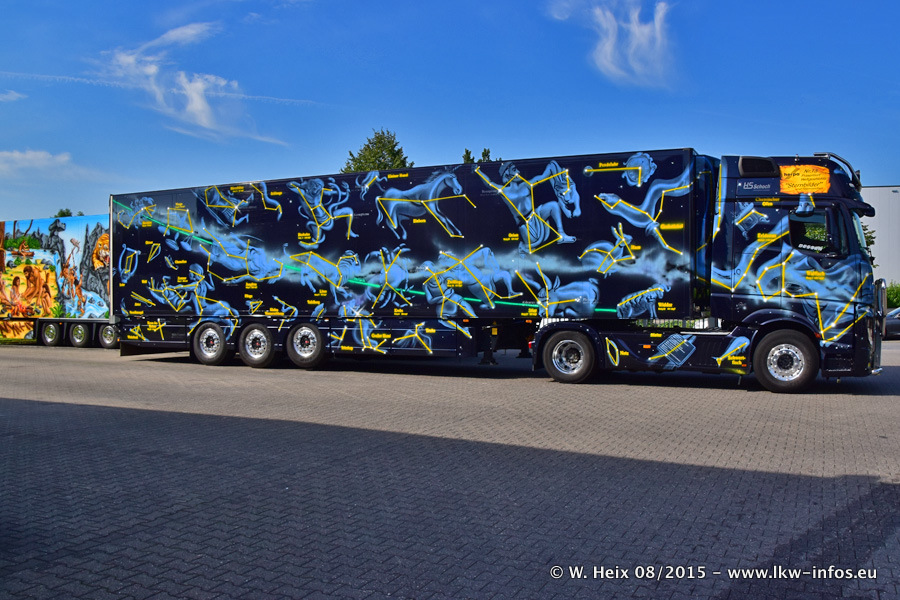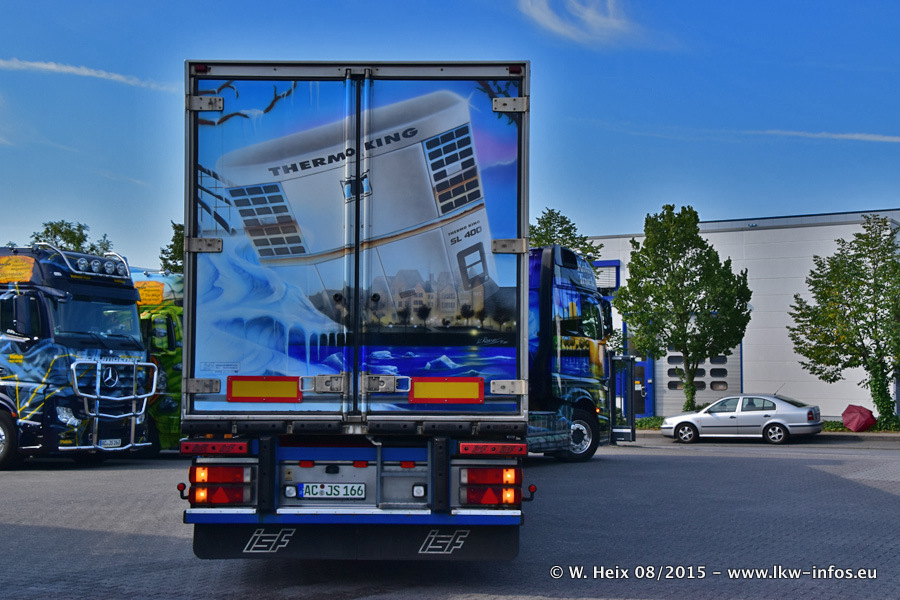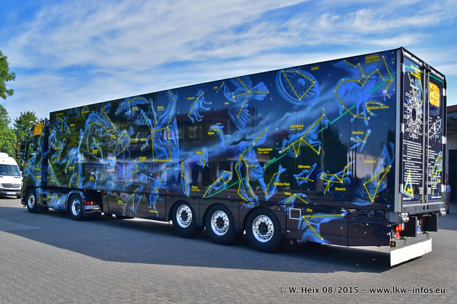 Bei diesem Besuch waren bis auf einen LKW alle Showtrucks der Herpa-Serie zuhause. Schumacher hat ja bekanntlich inzwischen den größten Teil dieser 14 Trucks im Fuhrpark. Die Nummer 1 bekam vor einigen Monaten eine neue Zugmaschine und läuft jetzt unter der Numer 1.1 "Die Wiege der Menschheit". Ende 2014 bekam Schumacher die Nummer 14 der Serie: "Herpa präsentiert Weltgeschichte Nr. 14 - Karl der Große". Das ist aktuell der letzte neue Showtruck der Herpa-Serie. Außerdem konnte ich diesmal den Köln-Truck von allen Seiten fotografieren, da dieser auch zuhause war. Danke an den/die Fahrer von Schumacher, die mir die Showtrucks zum Fotografieren auf dem Hof "ins richtige Licht" gerückt haben.