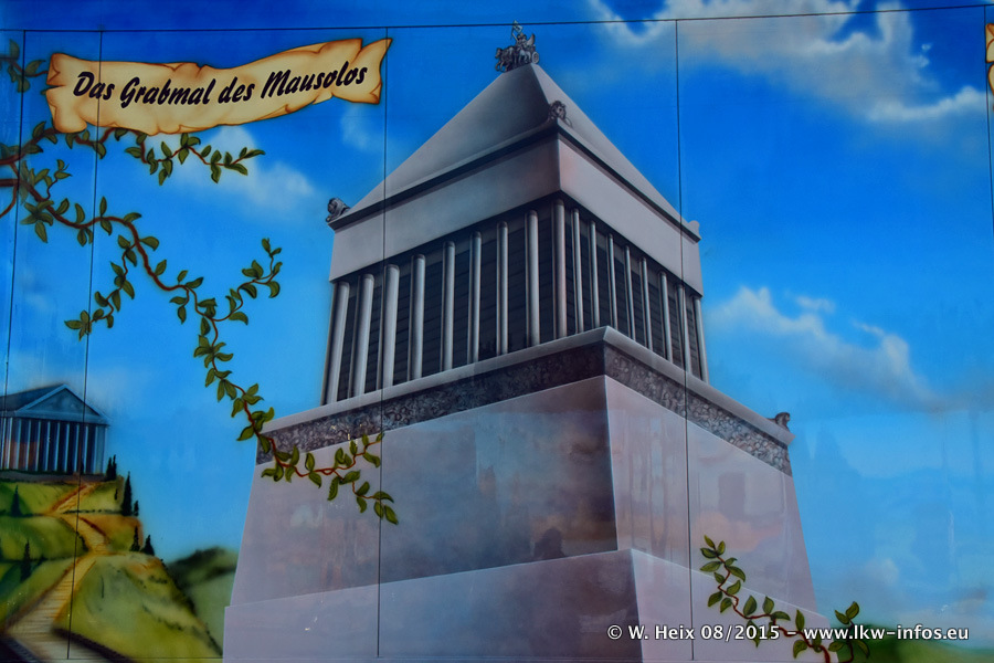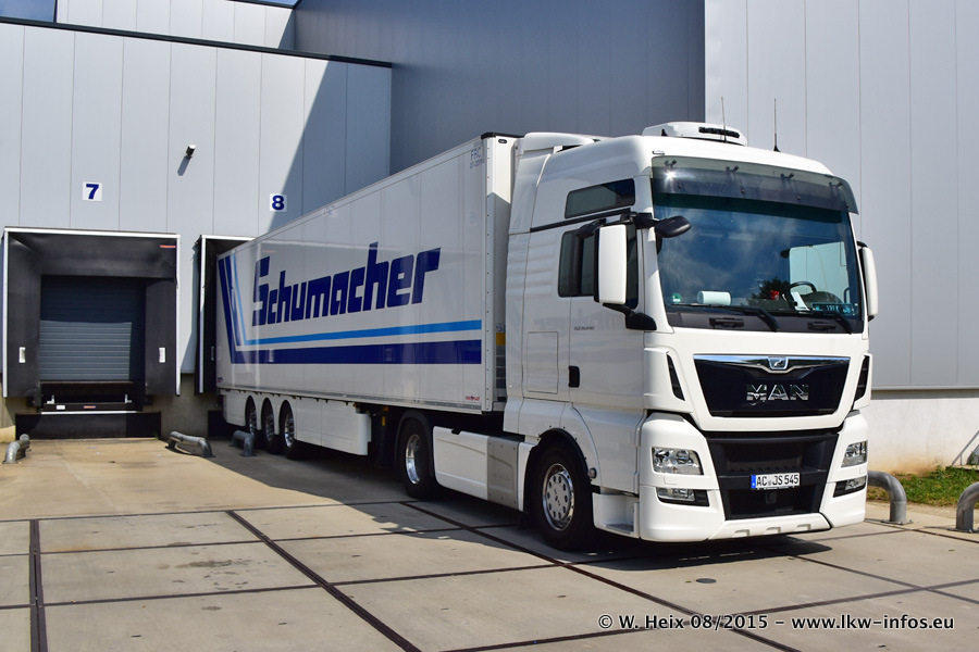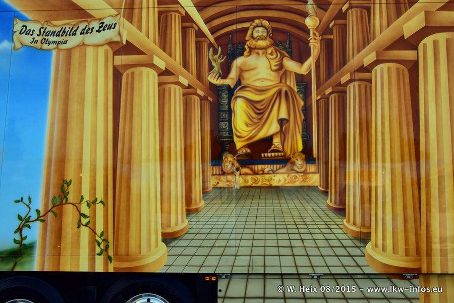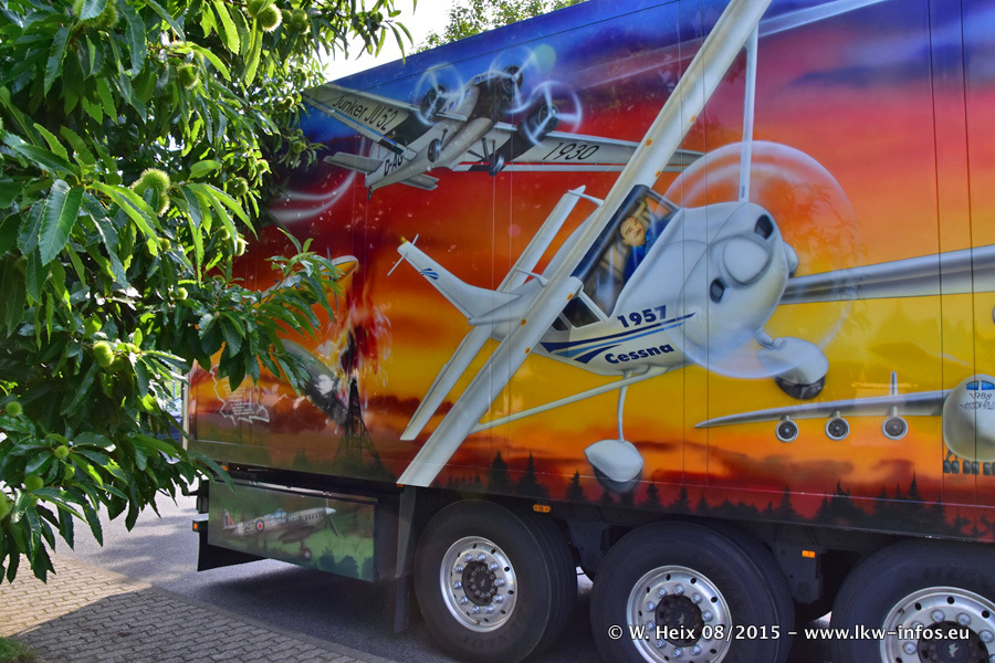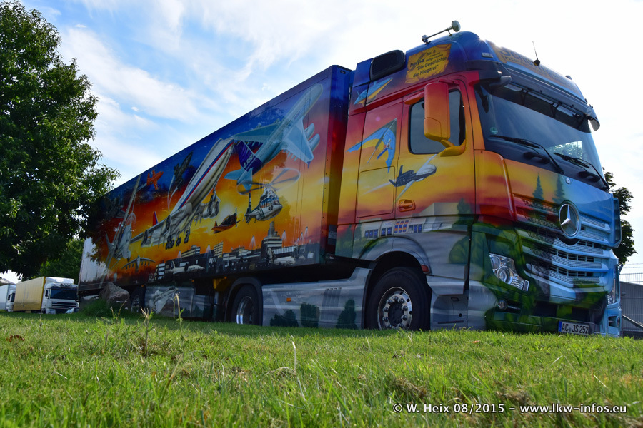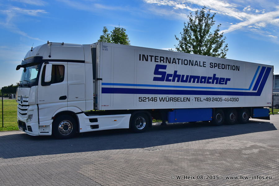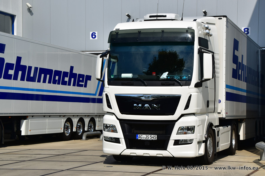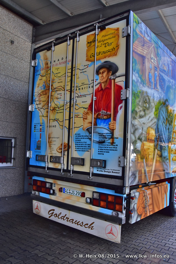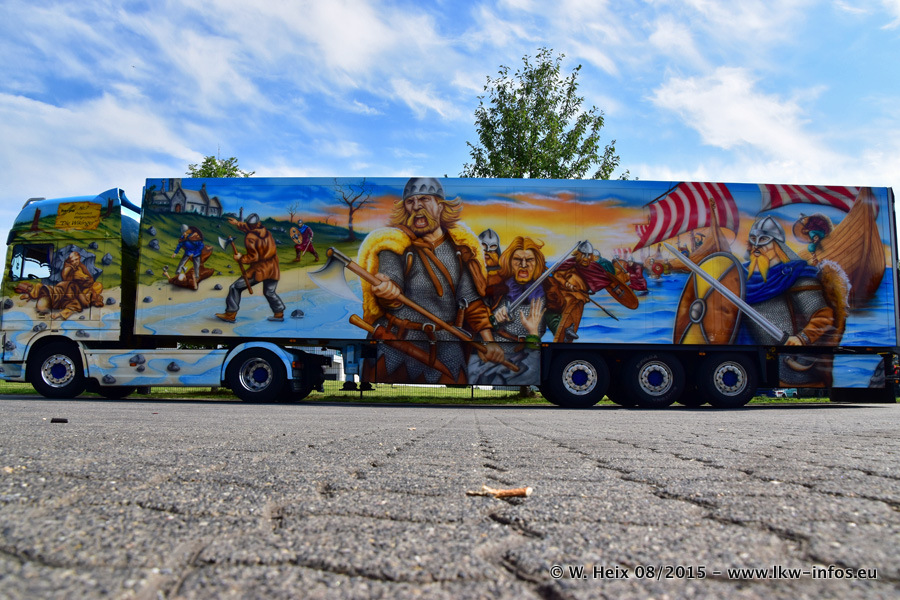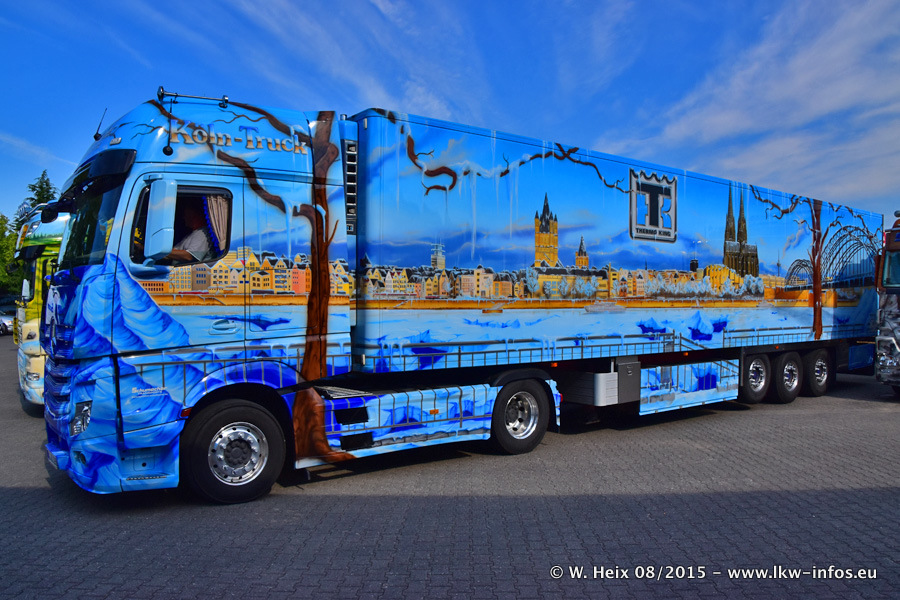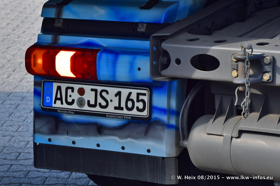 Bei diesem Besuch waren bis auf einen LKW alle Showtrucks der Herpa-Serie zuhause. Schumacher hat ja bekanntlich inzwischen den größten Teil dieser 14 Trucks im Fuhrpark. Die Nummer 1 bekam vor einigen Monaten eine neue Zugmaschine und läuft jetzt unter der Numer 1.1 "Die Wiege der Menschheit". Ende 2014 bekam Schumacher die Nummer 14 der Serie: "Herpa präsentiert Weltgeschichte Nr. 14 - Karl der Große". Das ist aktuell der letzte neue Showtruck der Herpa-Serie. Außerdem konnte ich diesmal den Köln-Truck von allen Seiten fotografieren, da dieser auch zuhause war. Danke an den/die Fahrer von Schumacher, die mir die Showtrucks zum Fotografieren auf dem Hof "ins richtige Licht" gerückt haben.
