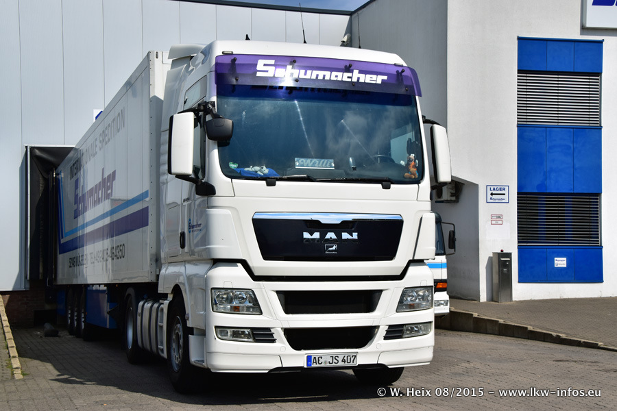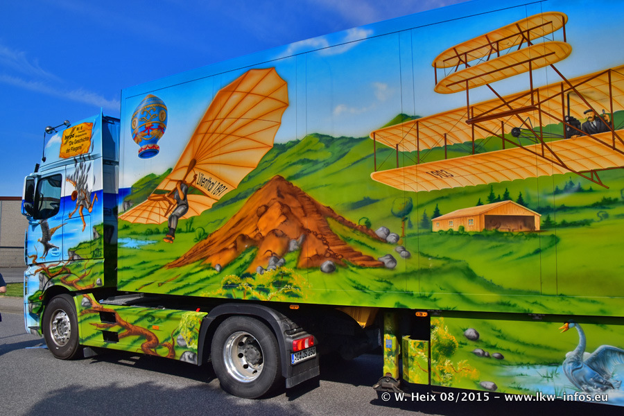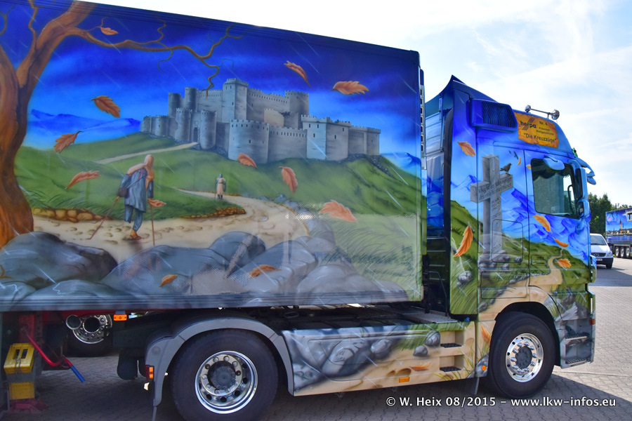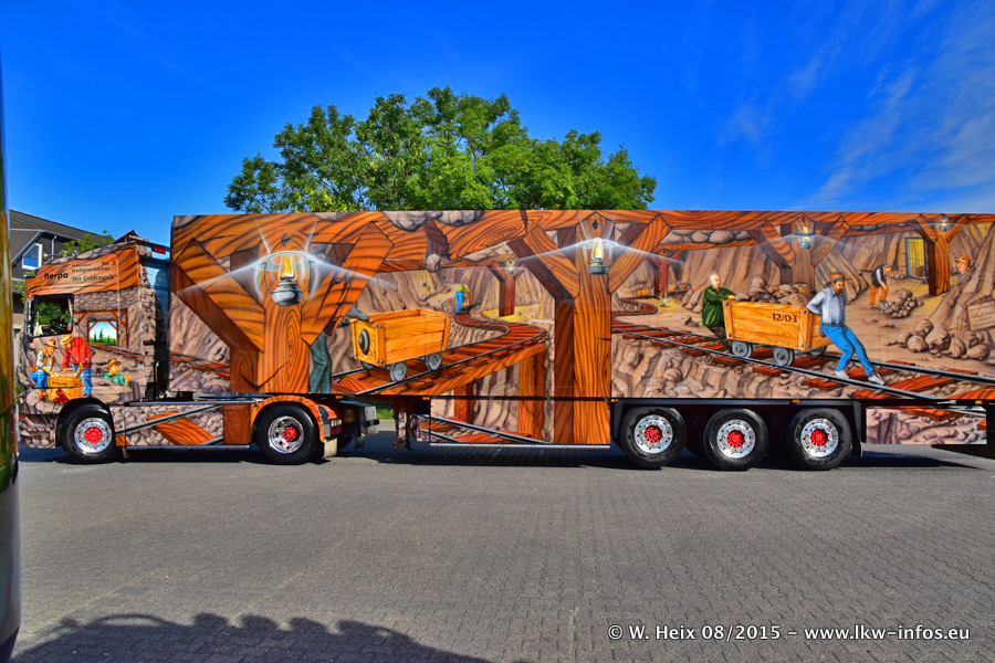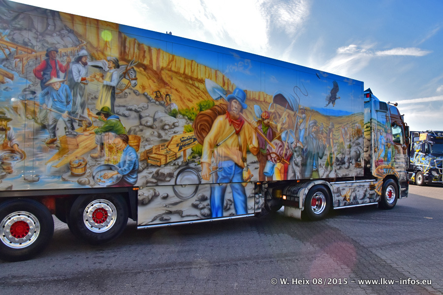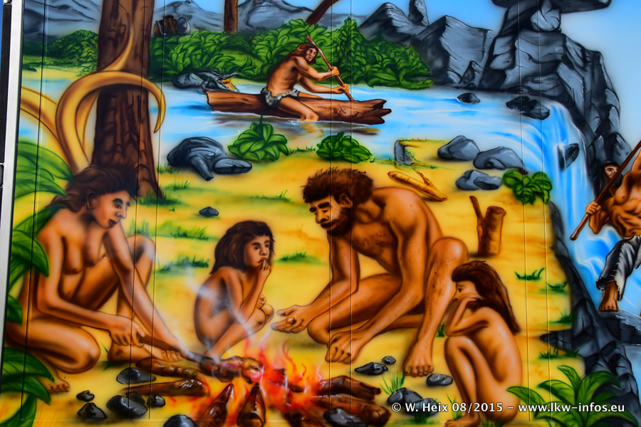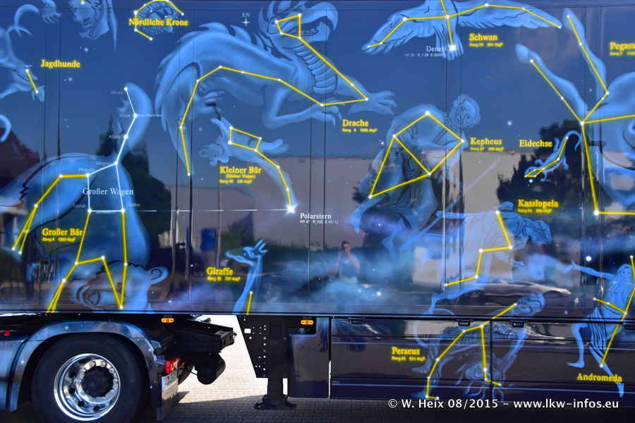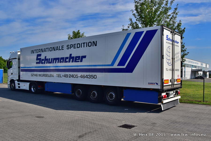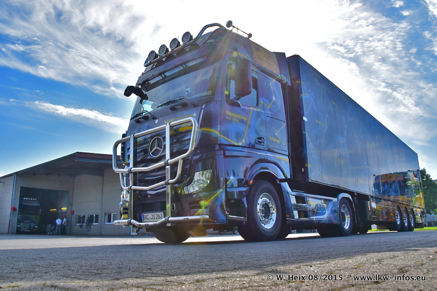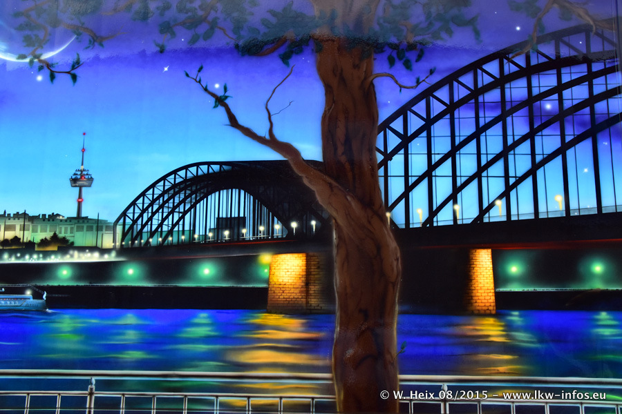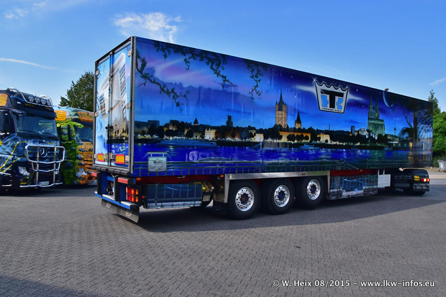 Bei diesem Besuch waren bis auf einen LKW alle Showtrucks der Herpa-Serie zuhause. Schumacher hat ja bekanntlich inzwischen den größten Teil dieser 14 Trucks im Fuhrpark. Die Nummer 1 bekam vor einigen Monaten eine neue Zugmaschine und läuft jetzt unter der Numer 1.1 "Die Wiege der Menschheit". Ende 2014 bekam Schumacher die Nummer 14 der Serie: "Herpa präsentiert Weltgeschichte Nr. 14 - Karl der Große". Das ist aktuell der letzte neue Showtruck der Herpa-Serie. Außerdem konnte ich diesmal den Köln-Truck von allen Seiten fotografieren, da dieser auch zuhause war. Danke an den/die Fahrer von Schumacher, die mir die Showtrucks zum Fotografieren auf dem Hof "ins richtige Licht" gerückt haben.