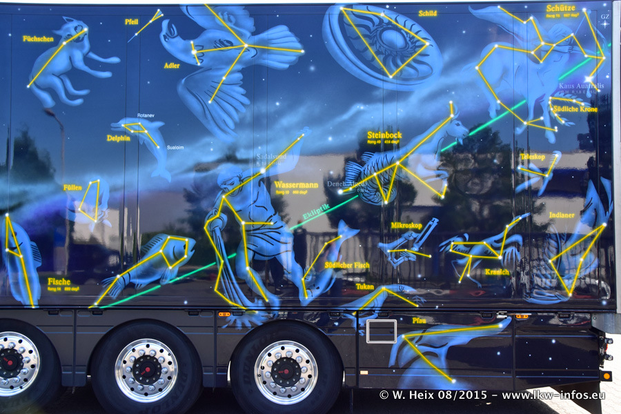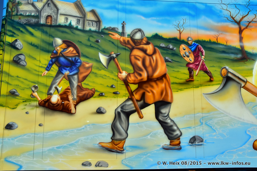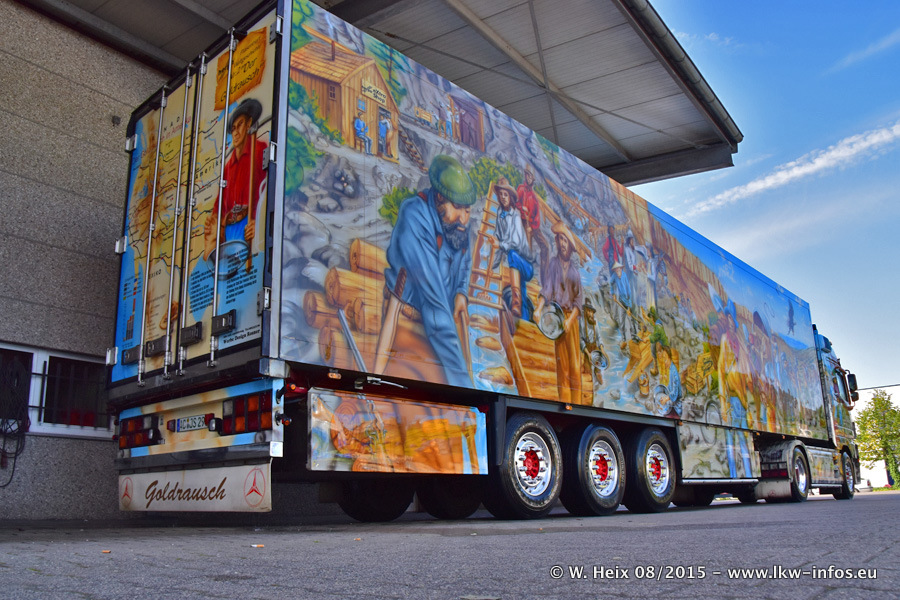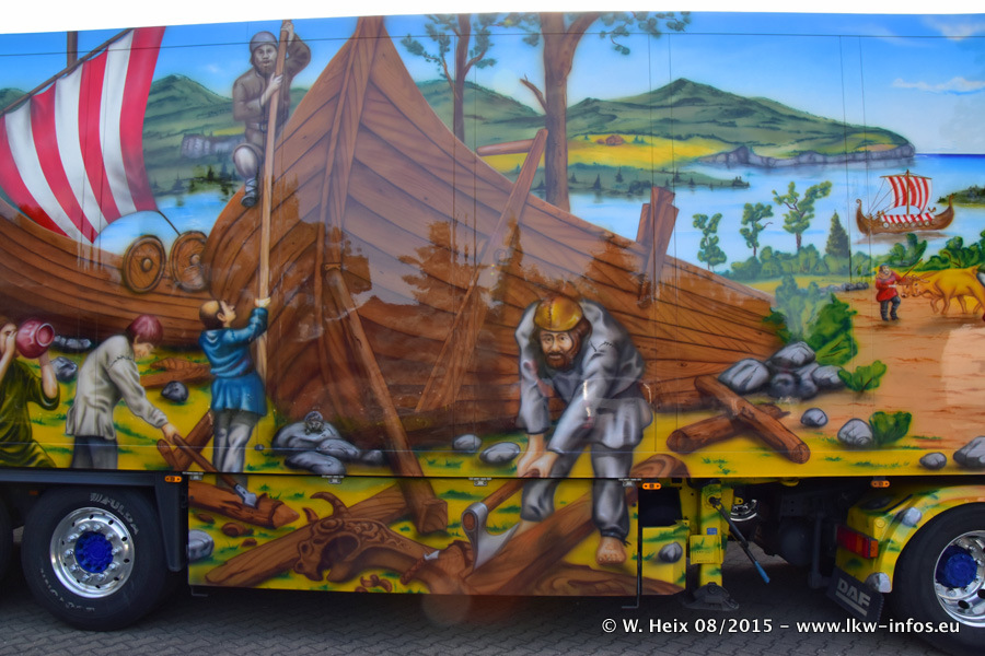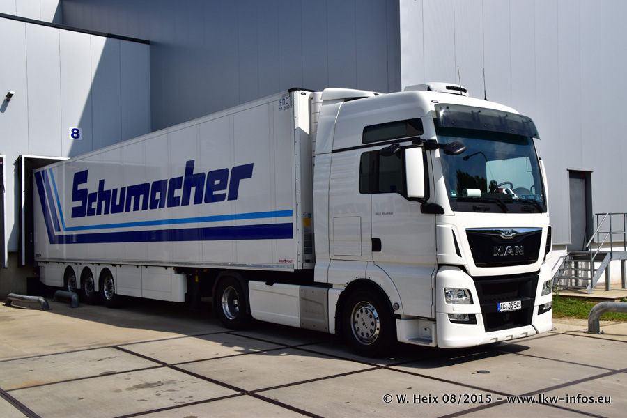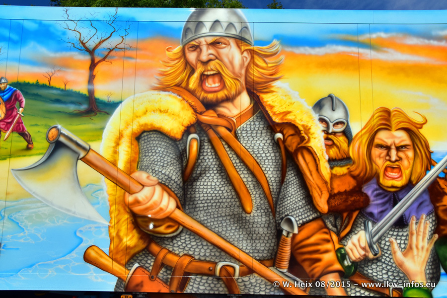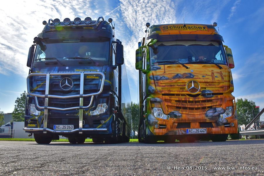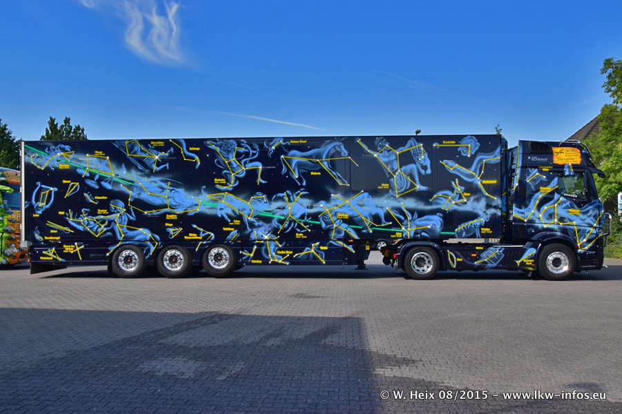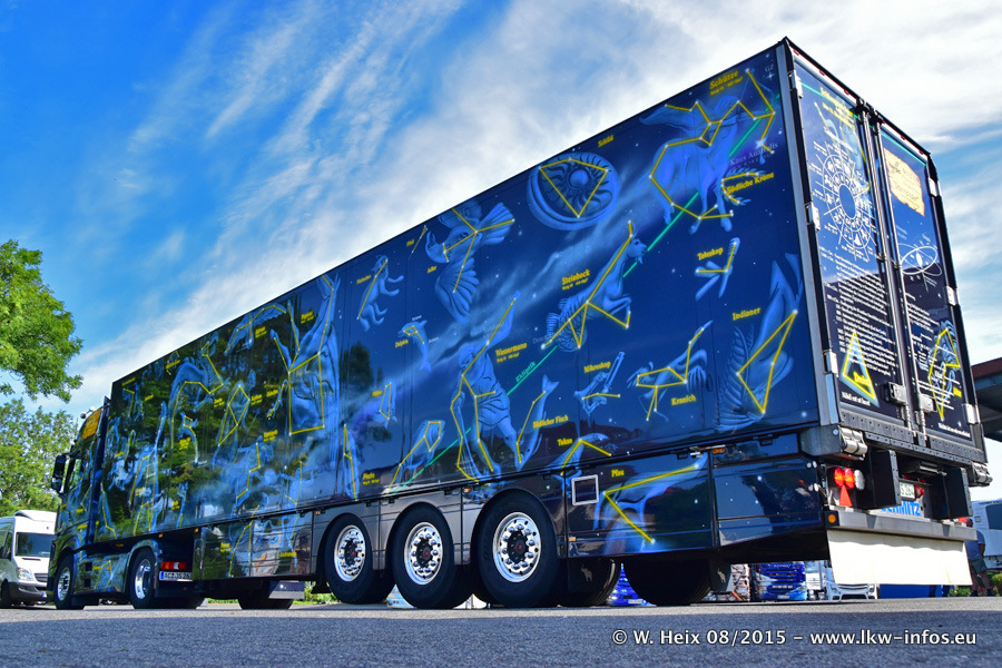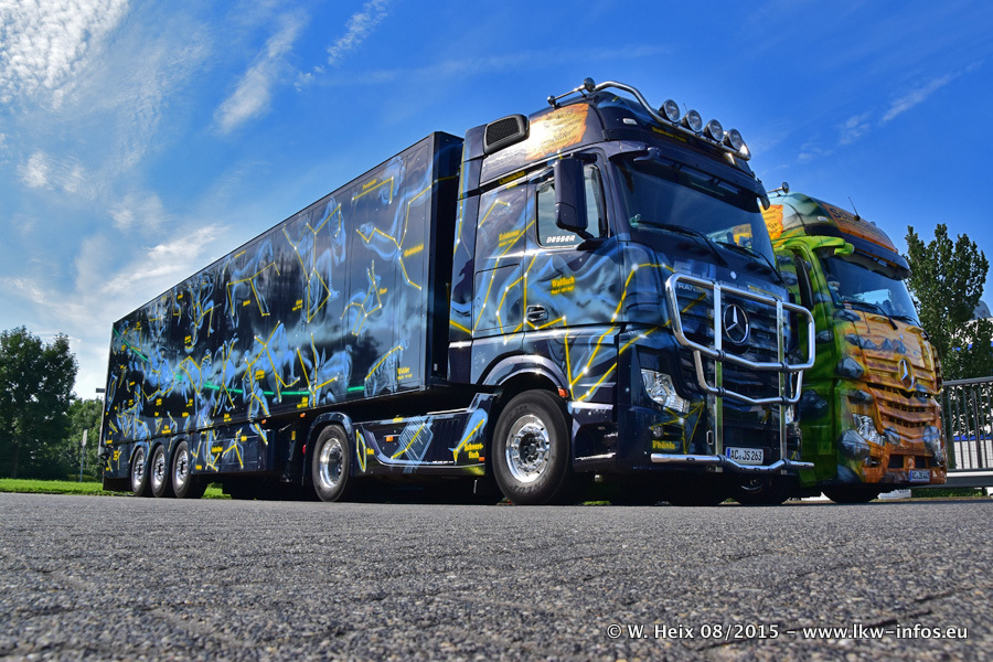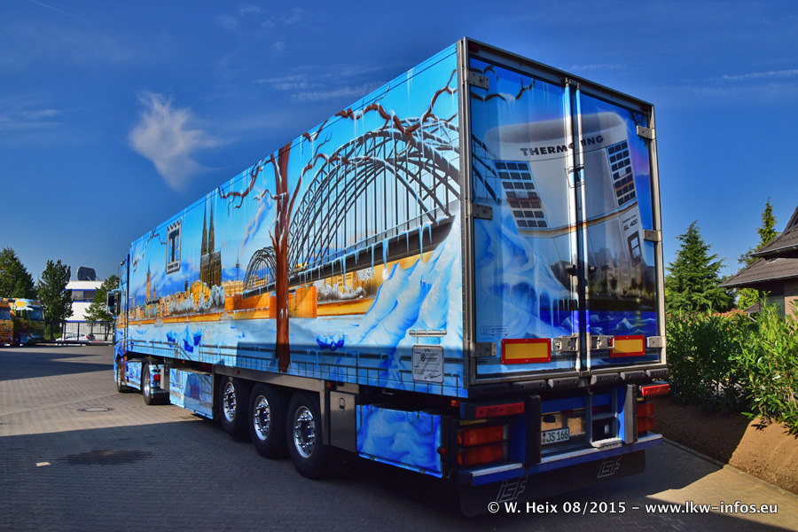Bei diesem Besuch waren bis auf einen LKW alle Showtrucks der Herpa-Serie zuhause. Schumacher hat ja bekanntlich inzwischen den größten Teil dieser 14 Trucks im Fuhrpark. Die Nummer 1 bekam vor einigen Monaten eine neue Zugmaschine und läuft jetzt unter der Numer 1.1 "Die Wiege der Menschheit". Ende 2014 bekam Schumacher die Nummer 14 der Serie: "Herpa präsentiert Weltgeschichte Nr. 14 - Karl der Große". Das ist aktuell der letzte neue Showtruck der Herpa-Serie. Außerdem konnte ich diesmal den Köln-Truck von allen Seiten fotografieren, da dieser auch zuhause war. Danke an den/die Fahrer von Schumacher, die mir die Showtrucks zum Fotografieren auf dem Hof "ins richtige Licht" gerückt haben.