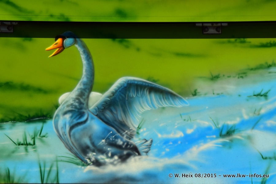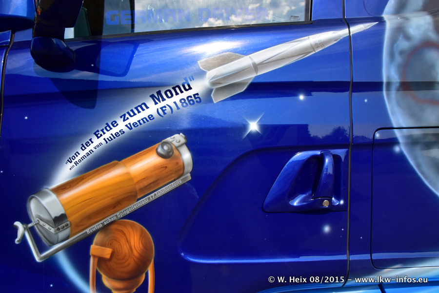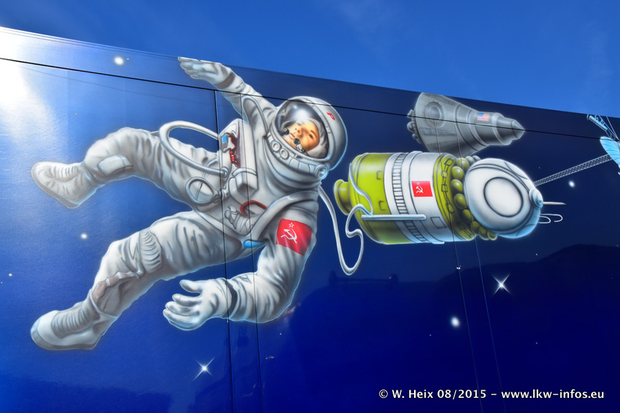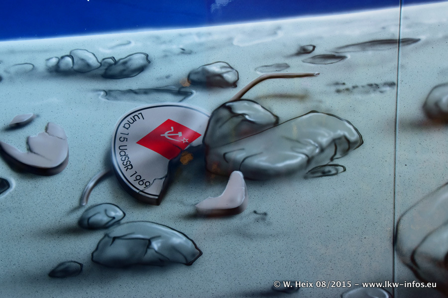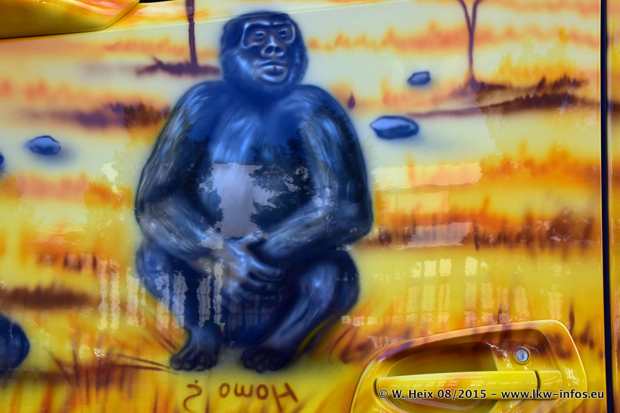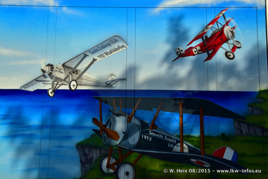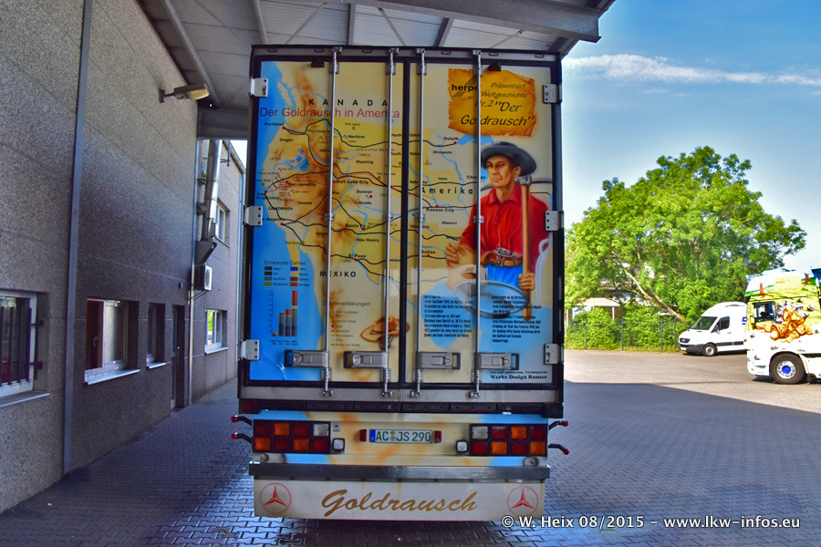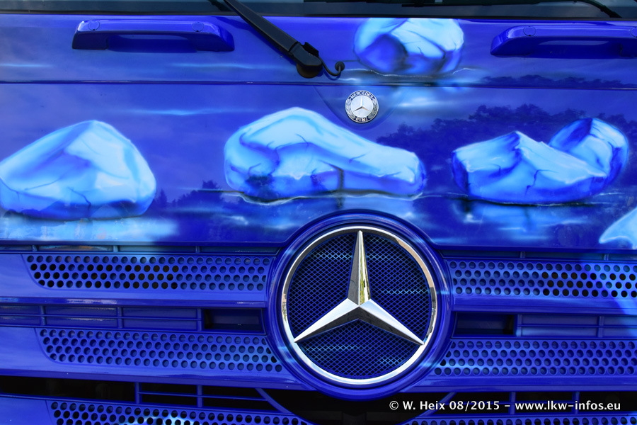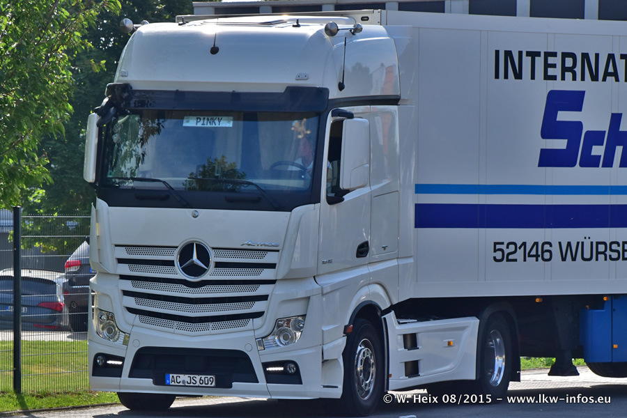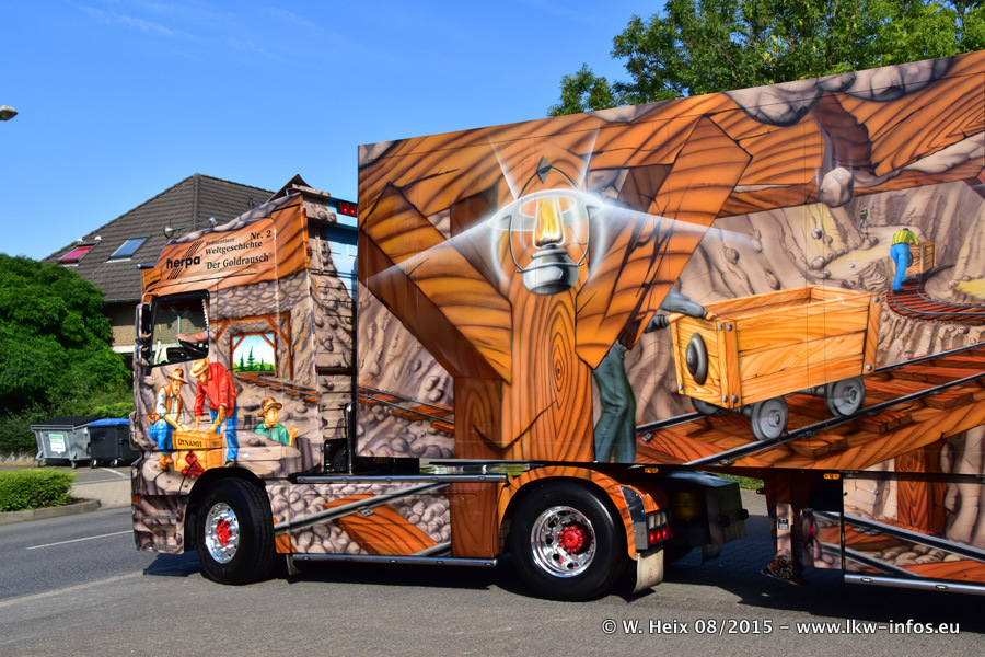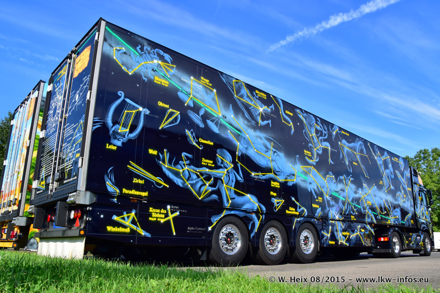Bei diesem Besuch waren bis auf einen LKW alle Showtrucks der Herpa-Serie zuhause. Schumacher hat ja bekanntlich inzwischen den größten Teil dieser 14 Trucks im Fuhrpark. Die Nummer 1 bekam vor einigen Monaten eine neue Zugmaschine und läuft jetzt unter der Numer 1.1 "Die Wiege der Menschheit". Ende 2014 bekam Schumacher die Nummer 14 der Serie: "Herpa präsentiert Weltgeschichte Nr. 14 - Karl der Große". Das ist aktuell der letzte neue Showtruck der Herpa-Serie. Außerdem konnte ich diesmal den Köln-Truck von allen Seiten fotografieren, da dieser auch zuhause war. Danke an den/die Fahrer von Schumacher, die mir die Showtrucks zum Fotografieren auf dem Hof "ins richtige Licht" gerückt haben.