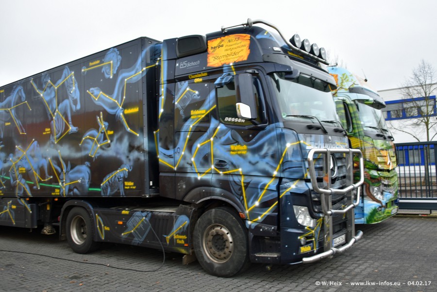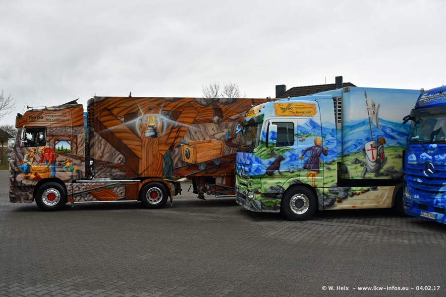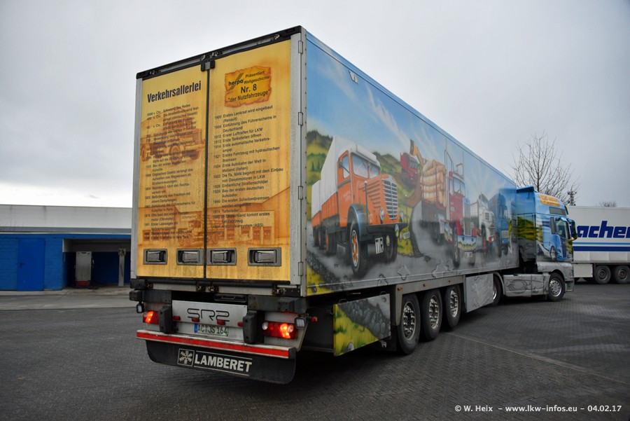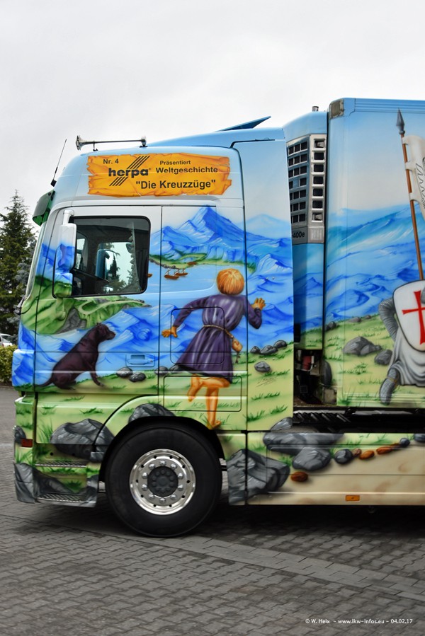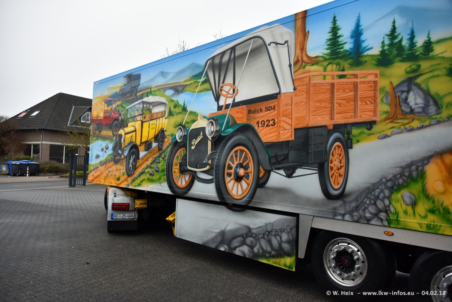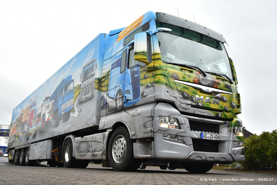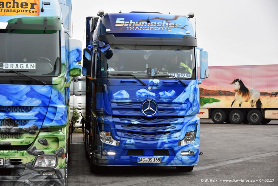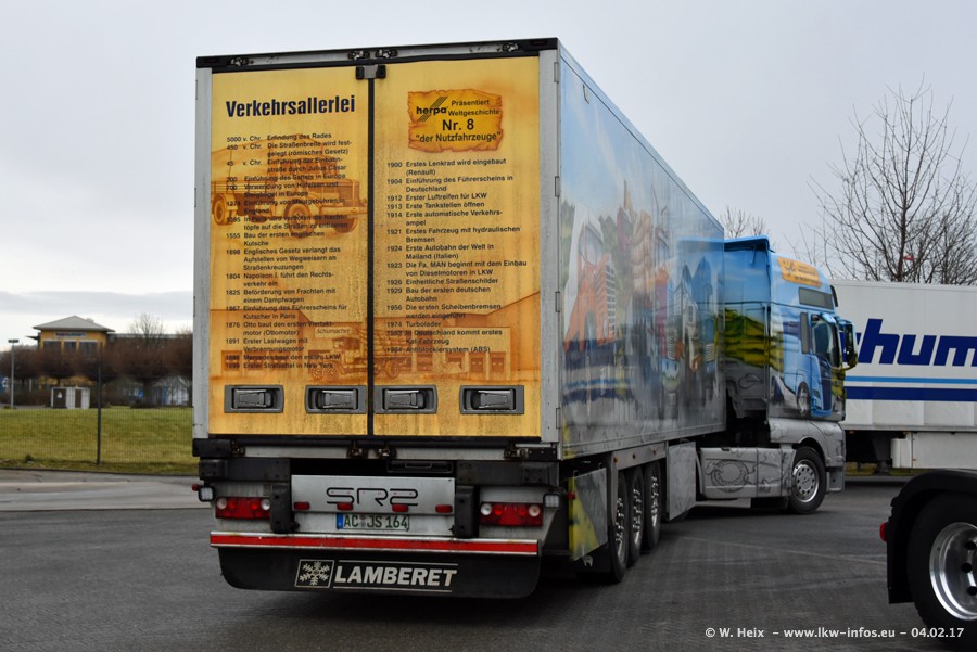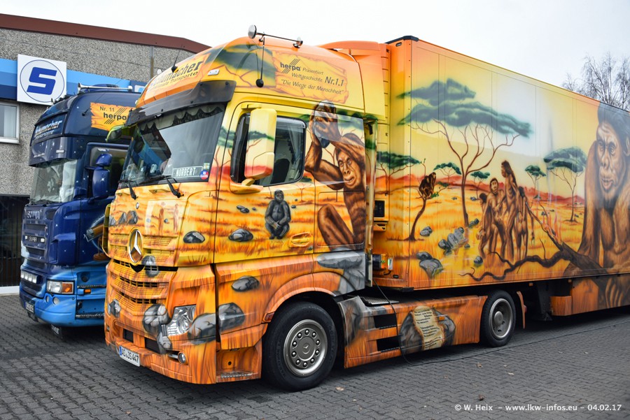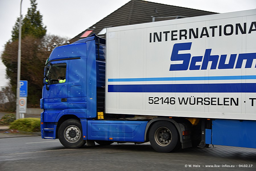 Es sind seit dem letzten Besuch bei Schumacher schon wieder rund 1,5 Jahre vergangen. Eigentlich sollte heute die Sonne scheinen, aber das Wetter war dann leider doch schlechter als erwartet. Trotzdem konnte ich wieder viele schöne Bilder machen. Bereits im Sommer 2015 (kurz nach meinem letzten Besuch) hat Schumacher den von der Spedition Sturm aus Viersen übernommenen Showtruck "Herpa/Die Geschichte der Nutzfahrzeuge" bekommen. Die Zugmaschine (Scania R 500 V8) wurde verkauft und durch einen MAN TGX Euro 6 ersetzt. Heute konnte ich von diesem LKW viele Bilder machen. Auf den ersten Fotos war der Showtruck (noch) nicht gewaschen. Aber nach der Fahrt durch die firmeneigene Waschanlage konnte ich nochmals schöne Fotos machen. In den letzten Monaten wurde der Fuhrpark zudem mit Zugmaschinen von Mercedes-Benz und MAN modernisiert. Aber bei diesem Besuch habe ich mich überwiegend auf das Fotografieren der Showtrucks beschränkt.