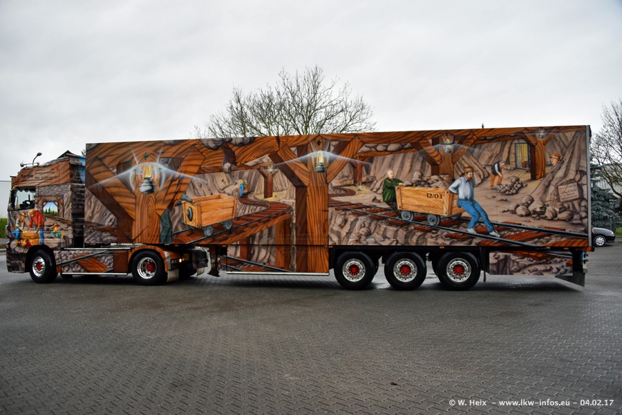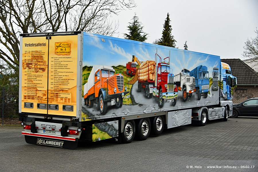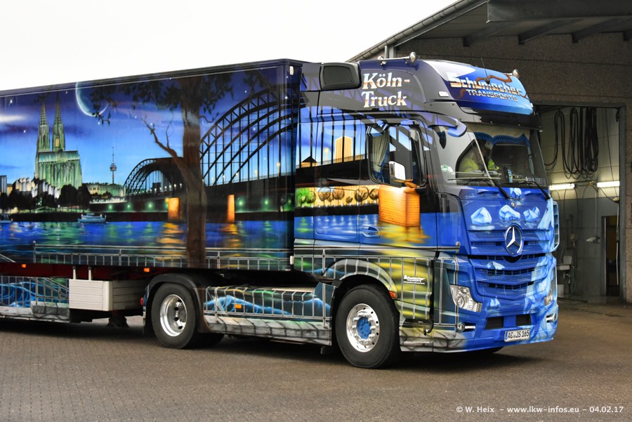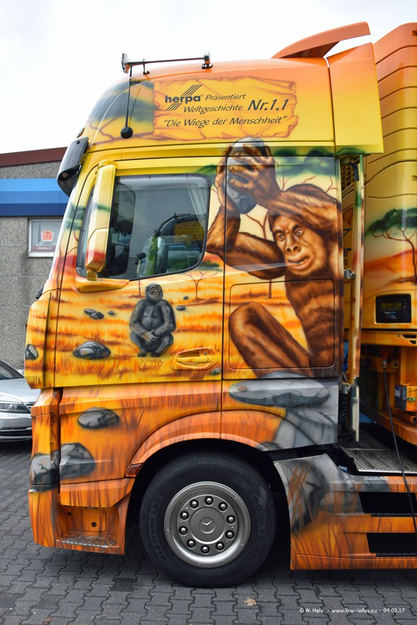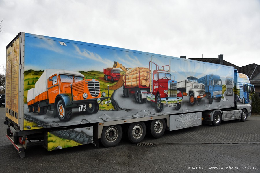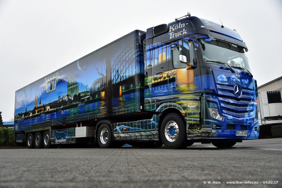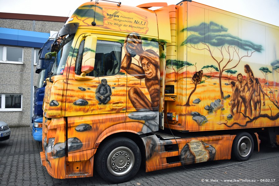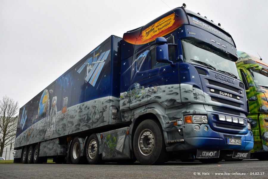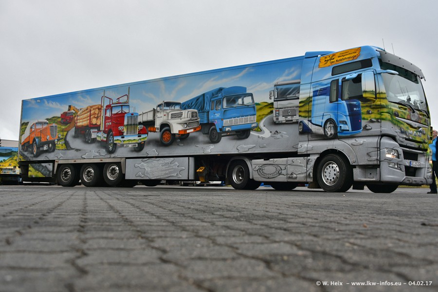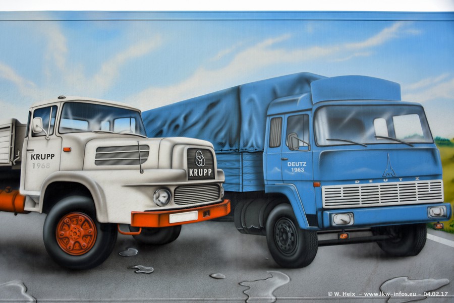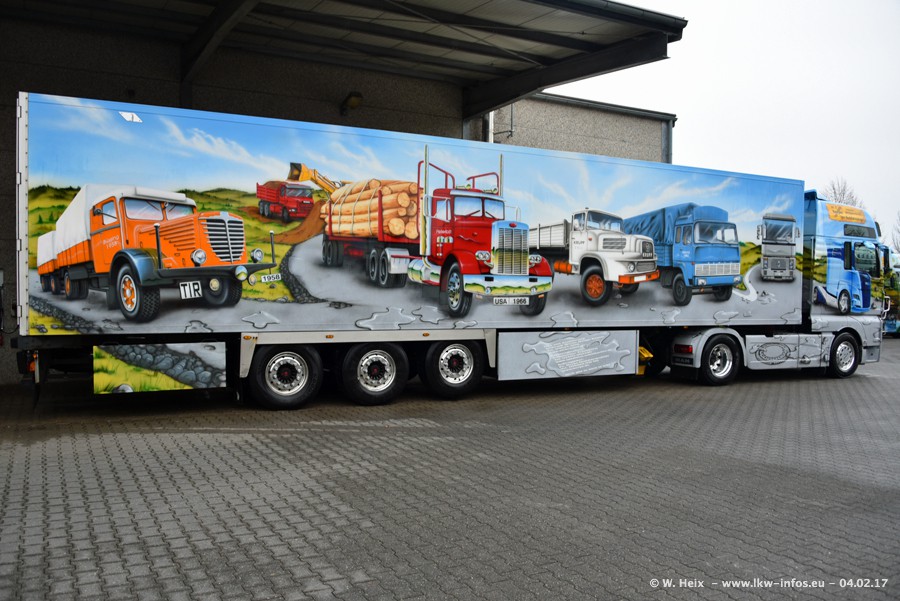 Es sind seit dem letzten Besuch bei Schumacher schon wieder rund 1,5 Jahre vergangen. Eigentlich sollte heute die Sonne scheinen, aber das Wetter war dann leider doch schlechter als erwartet. Trotzdem konnte ich wieder viele schöne Bilder machen. Bereits im Sommer 2015 (kurz nach meinem letzten Besuch) hat Schumacher den von der Spedition Sturm aus Viersen übernommenen Showtruck "Herpa/Die Geschichte der Nutzfahrzeuge" bekommen. Die Zugmaschine (Scania R 500 V8) wurde verkauft und durch einen MAN TGX Euro 6 ersetzt. Heute konnte ich von diesem LKW viele Bilder machen. Auf den ersten Fotos war der Showtruck (noch) nicht gewaschen. Aber nach der Fahrt durch die firmeneigene Waschanlage konnte ich nochmals schöne Fotos machen. In den letzten Monaten wurde der Fuhrpark zudem mit Zugmaschinen von Mercedes-Benz und MAN modernisiert. Aber bei diesem Besuch habe ich mich überwiegend auf das Fotografieren der Showtrucks beschränkt.