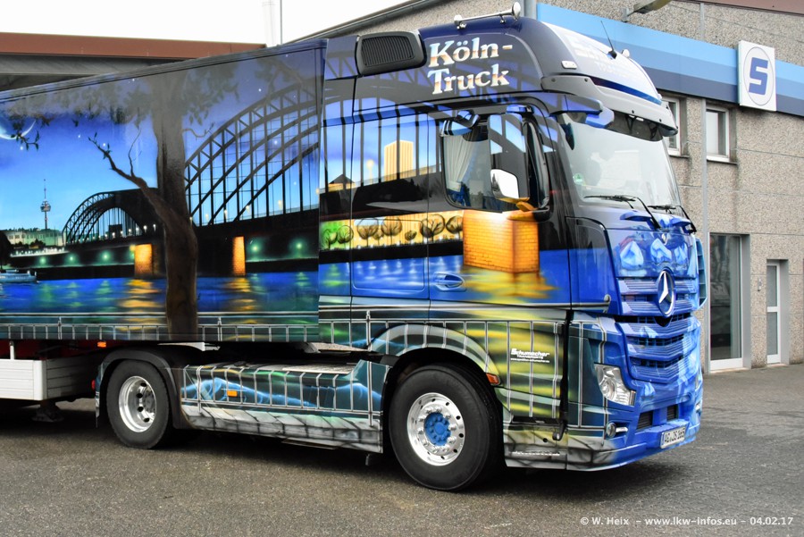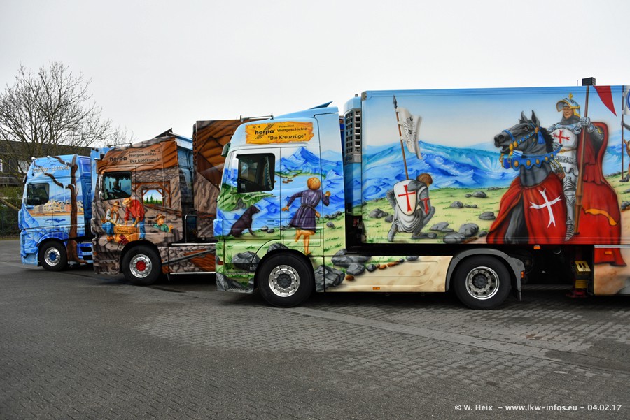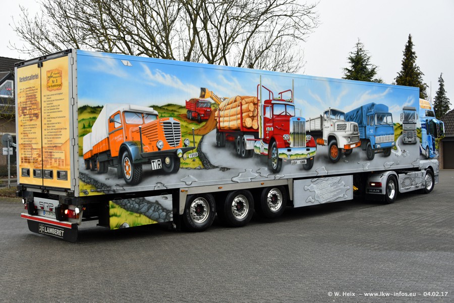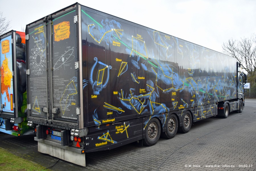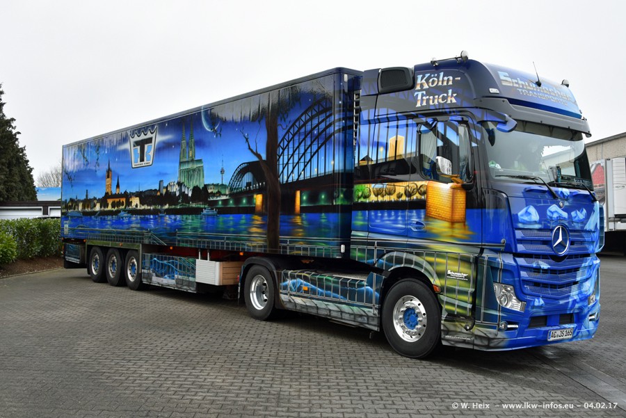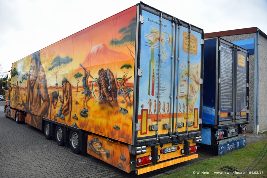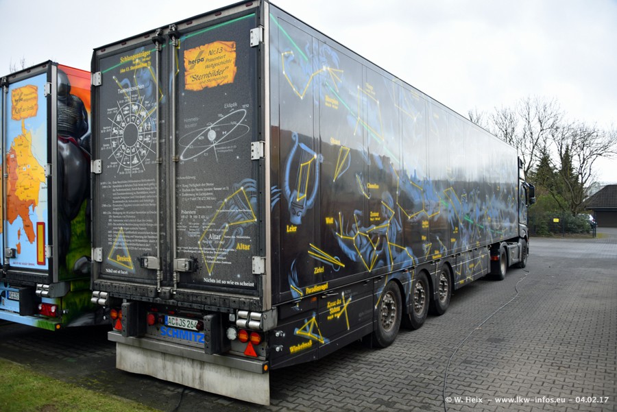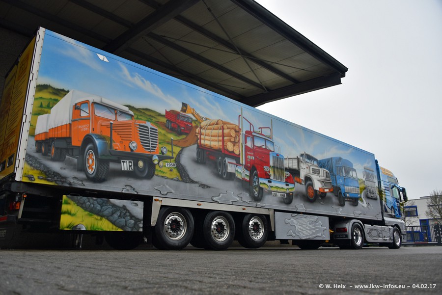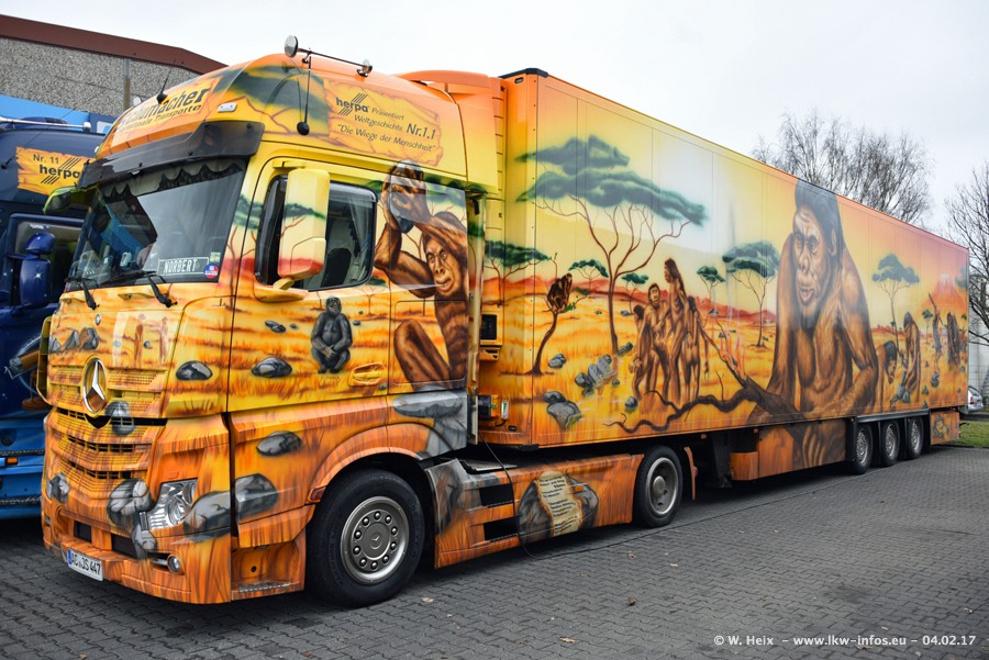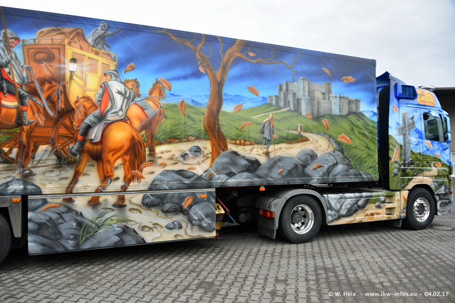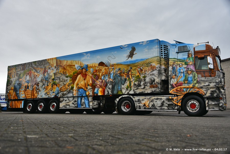 Es sind seit dem letzten Besuch bei Schumacher schon wieder rund 1,5 Jahre vergangen. Eigentlich sollte heute die Sonne scheinen, aber das Wetter war dann leider doch schlechter als erwartet. Trotzdem konnte ich wieder viele schöne Bilder machen. Bereits im Sommer 2015 (kurz nach meinem letzten Besuch) hat Schumacher den von der Spedition Sturm aus Viersen übernommenen Showtruck "Herpa/Die Geschichte der Nutzfahrzeuge" bekommen. Die Zugmaschine (Scania R 500 V8) wurde verkauft und durch einen MAN TGX Euro 6 ersetzt. Heute konnte ich von diesem LKW viele Bilder machen. Auf den ersten Fotos war der Showtruck (noch) nicht gewaschen. Aber nach der Fahrt durch die firmeneigene Waschanlage konnte ich nochmals schöne Fotos machen. In den letzten Monaten wurde der Fuhrpark zudem mit Zugmaschinen von Mercedes-Benz und MAN modernisiert. Aber bei diesem Besuch habe ich mich überwiegend auf das Fotografieren der Showtrucks beschränkt.