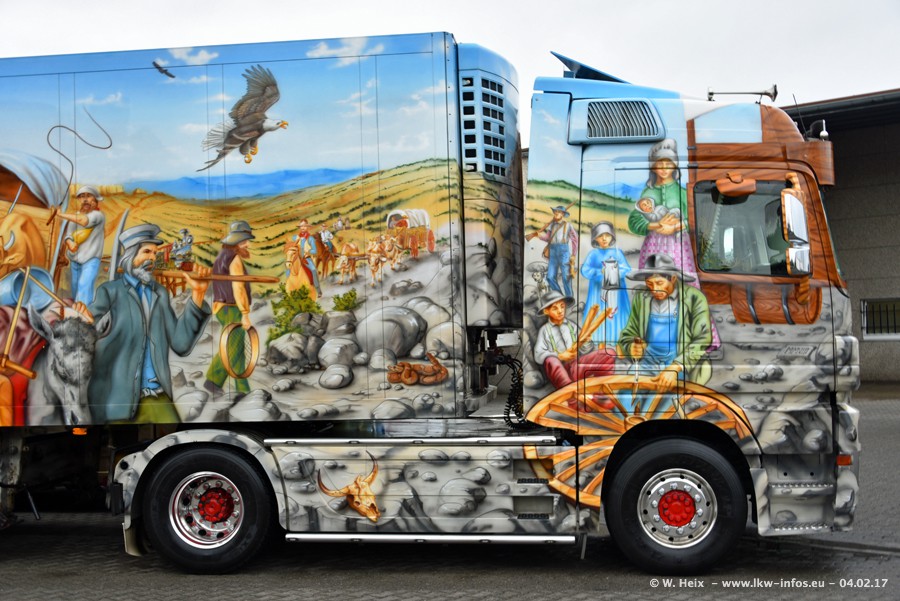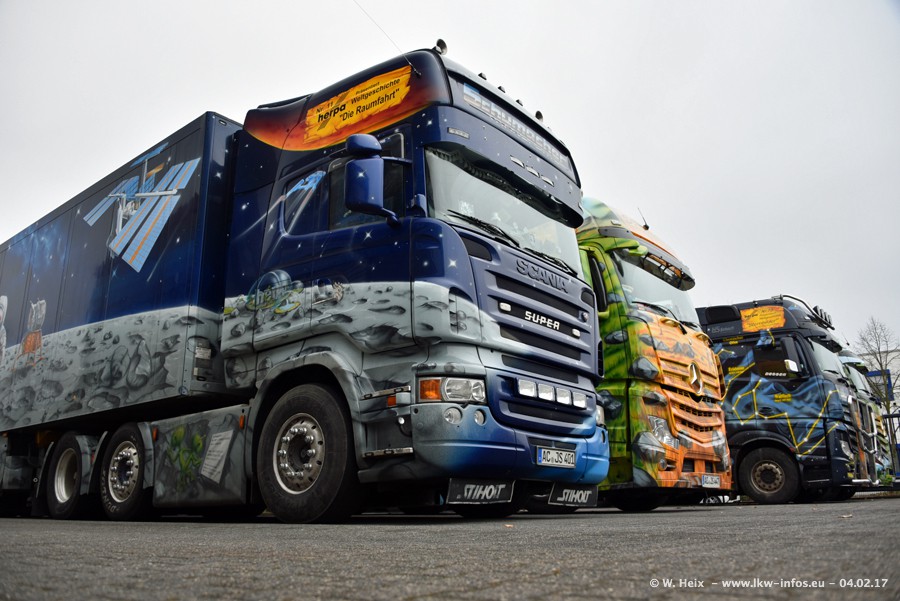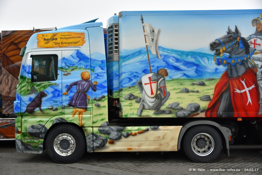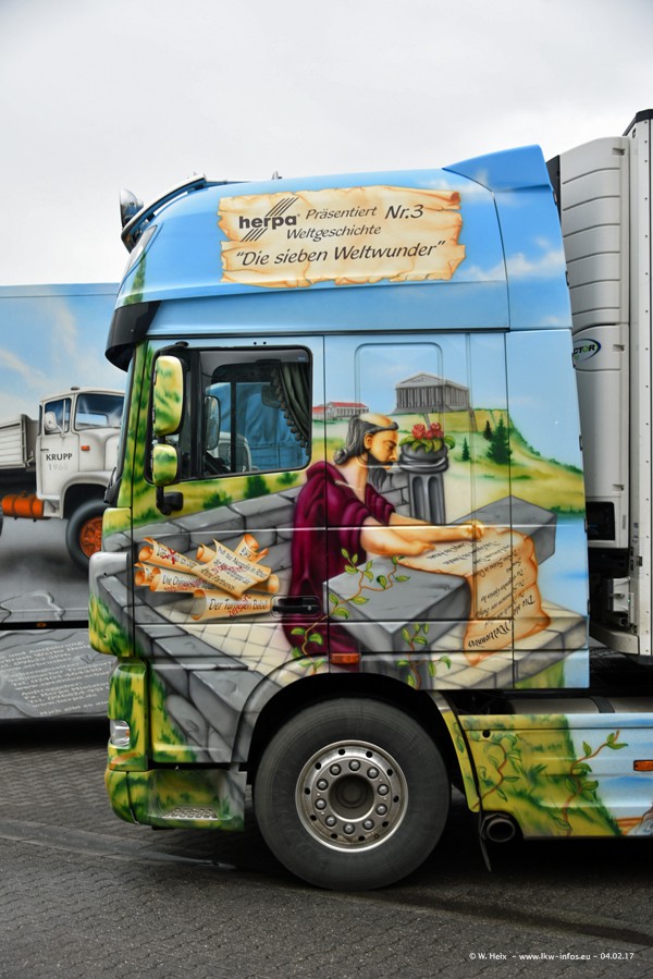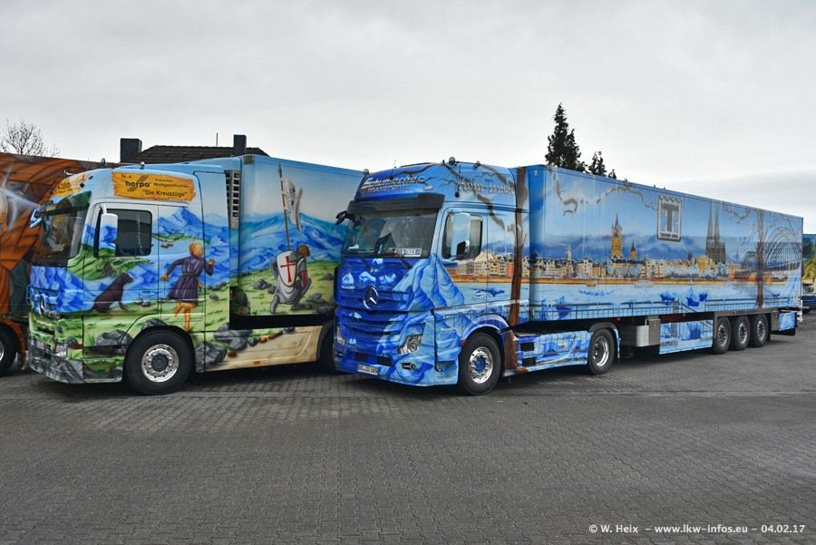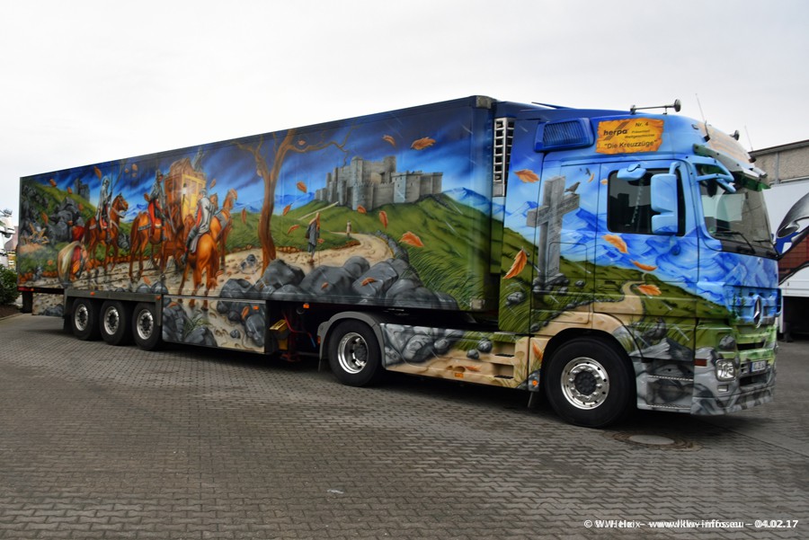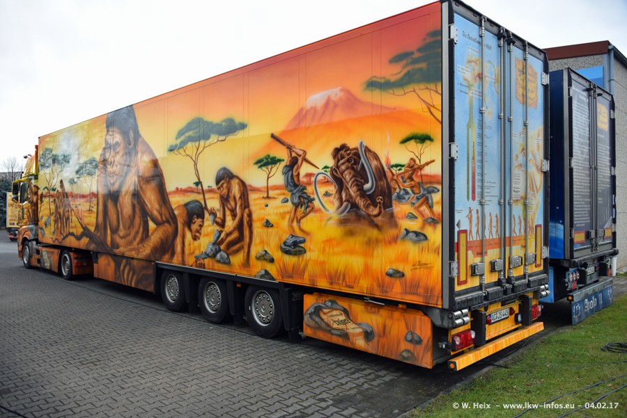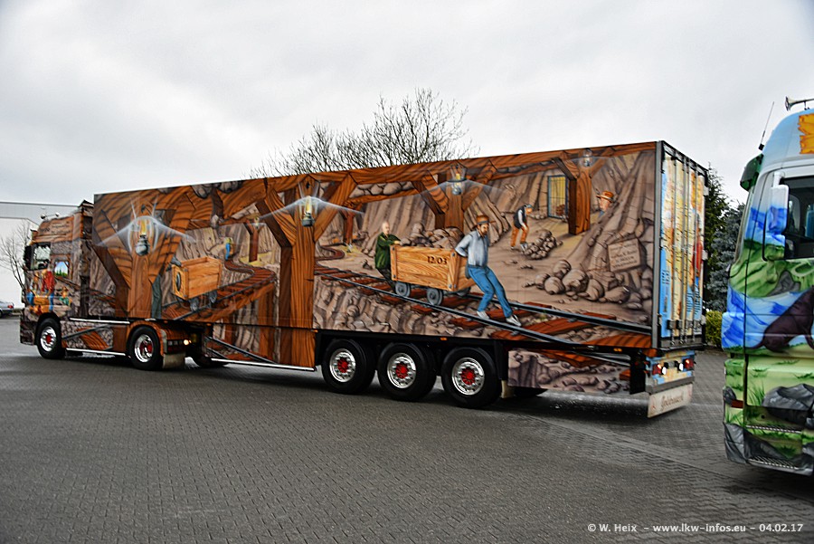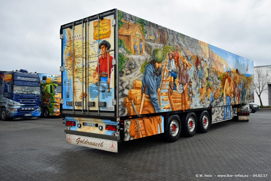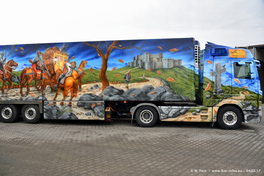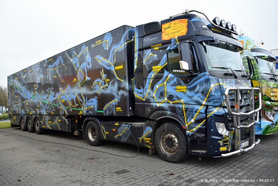 Es sind seit dem letzten Besuch bei Schumacher schon wieder rund 1,5 Jahre vergangen. Eigentlich sollte heute die Sonne scheinen, aber das Wetter war dann leider doch schlechter als erwartet. Trotzdem konnte ich wieder viele schöne Bilder machen. Bereits im Sommer 2015 (kurz nach meinem letzten Besuch) hat Schumacher den von der Spedition Sturm aus Viersen übernommenen Showtruck "Herpa/Die Geschichte der Nutzfahrzeuge" bekommen. Die Zugmaschine (Scania R 500 V8) wurde verkauft und durch einen MAN TGX Euro 6 ersetzt. Heute konnte ich von diesem LKW viele Bilder machen. Auf den ersten Fotos war der Showtruck (noch) nicht gewaschen. Aber nach der Fahrt durch die firmeneigene Waschanlage konnte ich nochmals schöne Fotos machen. In den letzten Monaten wurde der Fuhrpark zudem mit Zugmaschinen von Mercedes-Benz und MAN modernisiert. Aber bei diesem Besuch habe ich mich überwiegend auf das Fotografieren der Showtrucks beschränkt.