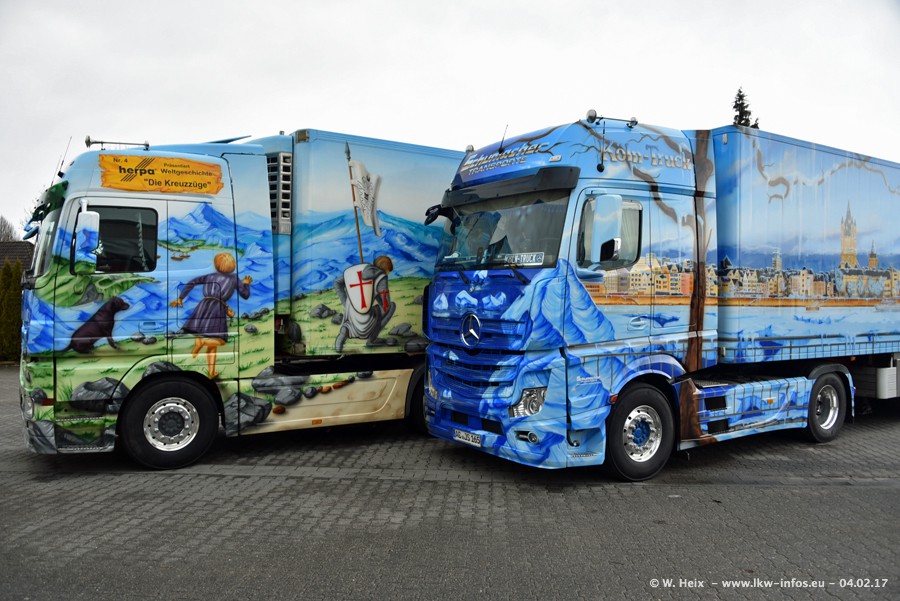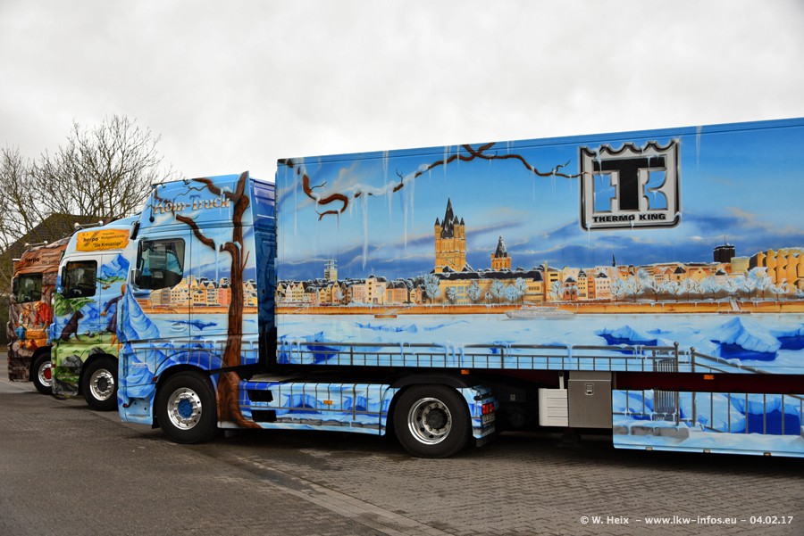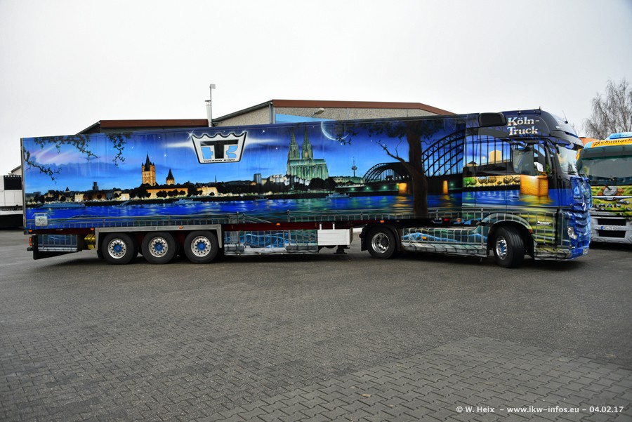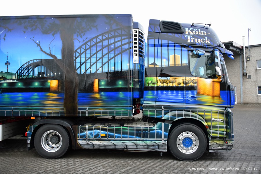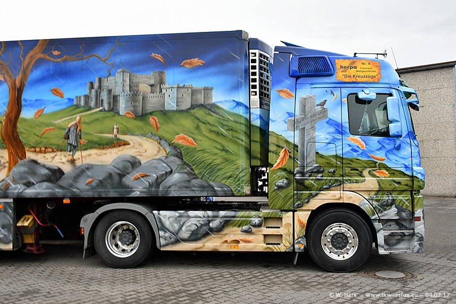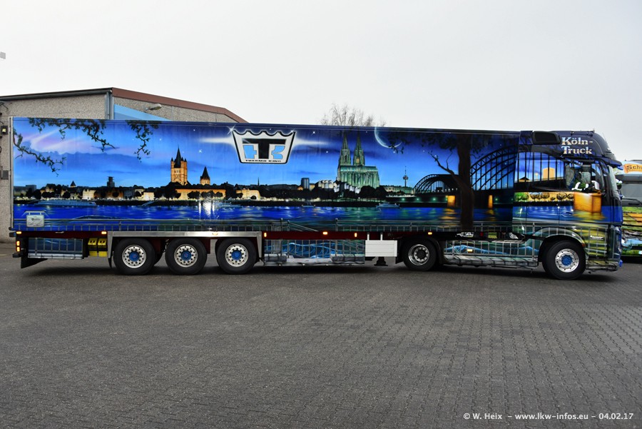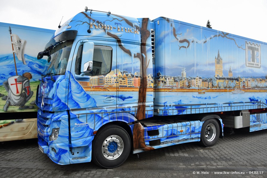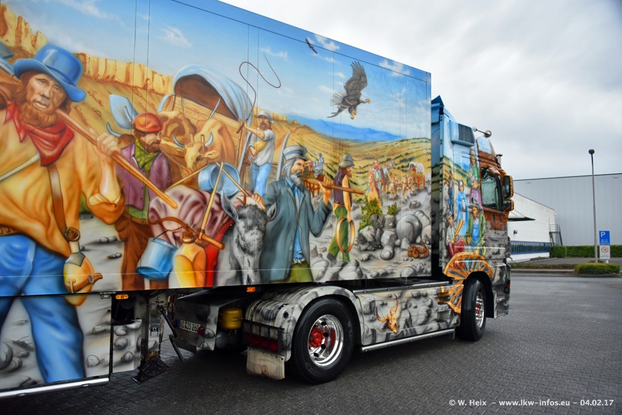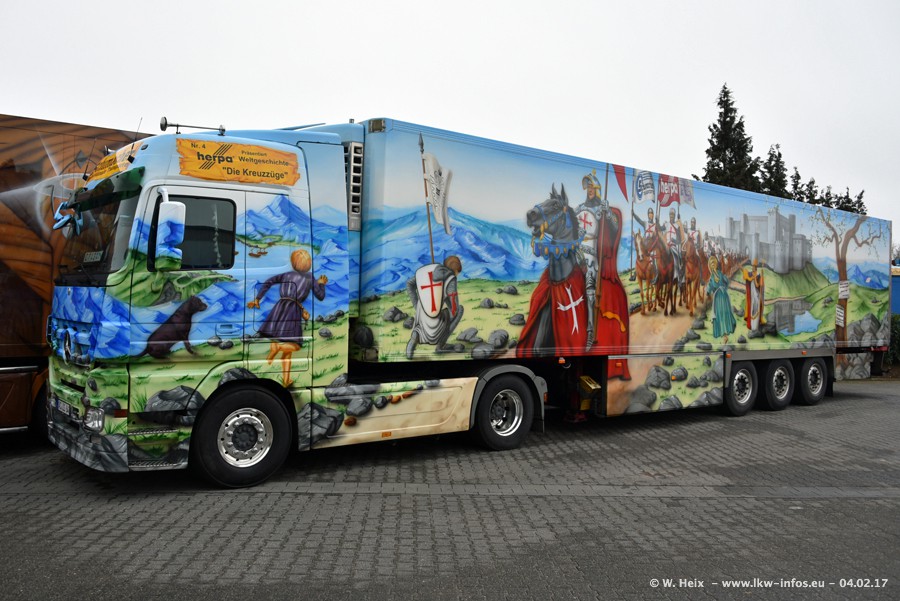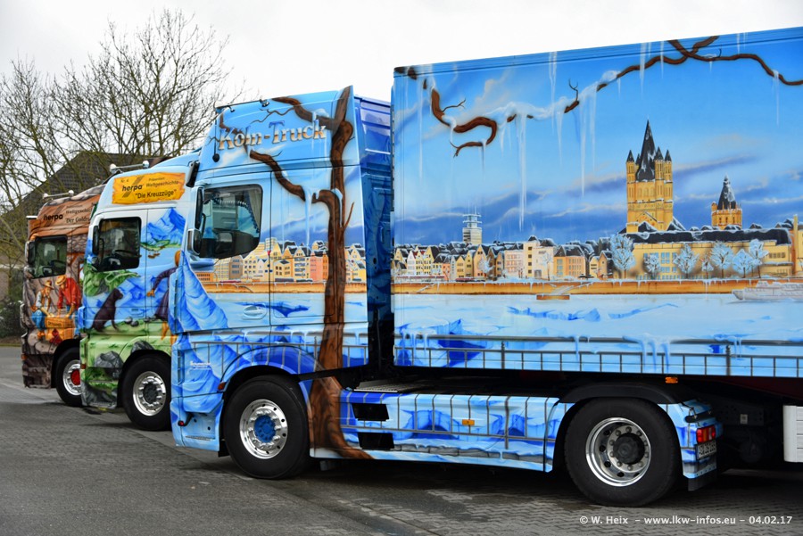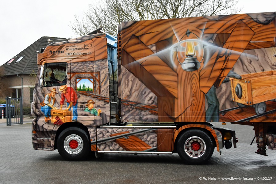 Es sind seit dem letzten Besuch bei Schumacher schon wieder rund 1,5 Jahre vergangen. Eigentlich sollte heute die Sonne scheinen, aber das Wetter war dann leider doch schlechter als erwartet. Trotzdem konnte ich wieder viele schöne Bilder machen. Bereits im Sommer 2015 (kurz nach meinem letzten Besuch) hat Schumacher den von der Spedition Sturm aus Viersen übernommenen Showtruck "Herpa/Die Geschichte der Nutzfahrzeuge" bekommen. Die Zugmaschine (Scania R 500 V8) wurde verkauft und durch einen MAN TGX Euro 6 ersetzt. Heute konnte ich von diesem LKW viele Bilder machen. Auf den ersten Fotos war der Showtruck (noch) nicht gewaschen. Aber nach der Fahrt durch die firmeneigene Waschanlage konnte ich nochmals schöne Fotos machen. In den letzten Monaten wurde der Fuhrpark zudem mit Zugmaschinen von Mercedes-Benz und MAN modernisiert. Aber bei diesem Besuch habe ich mich überwiegend auf das Fotografieren der Showtrucks beschränkt.