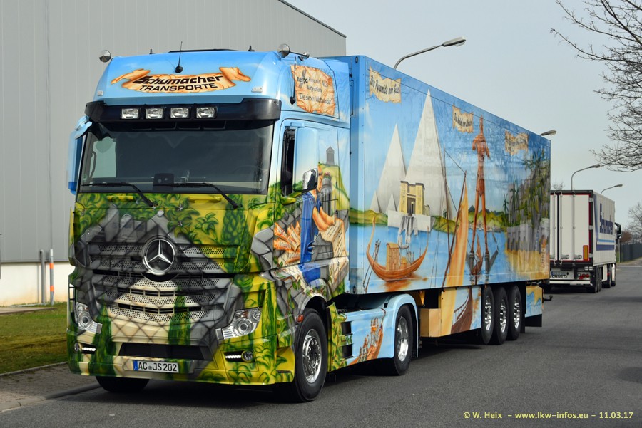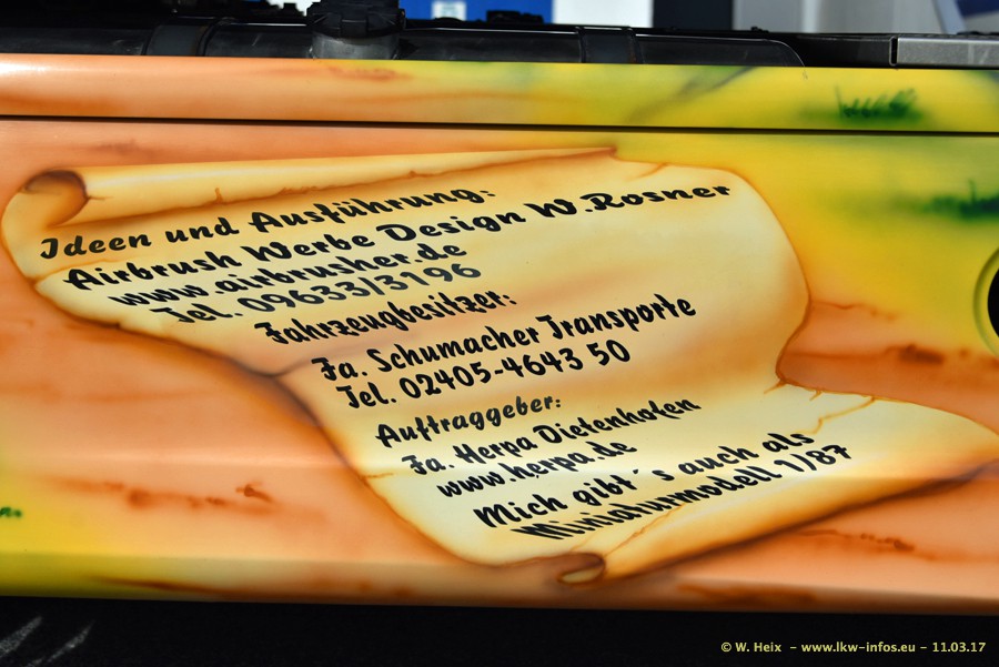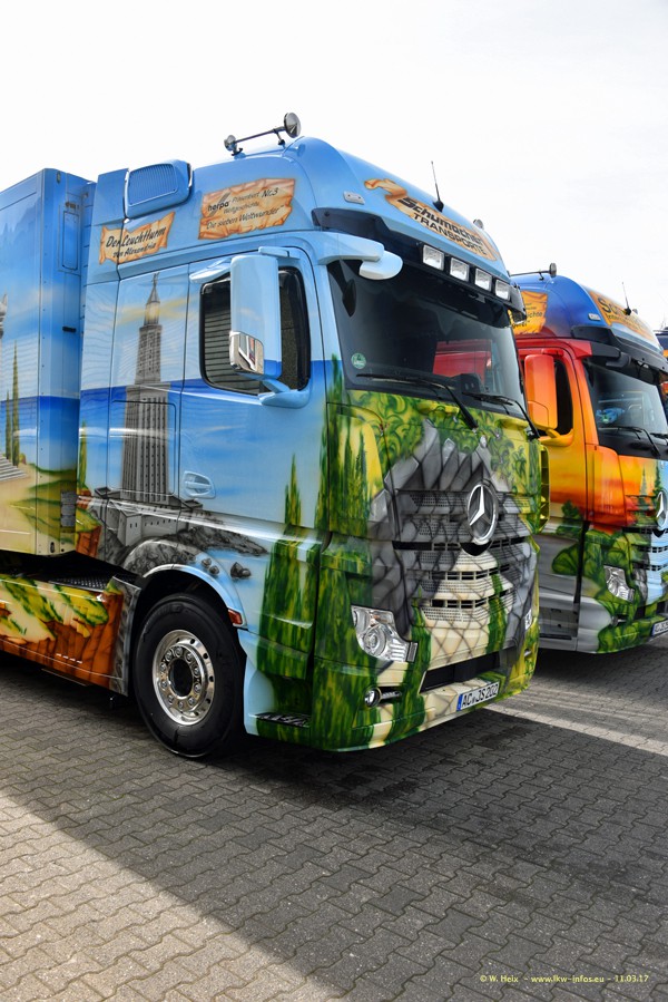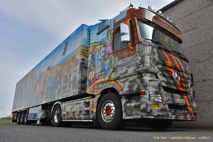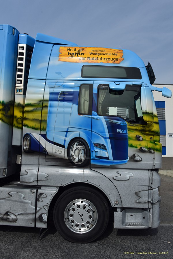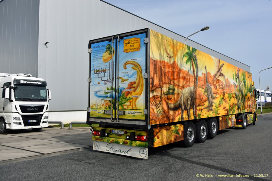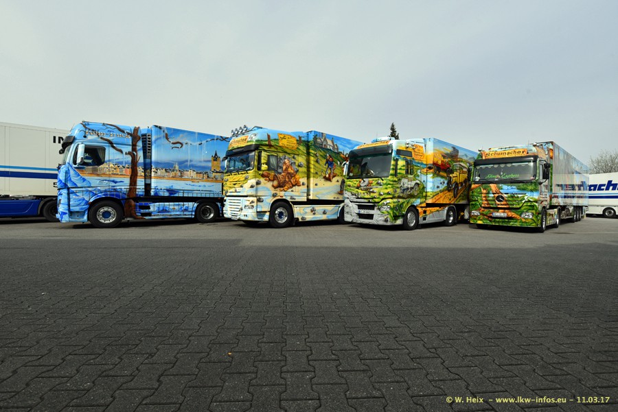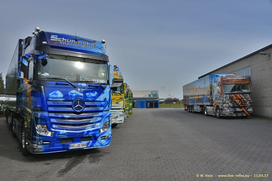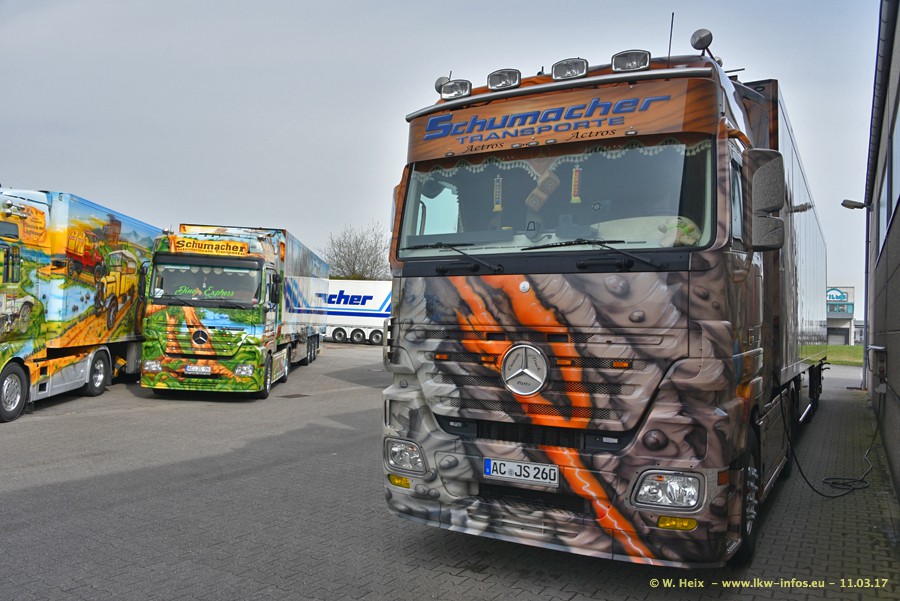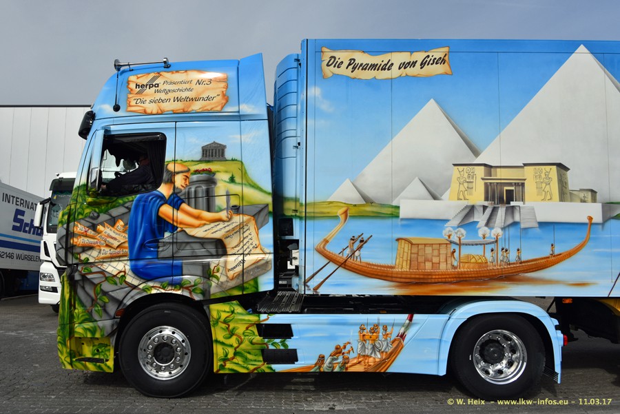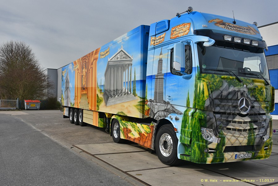Ich war zwar erst vor fünf Wochen bei Schumacher, aber es gab einen guten Grund, die Firma direkt nochmal zu besuchen. Denn erstens war diesmal das Wetter viel schöner und der Herpa Showtruck Nr. 3 "Die sieben Weltwunder" hat vor knapp zwei Wochen eine neue Zugmaschine bekommen. Der alte DAF XF 105 wurde durch einen Mercedes-Benz Actros 4 ersetzt und auch der Auflieger wurde beim Airbrusher Rosner überarbeitet. Zudem ergab sich für mich die Möglichkeit, einige der Showtrucks in Form eines kleinen Fotoshootings außerhalb vom Firmengelände vor dem Kühllager (eine Straße weiter) von Schumacher zu fotografieren. Leider war das aus zeitlichen und organisatorischen Gründen nicht mit allen Showtrucks möglich. Ich versuche demnächst, auch die anderen Showtrucks nochmal in dieser Form zu fotografieren.