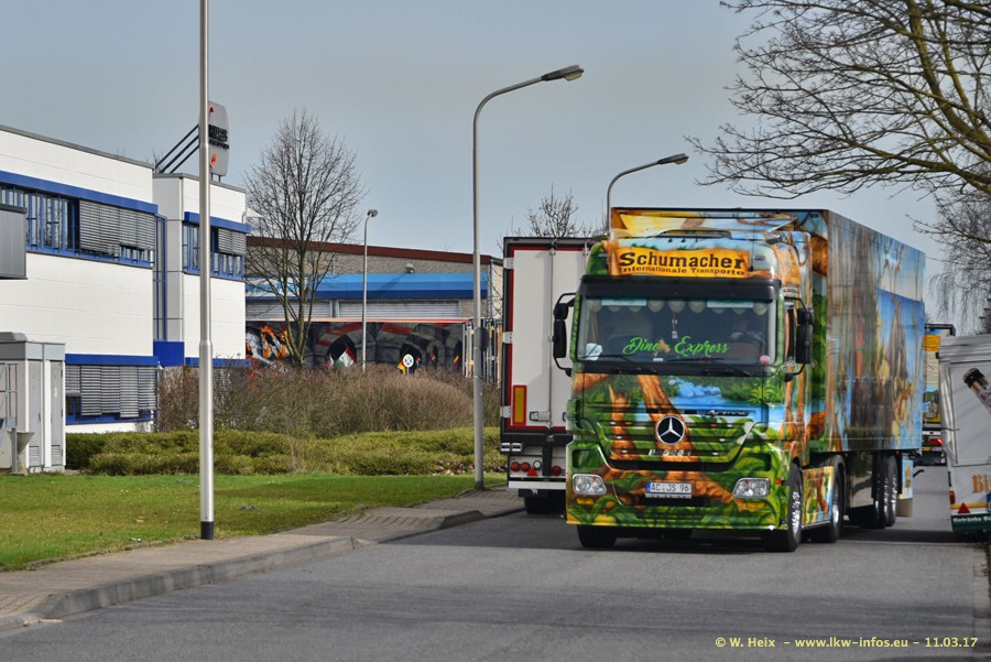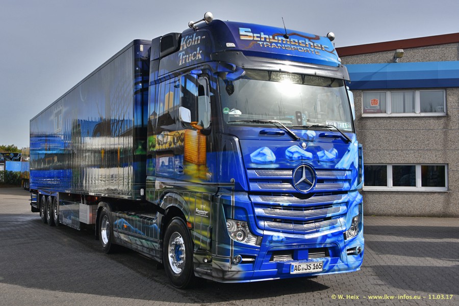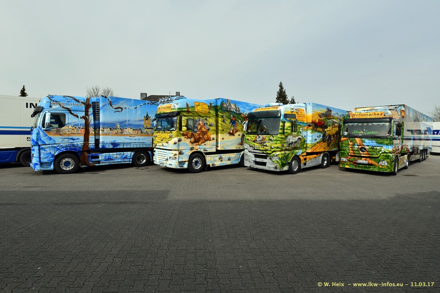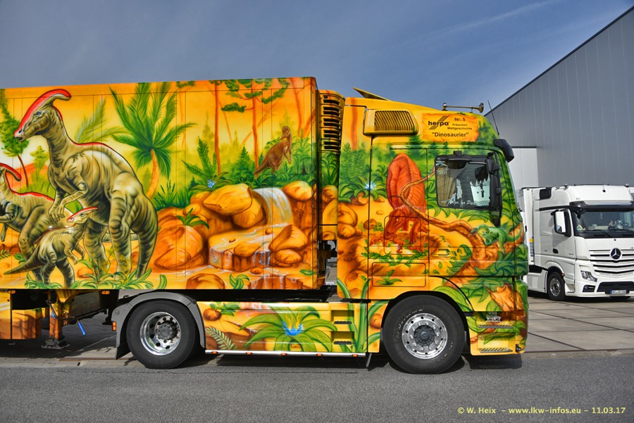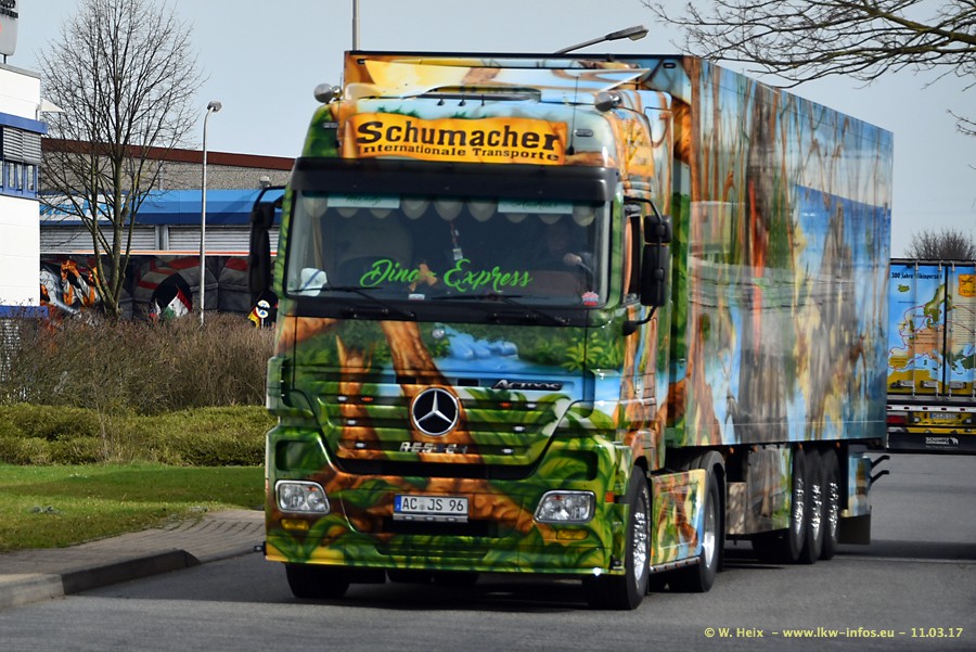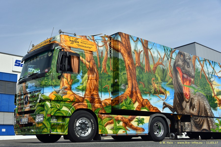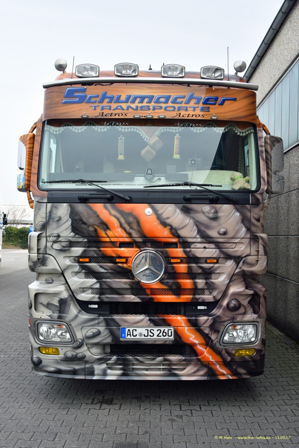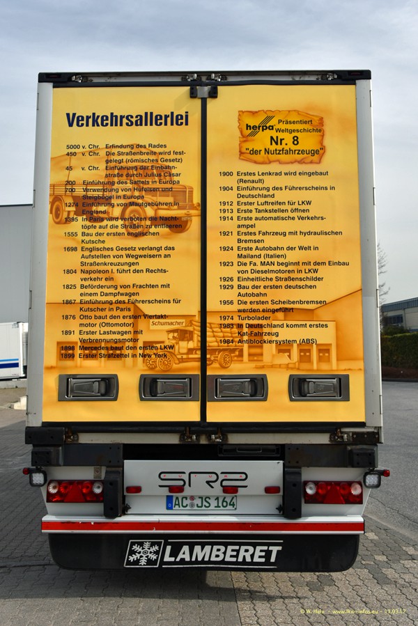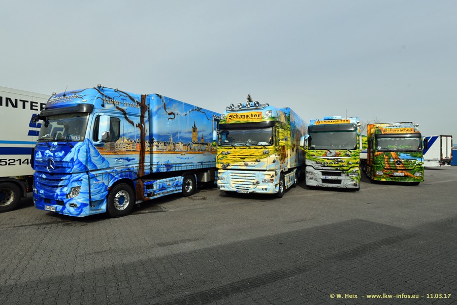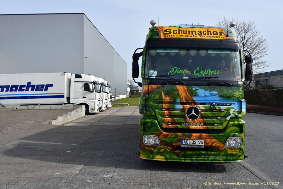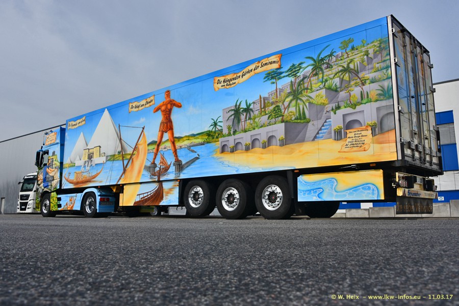 Ich war zwar erst vor fünf Wochen bei Schumacher, aber es gab einen guten Grund, die Firma direkt nochmal zu besuchen. Denn erstens war diesmal das Wetter viel schöner und der Herpa Showtruck Nr. 3 "Die sieben Weltwunder" hat vor knapp zwei Wochen eine neue Zugmaschine bekommen. Der alte DAF XF 105 wurde durch einen Mercedes-Benz Actros 4 ersetzt und auch der Auflieger wurde beim Airbrusher Rosner überarbeitet. Zudem ergab sich für mich die Möglichkeit, einige der Showtrucks in Form eines kleinen Fotoshootings außerhalb vom Firmengelände vor dem Kühllager (eine Straße weiter) von Schumacher zu fotografieren. Leider war das aus zeitlichen und organisatorischen Gründen nicht mit allen Showtrucks möglich. Ich versuche demnächst, auch die anderen Showtrucks nochmal in dieser Form zu fotografieren.