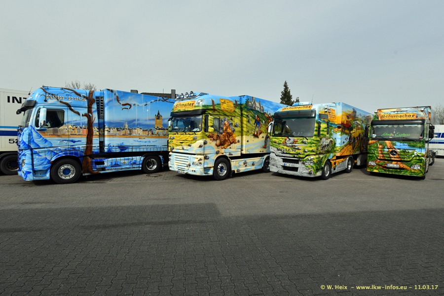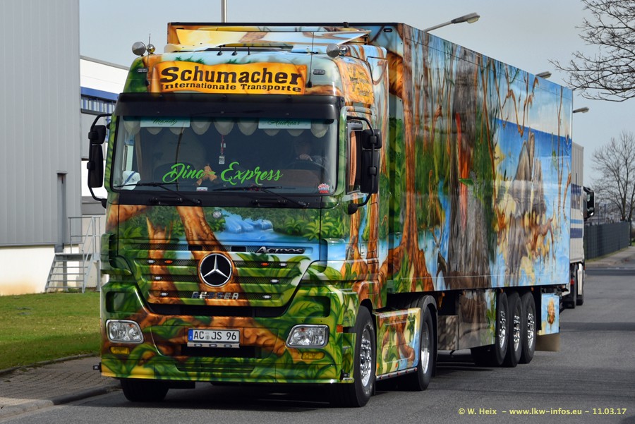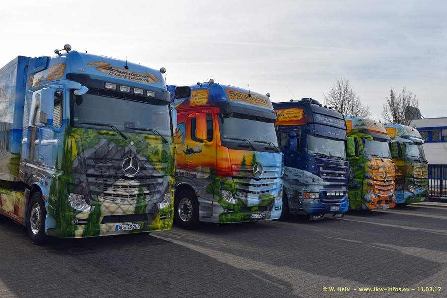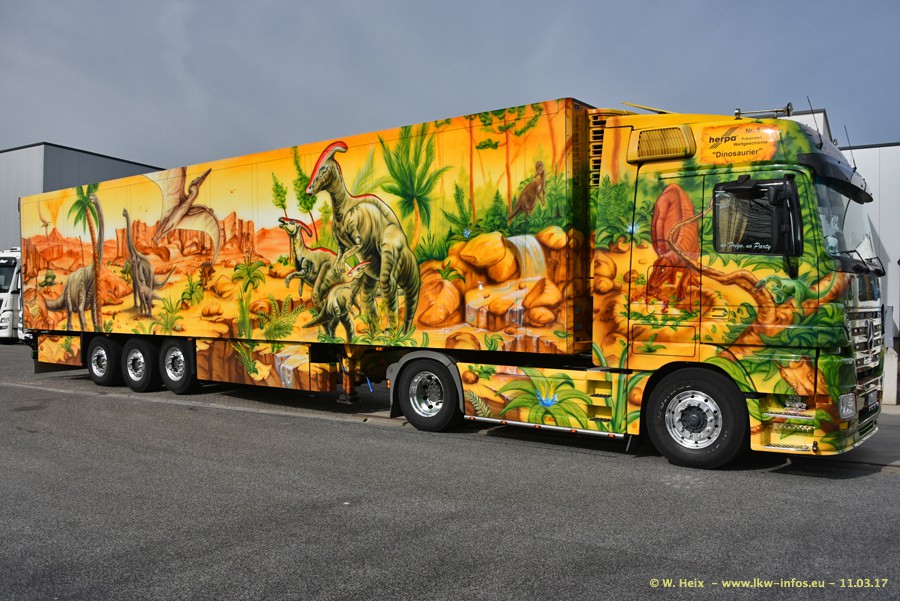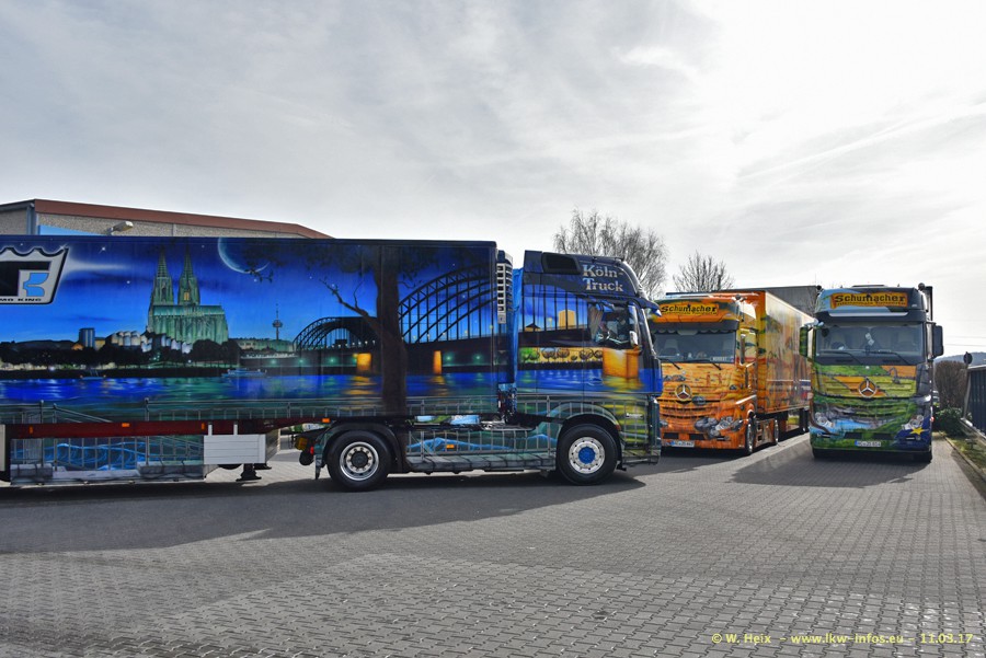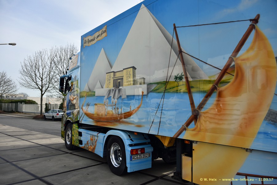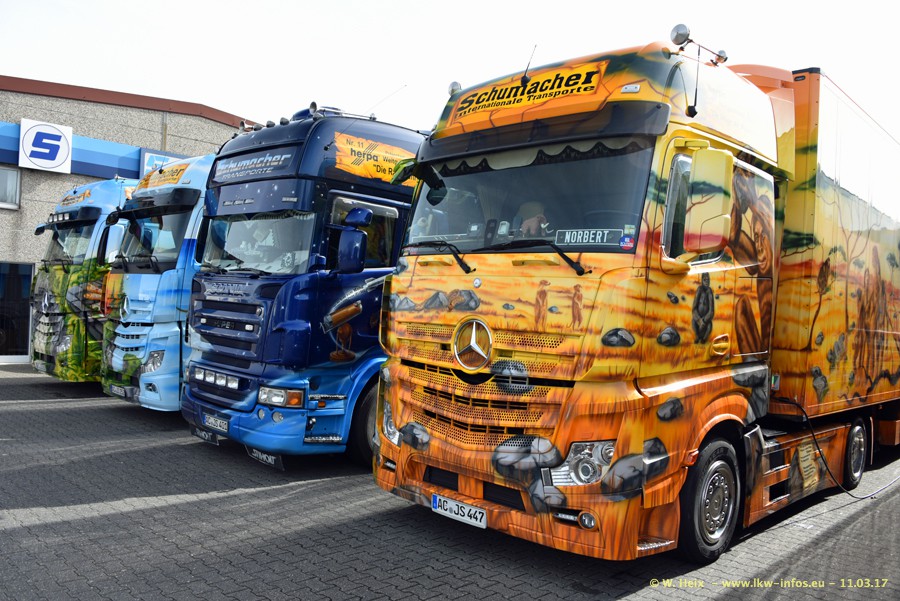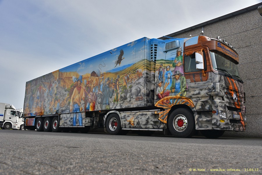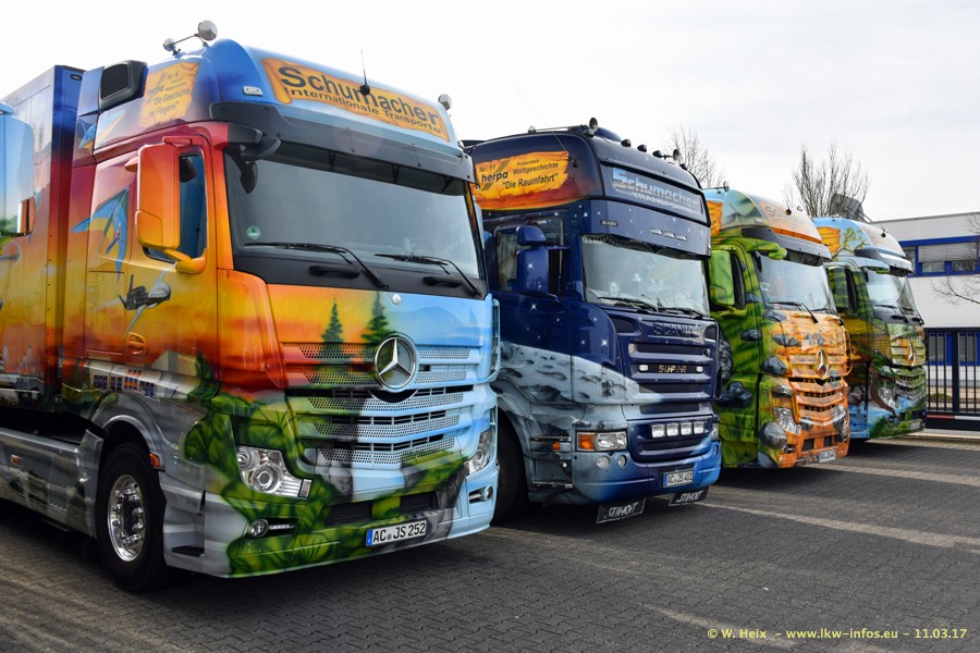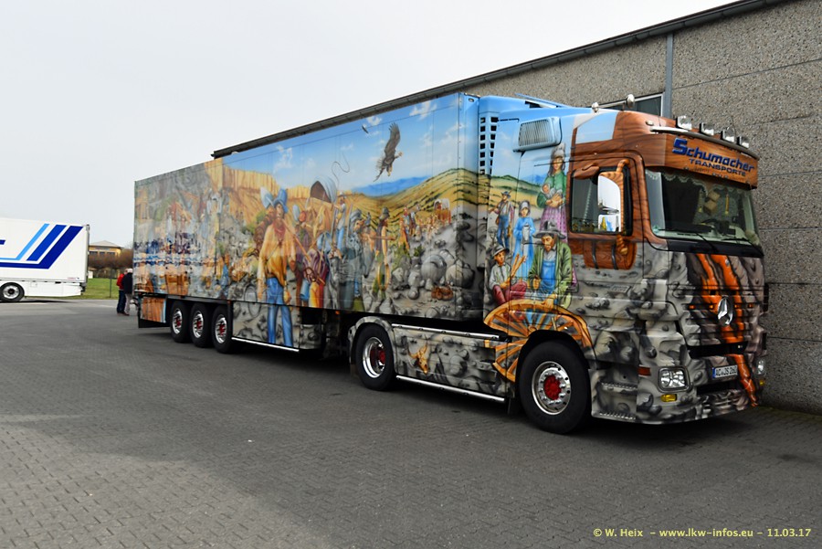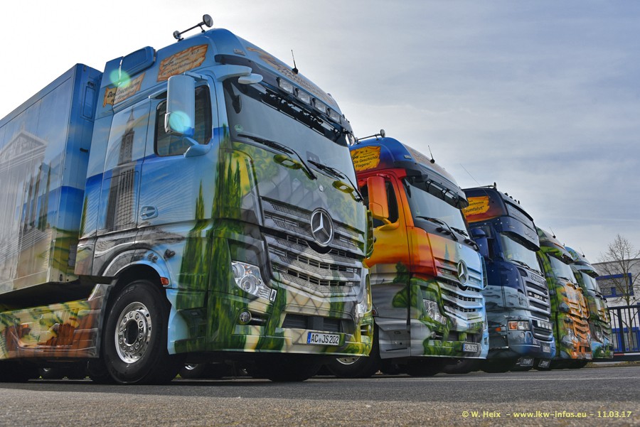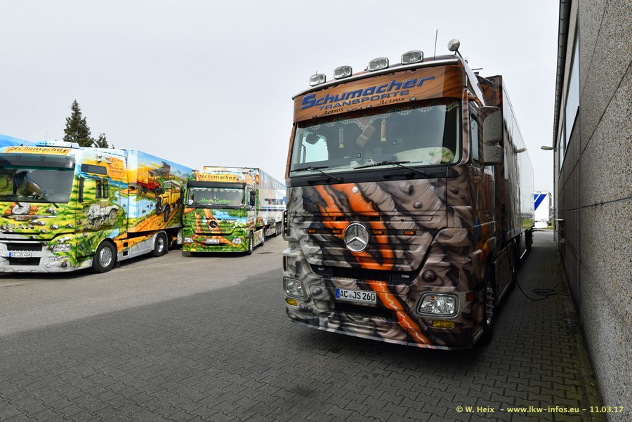 Ich war zwar erst vor fünf Wochen bei Schumacher, aber es gab einen guten Grund, die Firma direkt nochmal zu besuchen. Denn erstens war diesmal das Wetter viel schöner und der Herpa Showtruck Nr. 3 "Die sieben Weltwunder" hat vor knapp zwei Wochen eine neue Zugmaschine bekommen. Der alte DAF XF 105 wurde durch einen Mercedes-Benz Actros 4 ersetzt und auch der Auflieger wurde beim Airbrusher Rosner überarbeitet. Zudem ergab sich für mich die Möglichkeit, einige der Showtrucks in Form eines kleinen Fotoshootings außerhalb vom Firmengelände vor dem Kühllager (eine Straße weiter) von Schumacher zu fotografieren. Leider war das aus zeitlichen und organisatorischen Gründen nicht mit allen Showtrucks möglich. Ich versuche demnächst, auch die anderen Showtrucks nochmal in dieser Form zu fotografieren.