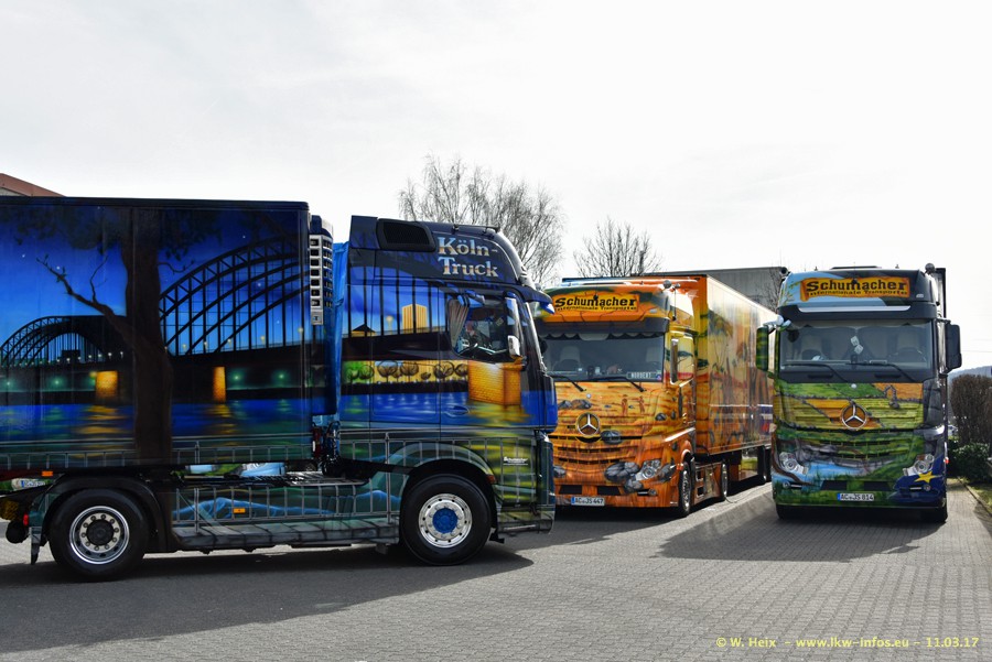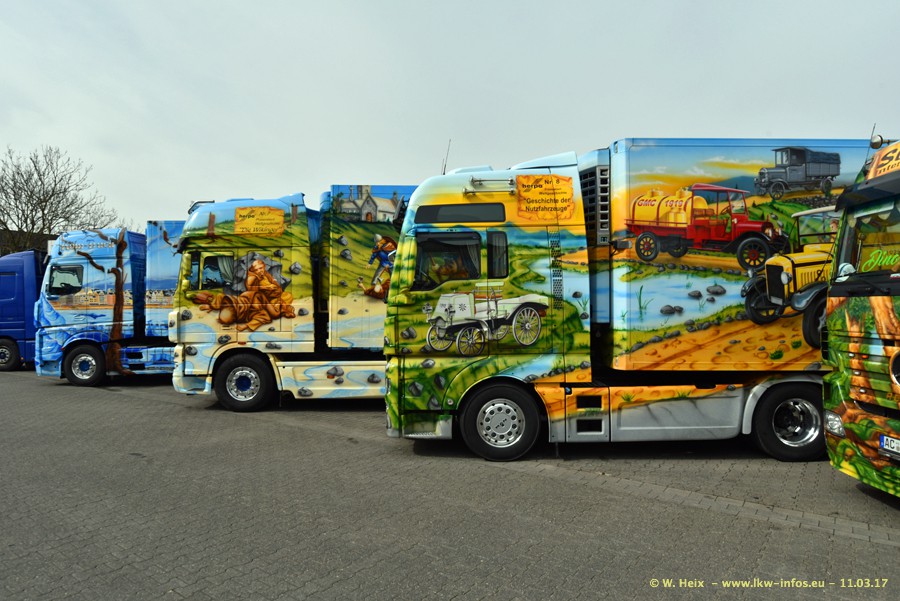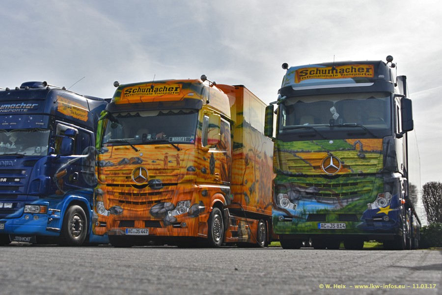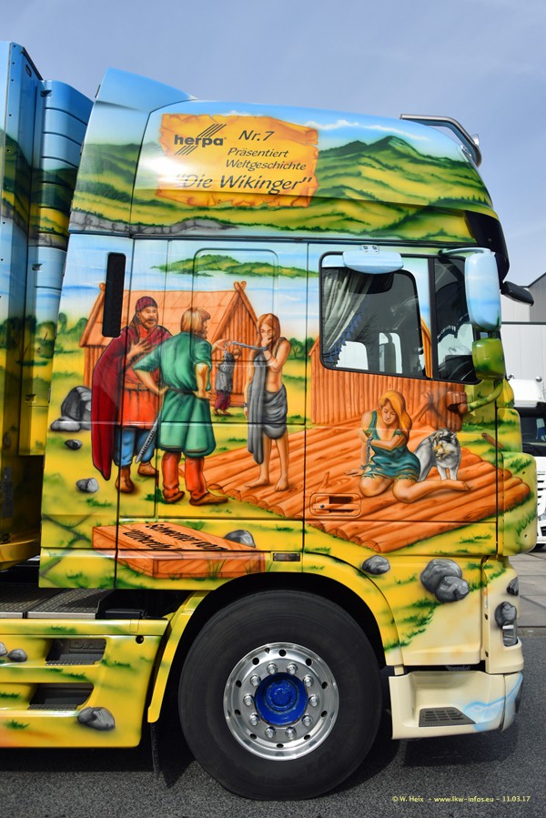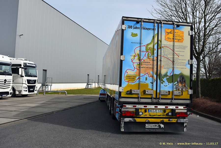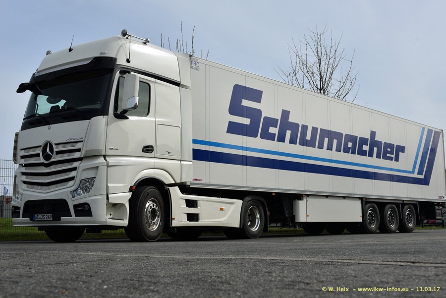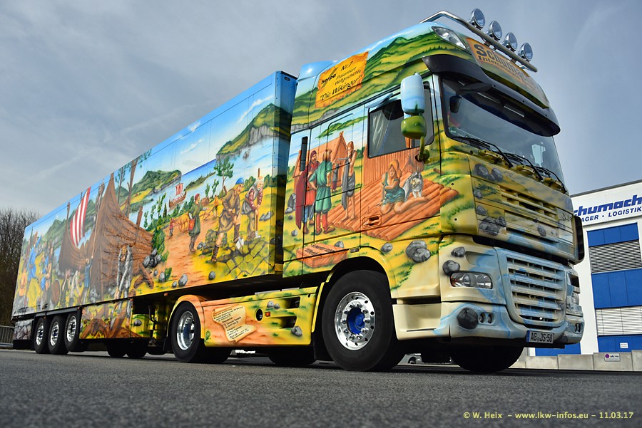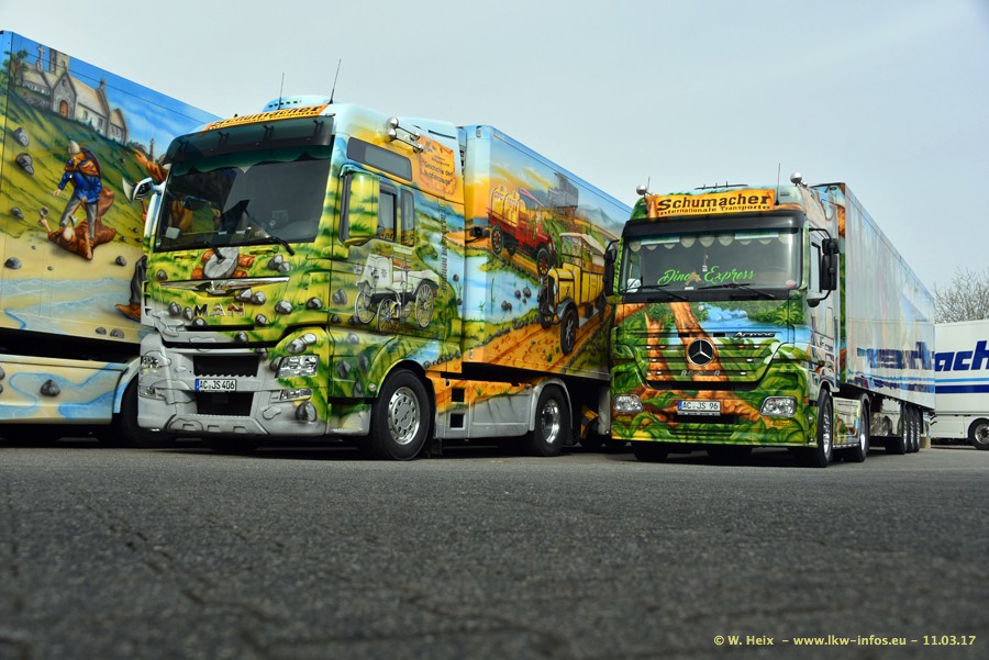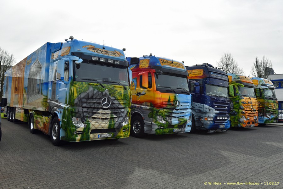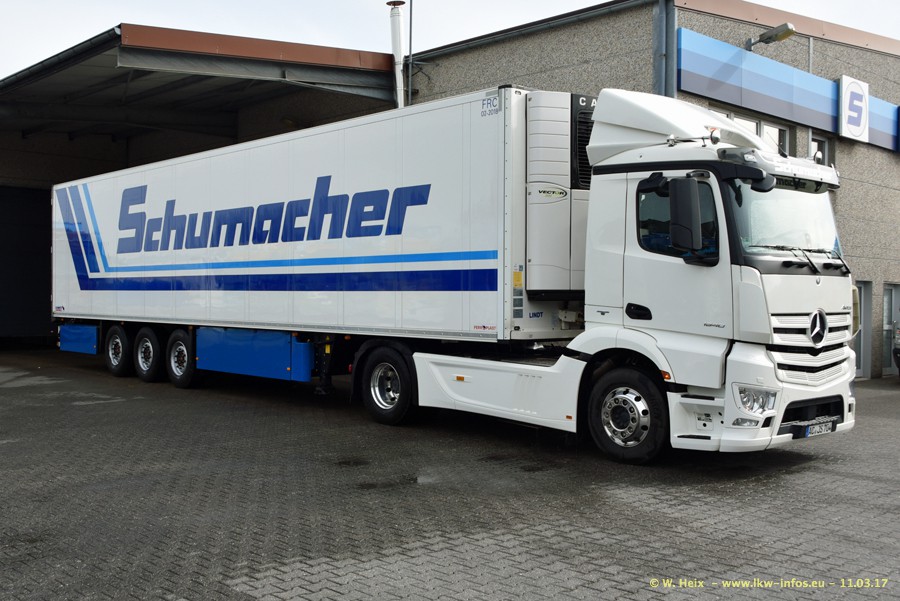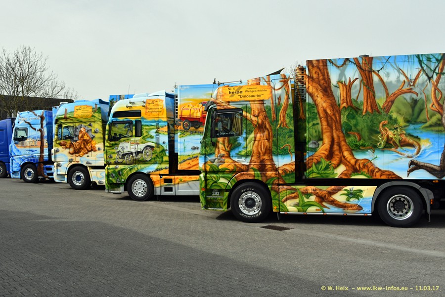 Ich war zwar erst vor fünf Wochen bei Schumacher, aber es gab einen guten Grund, die Firma direkt nochmal zu besuchen. Denn erstens war diesmal das Wetter viel schöner und der Herpa Showtruck Nr. 3 "Die sieben Weltwunder" hat vor knapp zwei Wochen eine neue Zugmaschine bekommen. Der alte DAF XF 105 wurde durch einen Mercedes-Benz Actros 4 ersetzt und auch der Auflieger wurde beim Airbrusher Rosner überarbeitet. Zudem ergab sich für mich die Möglichkeit, einige der Showtrucks in Form eines kleinen Fotoshootings außerhalb vom Firmengelände vor dem Kühllager (eine Straße weiter) von Schumacher zu fotografieren. Leider war das aus zeitlichen und organisatorischen Gründen nicht mit allen Showtrucks möglich. Ich versuche demnächst, auch die anderen Showtrucks nochmal in dieser Form zu fotografieren.