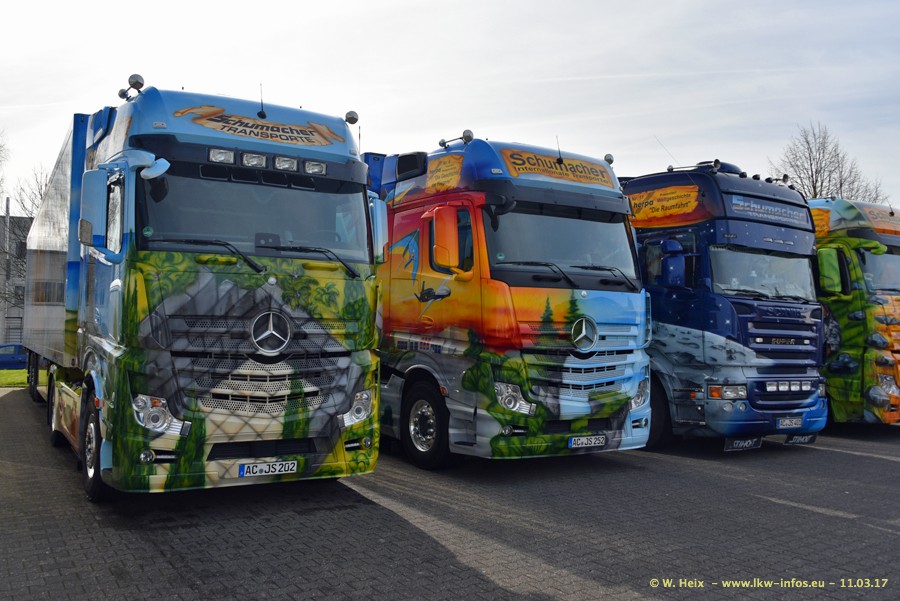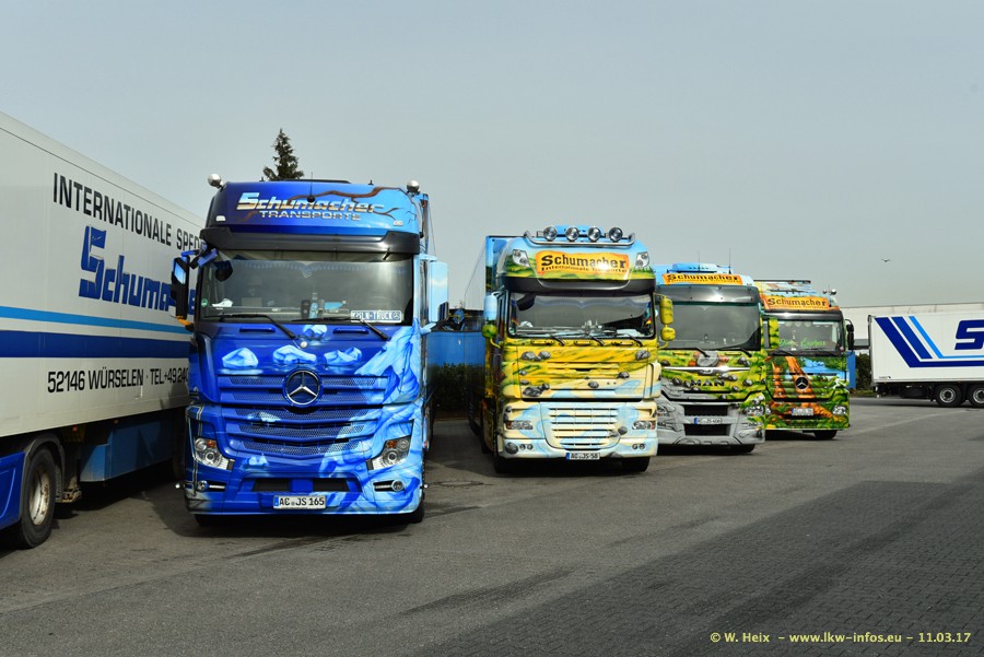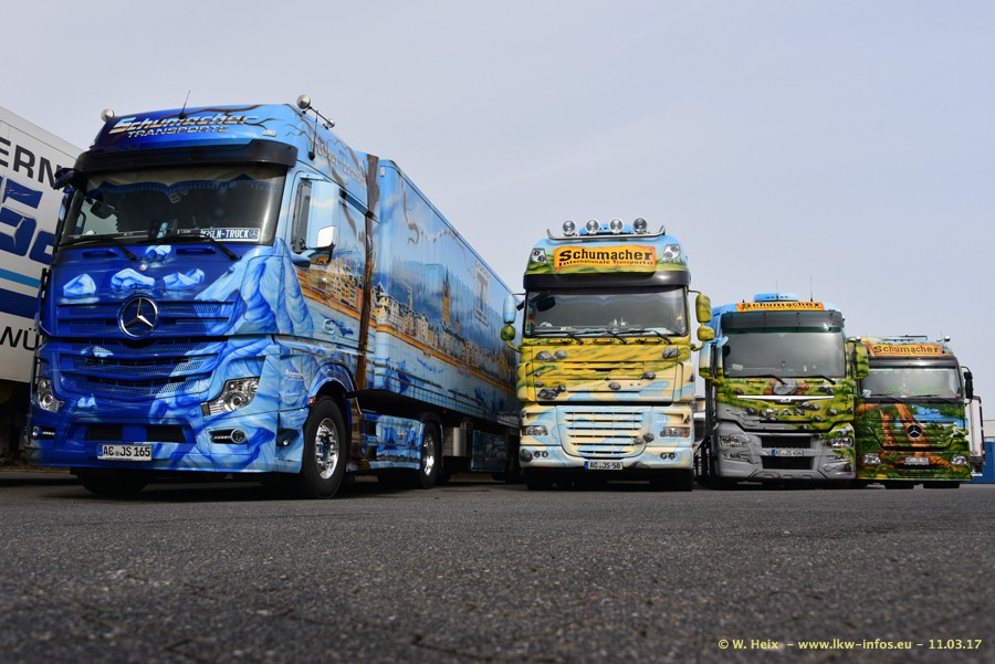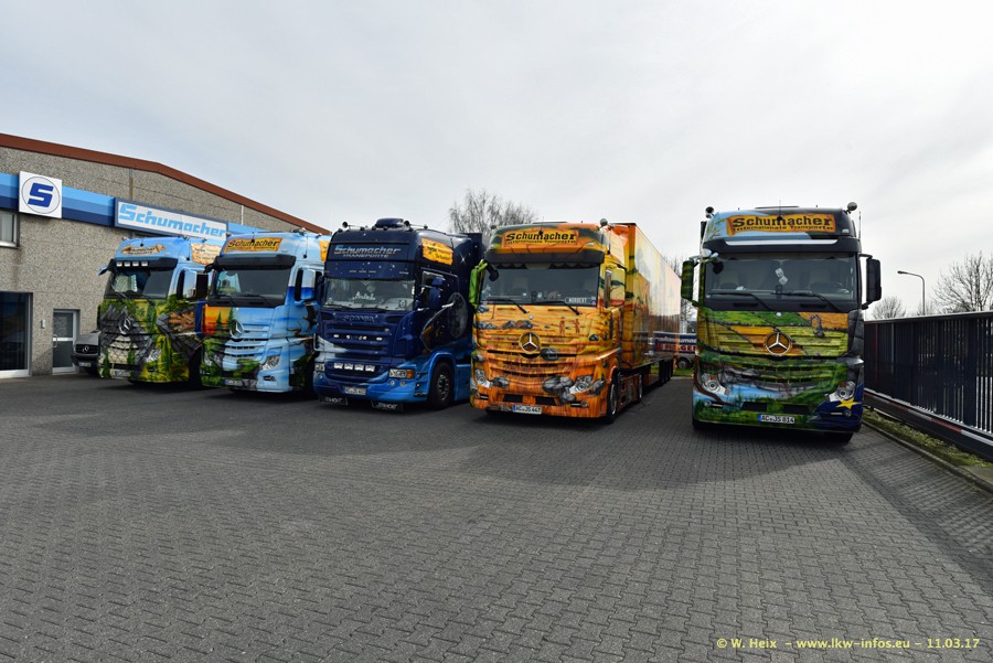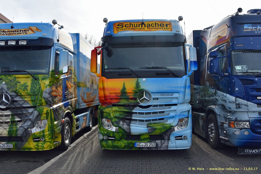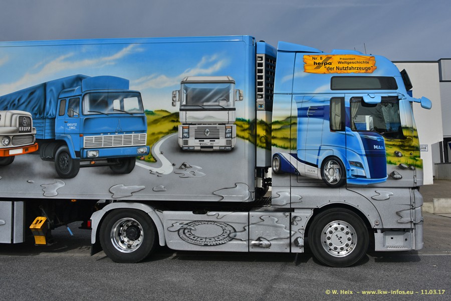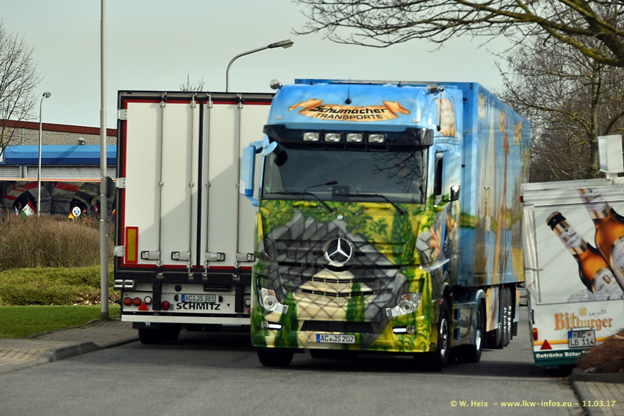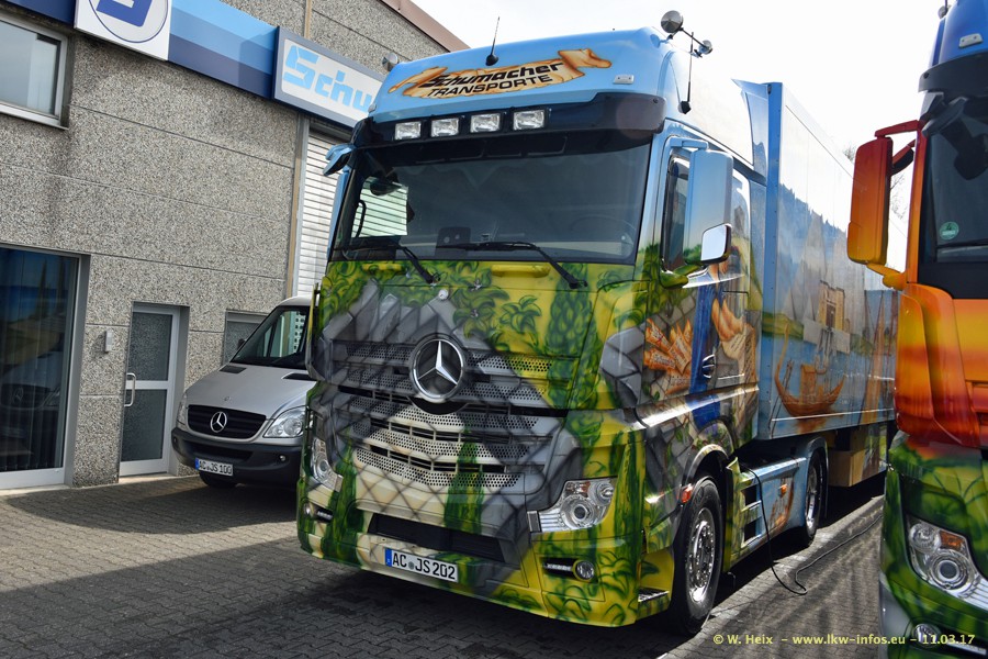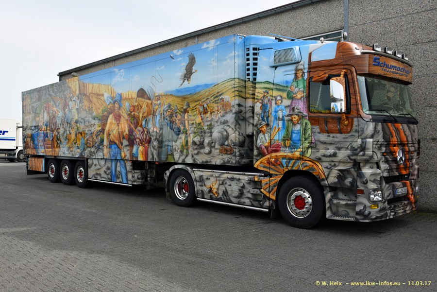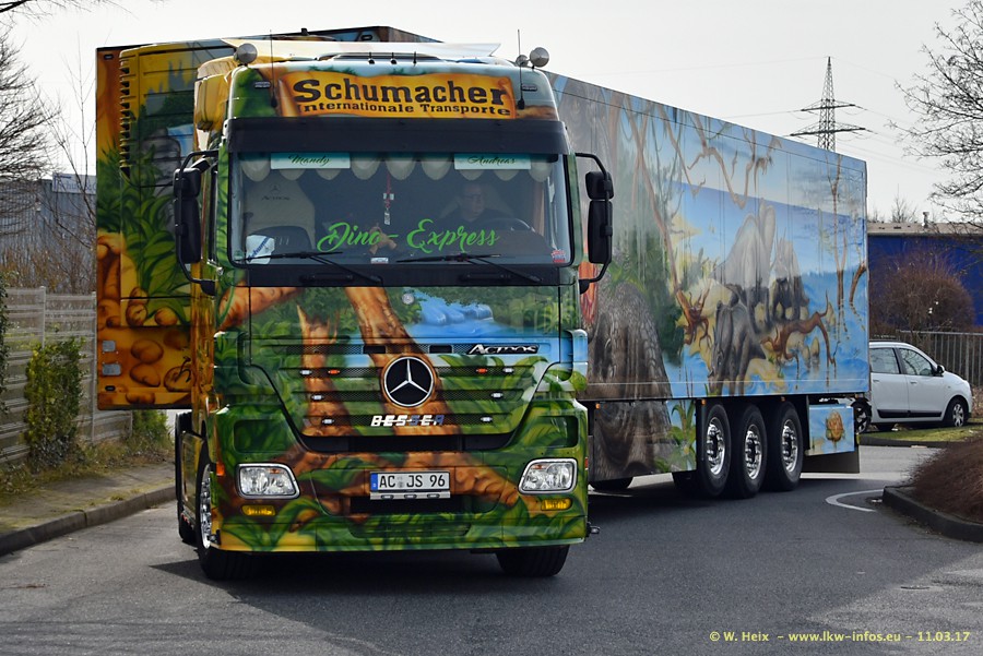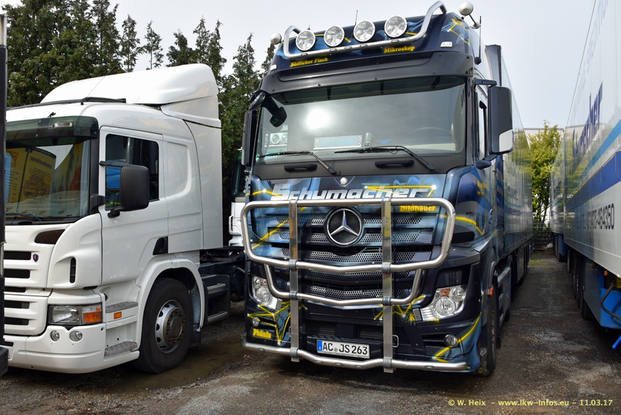 Ich war zwar erst vor fünf Wochen bei Schumacher, aber es gab einen guten Grund, die Firma direkt nochmal zu besuchen. Denn erstens war diesmal das Wetter viel schöner und der Herpa Showtruck Nr. 3 "Die sieben Weltwunder" hat vor knapp zwei Wochen eine neue Zugmaschine bekommen. Der alte DAF XF 105 wurde durch einen Mercedes-Benz Actros 4 ersetzt und auch der Auflieger wurde beim Airbrusher Rosner überarbeitet. Zudem ergab sich für mich die Möglichkeit, einige der Showtrucks in Form eines kleinen Fotoshootings außerhalb vom Firmengelände vor dem Kühllager (eine Straße weiter) von Schumacher zu fotografieren. Leider war das aus zeitlichen und organisatorischen Gründen nicht mit allen Showtrucks möglich. Ich versuche demnächst, auch die anderen Showtrucks nochmal in dieser Form zu fotografieren.