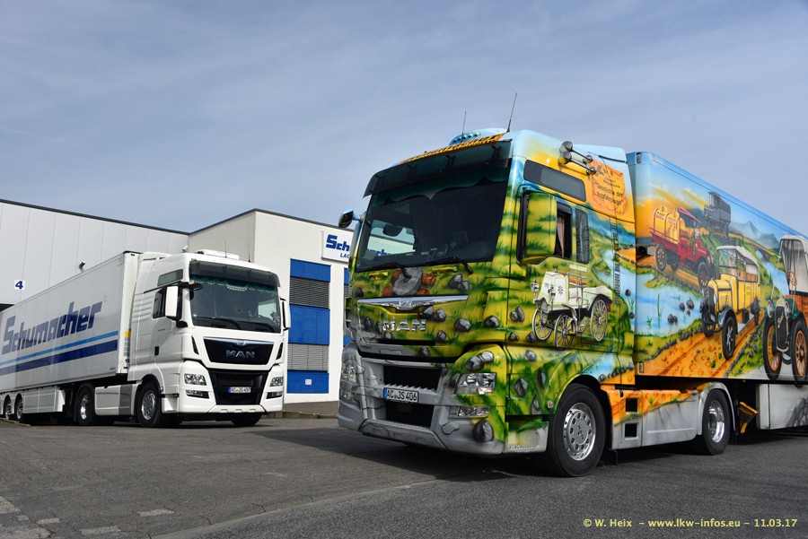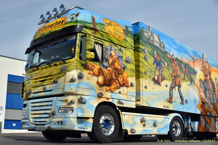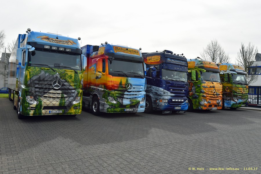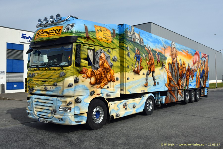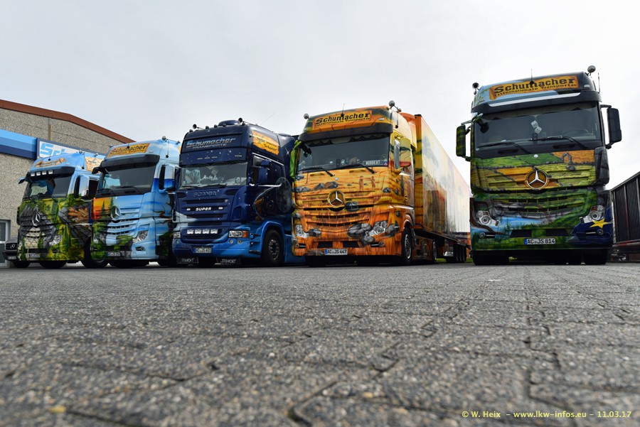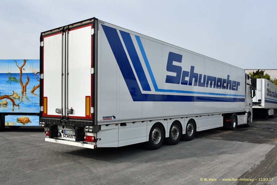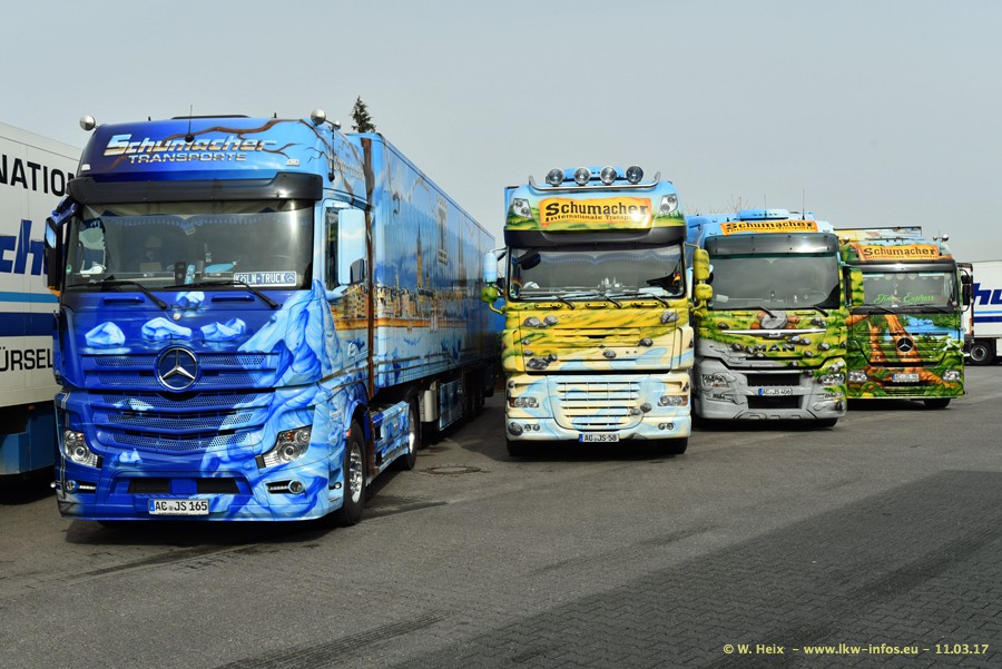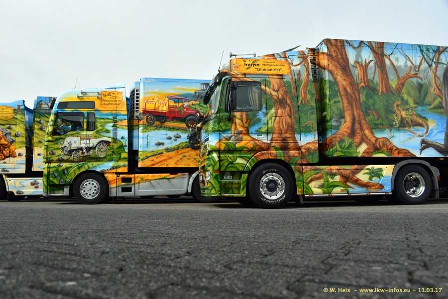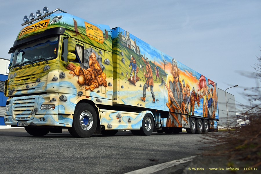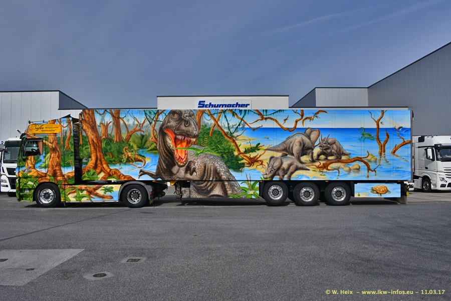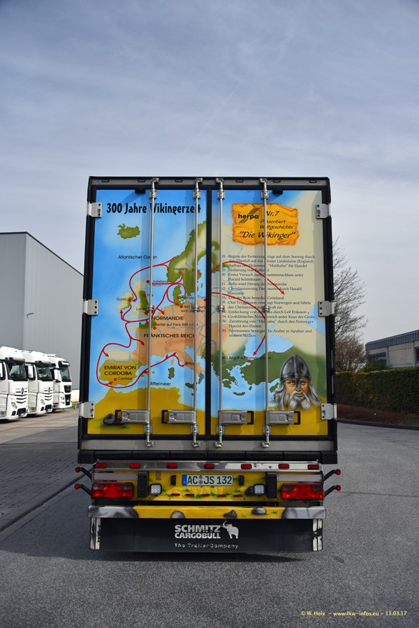 Ich war zwar erst vor fünf Wochen bei Schumacher, aber es gab einen guten Grund, die Firma direkt nochmal zu besuchen. Denn erstens war diesmal das Wetter viel schöner und der Herpa Showtruck Nr. 3 "Die sieben Weltwunder" hat vor knapp zwei Wochen eine neue Zugmaschine bekommen. Der alte DAF XF 105 wurde durch einen Mercedes-Benz Actros 4 ersetzt und auch der Auflieger wurde beim Airbrusher Rosner überarbeitet. Zudem ergab sich für mich die Möglichkeit, einige der Showtrucks in Form eines kleinen Fotoshootings außerhalb vom Firmengelände vor dem Kühllager (eine Straße weiter) von Schumacher zu fotografieren. Leider war das aus zeitlichen und organisatorischen Gründen nicht mit allen Showtrucks möglich. Ich versuche demnächst, auch die anderen Showtrucks nochmal in dieser Form zu fotografieren.