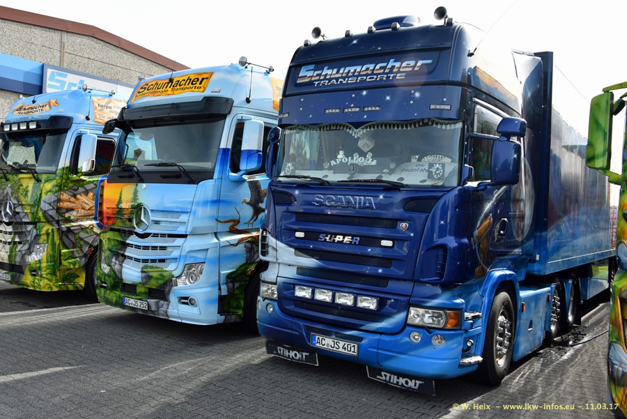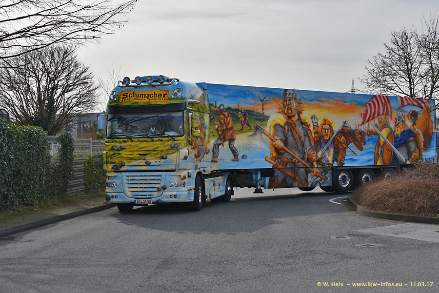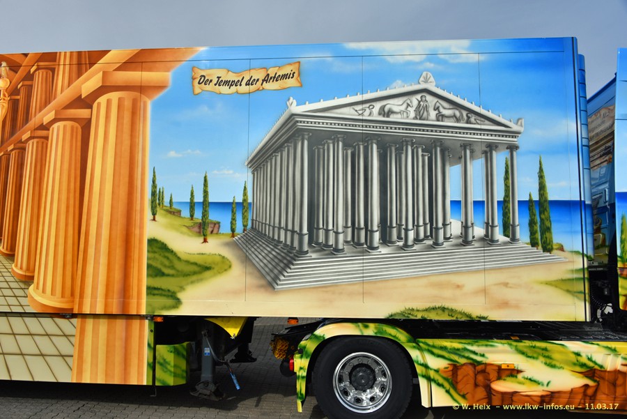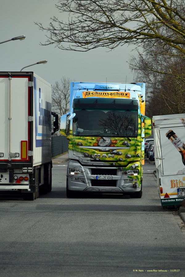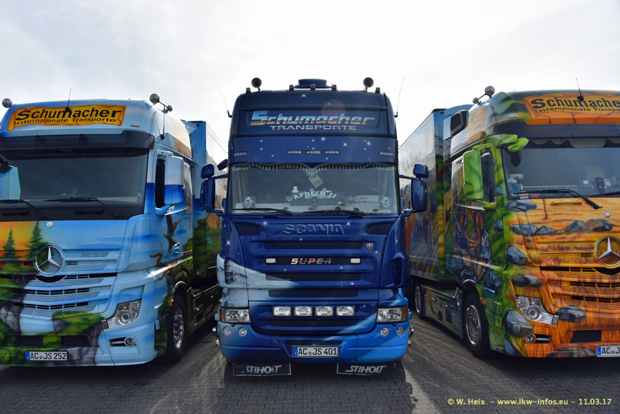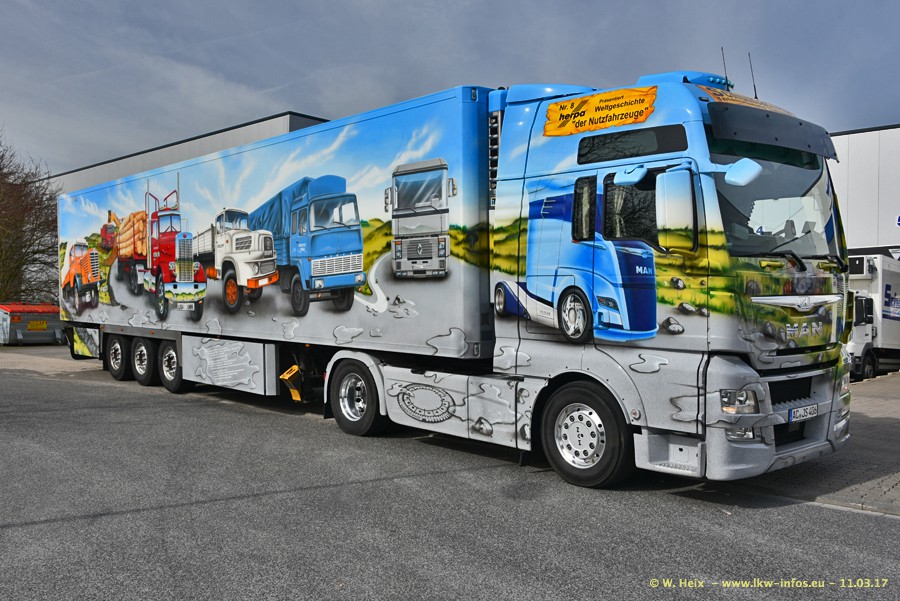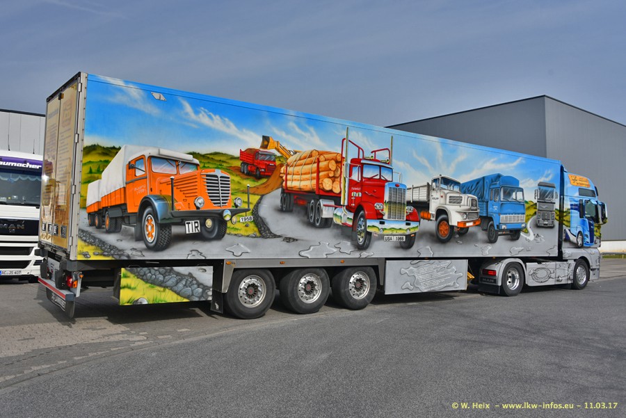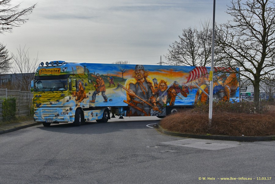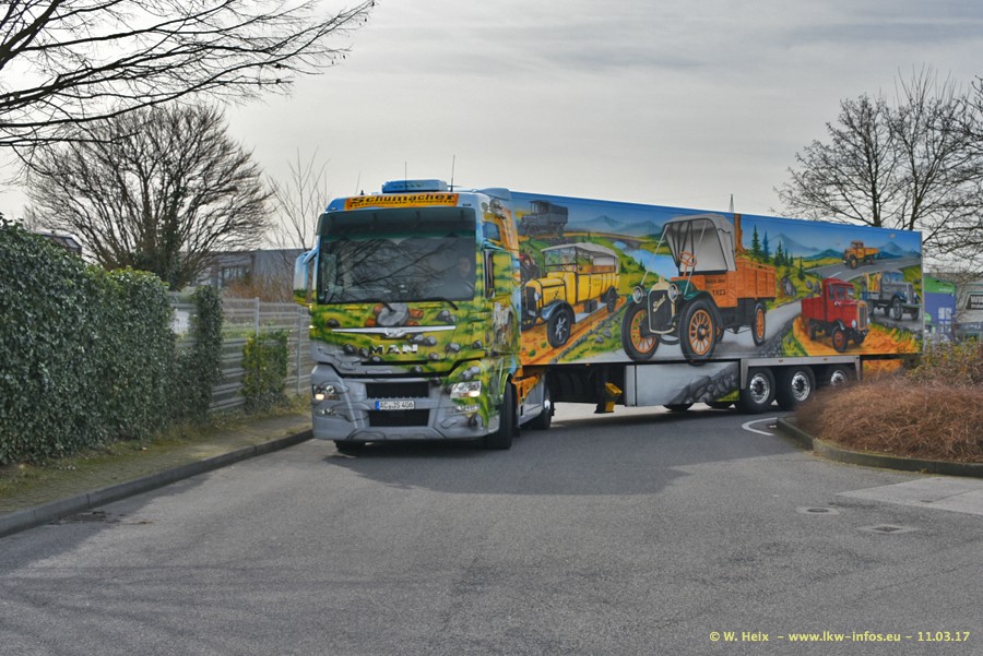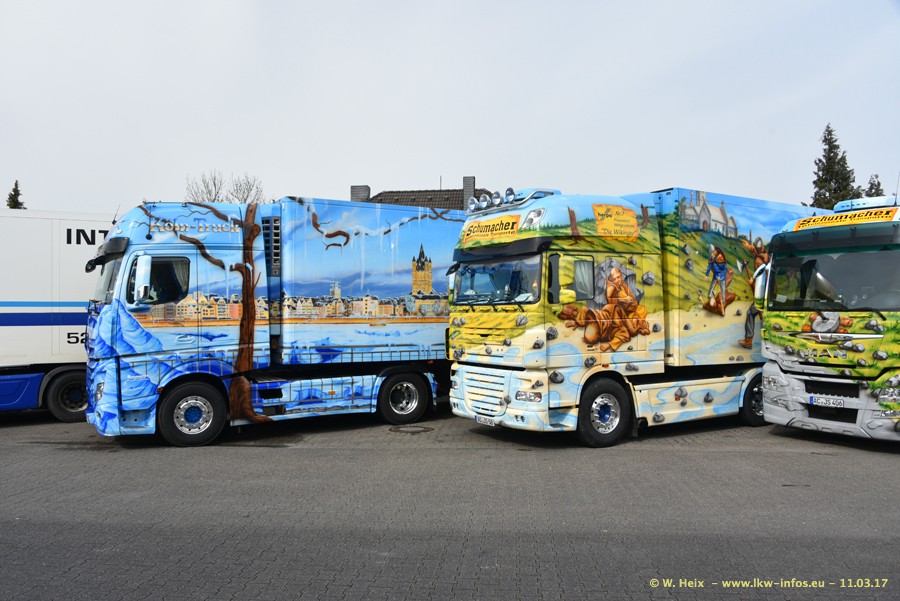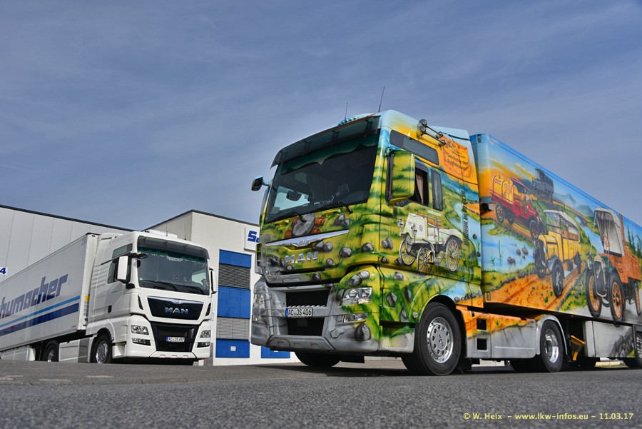Ich war zwar erst vor fünf Wochen bei Schumacher, aber es gab einen guten Grund, die Firma direkt nochmal zu besuchen. Denn erstens war diesmal das Wetter viel schöner und der Herpa Showtruck Nr. 3 "Die sieben Weltwunder" hat vor knapp zwei Wochen eine neue Zugmaschine bekommen. Der alte DAF XF 105 wurde durch einen Mercedes-Benz Actros 4 ersetzt und auch der Auflieger wurde beim Airbrusher Rosner überarbeitet. Zudem ergab sich für mich die Möglichkeit, einige der Showtrucks in Form eines kleinen Fotoshootings außerhalb vom Firmengelände vor dem Kühllager (eine Straße weiter) von Schumacher zu fotografieren. Leider war das aus zeitlichen und organisatorischen Gründen nicht mit allen Showtrucks möglich. Ich versuche demnächst, auch die anderen Showtrucks nochmal in dieser Form zu fotografieren.