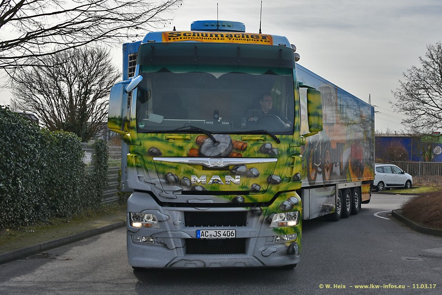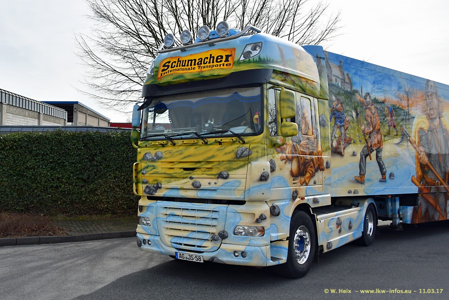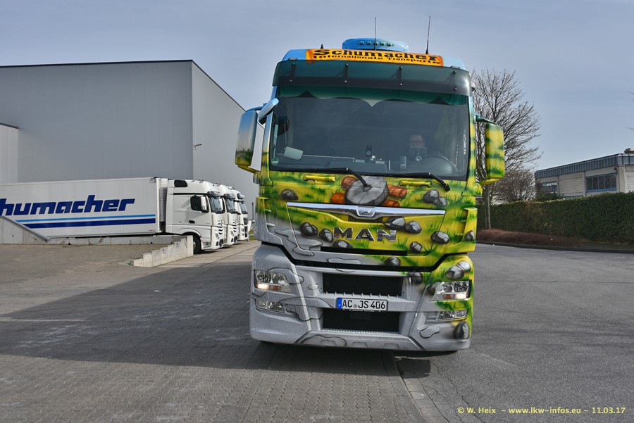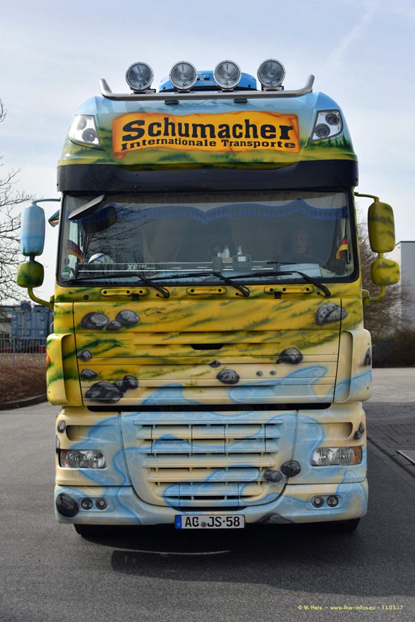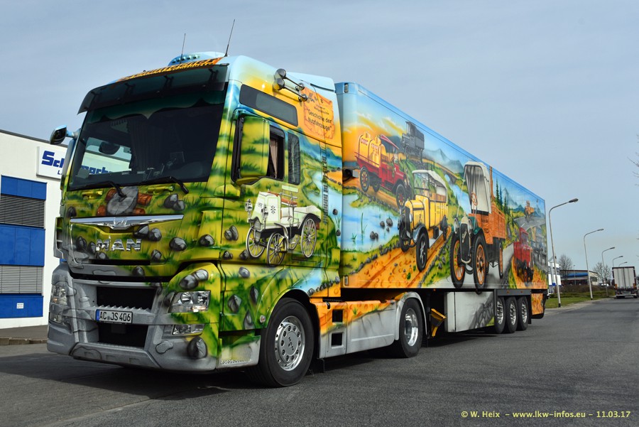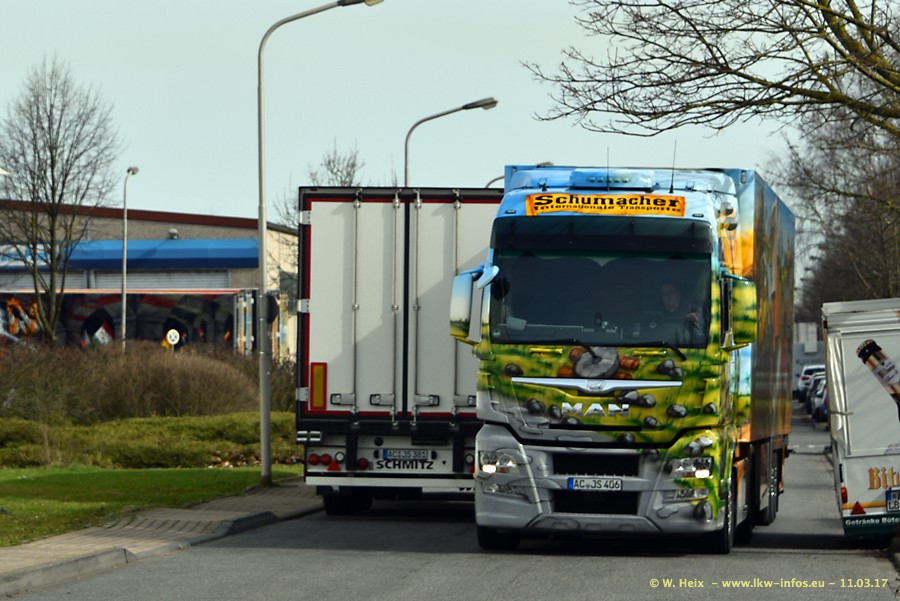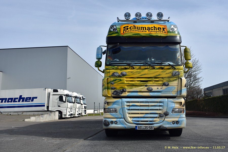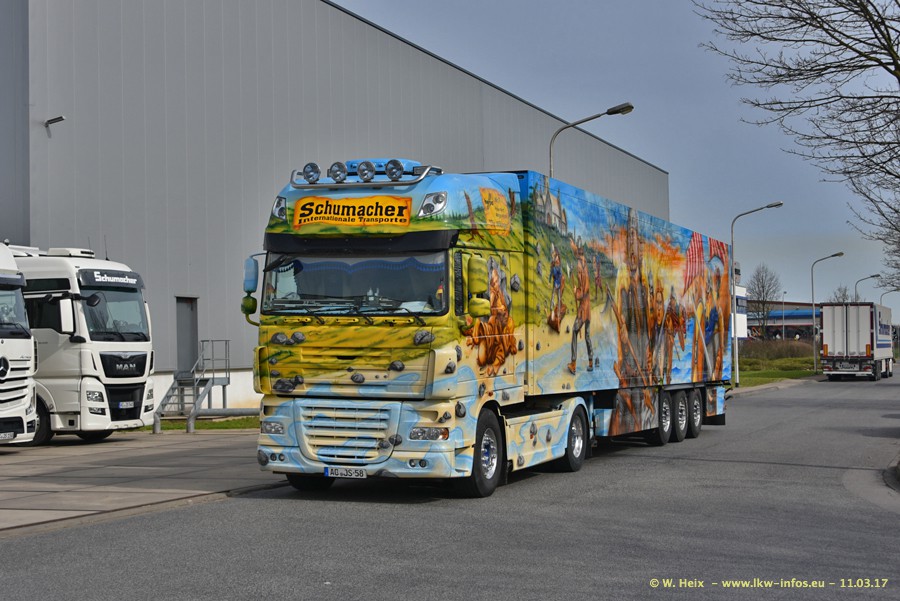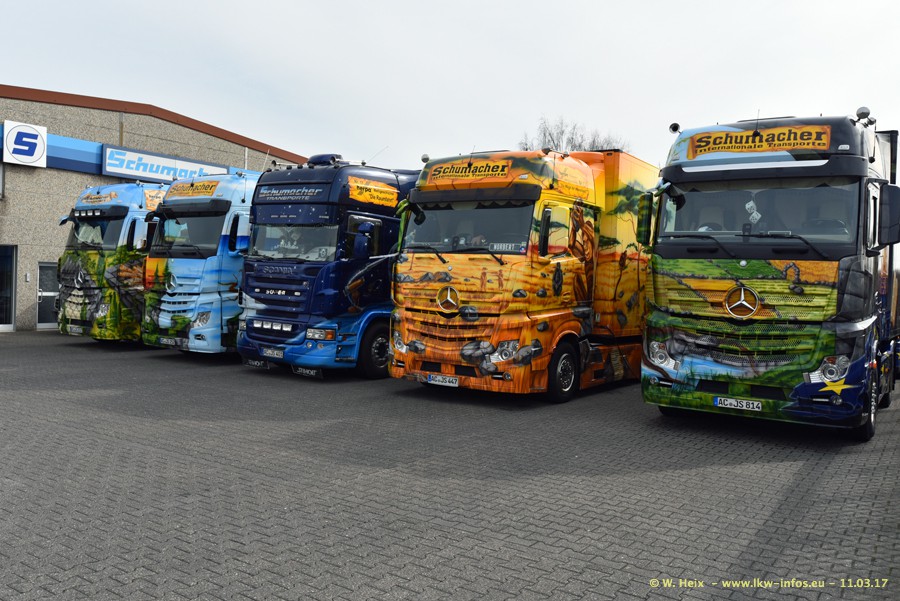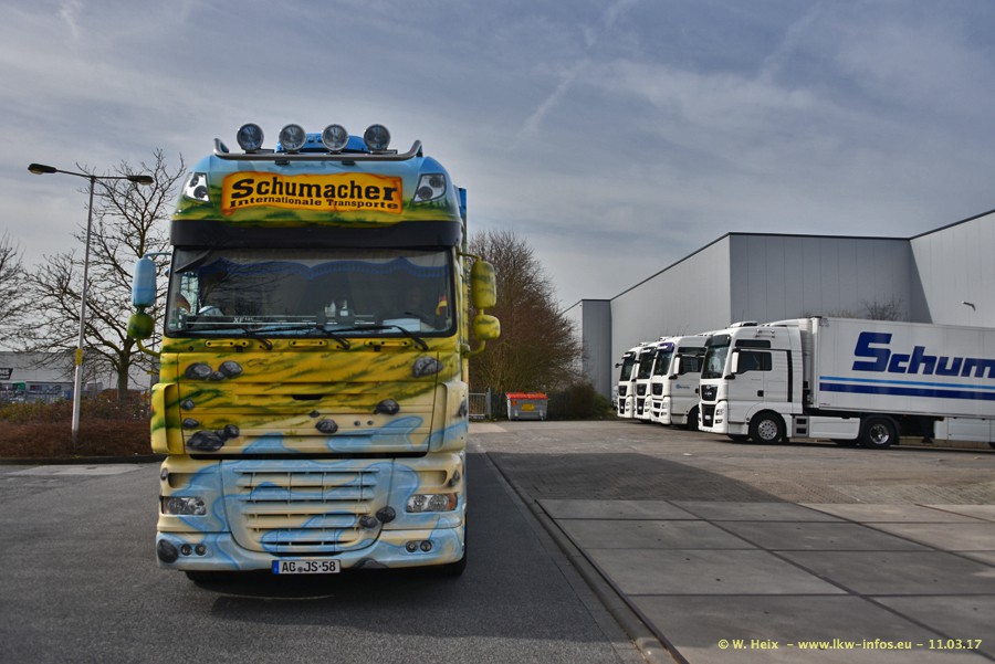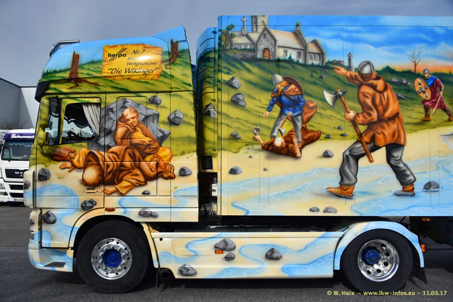 Ich war zwar erst vor fünf Wochen bei Schumacher, aber es gab einen guten Grund, die Firma direkt nochmal zu besuchen. Denn erstens war diesmal das Wetter viel schöner und der Herpa Showtruck Nr. 3 "Die sieben Weltwunder" hat vor knapp zwei Wochen eine neue Zugmaschine bekommen. Der alte DAF XF 105 wurde durch einen Mercedes-Benz Actros 4 ersetzt und auch der Auflieger wurde beim Airbrusher Rosner überarbeitet. Zudem ergab sich für mich die Möglichkeit, einige der Showtrucks in Form eines kleinen Fotoshootings außerhalb vom Firmengelände vor dem Kühllager (eine Straße weiter) von Schumacher zu fotografieren. Leider war das aus zeitlichen und organisatorischen Gründen nicht mit allen Showtrucks möglich. Ich versuche demnächst, auch die anderen Showtrucks nochmal in dieser Form zu fotografieren.