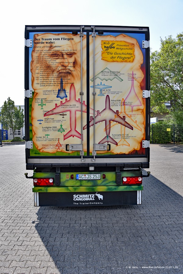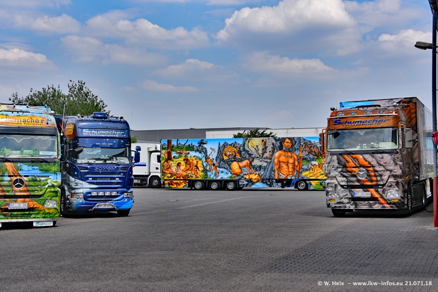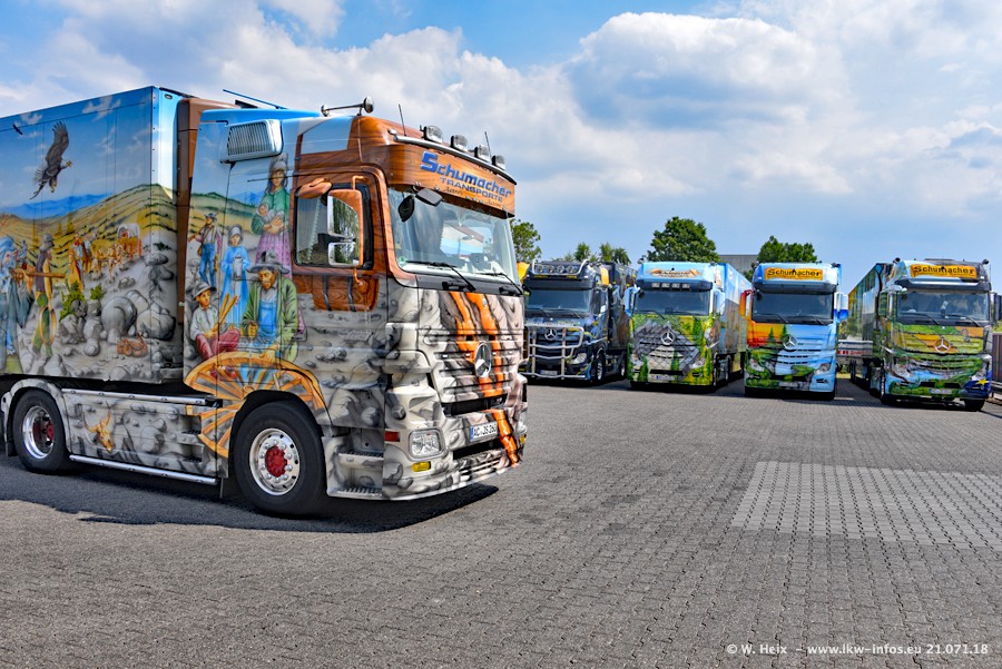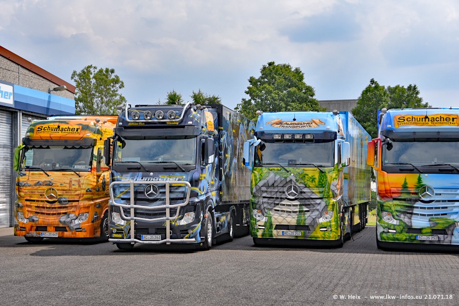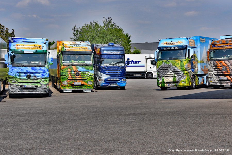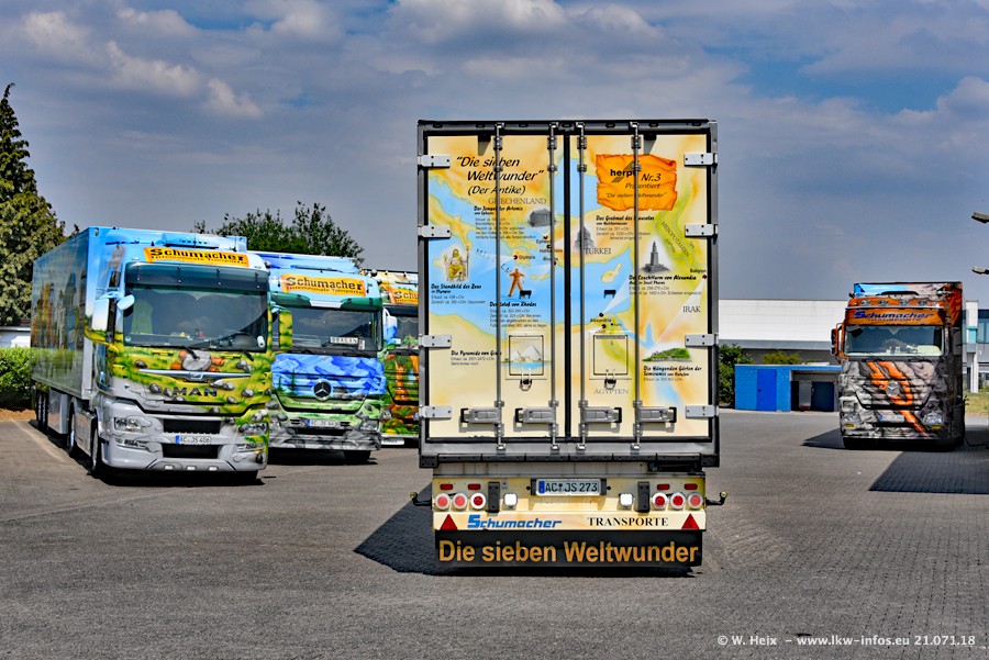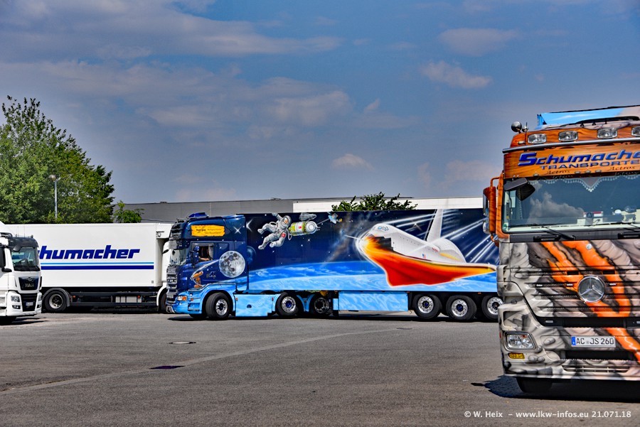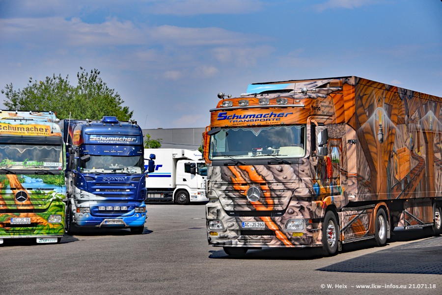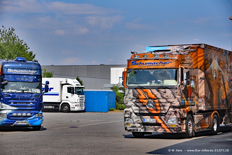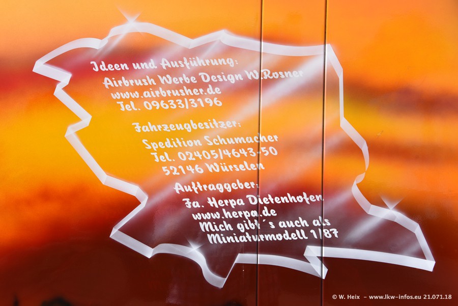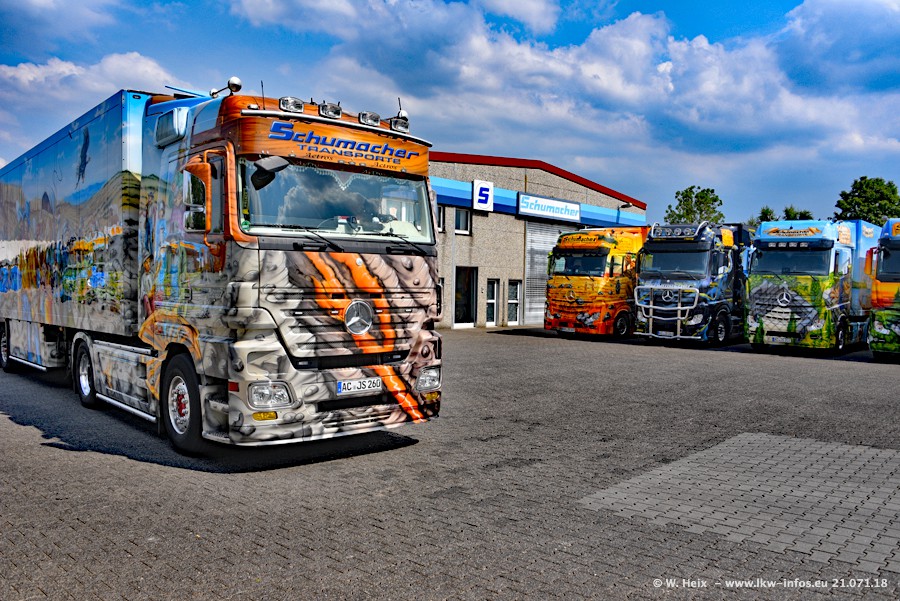 Dieser Besuch bei der Firma Schumacher war die geplante Fortsetzung des im März 2017 abgebrochenen Fotoshootings (siehe Teil 7). Diesmal war das Wetter perfekt und wir hatten genug Zeit. Ich habe nur die Showtrucks der Herpa-Serie "Herpa präsentiert Weltgeschichte..." fotografiert, diie normalen weißen LKW habe ich nicht berücksichtigt. Der größte Teil steht auch auf einem anderen Gelände in Würselen.