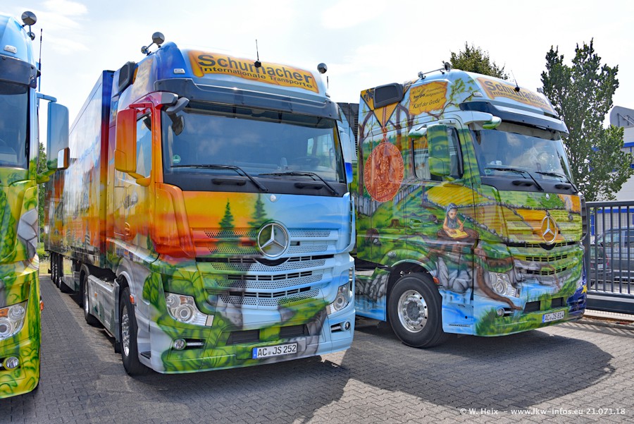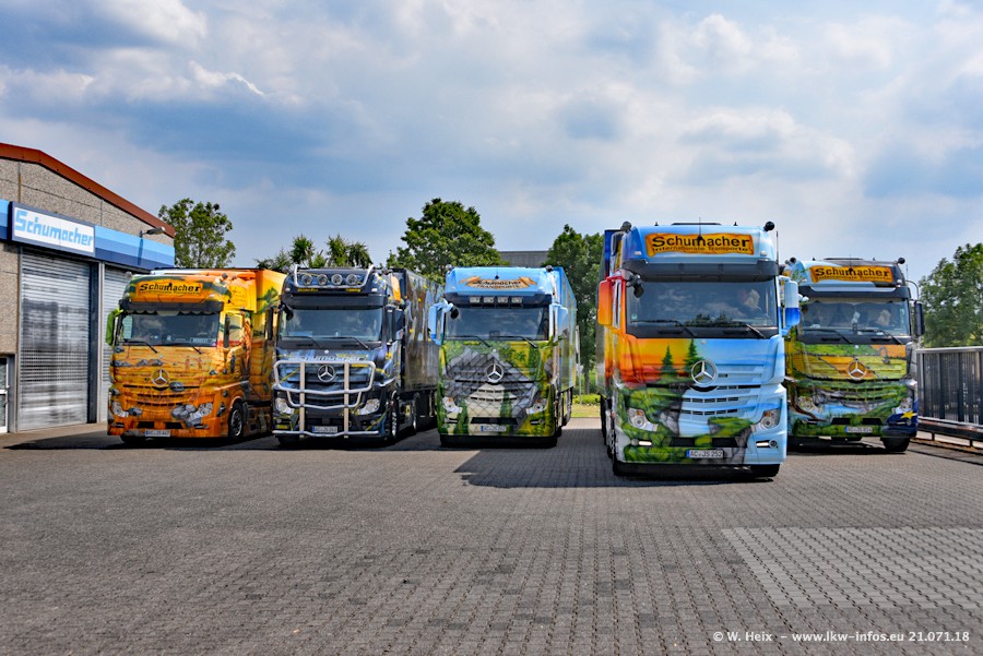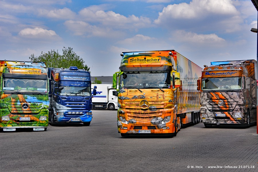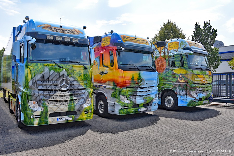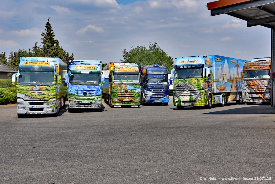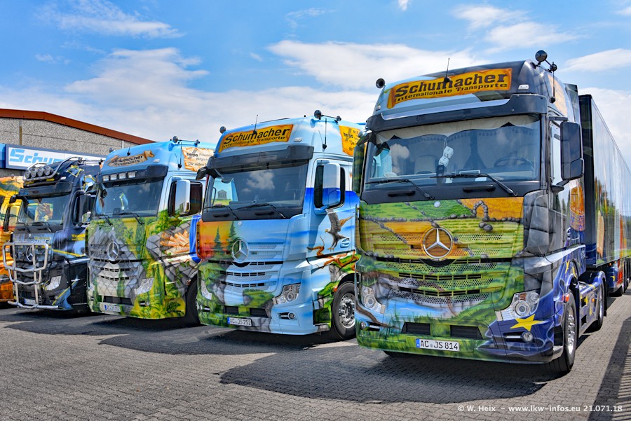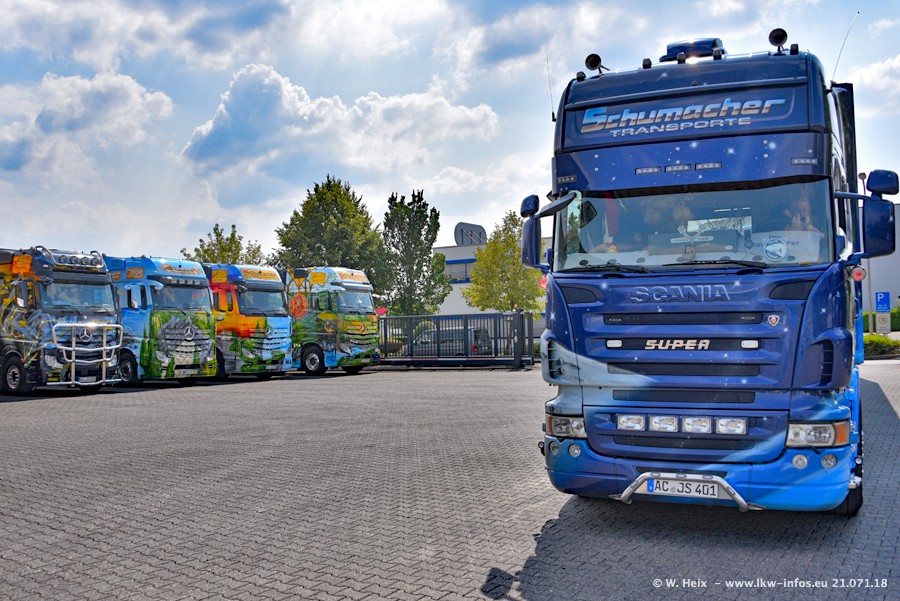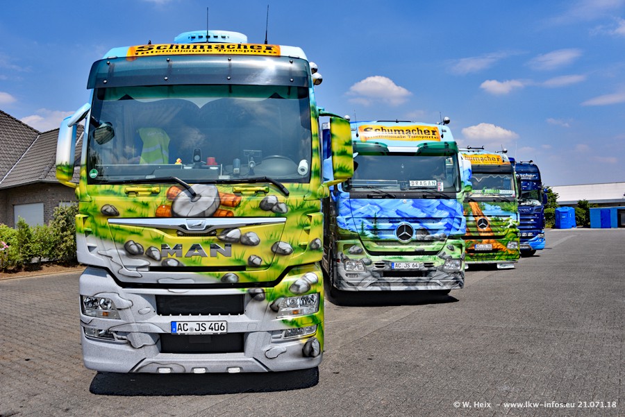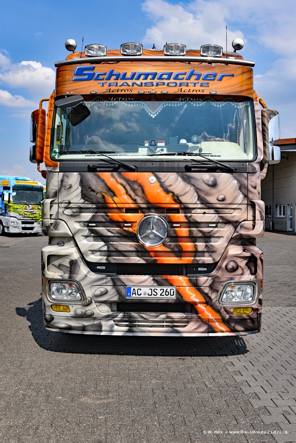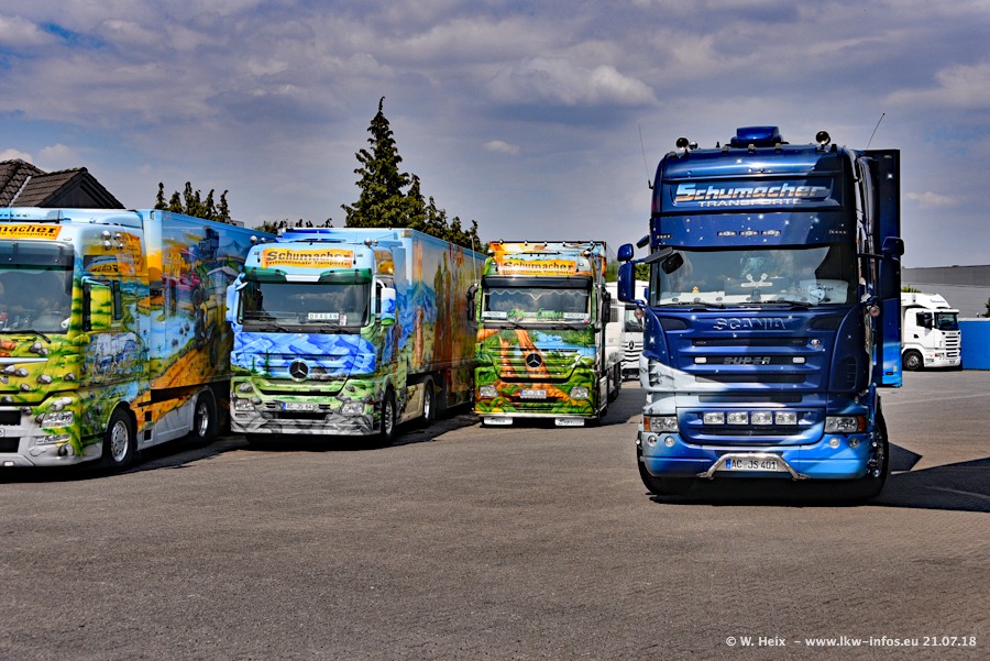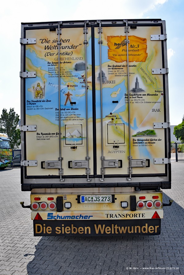 Dieser Besuch bei der Firma Schumacher war die geplante Fortsetzung des im März 2017 abgebrochenen Fotoshootings (siehe Teil 7). Diesmal war das Wetter perfekt und wir hatten genug Zeit. Ich habe nur die Showtrucks der Herpa-Serie "Herpa präsentiert Weltgeschichte..." fotografiert, diie normalen weißen LKW habe ich nicht berücksichtigt. Der größte Teil steht auch auf einem anderen Gelände in Würselen.