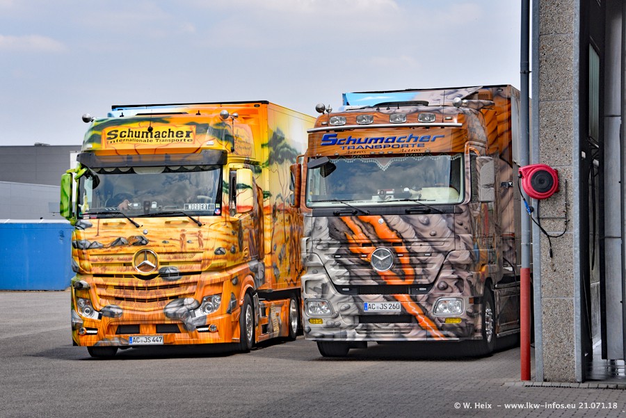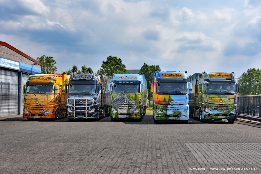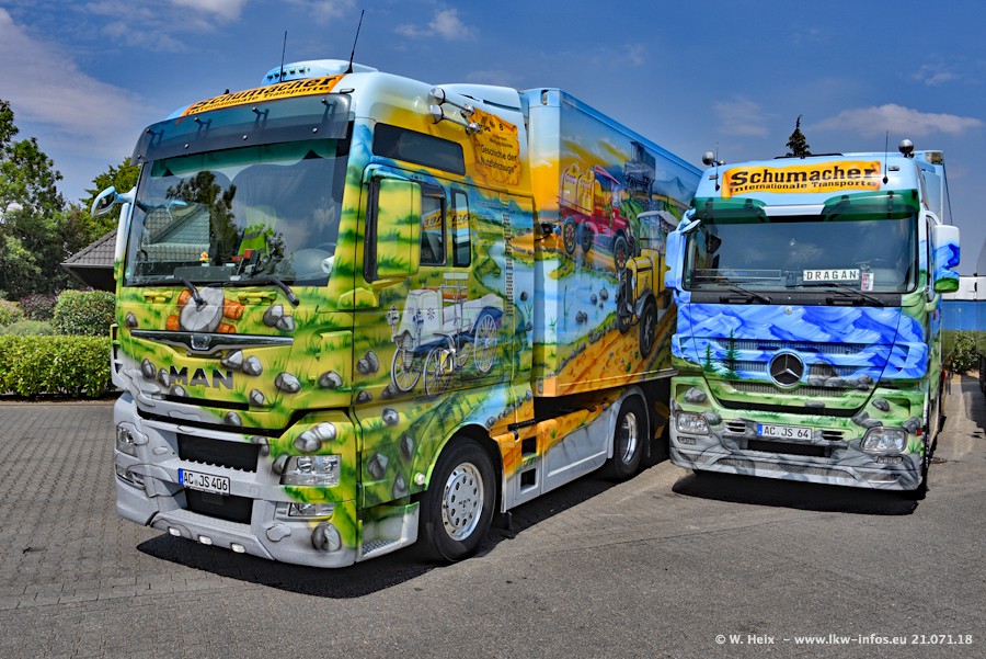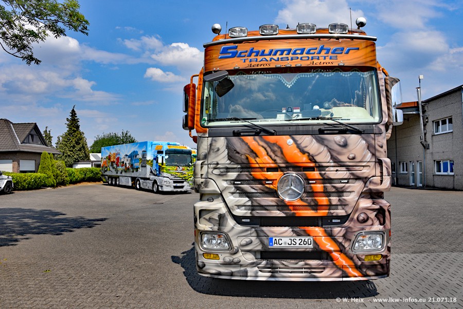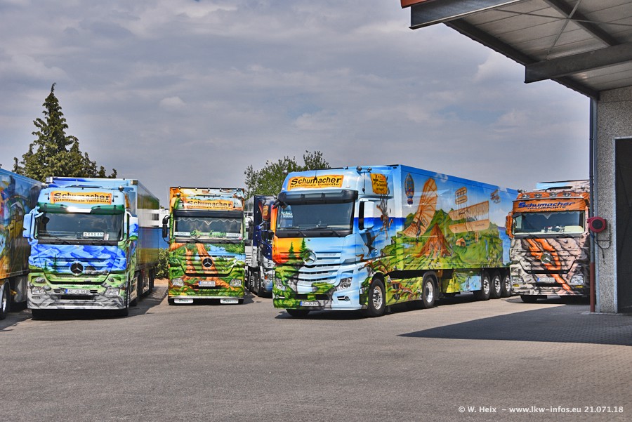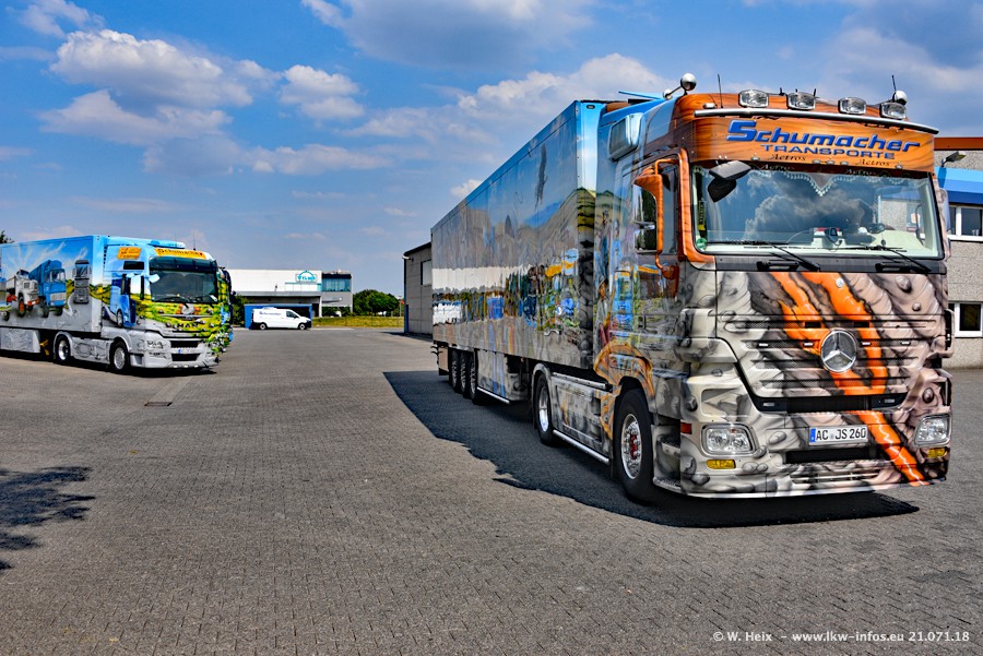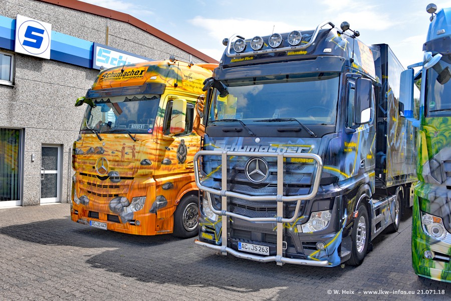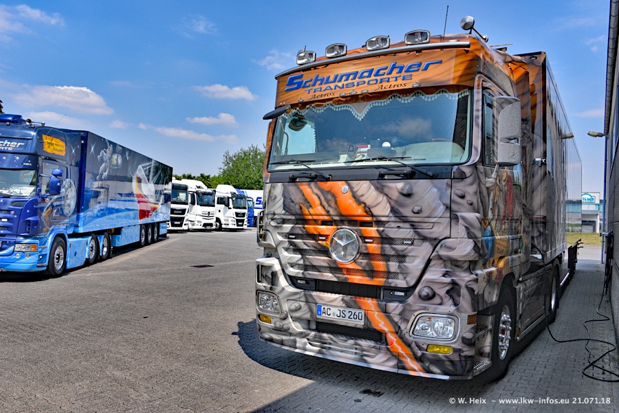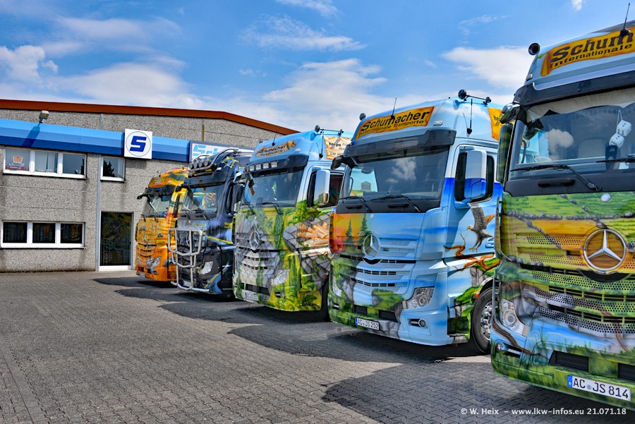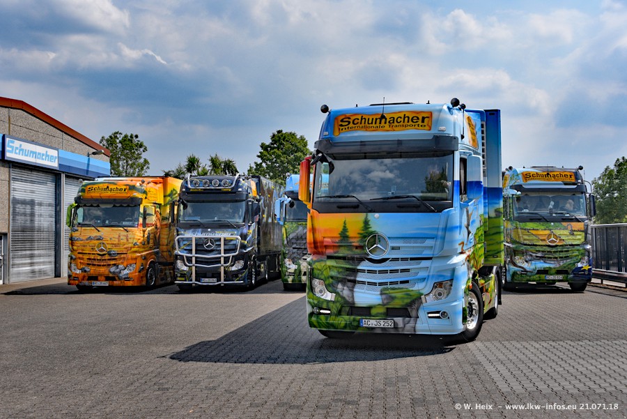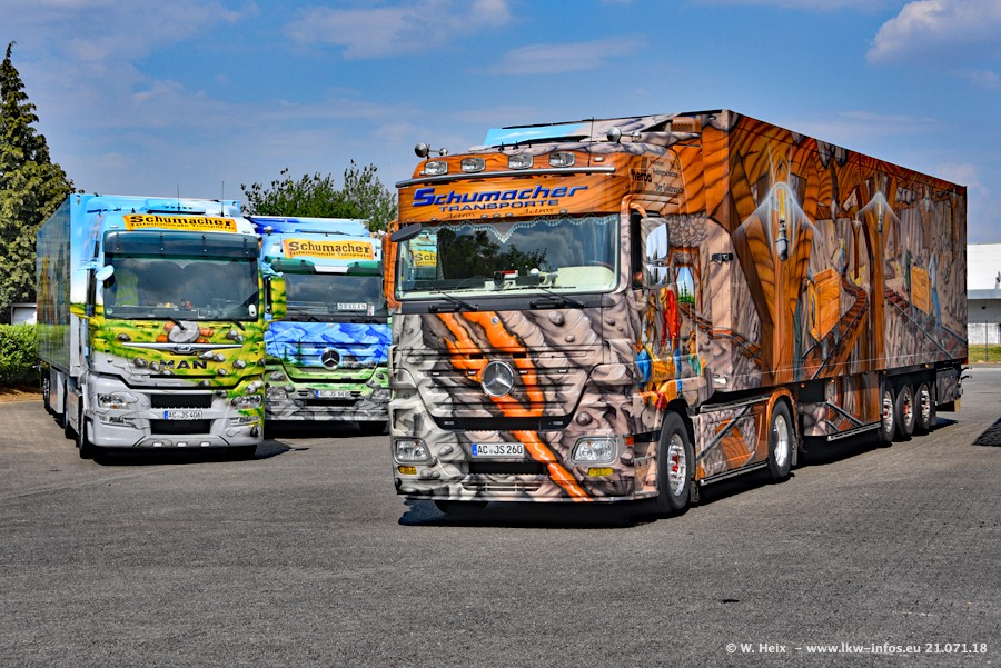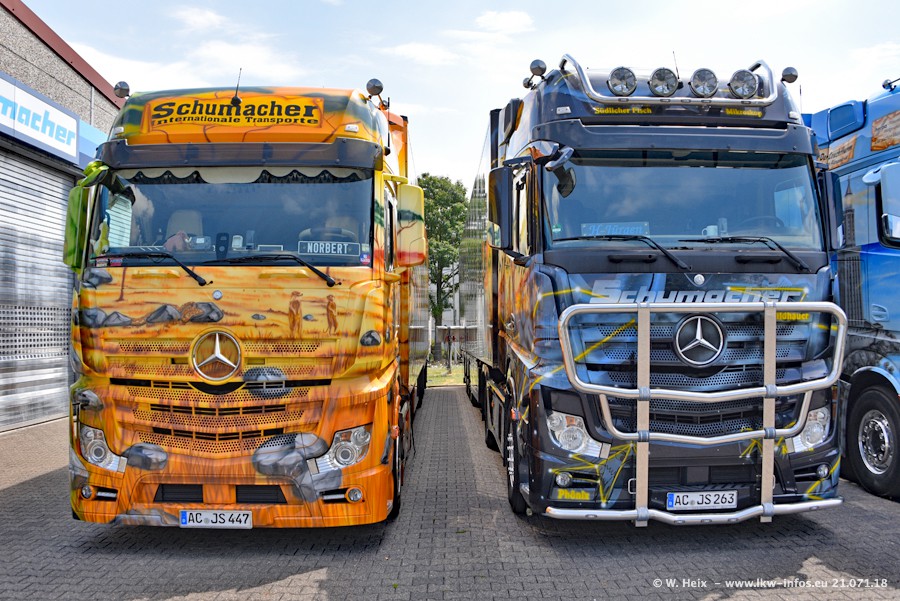 Dieser Besuch bei der Firma Schumacher war die geplante Fortsetzung des im März 2017 abgebrochenen Fotoshootings (siehe Teil 7). Diesmal war das Wetter perfekt und wir hatten genug Zeit. Ich habe nur die Showtrucks der Herpa-Serie "Herpa präsentiert Weltgeschichte..." fotografiert, diie normalen weißen LKW habe ich nicht berücksichtigt. Der größte Teil steht auch auf einem anderen Gelände in Würselen.