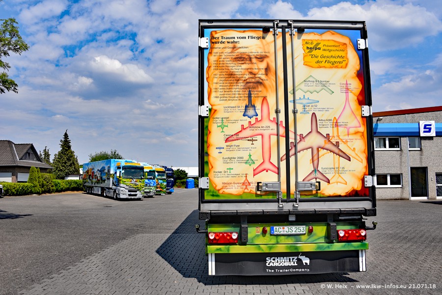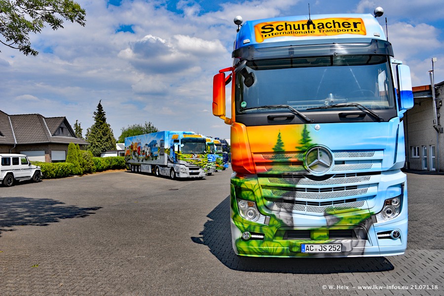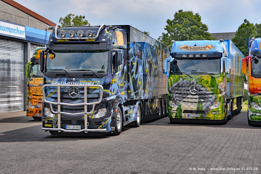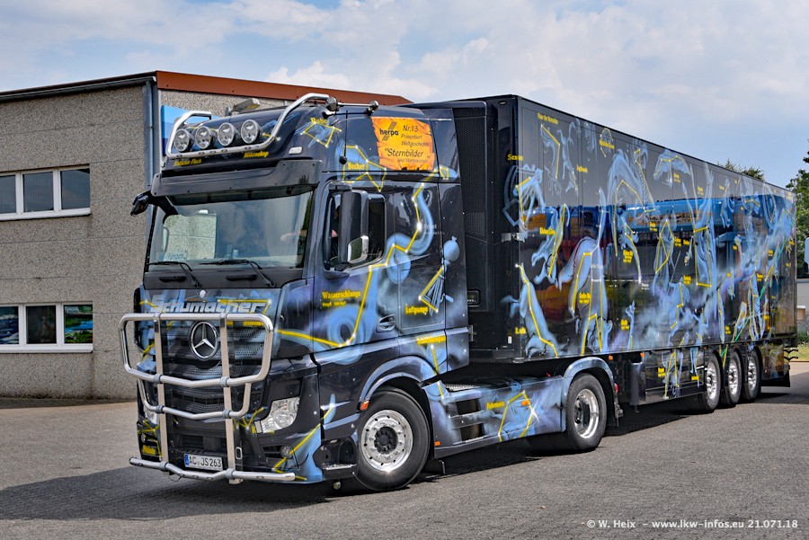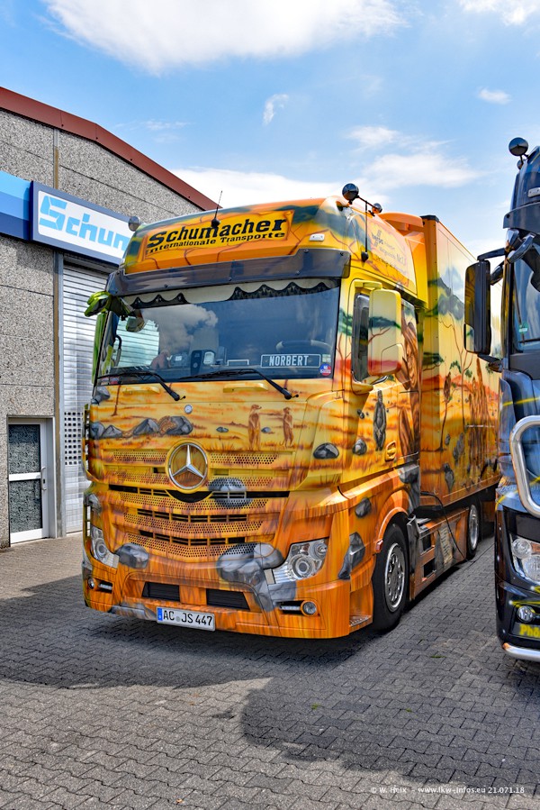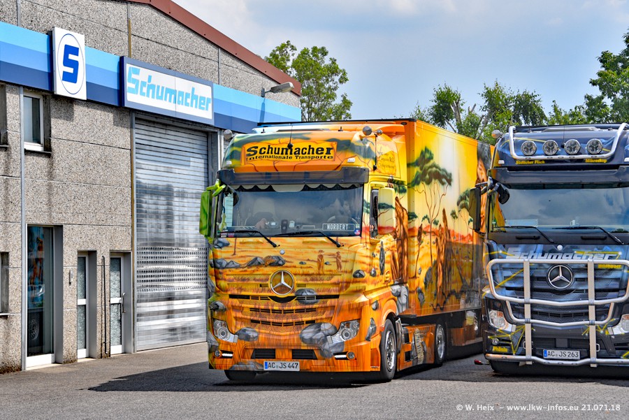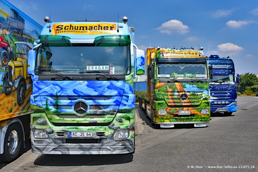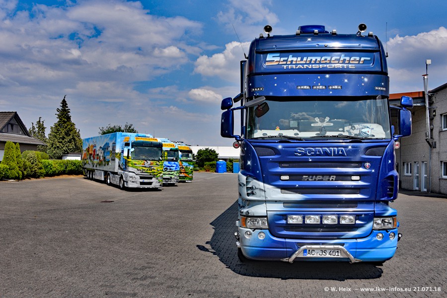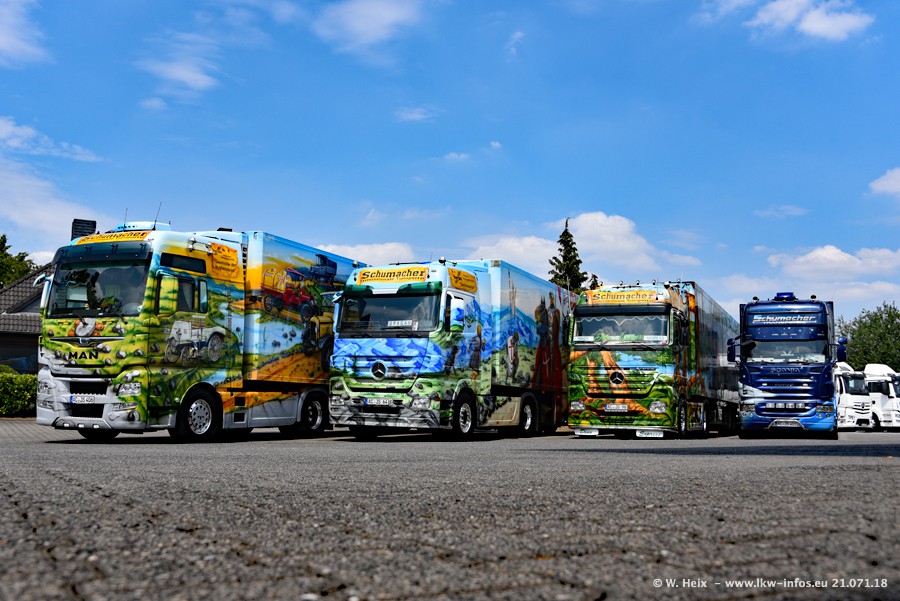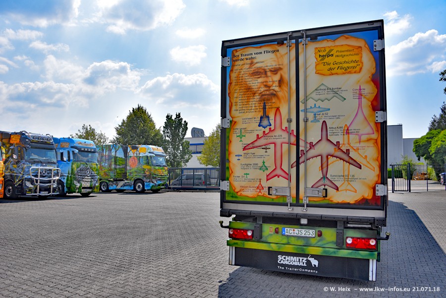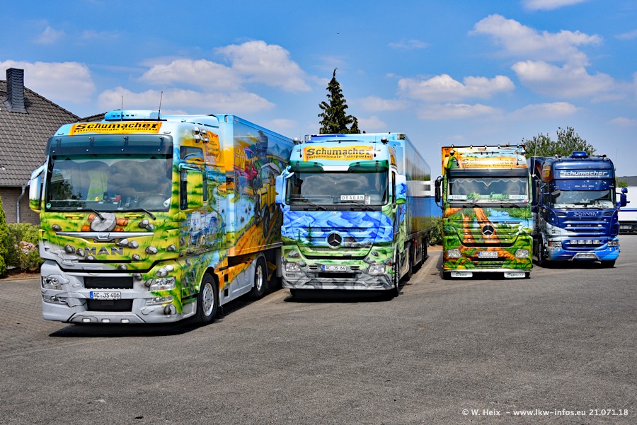 Dieser Besuch bei der Firma Schumacher war die geplante Fortsetzung des im März 2017 abgebrochenen Fotoshootings (siehe Teil 7). Diesmal war das Wetter perfekt und wir hatten genug Zeit. Ich habe nur die Showtrucks der Herpa-Serie "Herpa präsentiert Weltgeschichte..." fotografiert, diie normalen weißen LKW habe ich nicht berücksichtigt. Der größte Teil steht auch auf einem anderen Gelände in Würselen.