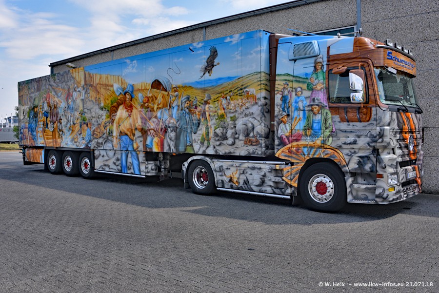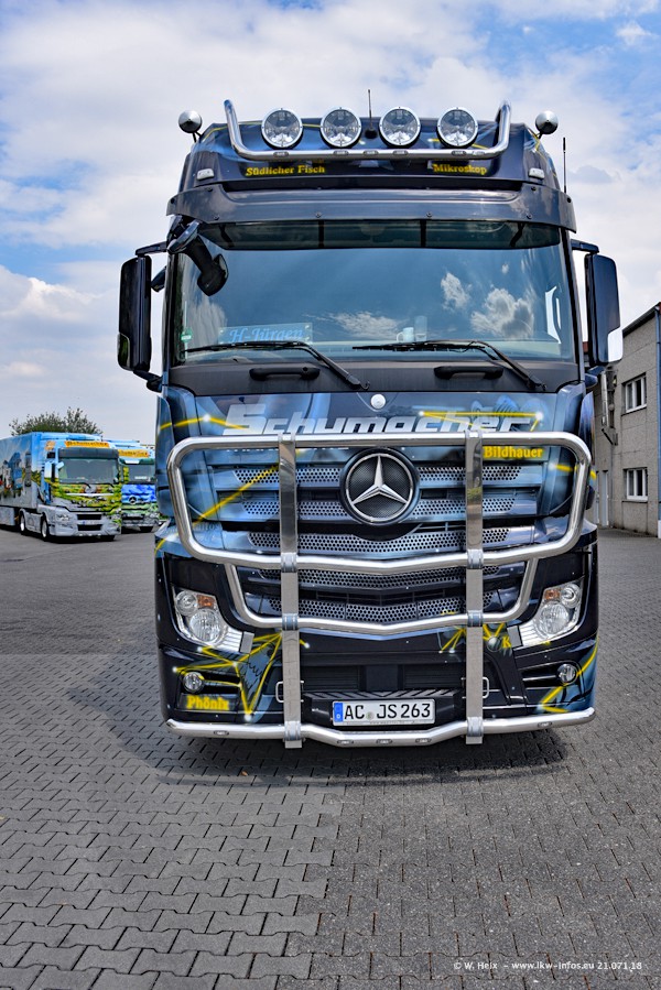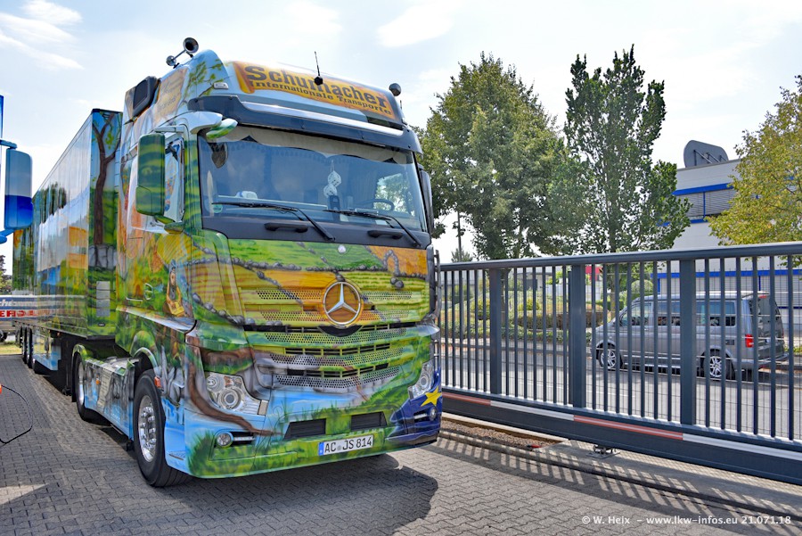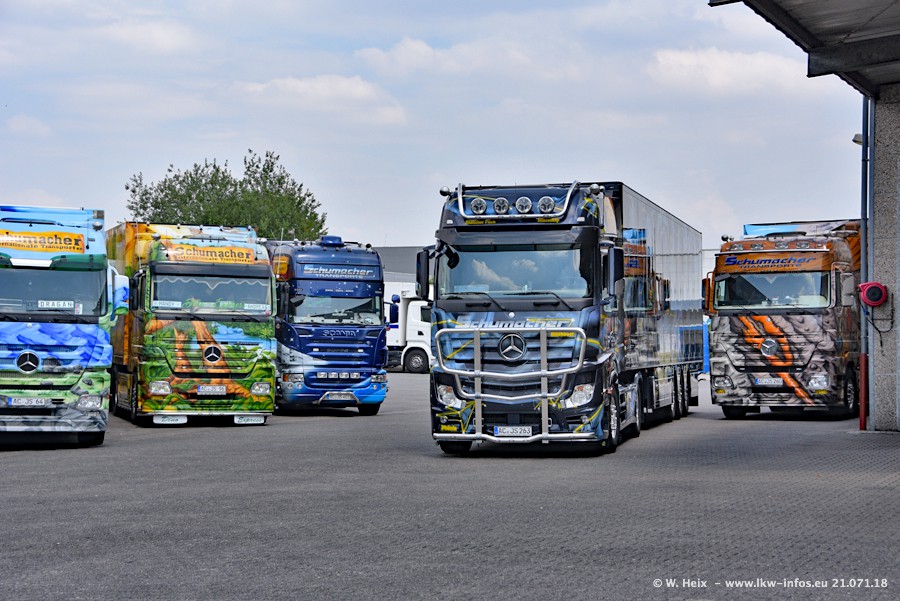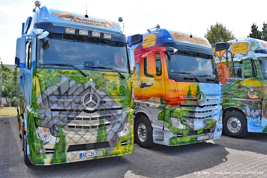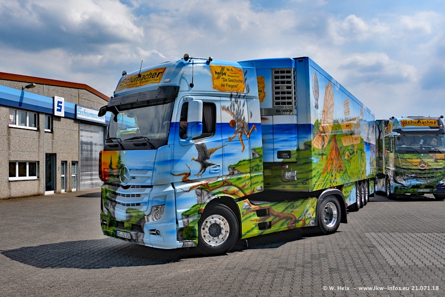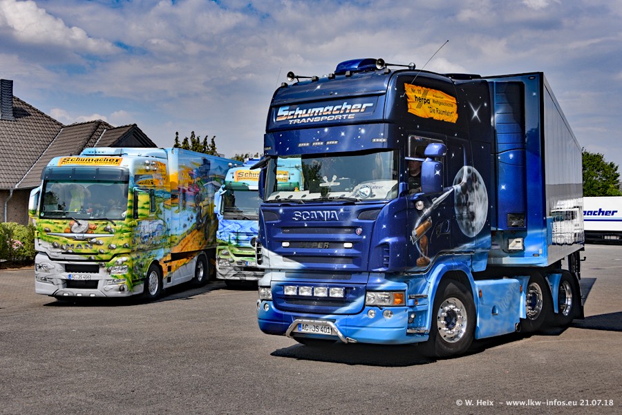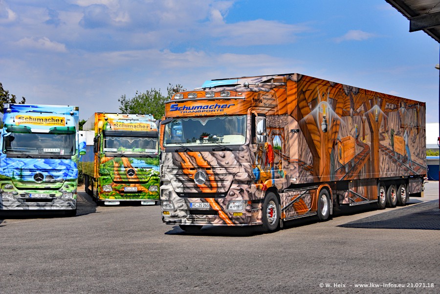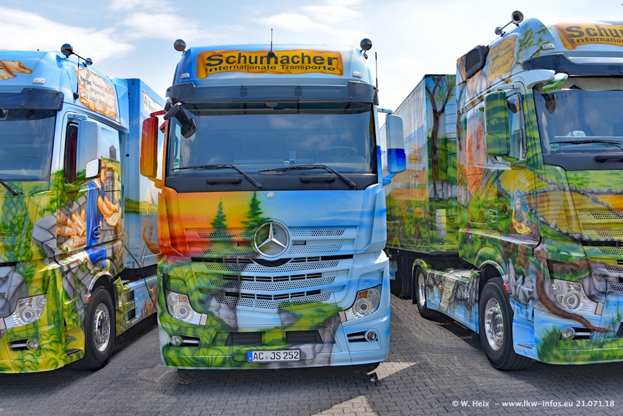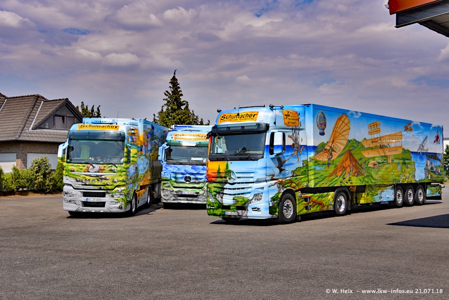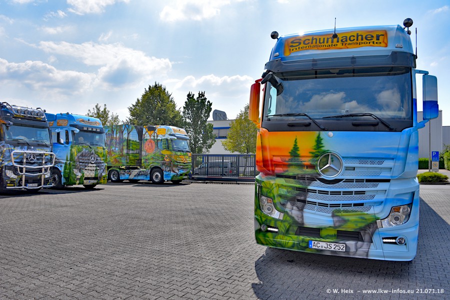 Dieser Besuch bei der Firma Schumacher war die geplante Fortsetzung des im März 2017 abgebrochenen Fotoshootings (siehe Teil 7). Diesmal war das Wetter perfekt und wir hatten genug Zeit. Ich habe nur die Showtrucks der Herpa-Serie "Herpa präsentiert Weltgeschichte..." fotografiert, diie normalen weißen LKW habe ich nicht berücksichtigt. Der größte Teil steht auch auf einem anderen Gelände in Würselen.